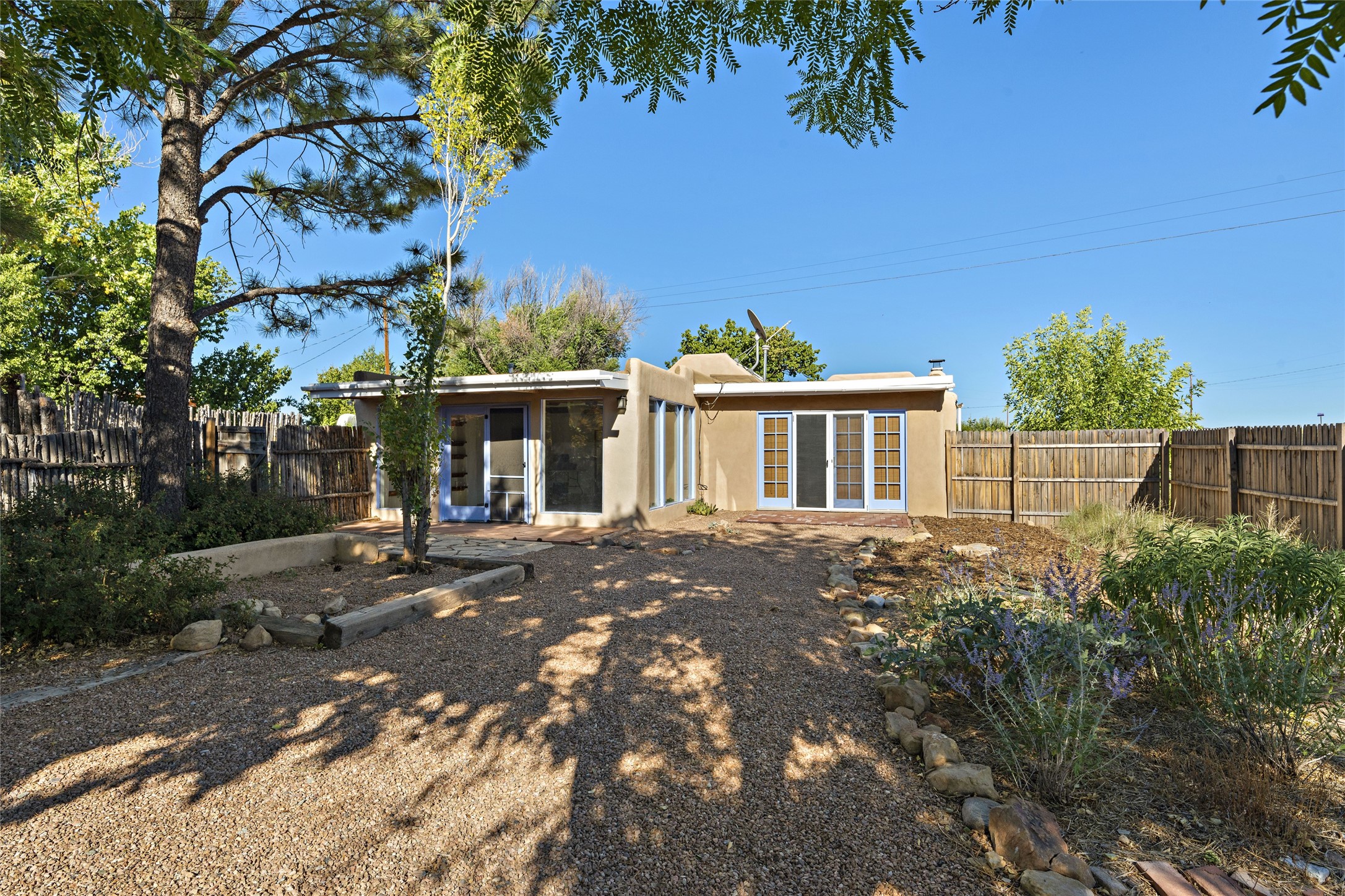 Nestled along the banks of the Galisteo Creek, this sweet original adobe/double adobe home is sited on a picturesque 0.75 +/- acres. There is a large outdoor courtyard with private and captivating views of the gardens, the Galisteo valley and bosque. The functionality of the home lends itself to be 1 to 3 bedroom spaces with plenty of natural light - ideal for artists and studio space. There is a full bathroom and kitchen off the living area. Architectural features include a large wood-burning fireplace, vigas, latillas, antique mesquite doors in the bedroom and kitchen pantry, as well as flagstone, Saltillo tile and wood flooring. A mechanical room doubles as a laundry room with a washer, dryer and utility sink. 5B La Otra Vanda is being offered by the seller for purchase as well.