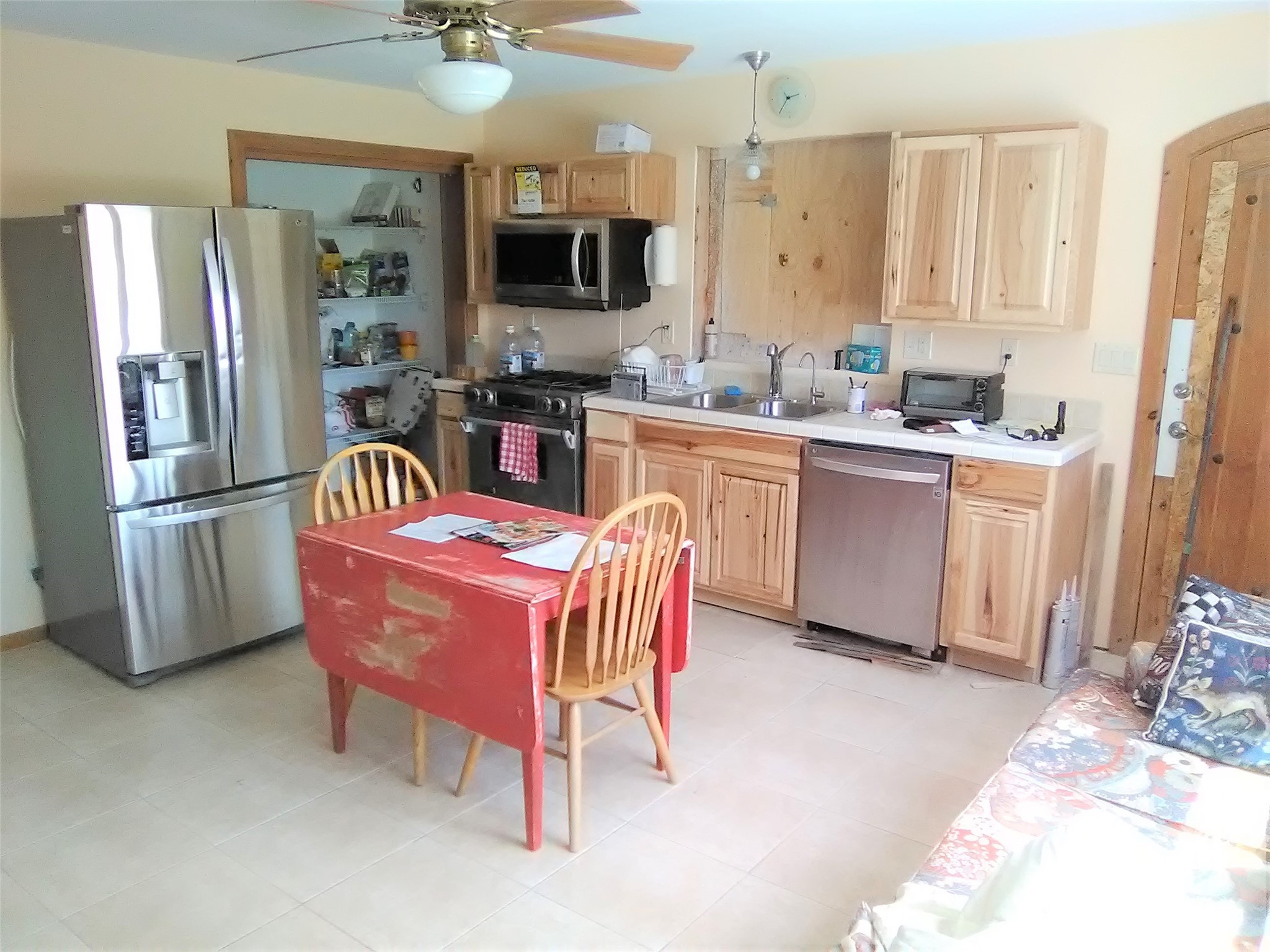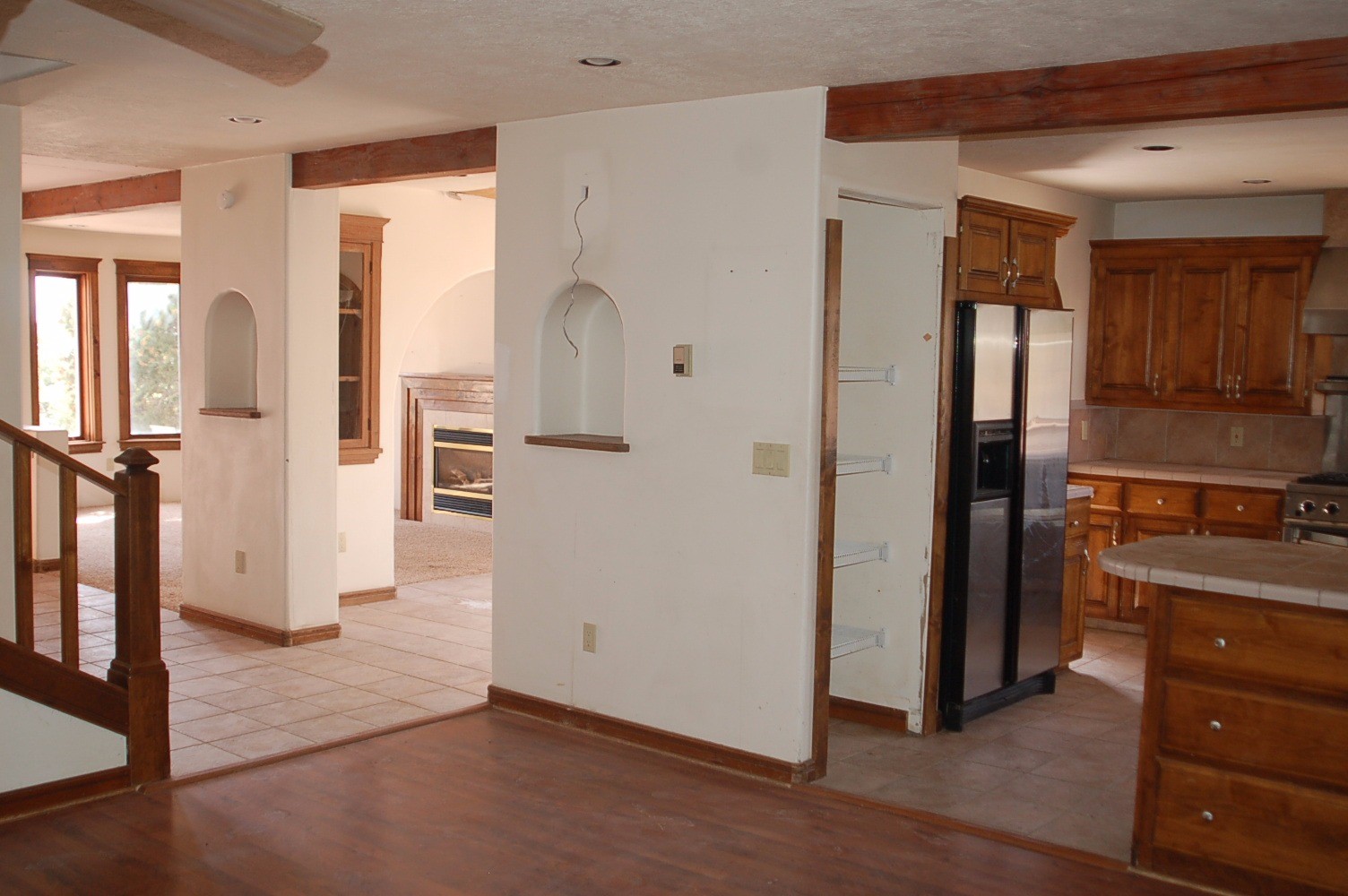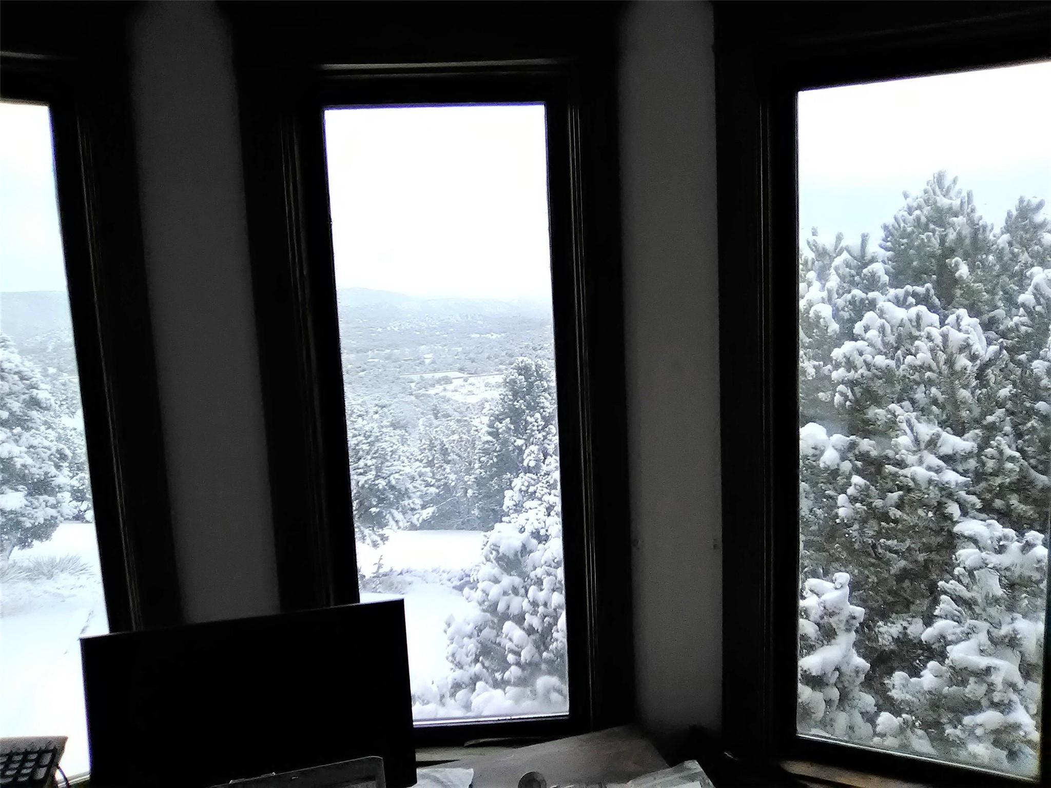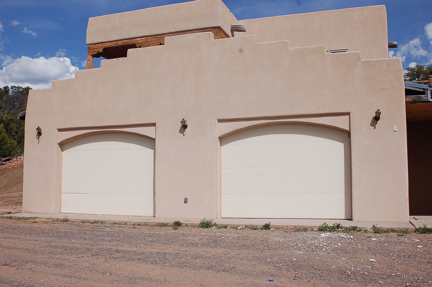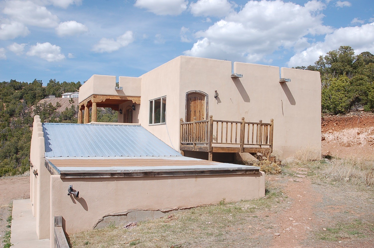 Needs TLC! Drop Dead gorgeous views from just about every window and with three separate living areas!! This well thought out home, perfect for entertaining, is nestled at the base of the Sangre de Cristo Mountains on a little over 3 acres in Canoncito At Apache Canyon. Ten miles from the heart of historic Santa Fe, NM. This 3 bedroom, 3 bathroom, main home, has tiled and carpeted floors and an open living space on the main level, with a living room with a cozy gas fireplace, family room, and dining room right off of the kitchen with custom-built cabinets. All doors throughout are custom-built. In-floor heating through-out, including the garage! Includes the largest LG front-loading washer and gas dryer combo to fit the largest comforter. Tons of natural light and fresh, clean mountain air! On the second level, the master suite, complete with a Jacuzzi tub and separate shower and a huge walk in closet, is separate from the 2 secondary bedrooms with their separate full bathroom. Attached two car garage is big enough to fit a 4WD full-sized crew cab pickup with an 8 foot bed. Attached to the main house is a 1215 square foot addition with its own separate entrance, kitchen, and large carpeted bedroom suite with a large bathroom with tub and separate shower, along with its own LG front-loading washer and dryer setup. (Bedroom is non-conforming.) In the rear of the main house is a detached studio with a 768 square foot living quarters on the upper level, consisting of a large bedroom, kitchen and living room area, full bathroom with shower/tub, and washer and dryer setup. (Bedroom is non-conforming.) In the lower level of the studio is a 34 foot wide by 40 foot deep studio/shop, with 10 foot ceiling and its own 200 amp, 240/120VAC electrical service, and 40 feet of cabinets and counter space. All with in-floor heating. Needs stucco work.