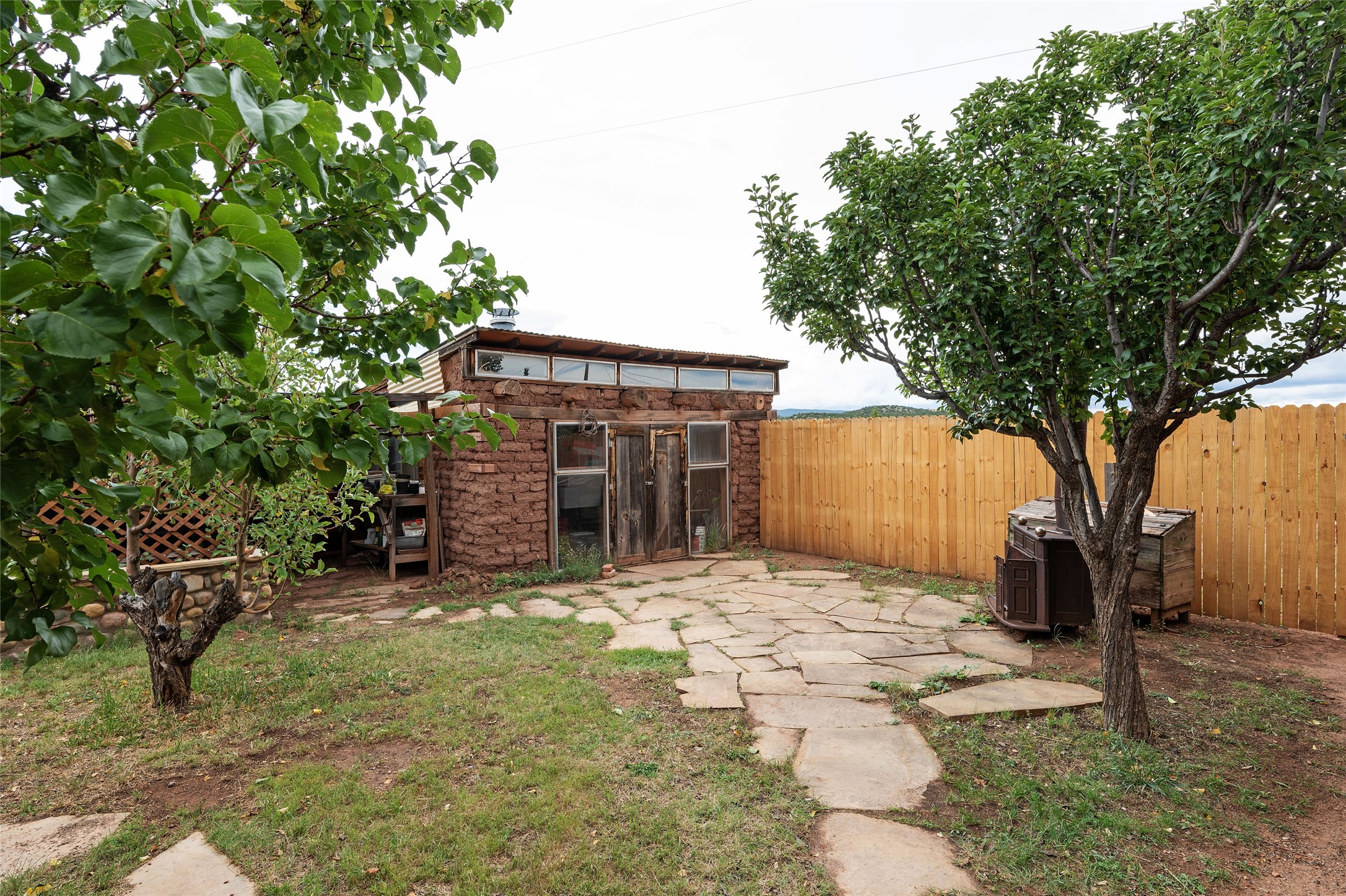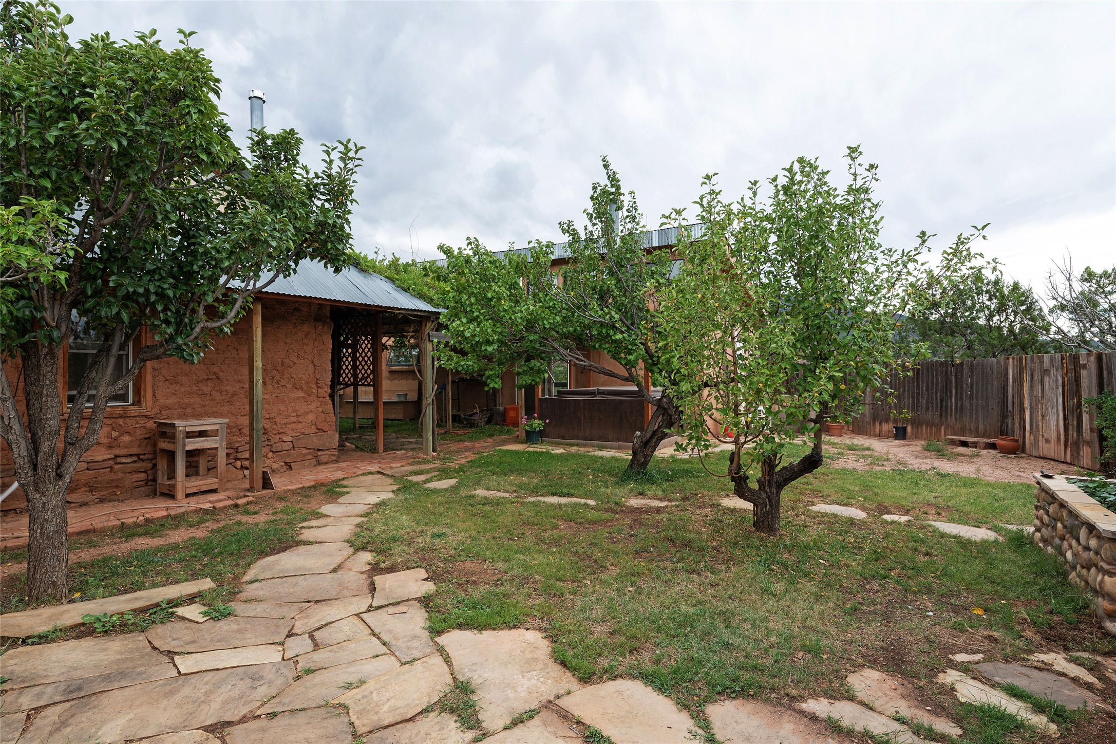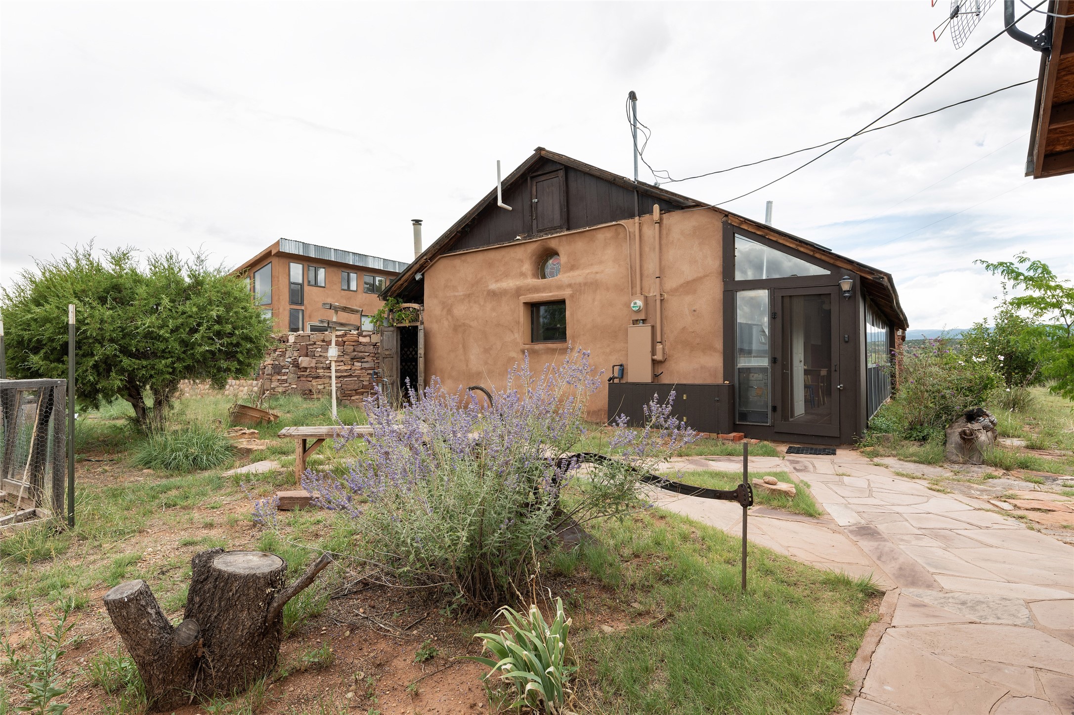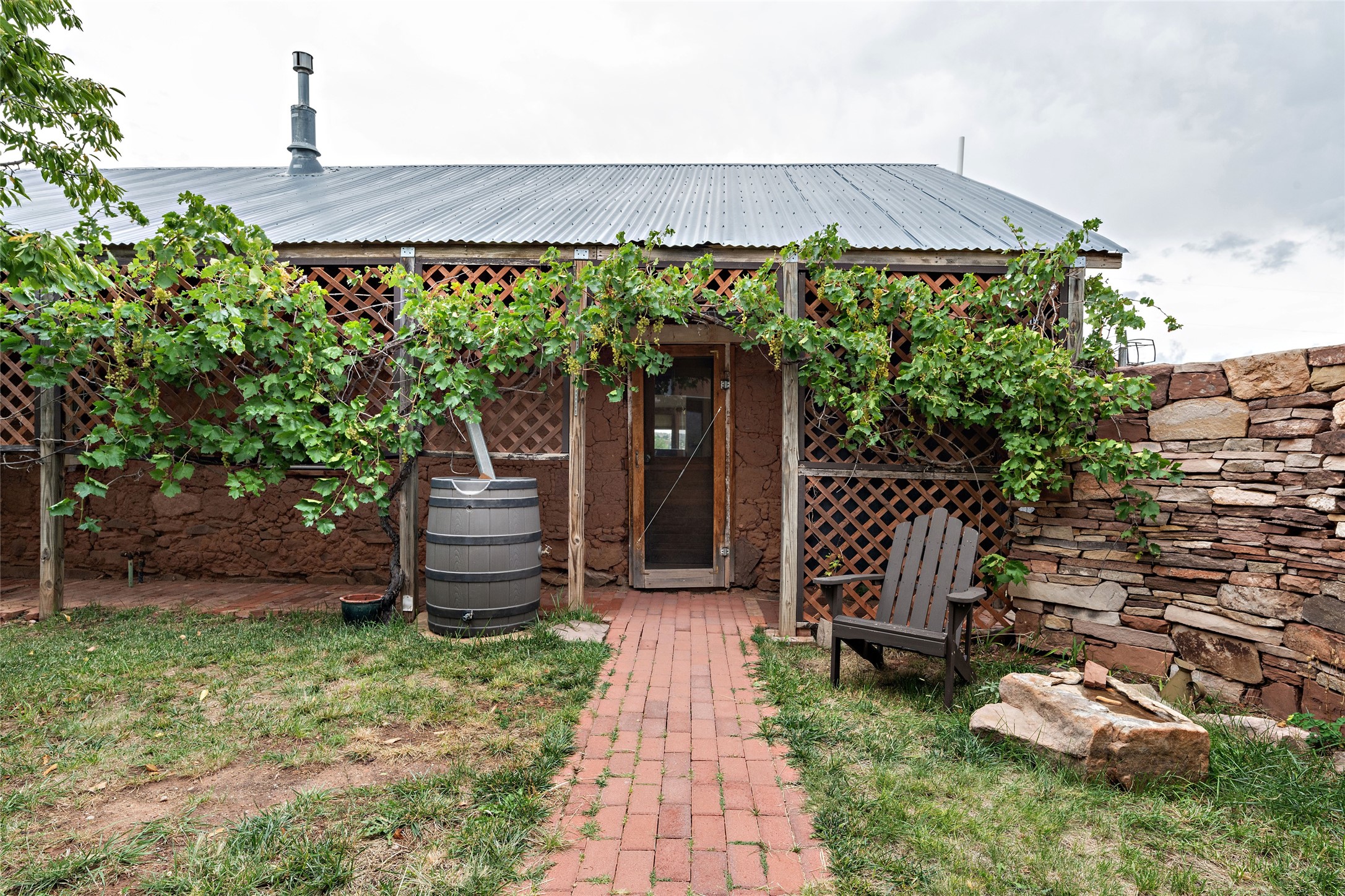 Walk back in time via this exceptional and much loved compound in the quiet and historic village of San Jose just outside Las Vegas, New Mexico. Consisting of 1.1 +/- acres with vast 360 de-gree views of Rowe Mesa, Lucero Canyon and quick access to I-25, the compound is com-prised of a remodeled main house, newer guest house and a Sears Roebuck kit house used as an art studio. Other buildings include a detached 2-car garage with an attached storage room and a work shop and an adobe potting shed. The 1 bedroom/1 bath 600 +/- sq.ft. single-story main adobe home dates back 200 years all lovingly restored by stewards of the valley. The 600 +/- sq.ft. single story newer guesthouse consists of an open concept living/bedroom area with vast views of the canyons, bathed in light by clerestory windows. Both structures are separated by a lush courtyard surrounded by grape vines, cherry, apple and plum trees. A hot tub sits un-der a pergola of greenery. A two-story 1930's Sears Roebuck kit house with a 6 foot enclosed wrap around porch with windows completes the property and functions as another home or stu-dio. All the structures have heating and bathrooms with On-Demand hot water units. The main house and guest house supplement with mini-split heating & AC. This is a great rural property for those looking to escape city life and return back to one lived more simply amid all the beauty of nature that Northern New Mexico has to offer.