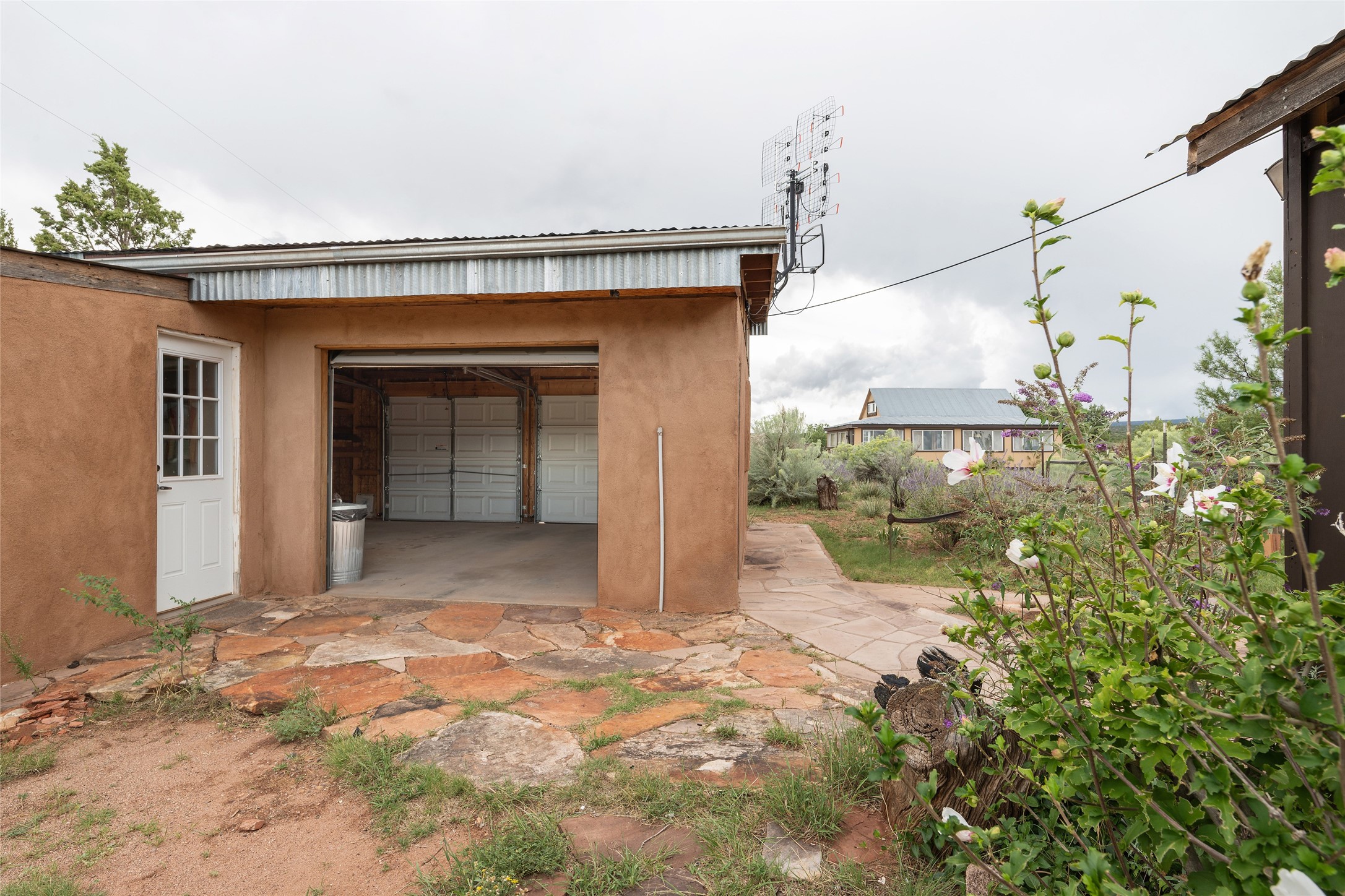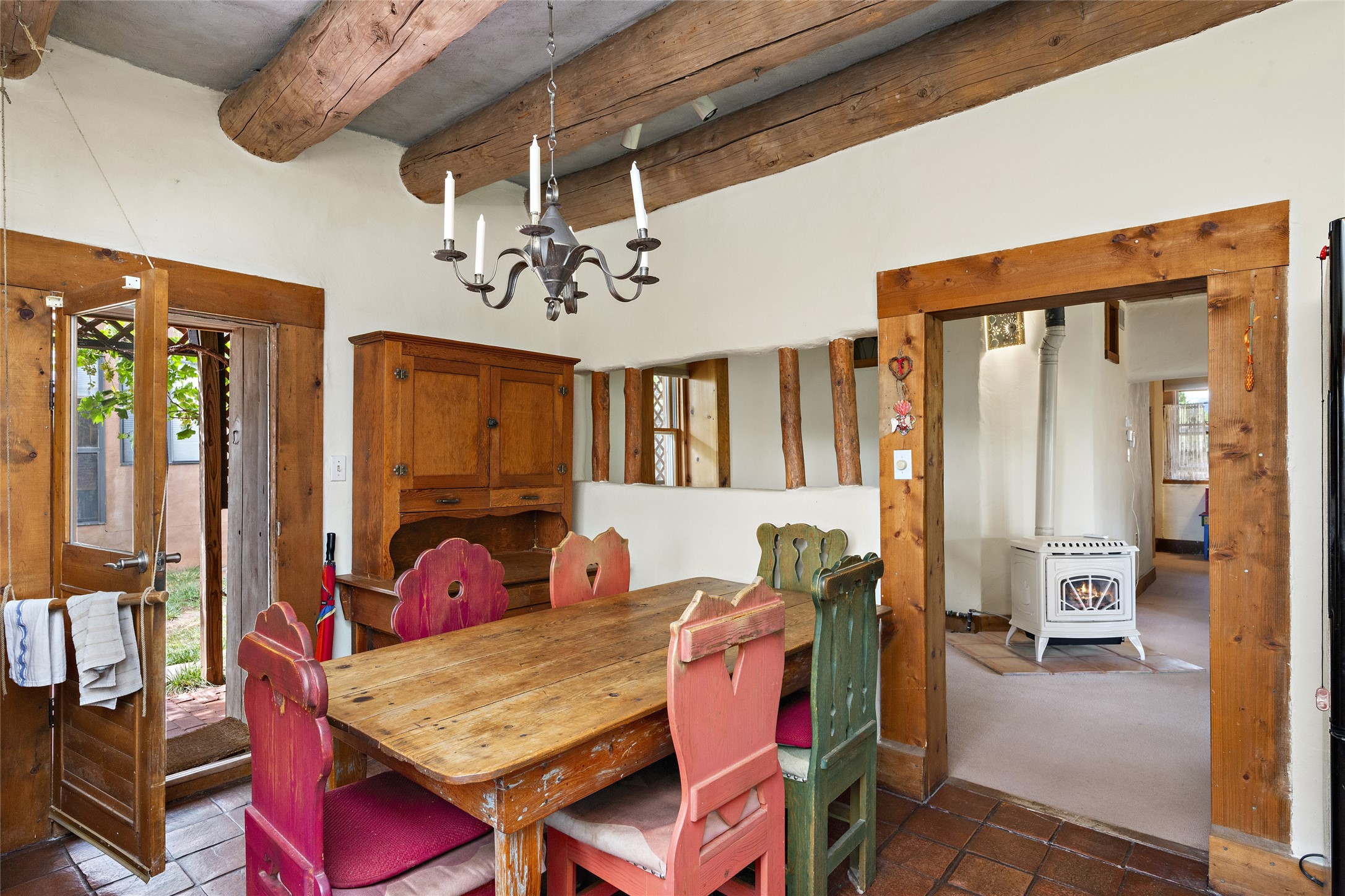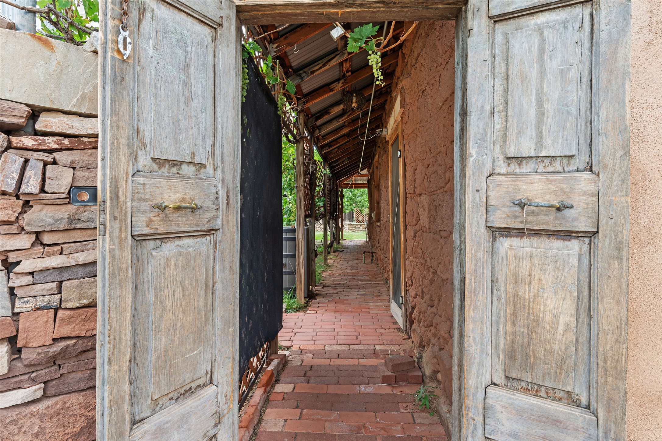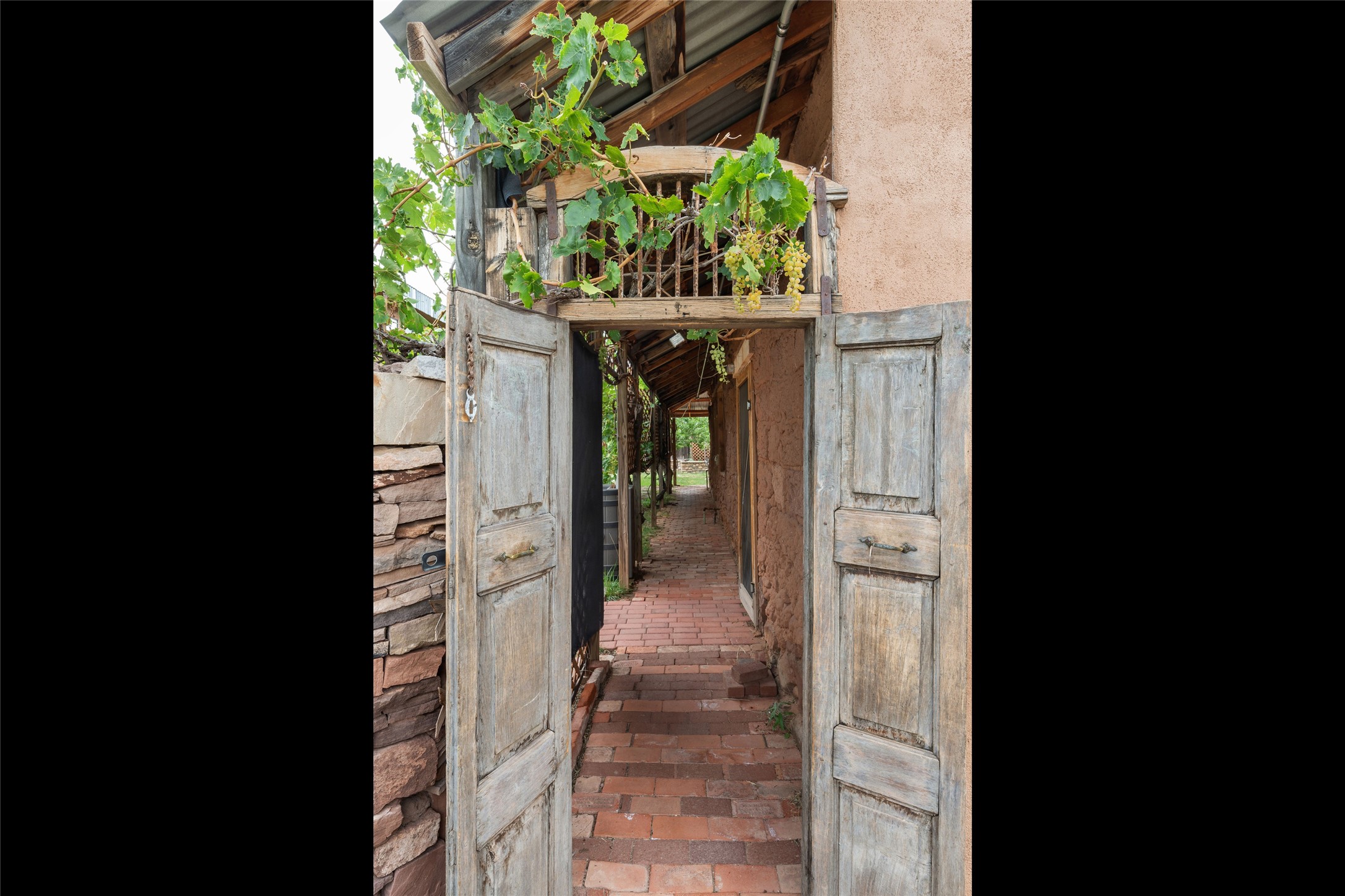 Walk back in time via this exceptional and much loved compound in the quiet and historic village of San Jose just outside Las Vegas, New Mexico. Consisting of 1.1 +/- acres with vast 360 de-gree views of Rowe Mesa, Lucero Canyon and quick access to I-25, the compound is com-prised of a remodeled main house, newer guest house and a Sears Roebuck kit house used as an art studio. Other buildings include a detached 2-car garage with an attached storage room and a work shop and an adobe potting shed. The 1 bedroom/1 bath 600 +/- sq.ft. single-story main adobe home dates back 200 years all lovingly restored by stewards of the valley. The 600 +/- sq.ft. single story newer guesthouse consists of an open concept living/bedroom area with vast views of the canyons, bathed in light by clerestory windows. Both structures are separated by a lush courtyard surrounded by grape vines, cherry, apple and plum trees. A hot tub sits un-der a pergola of greenery. A two-story 1930's Sears Roebuck kit house with a 6 foot enclosed wrap around porch with windows completes the property and functions as another home or stu-dio. All the structures have heating and bathrooms with On-Demand hot water units. The main house and guest house supplement with mini-split heating & AC. This is a great rural property for those looking to escape city life and return back to one lived more simply amid all the beauty of nature that Northern New Mexico has to offer.