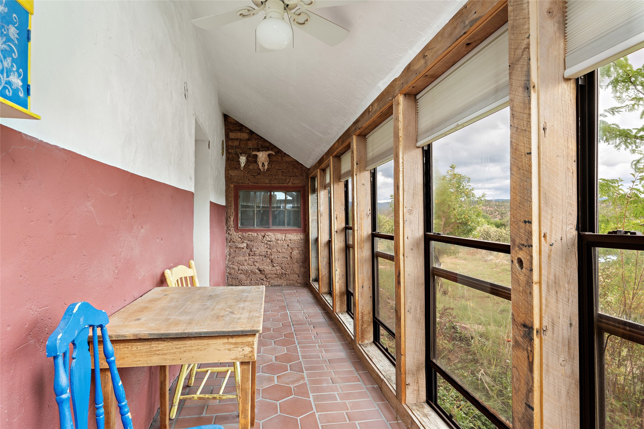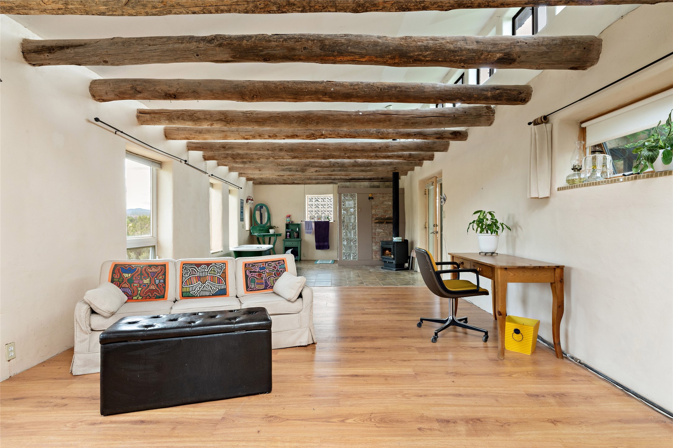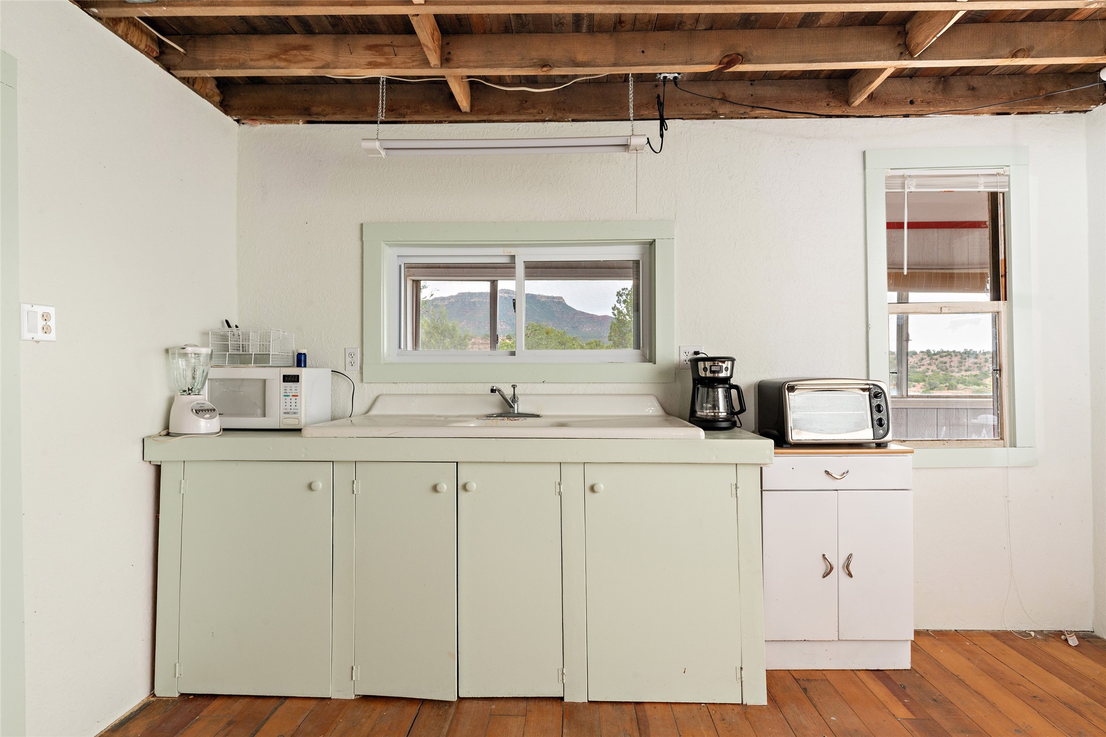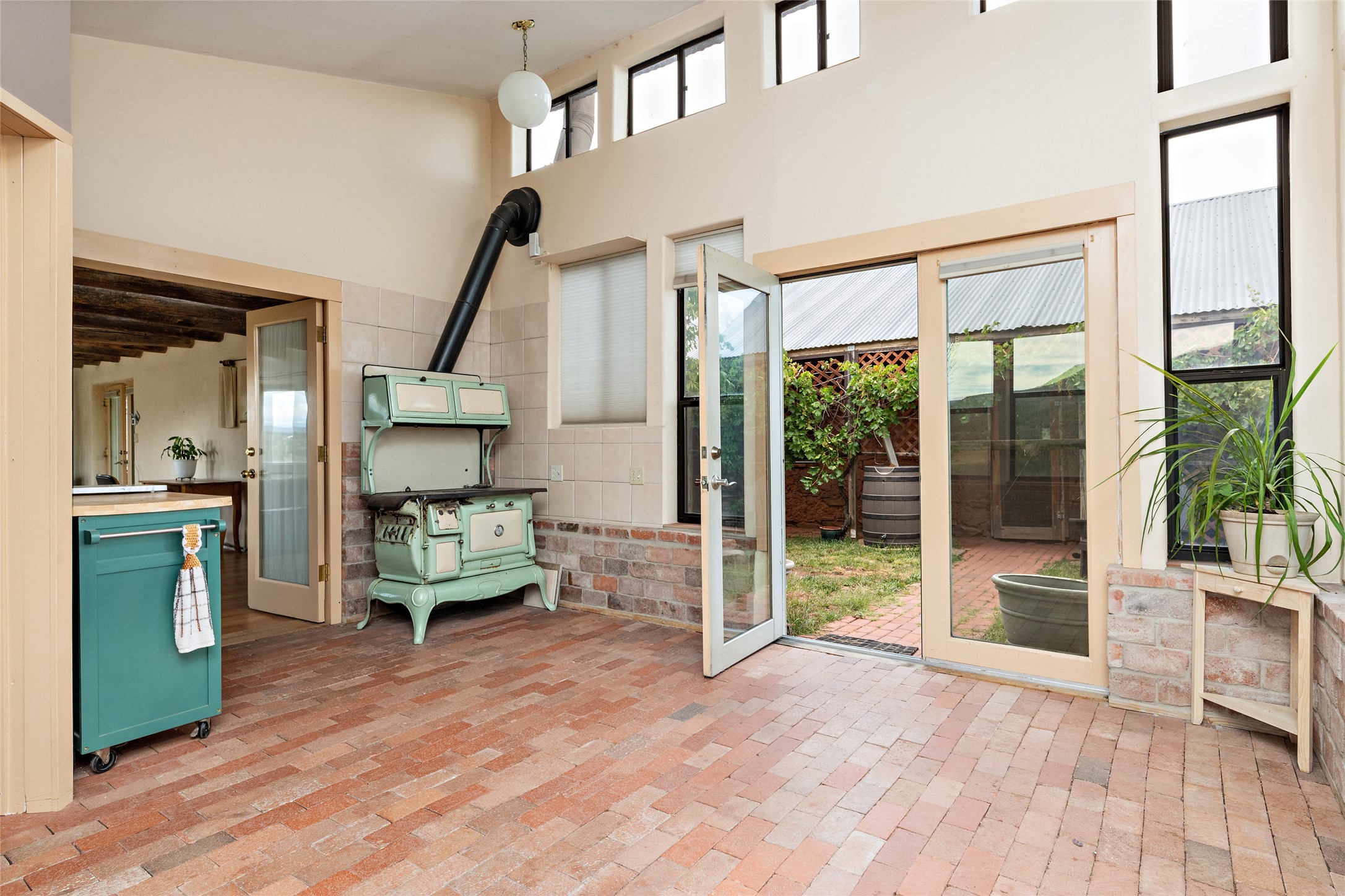 Walk back in time via this exceptional and much loved compound in the quiet and historic village of San Jose just outside Las Vegas, New Mexico. Consisting of 1.1 +/- acres with vast 360 de-gree views of Rowe Mesa, Lucero Canyon and quick access to I-25, the compound is com-prised of a remodeled main house, newer guest house and a Sears Roebuck kit house used as an art studio. Other buildings include a detached 2-car garage with an attached storage room and a work shop and an adobe potting shed. The 1 bedroom/1 bath 600 +/- sq.ft. single-story main adobe home dates back 200 years all lovingly restored by stewards of the valley. The 600 +/- sq.ft. single story newer guesthouse consists of an open concept living/bedroom area with vast views of the canyons, bathed in light by clerestory windows. Both structures are separated by a lush courtyard surrounded by grape vines, cherry, apple and plum trees. A hot tub sits un-der a pergola of greenery. A two-story 1930's Sears Roebuck kit house with a 6 foot enclosed wrap around porch with windows completes the property and functions as another home or stu-dio. All the structures have heating and bathrooms with On-Demand hot water units. The main house and guest house supplement with mini-split heating & AC. This is a great rural property for those looking to escape city life and return back to one lived more simply amid all the beauty of nature that Northern New Mexico has to offer.