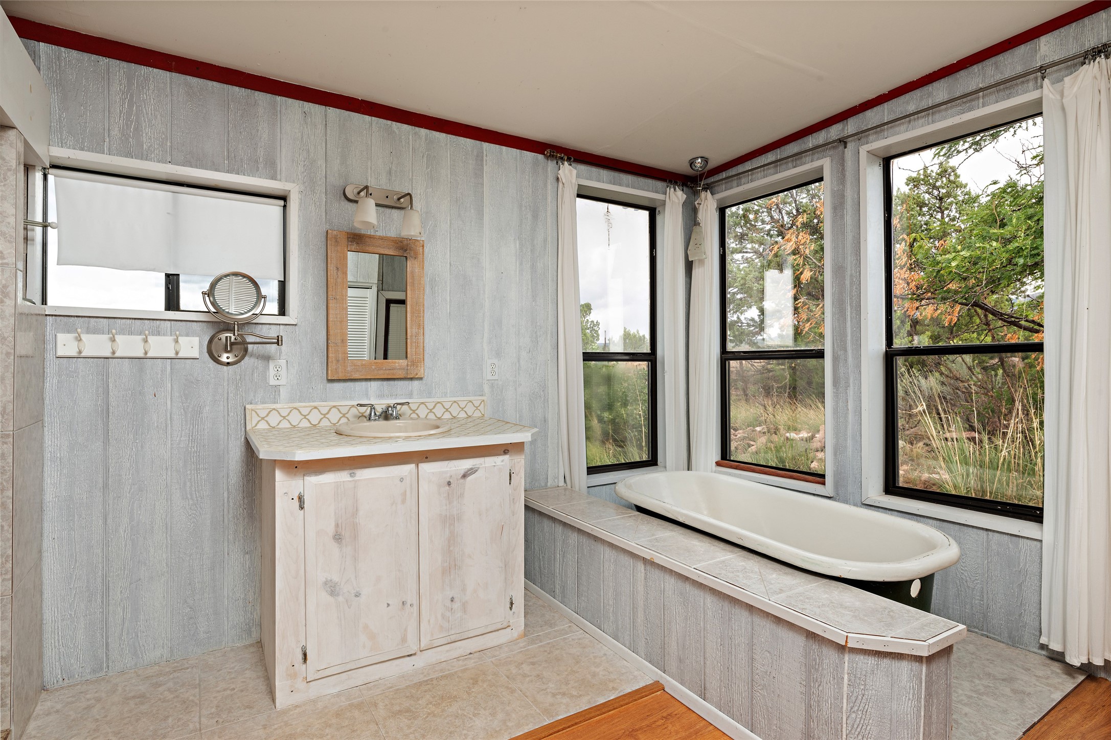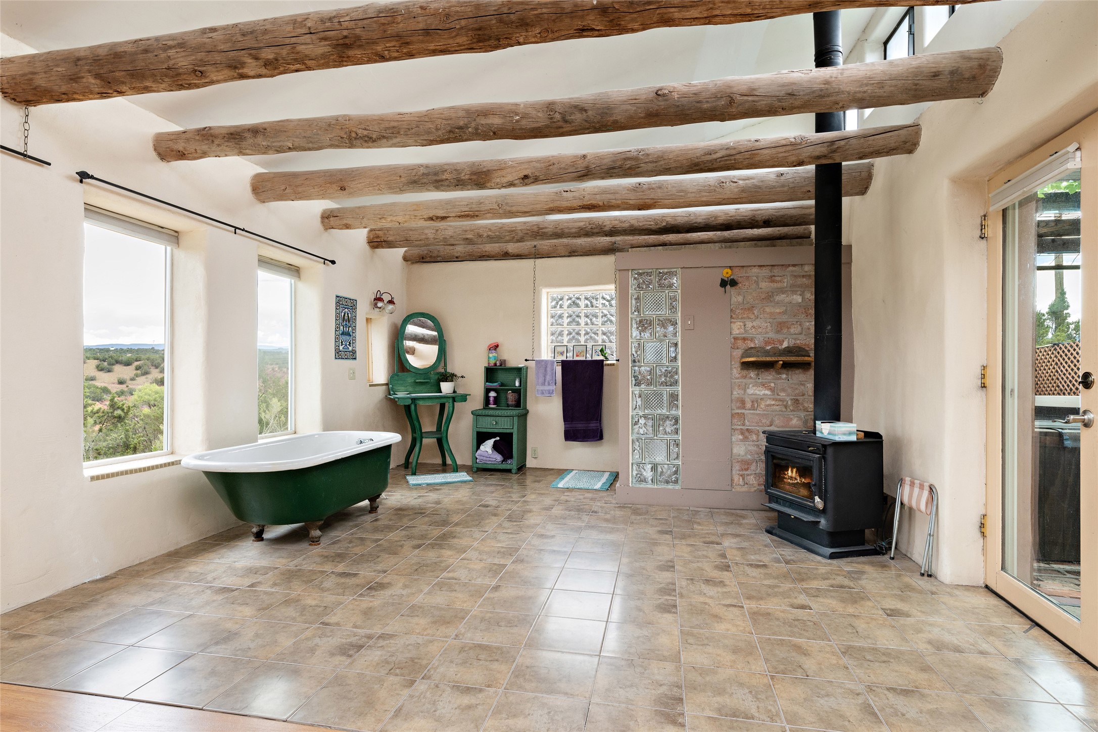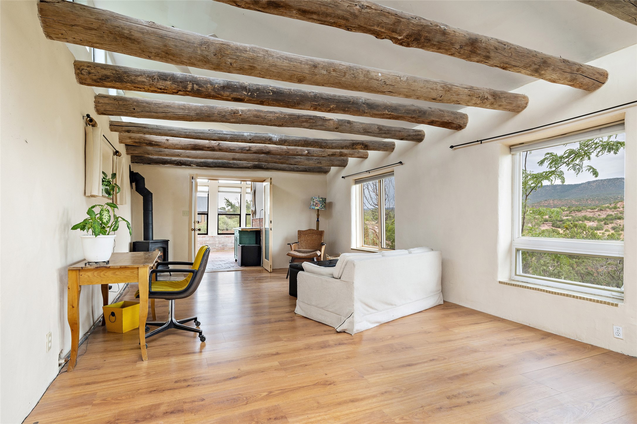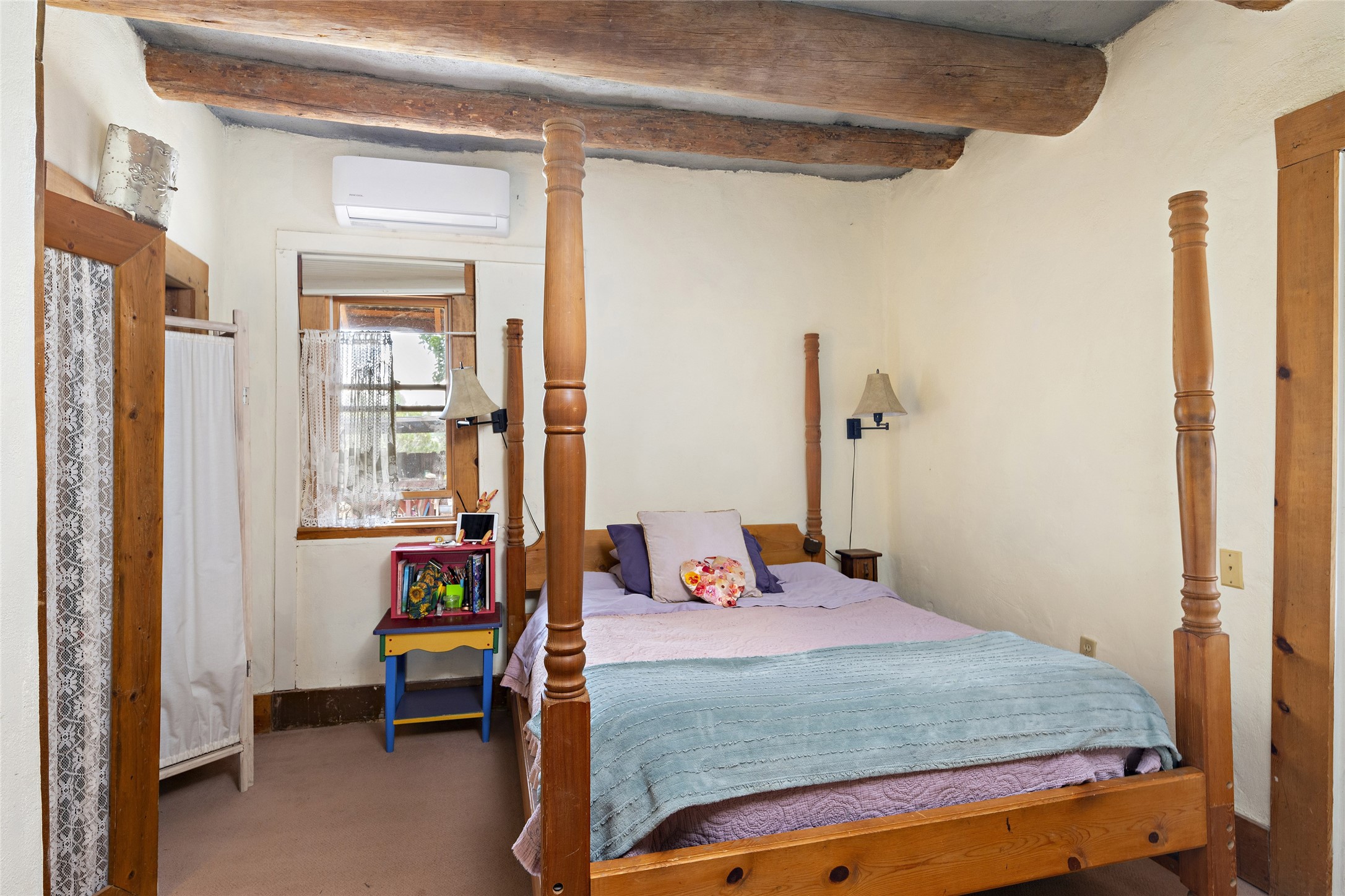 Walk back in time via this exceptional and much loved compound in the quiet and historic village of San Jose just outside Las Vegas, New Mexico. Consisting of 1.1 +/- acres with vast 360 de-gree views of Rowe Mesa, Lucero Canyon and quick access to I-25, the compound is com-prised of a remodeled main house, newer guest house and a Sears Roebuck kit house used as an art studio. Other buildings include a detached 2-car garage with an attached storage room and a work shop and an adobe potting shed. The 1 bedroom/1 bath 600 +/- sq.ft. single-story main adobe home dates back 200 years all lovingly restored by stewards of the valley. The 600 +/- sq.ft. single story newer guesthouse consists of an open concept living/bedroom area with vast views of the canyons, bathed in light by clerestory windows. Both structures are separated by a lush courtyard surrounded by grape vines, cherry, apple and plum trees. A hot tub sits un-der a pergola of greenery. A two-story 1930's Sears Roebuck kit house with a 6 foot enclosed wrap around porch with windows completes the property and functions as another home or stu-dio. All the structures have heating and bathrooms with On-Demand hot water units. The main house and guest house supplement with mini-split heating & AC. This is a great rural property for those looking to escape city life and return back to one lived more simply amid all the beauty of nature that Northern New Mexico has to offer.