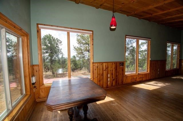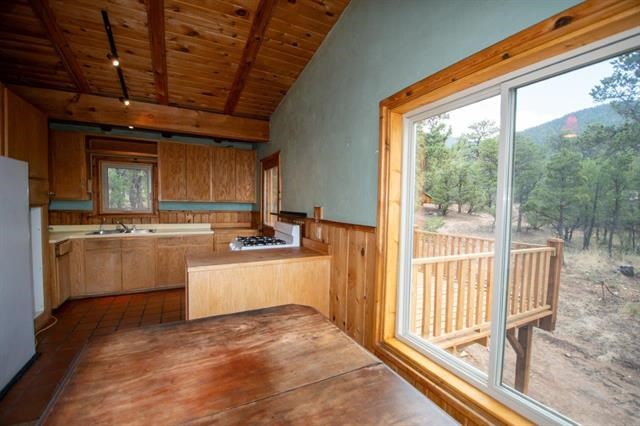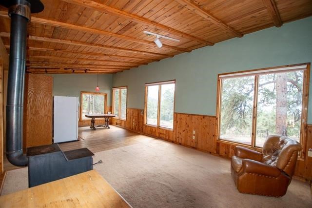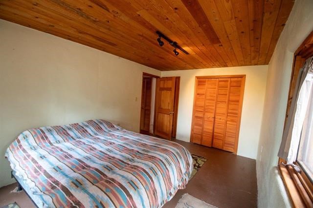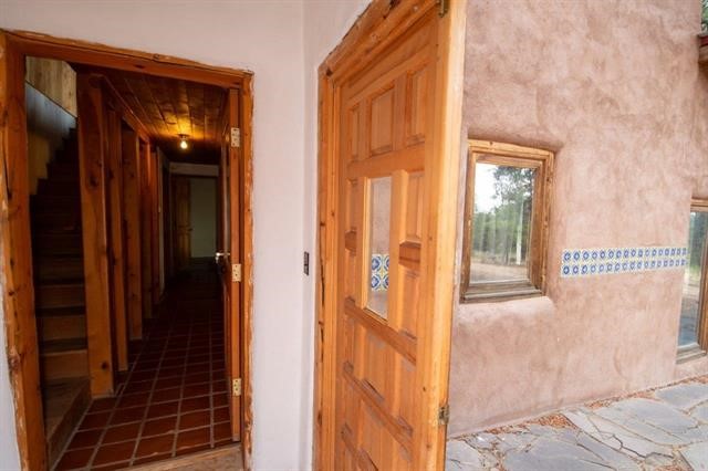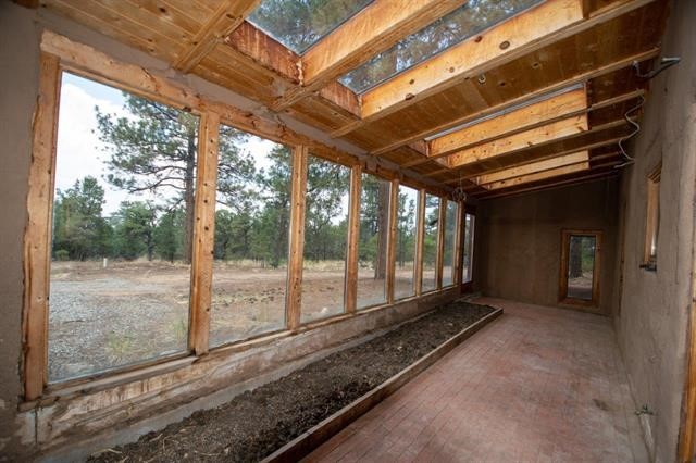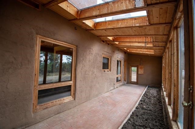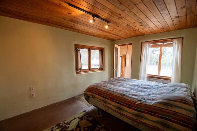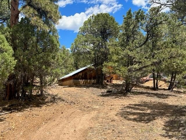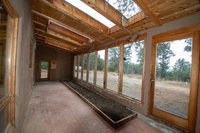 Discover serenity and rustic charm in this unique two-story pumice-crete and frame constructed southwestern-style home nestled on 4.99acres of pristine forest in Valdez, bordering the Carson National Forest. Situated atop a ridge, this southwestern territorial style home offers panoramic views of the valley and the majestic mountains beyond, allowing you to immerse yourself in the beauty of nature. Passive solar orientation ensures energy efficiency and a harmonious connection with the environment. The in-floor radiant heating(downstairs) adds to your comfort, making every corner of the 1342 sq. ft., 2-bedroom, 1-bathroom living space welcoming. Concrete, wood, and carpeted floors create a blend of modern functionality and rustic appeal. The open kitchen/dining/living area on the 2nd story is the heart of the home, features a functional layout and a convenient door leading to an elevated deck. From this vantage point, soak in the breathtaking landscape that stretches before you. The home's thoughtful simple design incorporates a pro-panel roof and on-demand domestic water heater to complement mountain living. Warm up during cooler months by the wood stove while admiring the views through strategically placed windows. Embrace green living with the attached 300 sq.ft. greenhouse sunroom, a perfect space to nurture plants and enjoy year-round sun-soaked tranquility. An additional 20x20x8 detached storage room/cistern provides ample storage options, enhancing the practicality of the property. While the home features a certain funky rustic charm, it holds vast potential for customization and transformation. The property's extra acreage invites you to expand your dreams, whether it's building another home, a garage, or a workshop. Partial fencing lends privacy, making it an ideal setting for horse enthusiasts or those seeking to explore the outdoors via mountain biking, hiking, or other recreational activities on the nearby public lands and trail systems. This home is not just a dwelling; it's an invitation to embrace the Southwest's allure, forge a connection with the land, and embark on a journey of discovery and fulfillment. Convenient access to Taos Ski Valley.