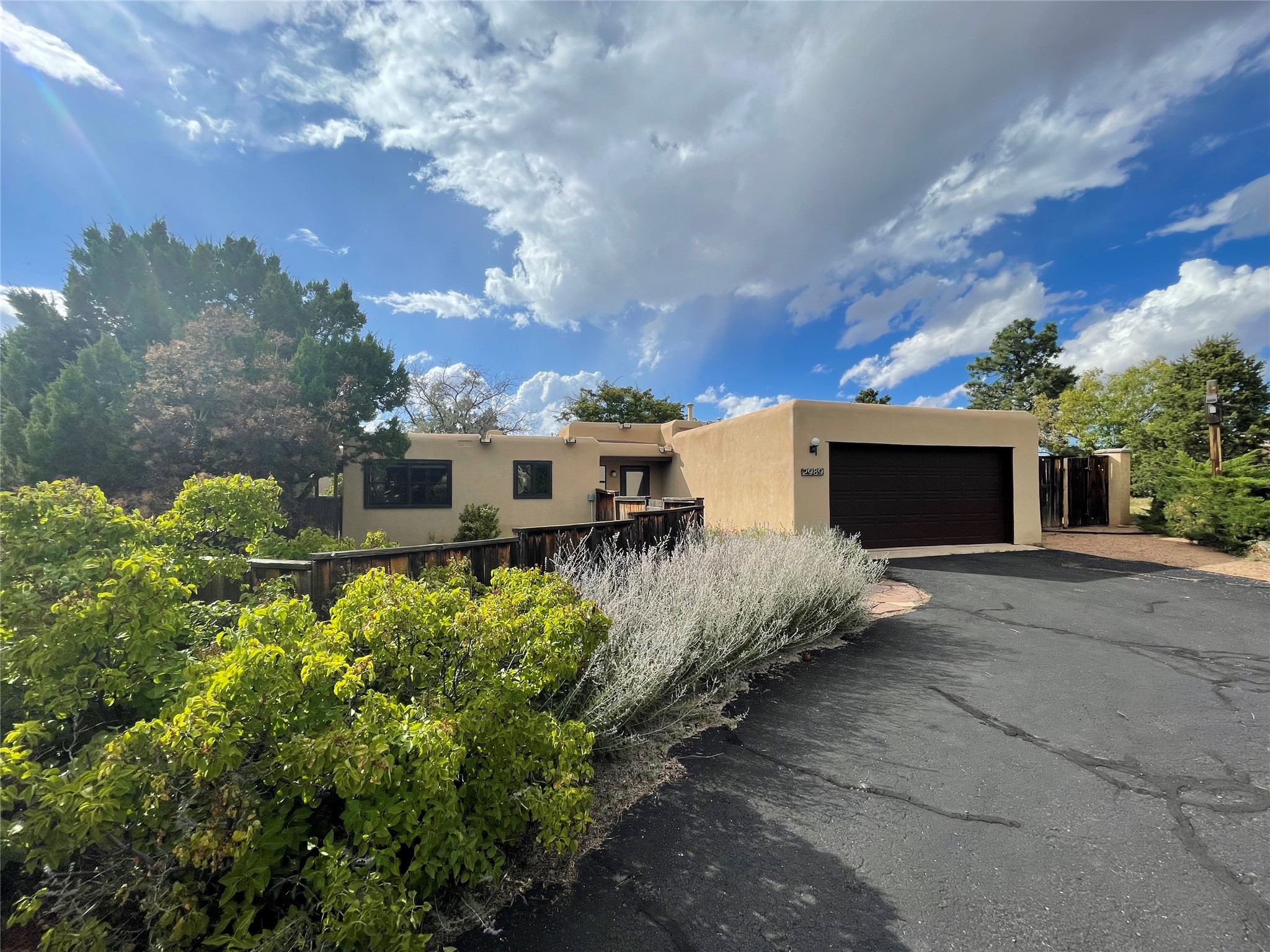 BACK ON MARKET, no fault of the seller! Nestled at the end of a very quiet cul de sac, you will find this well-kept Park Plaza home. This 1895 sq ft, free-standing, single level, 3 bedroom, 2 bathroom comes with an additional home office.As soon as you enter the home, you will notice the beautifullywarm wooden floors and white-washed wooden beamedceilings in the living room, dining room, and kitchen nook that give the open floor plan a warm and rustic feel. The spacious, well-lighted living room with a wood-burning fireplace opens up to the large covered portal and a fenced landscaped private garden. The stucco was recentlyredone, a newer Pella sliding door and some newer windows were installed, newer carpet, updated bathrooms, minsplit, and sprinkler system were installed in front and back yard, a new water heater in 2022, and a newer gas range and beverage cooler were installed.Just from the frontdoor, you have easy access tothe beautiful 8-mile-long walking trail system that runs around the property with open spaces, mature trees, and natural landscaping. This desirable community has much to offer for its residents, from tennis and pickleball courts, community gardens, walking/running trails, an off-leashdog park, RV storage, etc. It is conveniently located close to the state-of-the-art GCCC community center, shopping malls, restaurants, supermarkets, hospitals, and medical offices, and only 15 minutes from the Santa Fe Plaza.Come and check out this hidden communityon a natural 154 acres. You can live in a beautiful "green place" in the heart of Santa Fe.