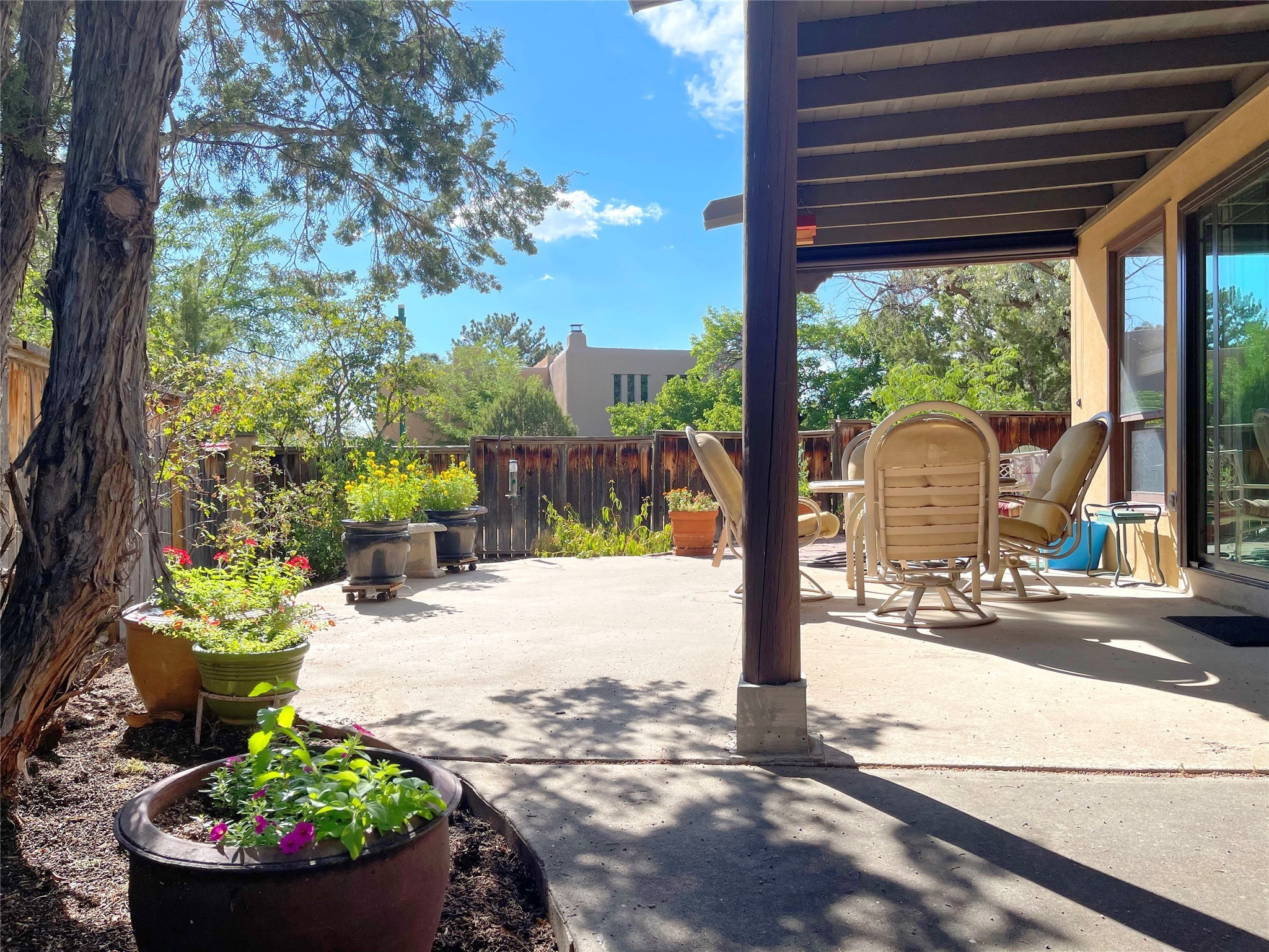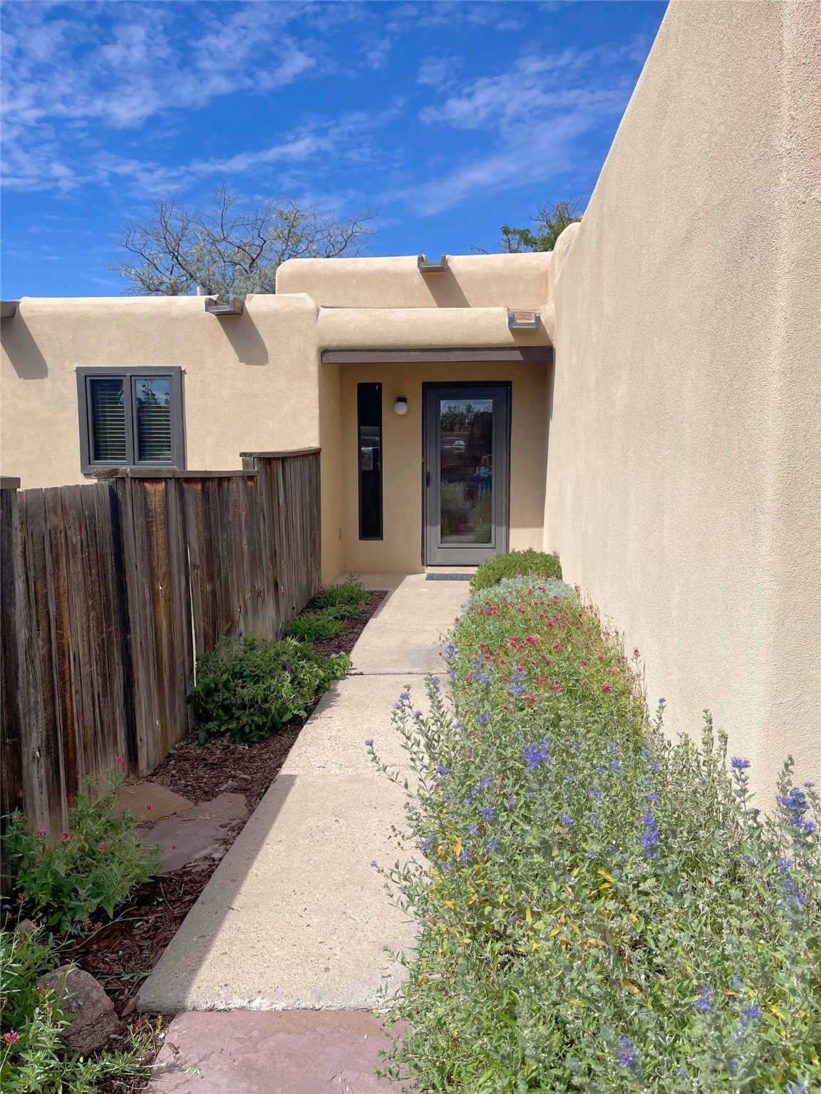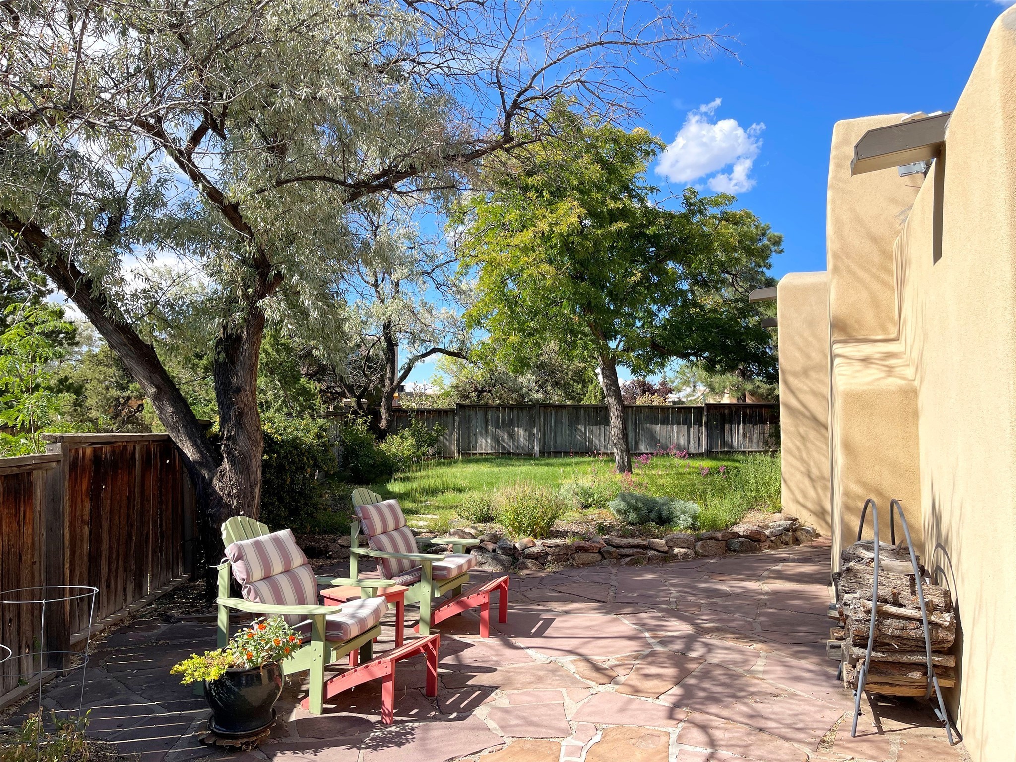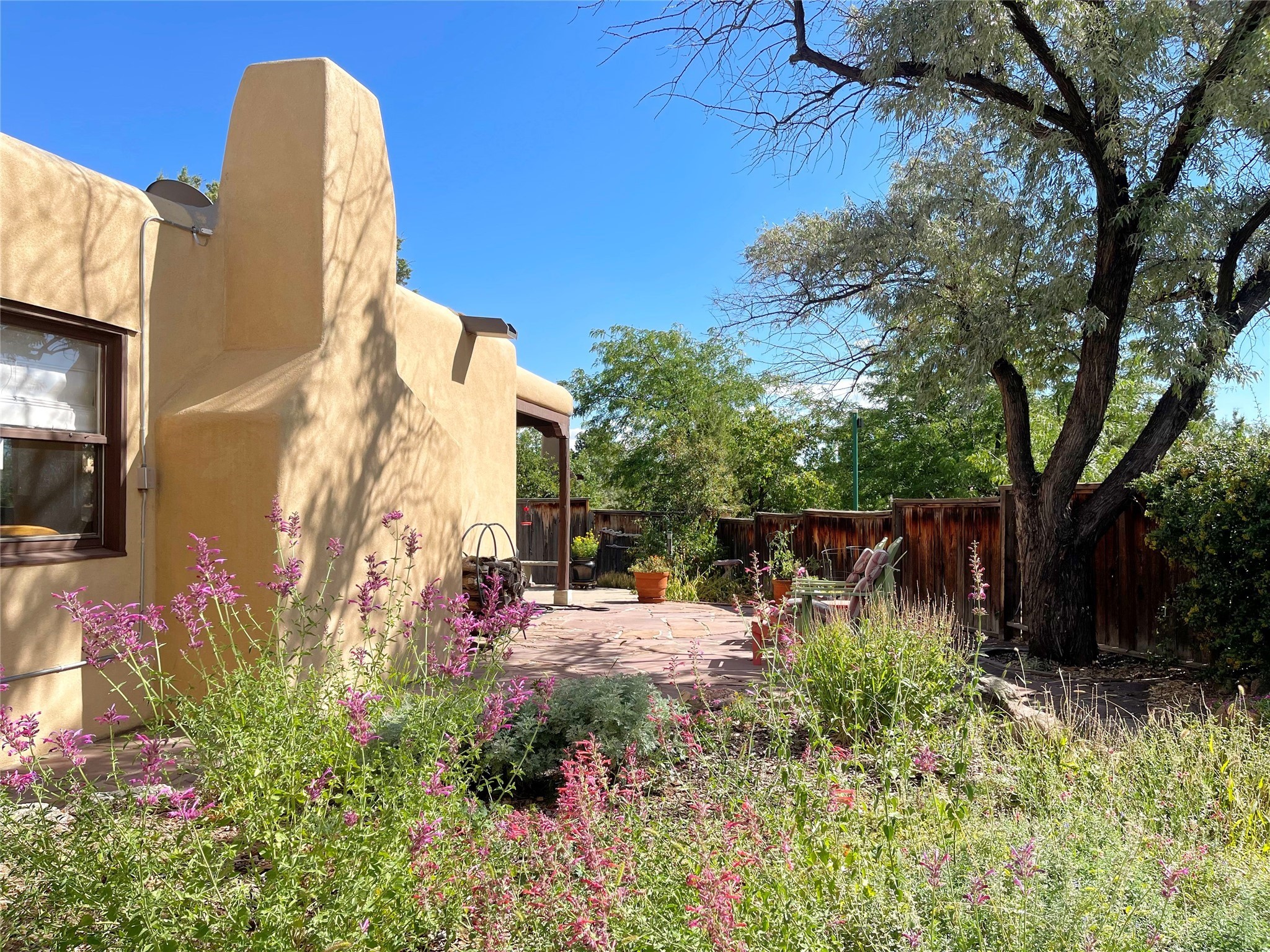 BACK ON MARKET, no fault of the seller! Nestled at the end of a very quiet cul de sac, you will find this well-kept Park Plaza home. This 1895 sq ft, free-standing, single level, 3 bedroom, 2 bathroom comes with an additional home office.As soon as you enter the home, you will notice the beautifullywarm wooden floors and white-washed wooden beamedceilings in the living room, dining room, and kitchen nook that give the open floor plan a warm and rustic feel. The spacious, well-lighted living room with a wood-burning fireplace opens up to the large covered portal and a fenced landscaped private garden. The stucco was recentlyredone, a newer Pella sliding door and some newer windows were installed, newer carpet, updated bathrooms, minsplit, and sprinkler system were installed in front and back yard, a new water heater in 2022, and a newer gas range and beverage cooler were installed.Just from the frontdoor, you have easy access tothe beautiful 8-mile-long walking trail system that runs around the property with open spaces, mature trees, and natural landscaping. This desirable community has much to offer for its residents, from tennis and pickleball courts, community gardens, walking/running trails, an off-leashdog park, RV storage, etc. It is conveniently located close to the state-of-the-art GCCC community center, shopping malls, restaurants, supermarkets, hospitals, and medical offices, and only 15 minutes from the Santa Fe Plaza.Come and check out this hidden communityon a natural 154 acres. You can live in a beautiful "green place" in the heart of Santa Fe.