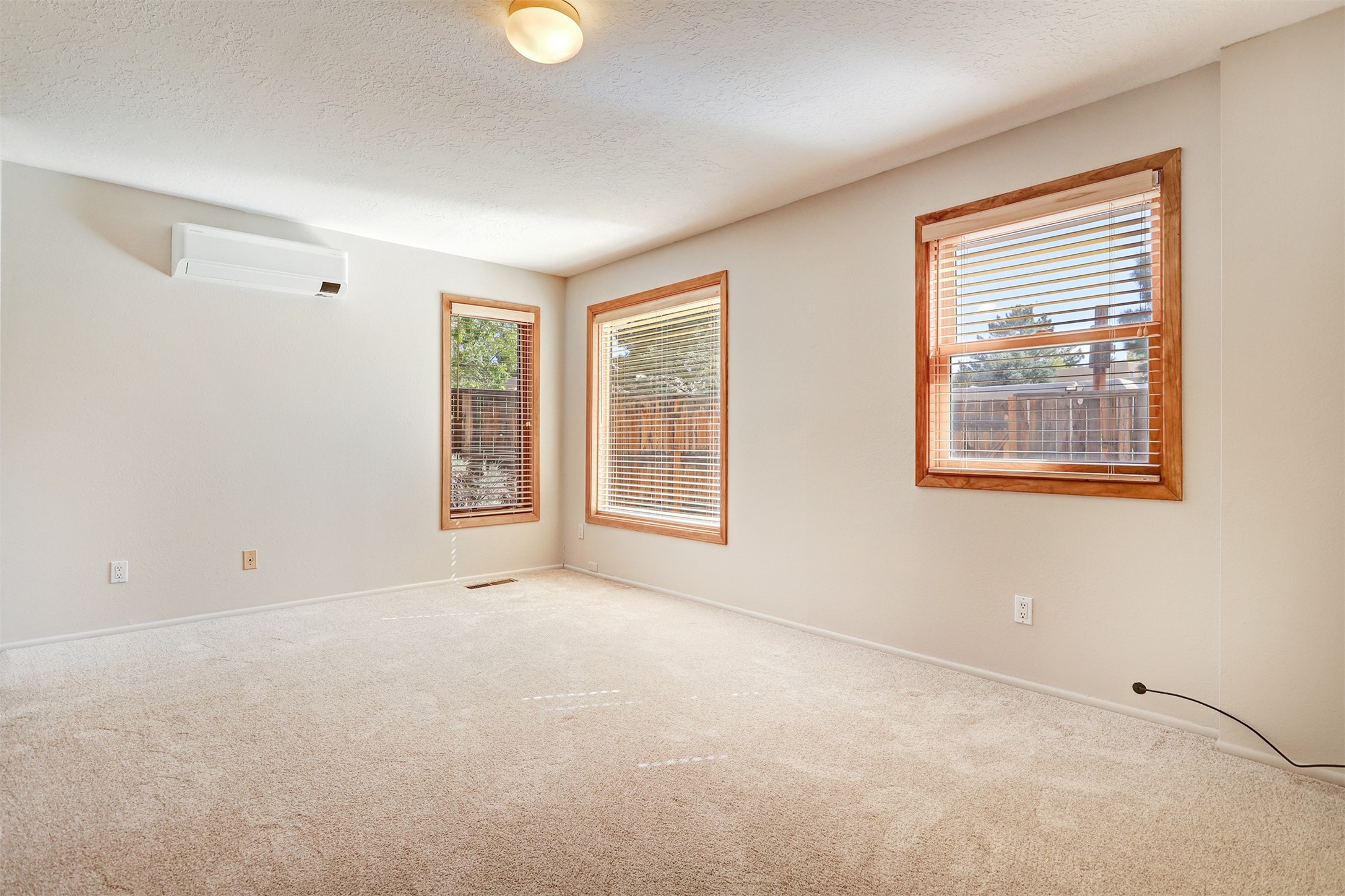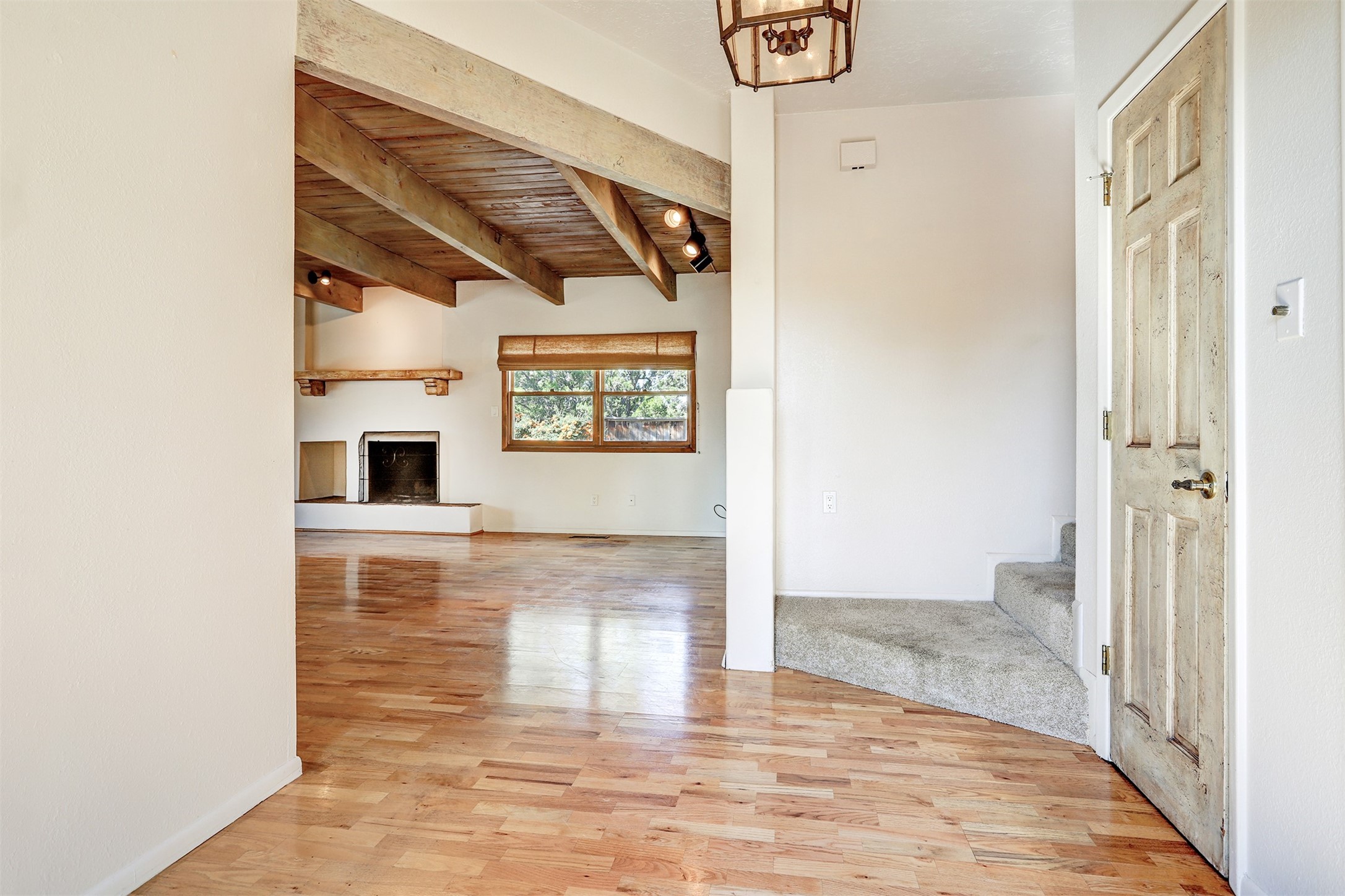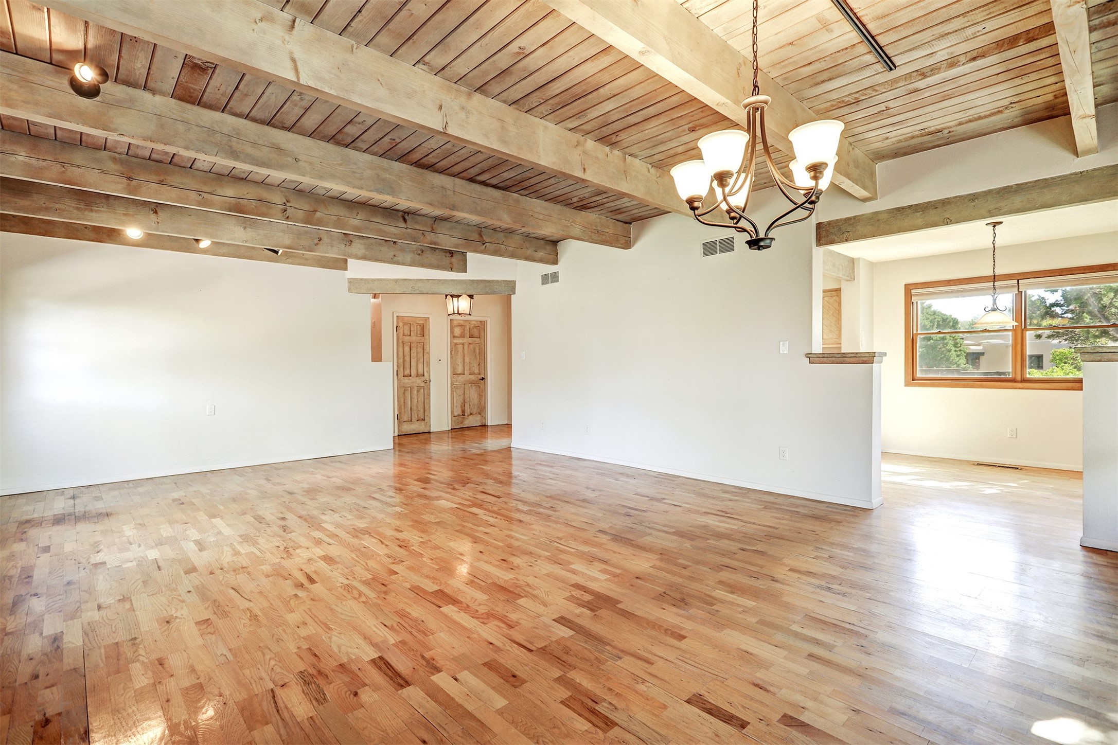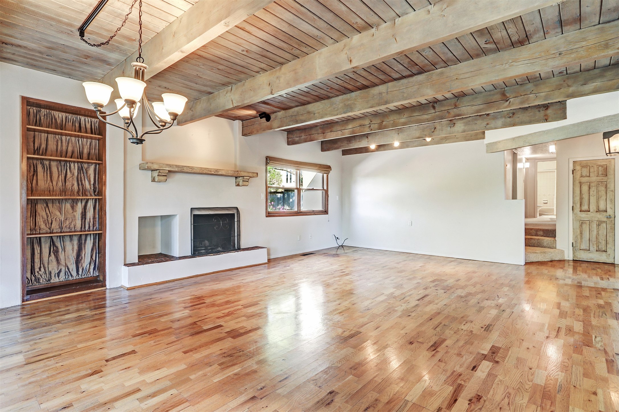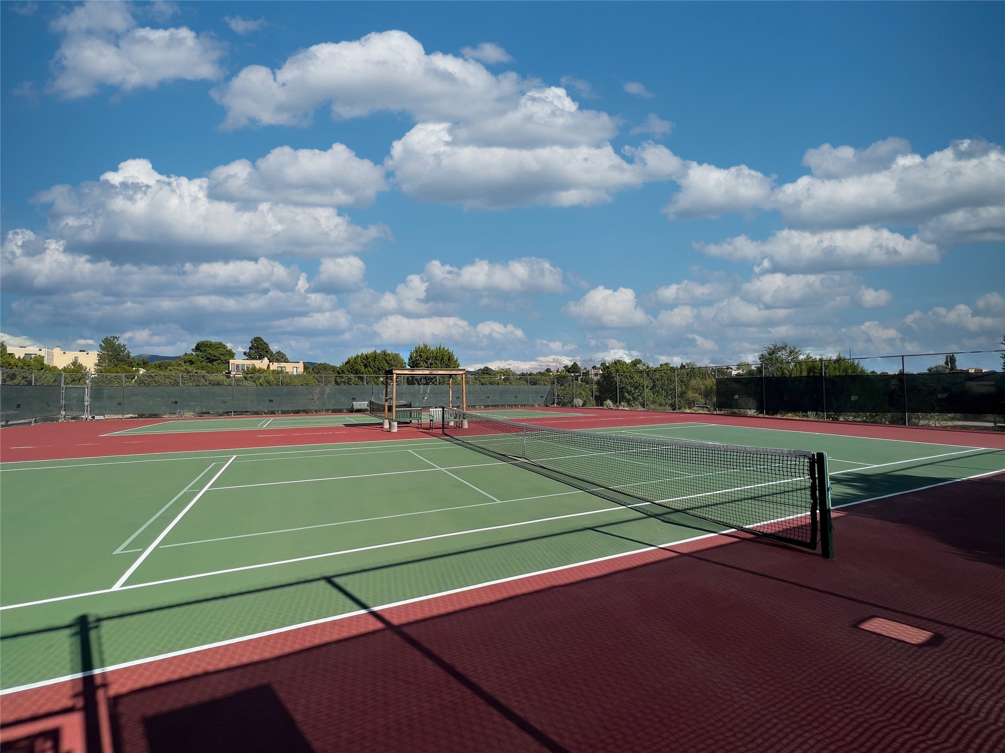 BACK ON MARKET, no fault of the seller! Nestled at the end of a very quiet cul de sac, you will find this well-kept Park Plaza home. This 1895 sq ft, free-standing, single level, 3 bedroom, 2 bathroom comes with an additional home office.As soon as you enter the home, you will notice the beautifullywarm wooden floors and white-washed wooden beamedceilings in the living room, dining room, and kitchen nook that give the open floor plan a warm and rustic feel. The spacious, well-lighted living room with a wood-burning fireplace opens up to the large covered portal and a fenced landscaped private garden. The stucco was recentlyredone, a newer Pella sliding door and some newer windows were installed, newer carpet, updated bathrooms, minsplit, and sprinkler system were installed in front and back yard, a new water heater in 2022, and a newer gas range and beverage cooler were installed.Just from the frontdoor, you have easy access tothe beautiful 8-mile-long walking trail system that runs around the property with open spaces, mature trees, and natural landscaping. This desirable community has much to offer for its residents, from tennis and pickleball courts, community gardens, walking/running trails, an off-leashdog park, RV storage, etc. It is conveniently located close to the state-of-the-art GCCC community center, shopping malls, restaurants, supermarkets, hospitals, and medical offices, and only 15 minutes from the Santa Fe Plaza.Come and check out this hidden communityon a natural 154 acres. You can live in a beautiful "green place" in the heart of Santa Fe.