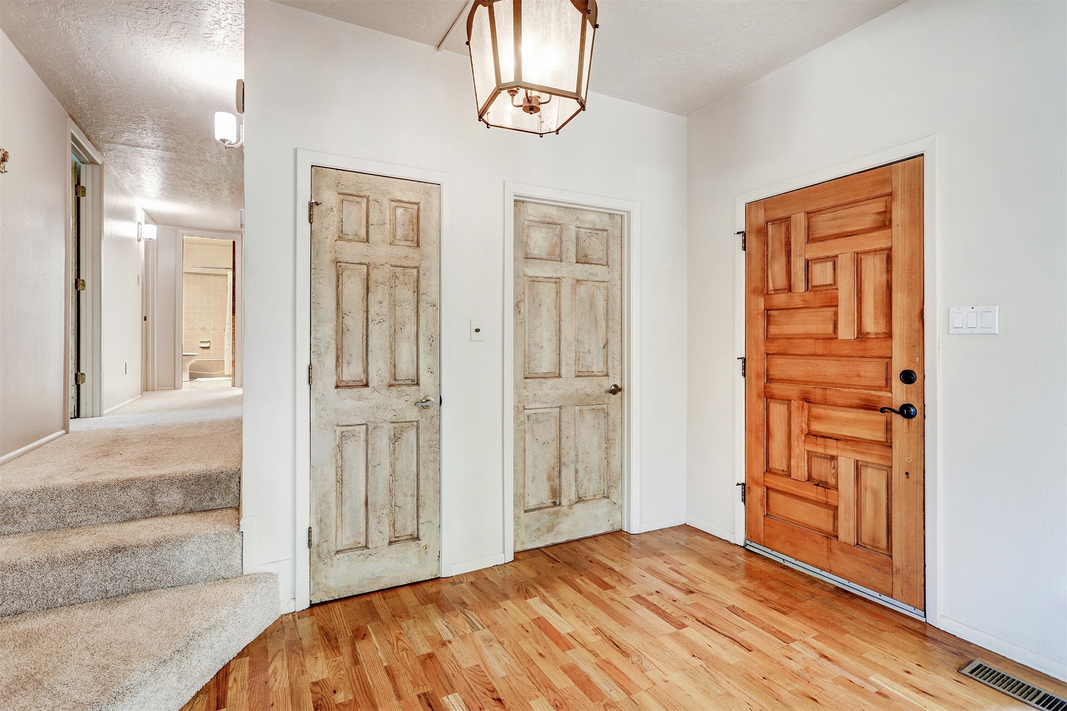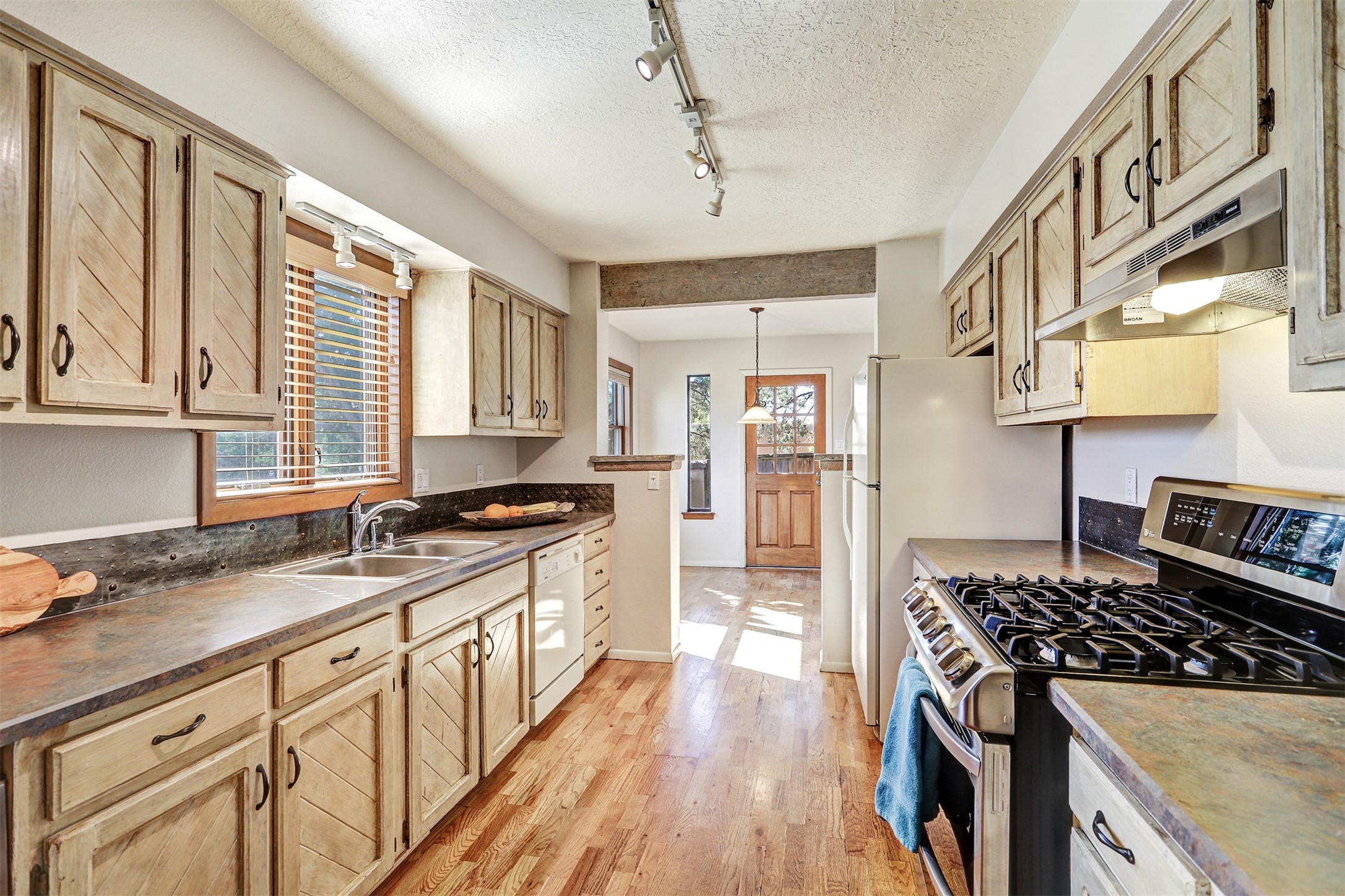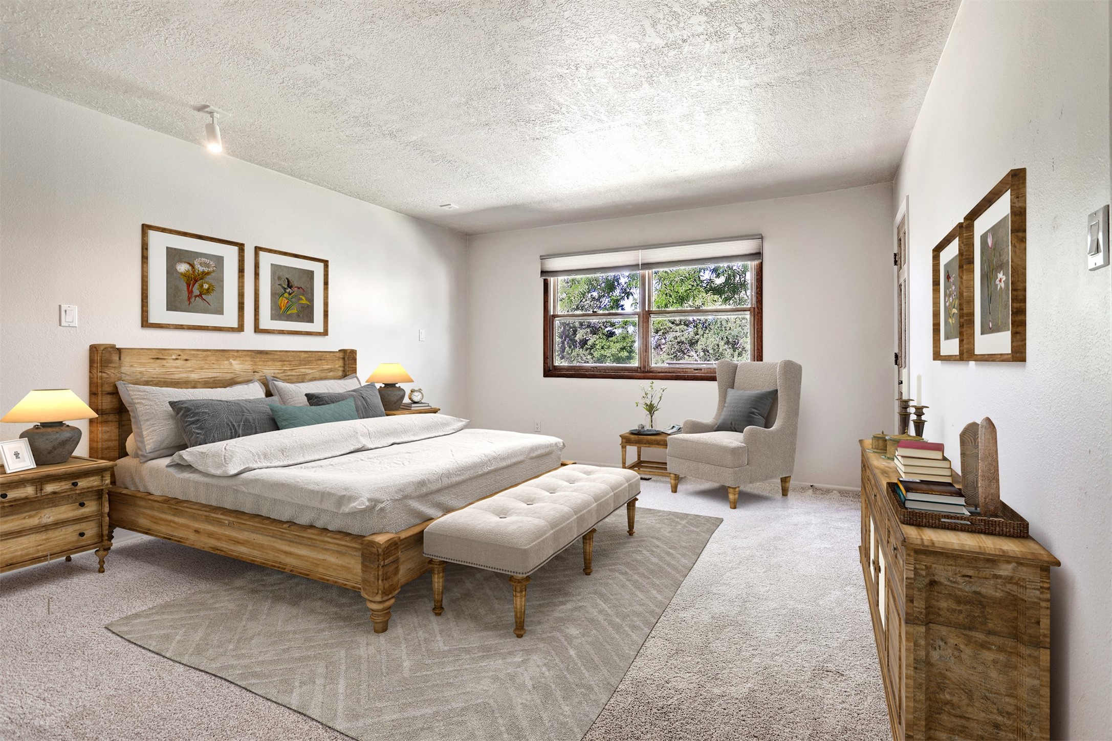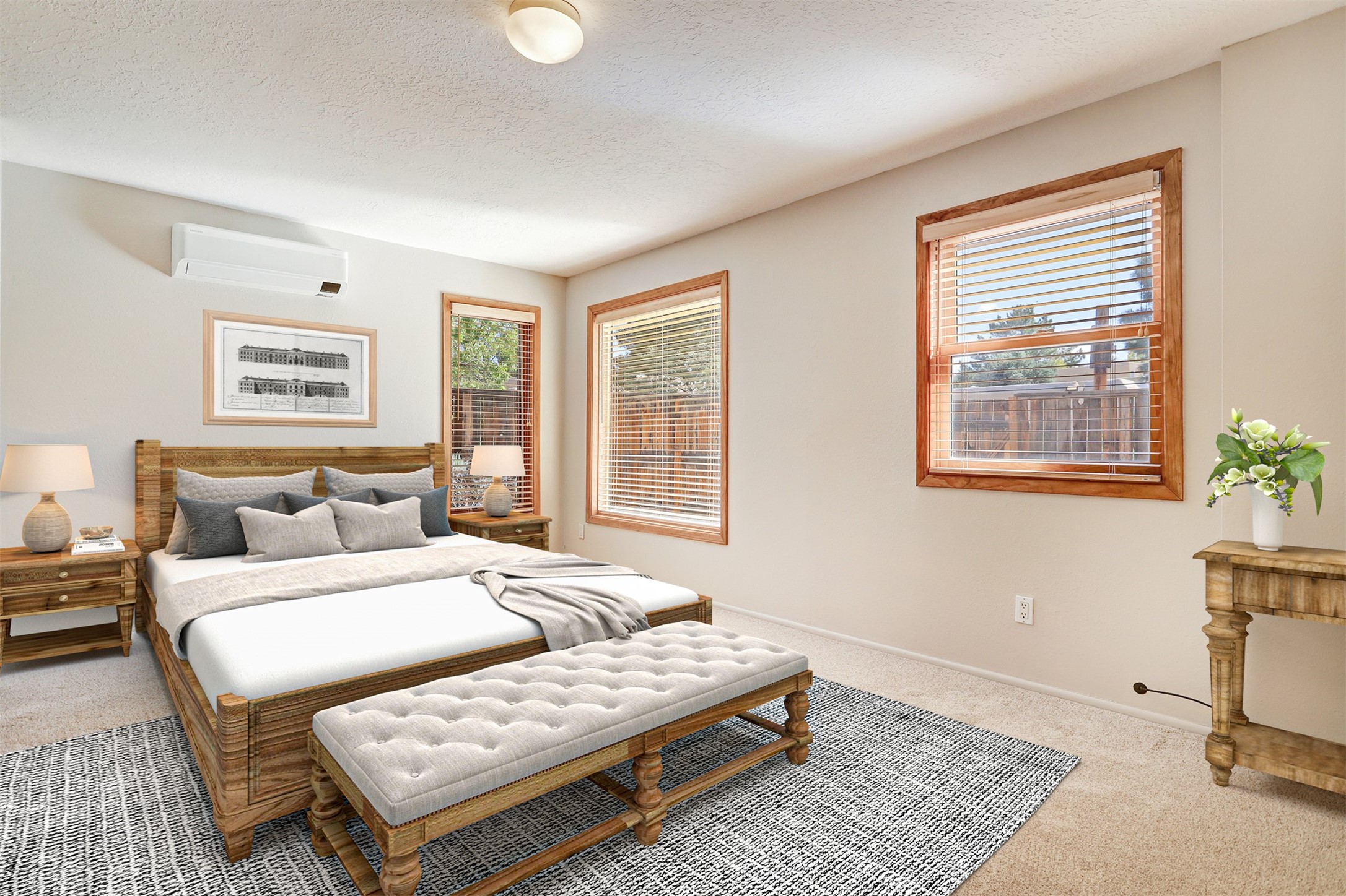 BACK ON MARKET, no fault of the seller! Nestled at the end of a very quiet cul de sac, you will find this well-kept Park Plaza home. This 1895 sq ft, free-standing, single level, 3 bedroom, 2 bathroom comes with an additional home office.As soon as you enter the home, you will notice the beautifullywarm wooden floors and white-washed wooden beamedceilings in the living room, dining room, and kitchen nook that give the open floor plan a warm and rustic feel. The spacious, well-lighted living room with a wood-burning fireplace opens up to the large covered portal and a fenced landscaped private garden. The stucco was recentlyredone, a newer Pella sliding door and some newer windows were installed, newer carpet, updated bathrooms, minsplit, and sprinkler system were installed in front and back yard, a new water heater in 2022, and a newer gas range and beverage cooler were installed.Just from the frontdoor, you have easy access tothe beautiful 8-mile-long walking trail system that runs around the property with open spaces, mature trees, and natural landscaping. This desirable community has much to offer for its residents, from tennis and pickleball courts, community gardens, walking/running trails, an off-leashdog park, RV storage, etc. It is conveniently located close to the state-of-the-art GCCC community center, shopping malls, restaurants, supermarkets, hospitals, and medical offices, and only 15 minutes from the Santa Fe Plaza.Come and check out this hidden communityon a natural 154 acres. You can live in a beautiful "green place" in the heart of Santa Fe.