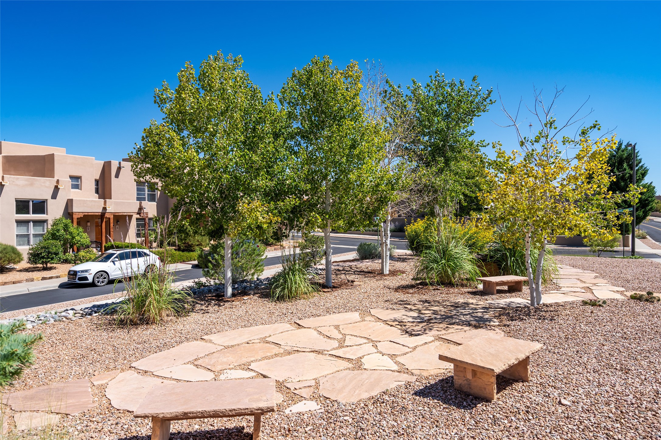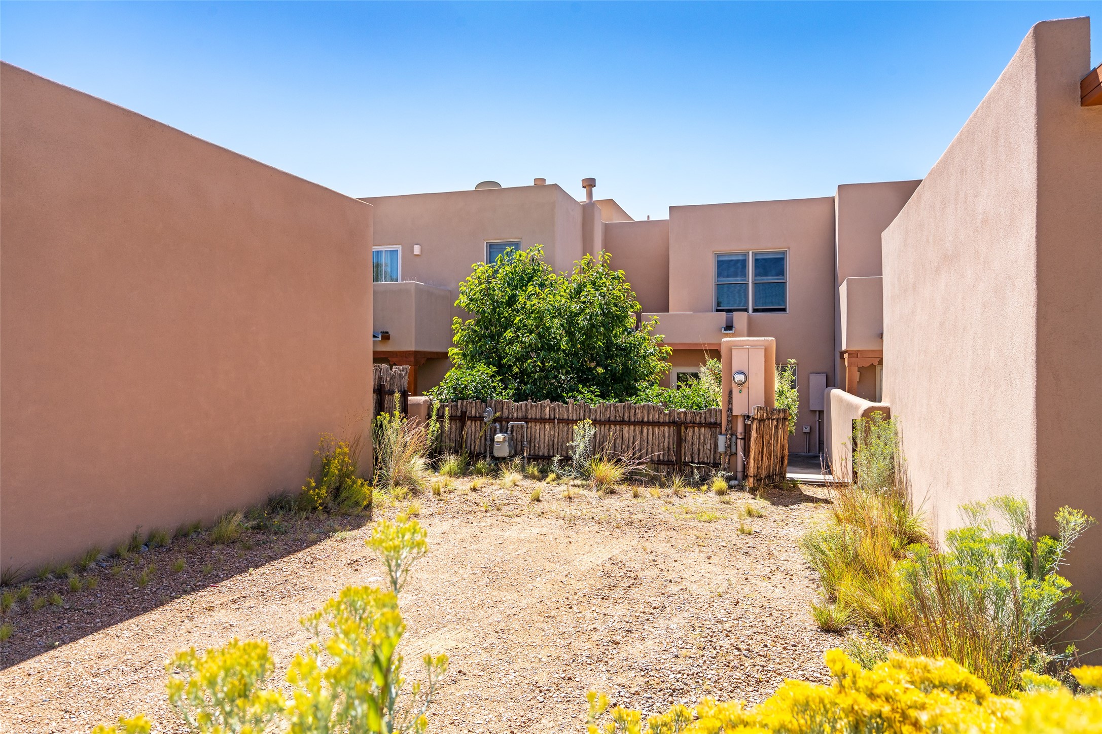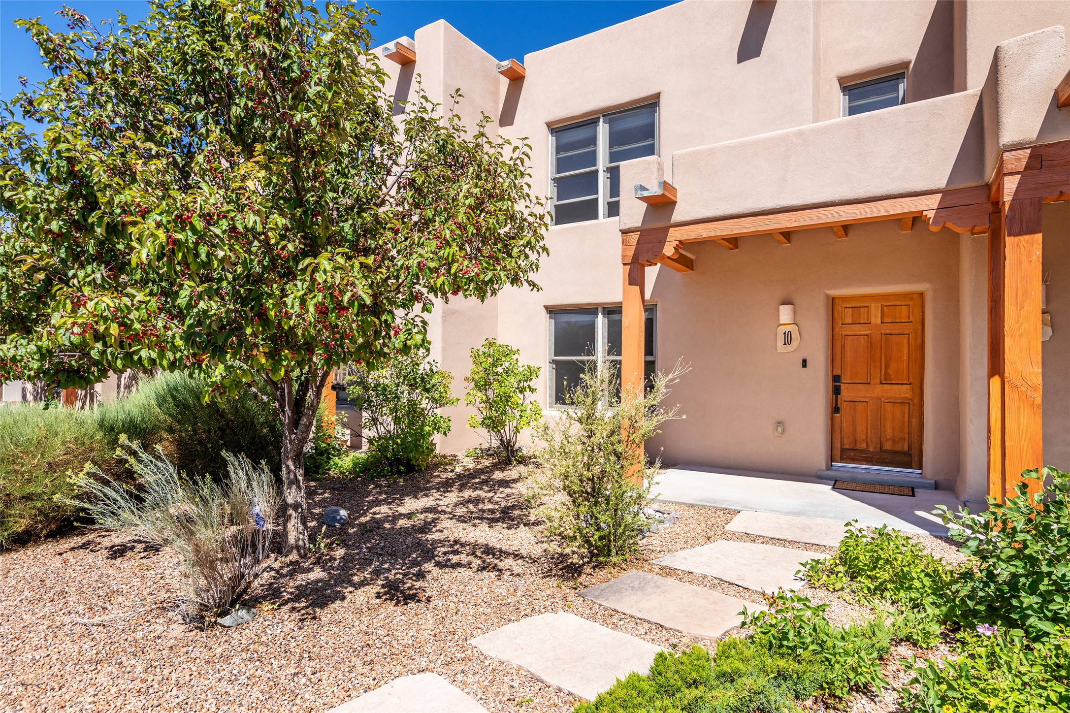 Adorable townhome in Aldea, awaiting its new owners! Introducing 10 Calle Plazuela, a 2-bedroom, 1.5 bathroom townhome nestled in the heart of Aldea de Santa Fe. Located 8 miles from the historical Santa Fe Plaza, this property presents an exceptional opportunity to live in a vibrant community surrounded by natural beauty and a plethora of amenities. As you step inside, you are greeted by an open and airy floor plan, thoughtfully designed to maximize space and functionality. On the main floor, enter an inviting living area, kitchen, bathroom, and laundry room with new floors and freshly painted walls. Upstairs, you will find both bedrooms with brand new carpet, an abundance of natural light and beautiful evening sunset views from the front bedroom. From the kitchen into the backyard is a courtyard with mature trees, including an apple tree. A private patio awaits, ideal for al fresco dining or enjoying a morning cup of coffee. The meticulously landscaped courtyard offers a serene retreat where you can relax and rejuvenate amidst the picturesque surroundings. 10 Calle Plazuela is ideally located within the desirable Aldea community, known for its stunning views, 13 miles of walking trails, and a sense of tranquility. Aldea residents enjoy access to a community event plaza, clubhouse, tennis courts, and basketball courts, fostering a sense of community and an active lifestyle. Schedule a tour today!