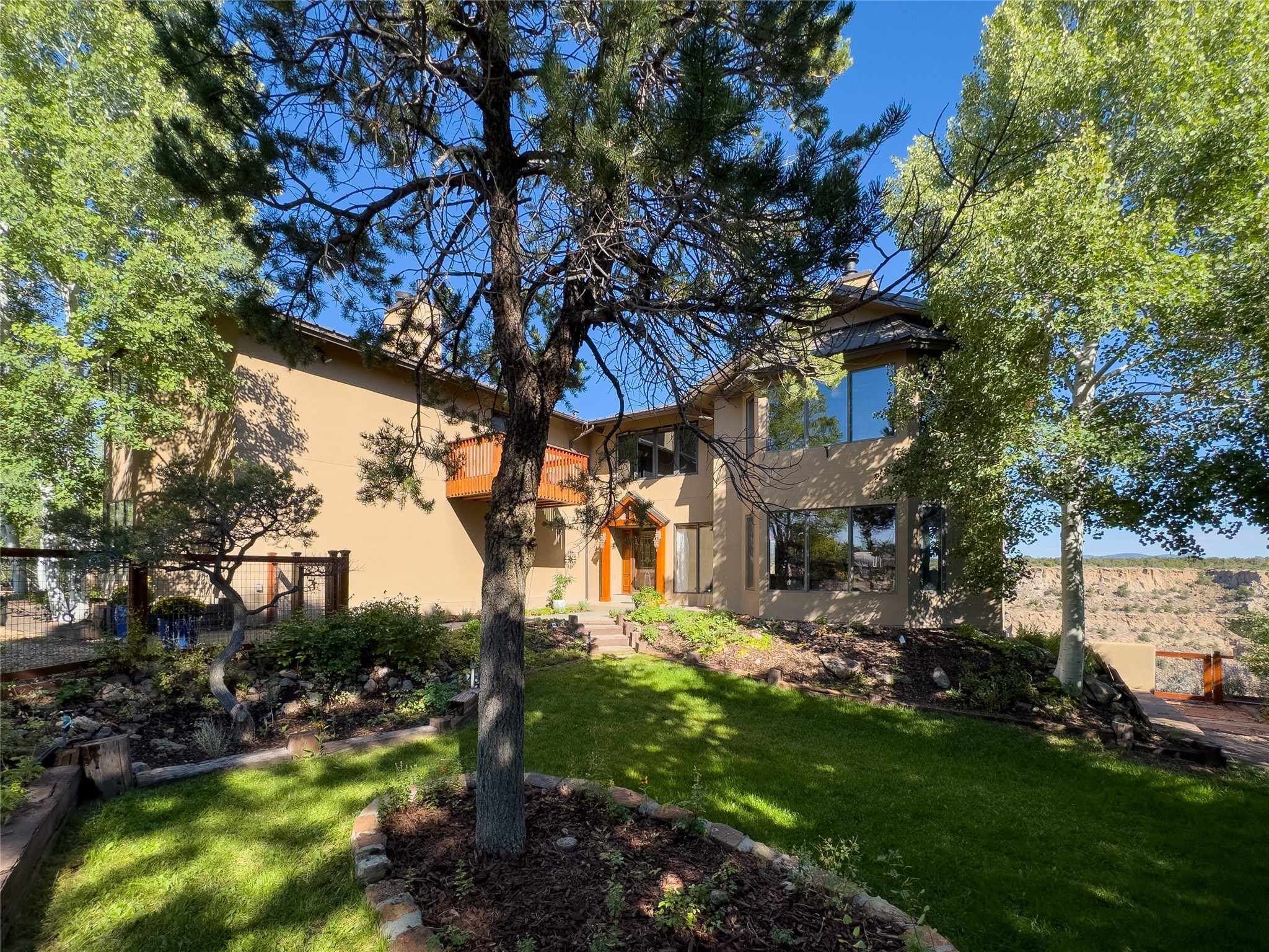 Expansive views of the Sangre De Cristos mountains and morning sunrises is just the beginning of the story about this beautiful custom home. An elegantly warm designed home with cathedral beamed ceilings in the large family room with built in bookshelves and a sitting area that feels as if you are sitting right on the canyon. Large beams accent the living space with rich wood floors and separate entertaining spaces. The large kitchen features, painted cabinets, center island with eat at bar, granite countertops, eat in breakfast nook, double ovens, tons of cabinets and counter space. It is definitely the heart of the home. Off the kitchen you have french doors out to the deck where barbecuing and dinner entertaining are a must while watching the sunset on the canyon. A main level bedroom with its own bathroom is a nice features of this home and upstairs lends itself to a loft area and office area with another outdoor sitting area, two large additional bedrooms with walk in closets and a beautifully designed full bathroom that feeds both bedrooms. The owners suite is nicely situated with an additional deck, two large closets, an amazing bathroom suite with a soaking tub and a large separate shower, it feels like you are at a spa. Don't forget the downstairs walk out basement with tons of room, extra 5th bedroom and a designer bathroom. Every detail of this home was thoughtfully designed and the 3 car garage lends to extra workshop space and there is room for RV parking on the driveway with an additional circular driveway for easy access to the entry. This is a special home and is really a must see for those that desire views, location and wildlife with plenty of room for all.