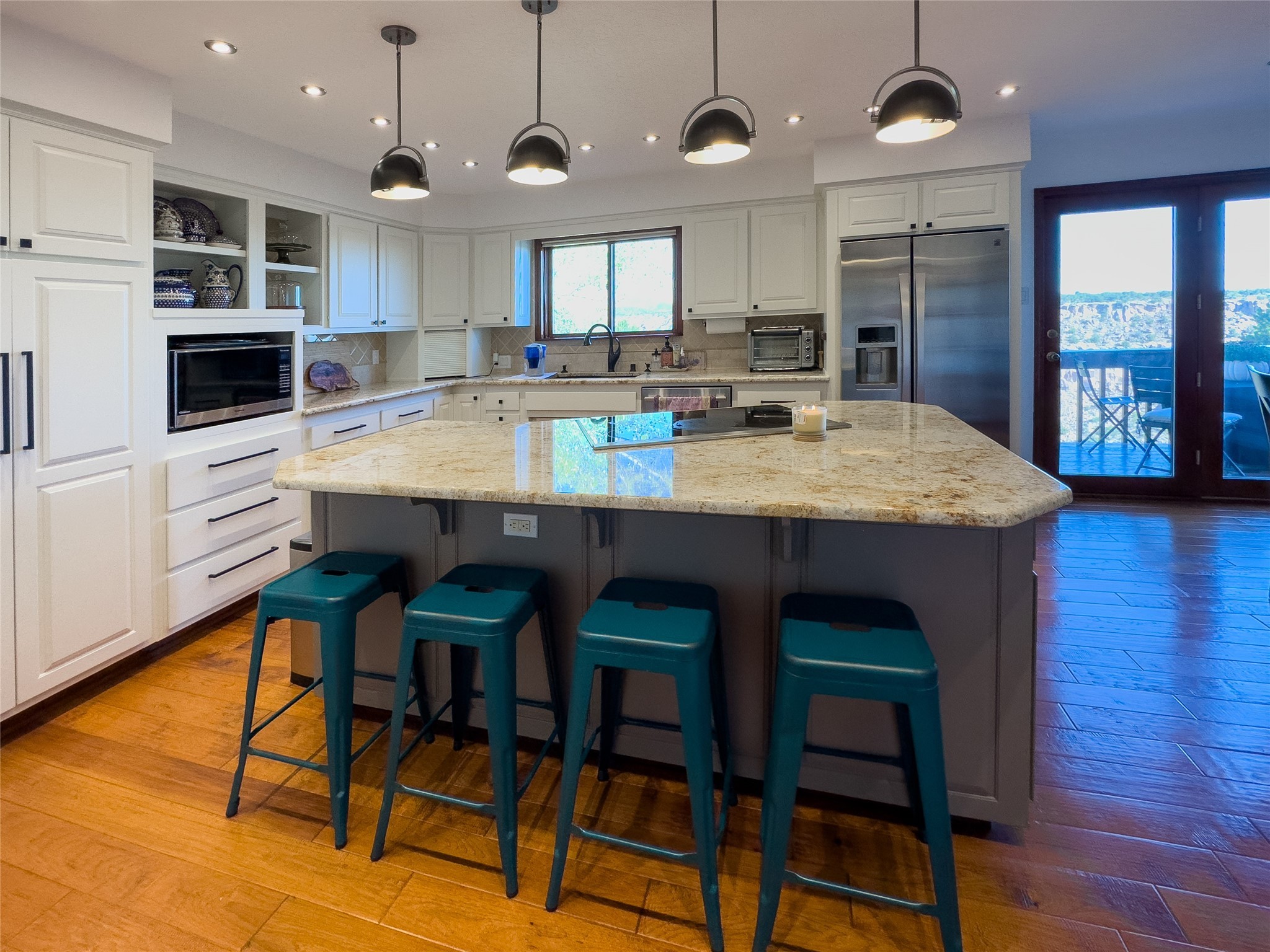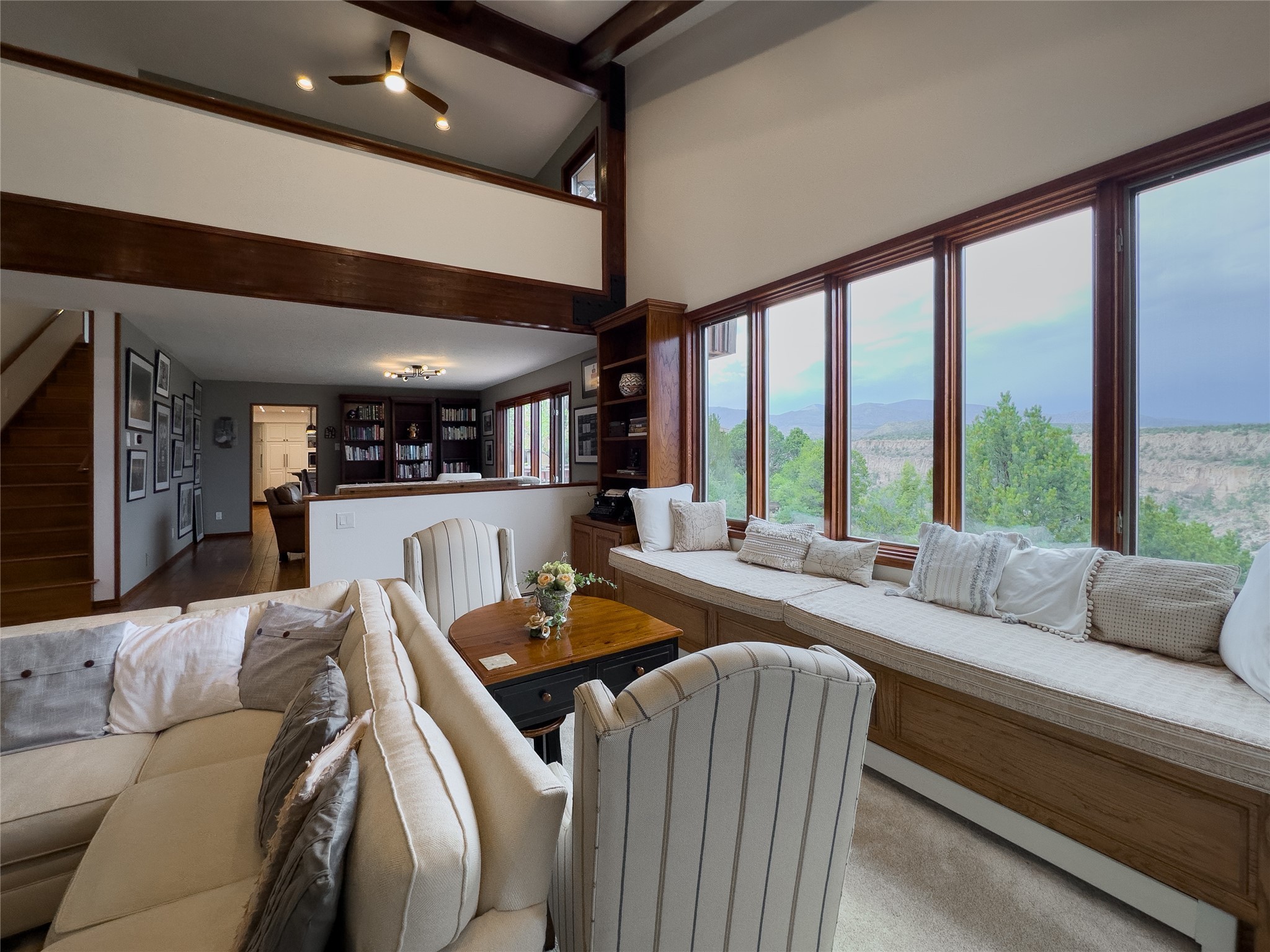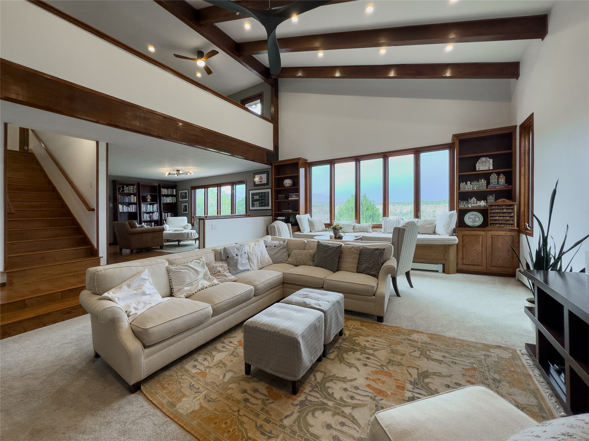 Expansive views of the Sangre De Cristos mountains and morning sunrises is just the beginning of the story about this beautiful custom home. An elegantly warm designed home with cathedral beamed ceilings in the large family room with built in bookshelves and a sitting area that feels as if you are sitting right on the canyon. Large beams accent the living space with rich wood floors and separate entertaining spaces. The large kitchen features, painted cabinets, center island with eat at bar, granite countertops, eat in breakfast nook, double ovens, tons of cabinets and counter space. It is definitely the heart of the home. Off the kitchen you have french doors out to the deck where barbecuing and dinner entertaining are a must while watching the sunset on the canyon. A main level bedroom with its own bathroom is a nice features of this home and upstairs lends itself to a loft area and office area with another outdoor sitting area, two large additional bedrooms with walk in closets and a beautifully designed full bathroom that feeds both bedrooms. The owners suite is nicely situated with an additional deck, two large closets, an amazing bathroom suite with a soaking tub and a large separate shower, it feels like you are at a spa. Don't forget the downstairs walk out basement with tons of room, extra 5th bedroom and a designer bathroom. Every detail of this home was thoughtfully designed and the 3 car garage lends to extra workshop space and there is room for RV parking on the driveway with an additional circular driveway for easy access to the entry. This is a special home and is really a must see for those that desire views, location and wildlife with plenty of room for all.
