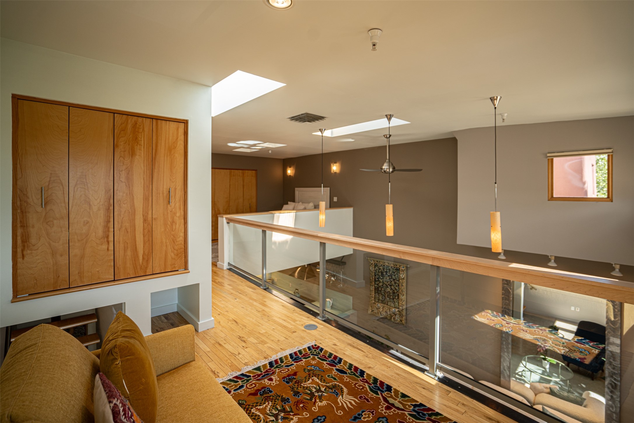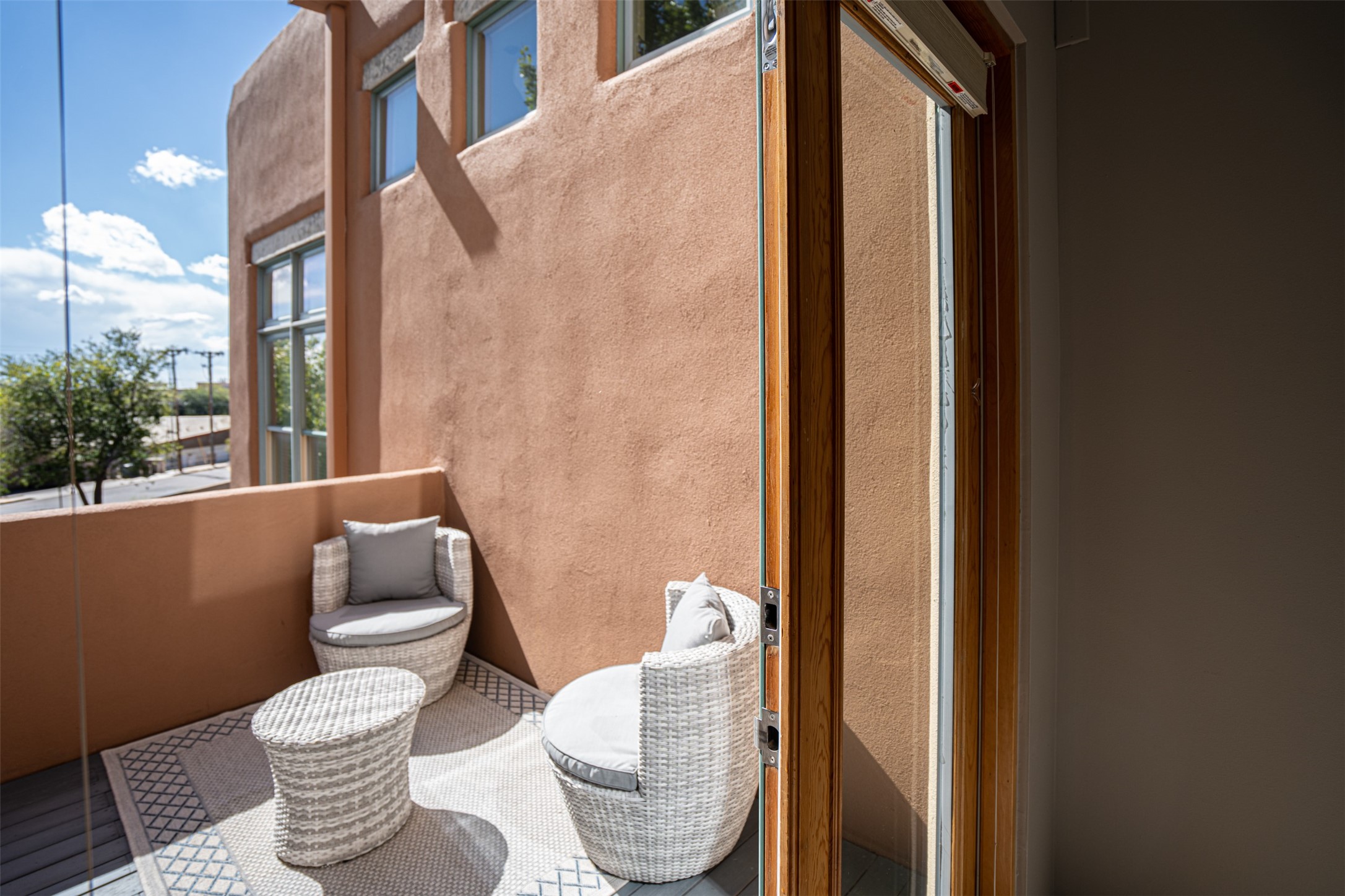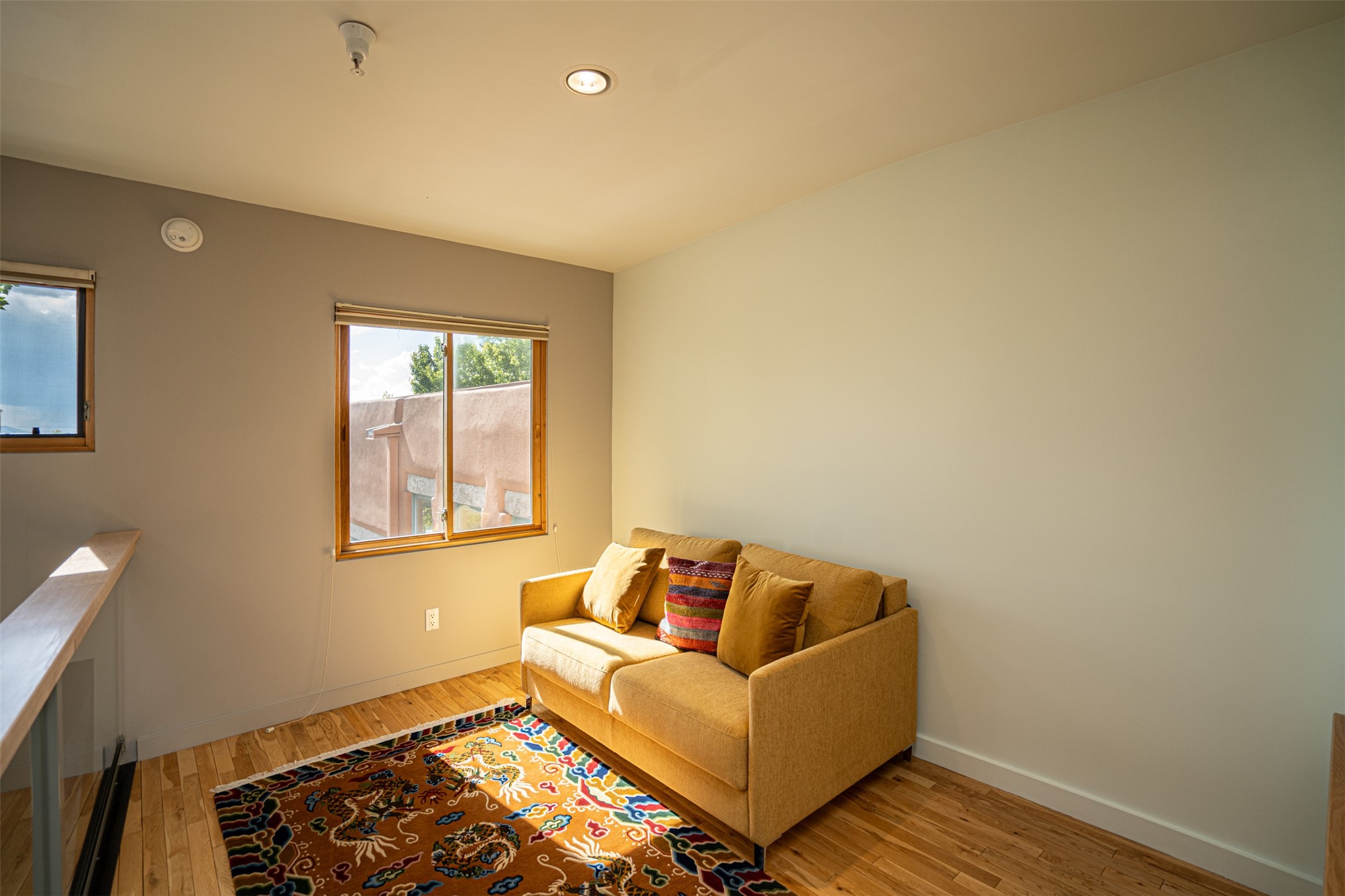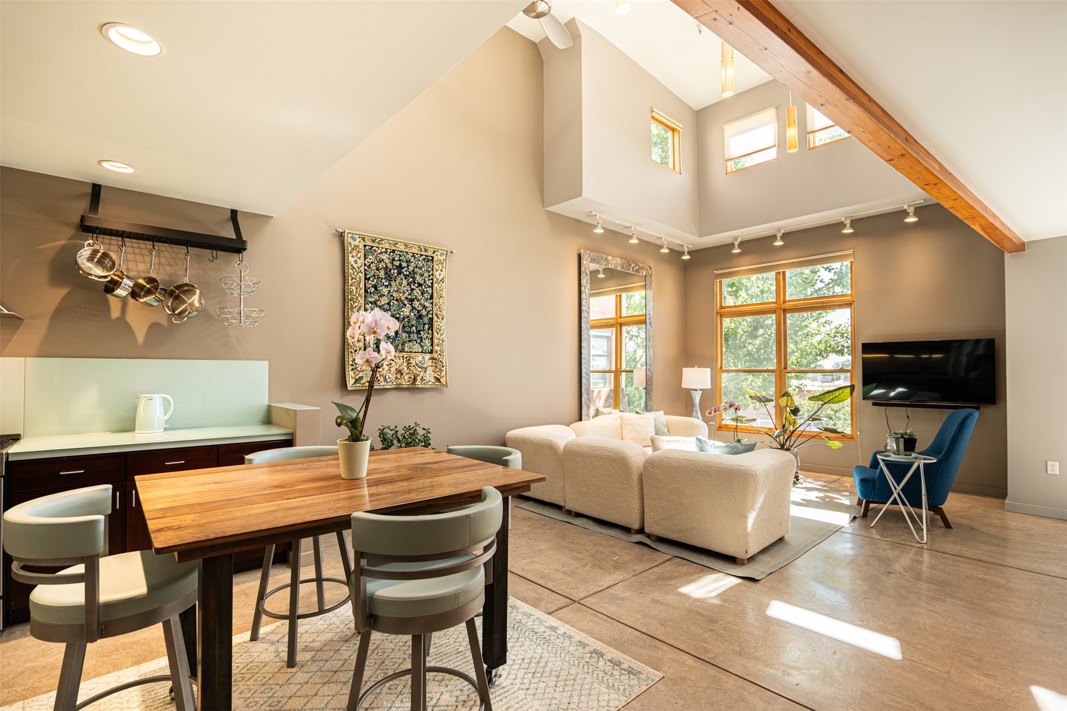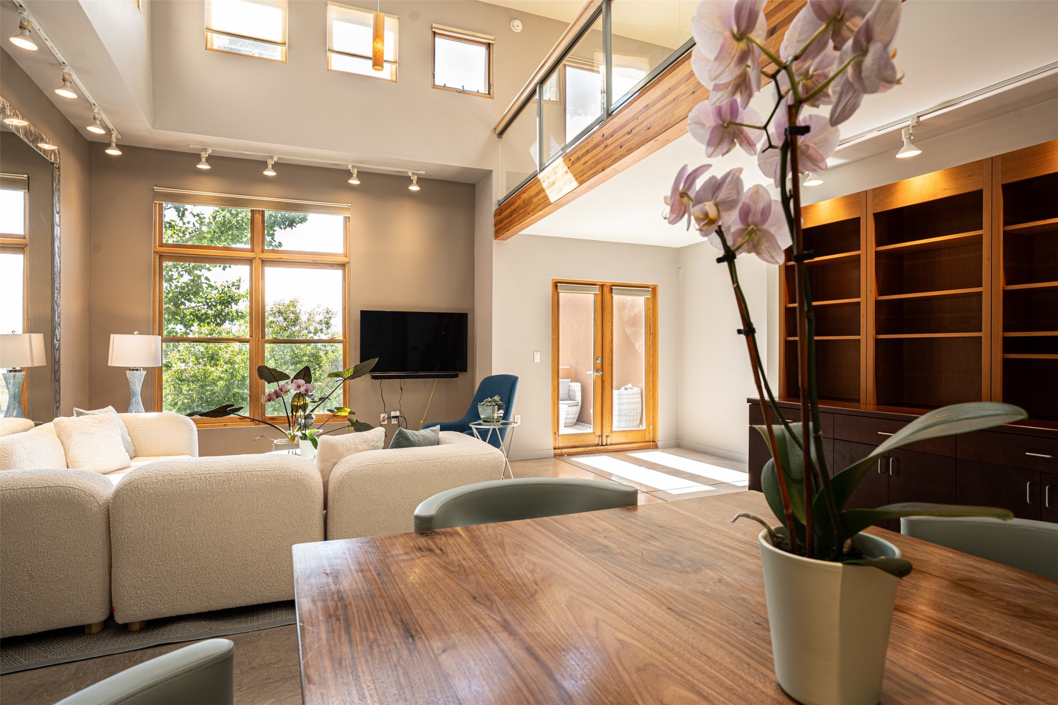 Stylish Marquez Place Loft with Abundant Sunshine! This south-facing loft have abundance of natural light. Its location is incredibly convenient, situated near the Cordova Road Corridor and the charming Guadalupe District. You'll find Trader Joe's, Clafoutis, and the Santa Fe Baking Company all within easy walking distance. The open floor plan offers versatility for both residential and mixed-use purposes. With two loft areas that can serve as bedrooms, offices, or a combination of both. This property is an excellent fit for live/work professionals or anyone seeking an exciting Santa Fe pied--terre or a second home. Sophisticated and comfortable. Nice-sized living area with contemporary kitchen cabinets and countertops. Roomy dining and living areas, with built-in shelving units for storage and display. Master suite is in the loft. Powder room downstairs; full bath upstairs. Wood floors, tons of light, and balcony provides outdoor living space. This unit is very sleek, modern and has that cool factor! Just minutes away from the historic downtown Plaza, museums, and world-class dining options!