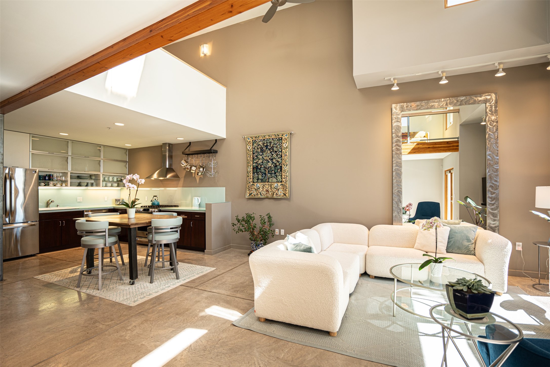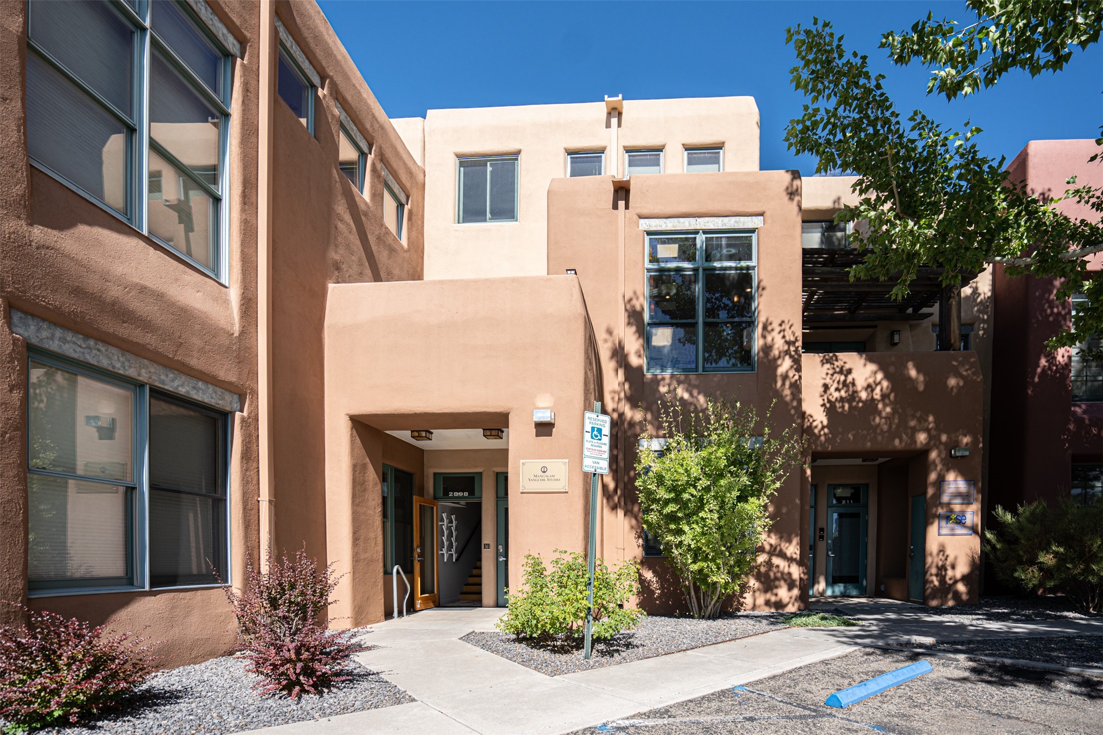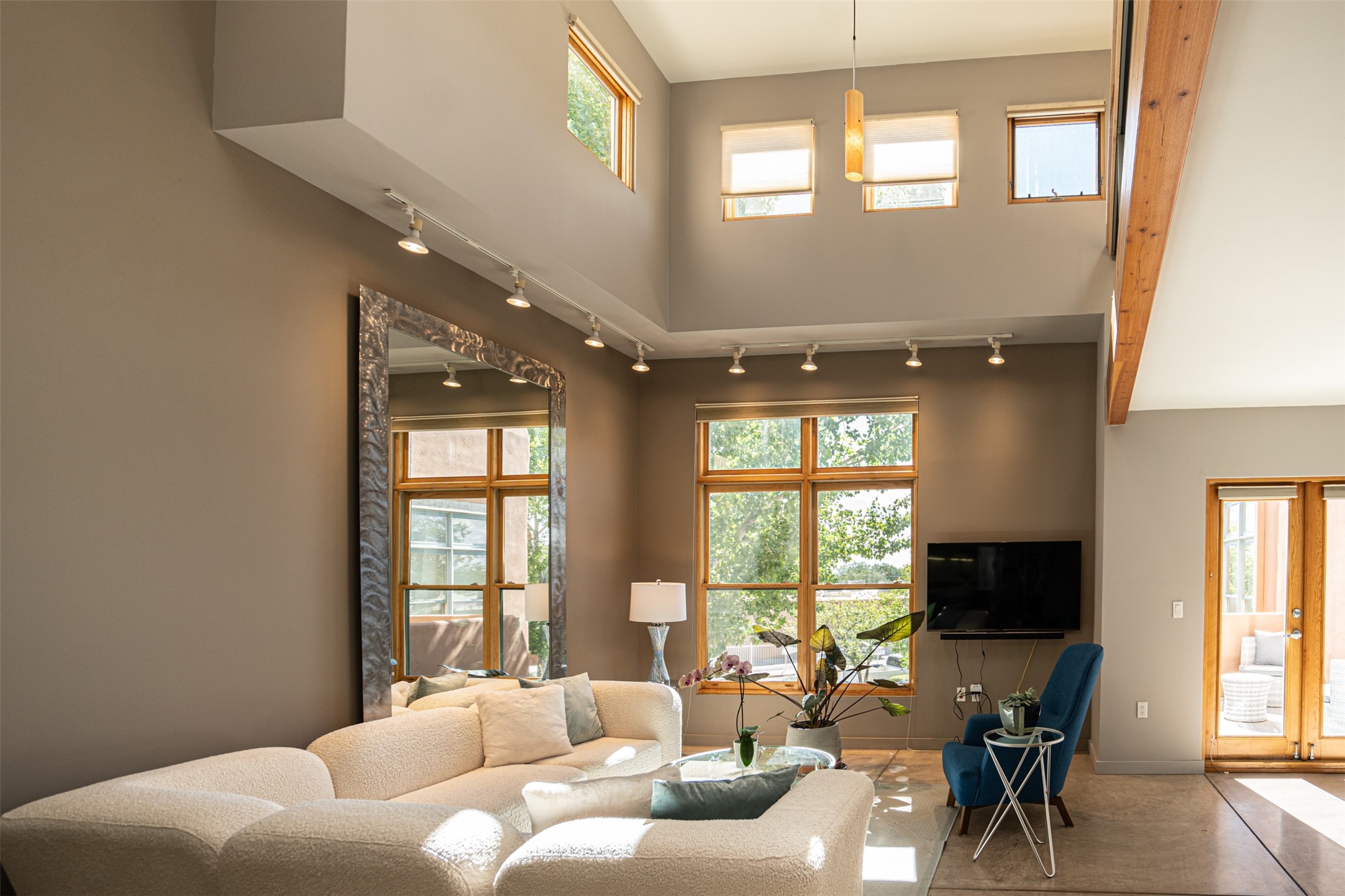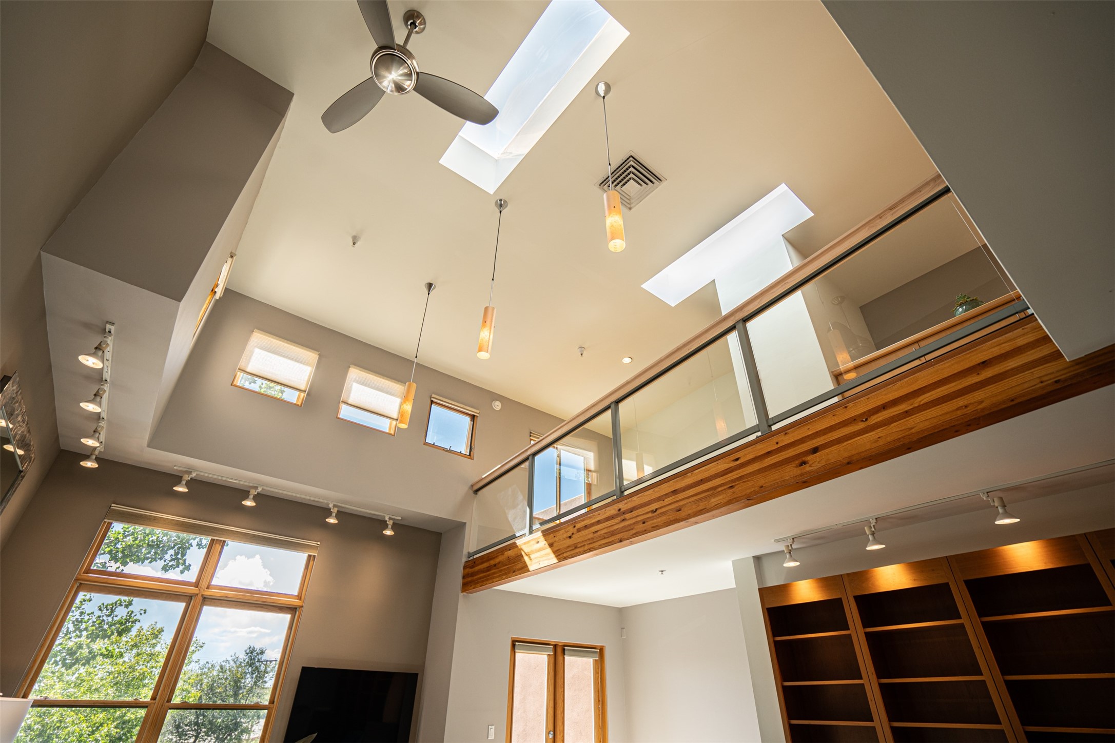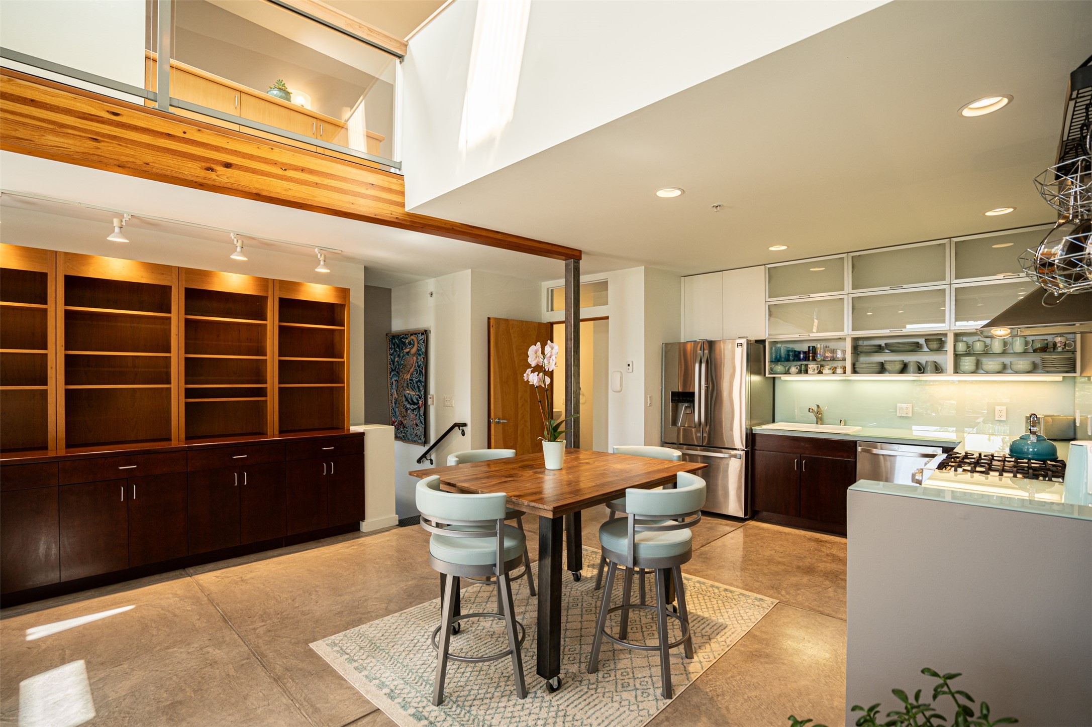 Stylish Marquez Place Loft with Abundant Sunshine! This south-facing loft have abundance of natural light. Its location is incredibly convenient, situated near the Cordova Road Corridor and the charming Guadalupe District. You'll find Trader Joe's, Clafoutis, and the Santa Fe Baking Company all within easy walking distance. The open floor plan offers versatility for both residential and mixed-use purposes. With two loft areas that can serve as bedrooms, offices, or a combination of both. This property is an excellent fit for live/work professionals or anyone seeking an exciting Santa Fe pied--terre or a second home. Sophisticated and comfortable. Nice-sized living area with contemporary kitchen cabinets and countertops. Roomy dining and living areas, with built-in shelving units for storage and display. Master suite is in the loft. Powder room downstairs; full bath upstairs. Wood floors, tons of light, and balcony provides outdoor living space. This unit is very sleek, modern and has that cool factor! Just minutes away from the historic downtown Plaza, museums, and world-class dining options!