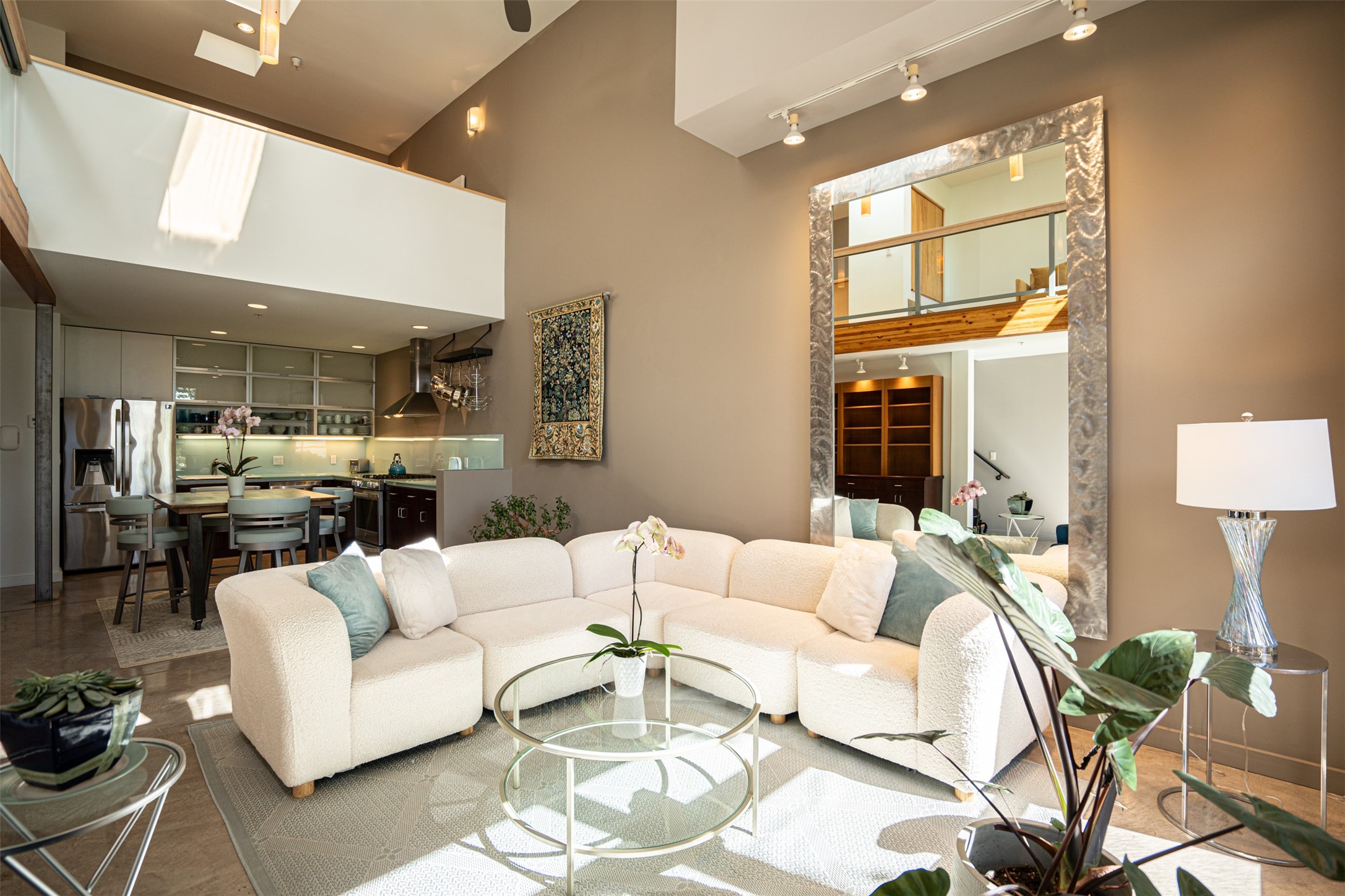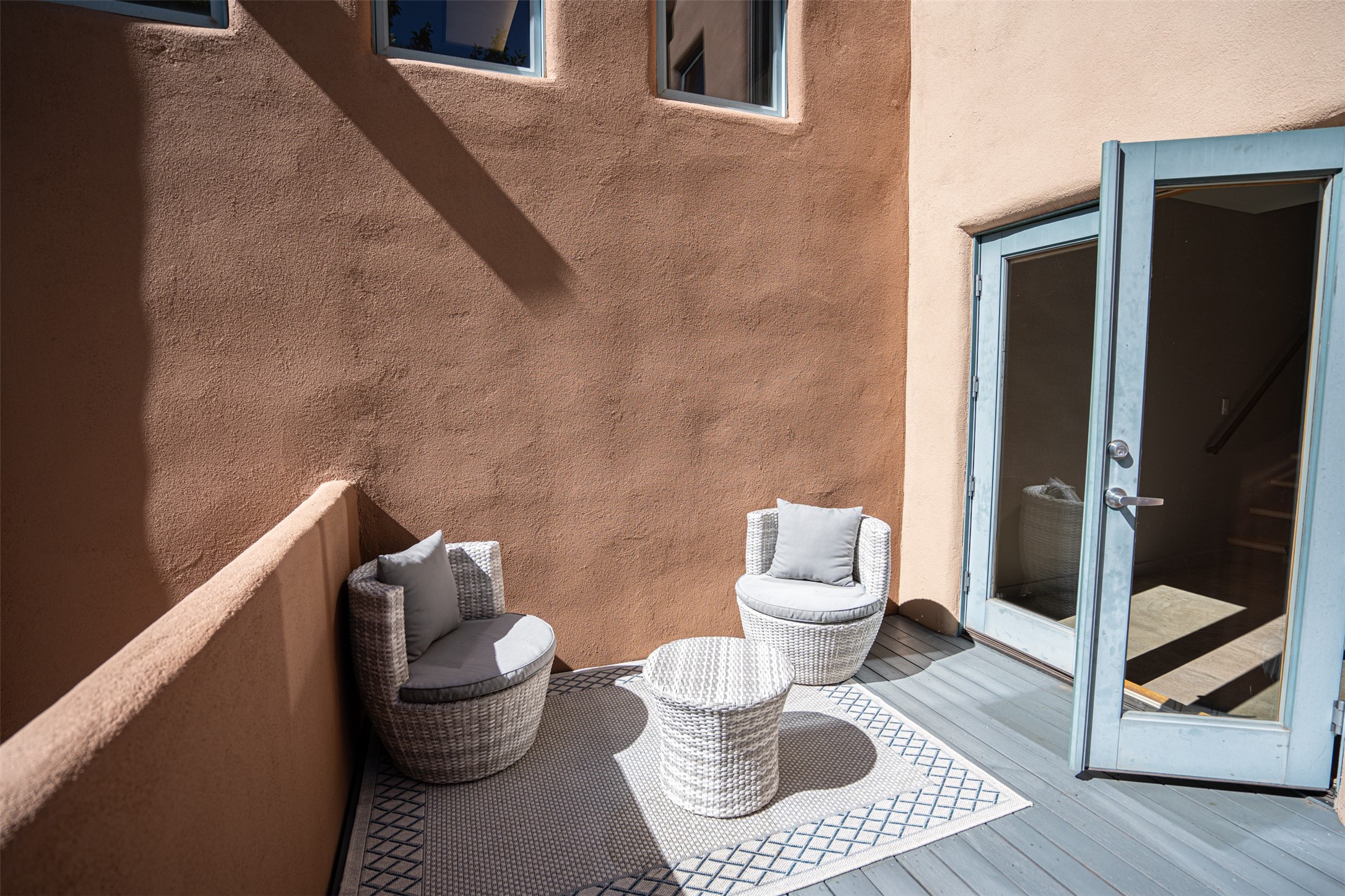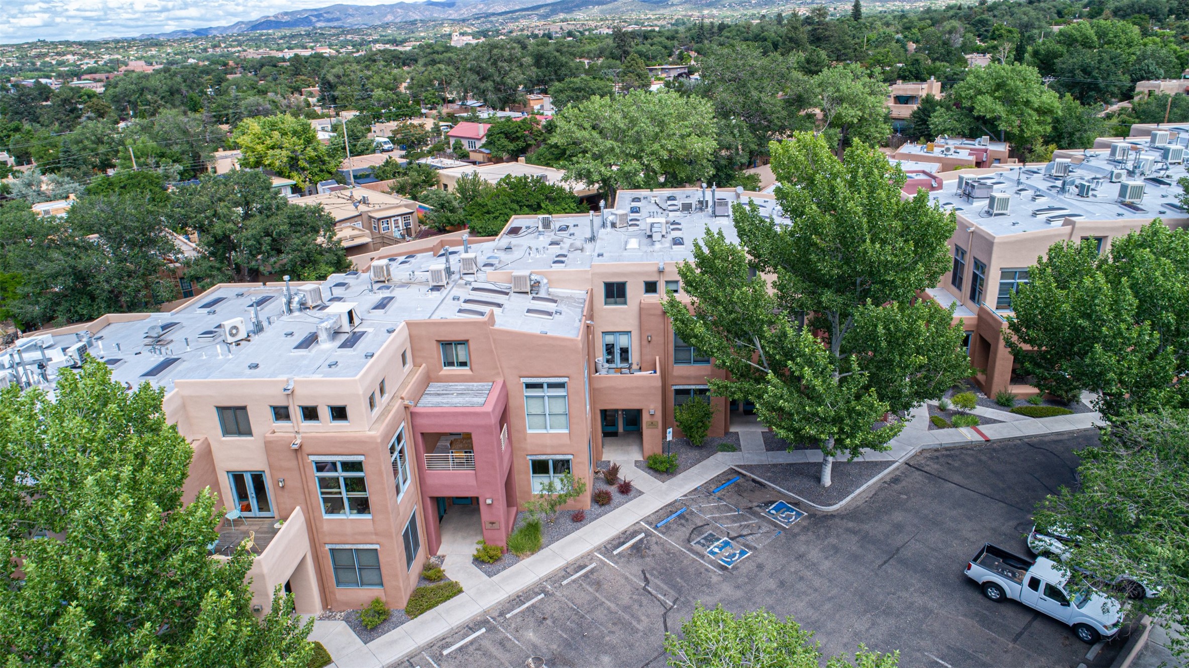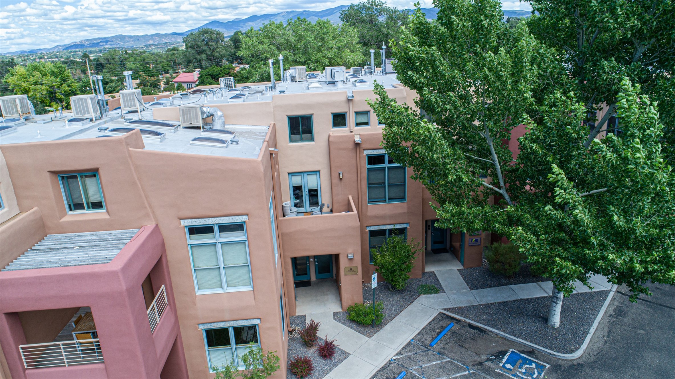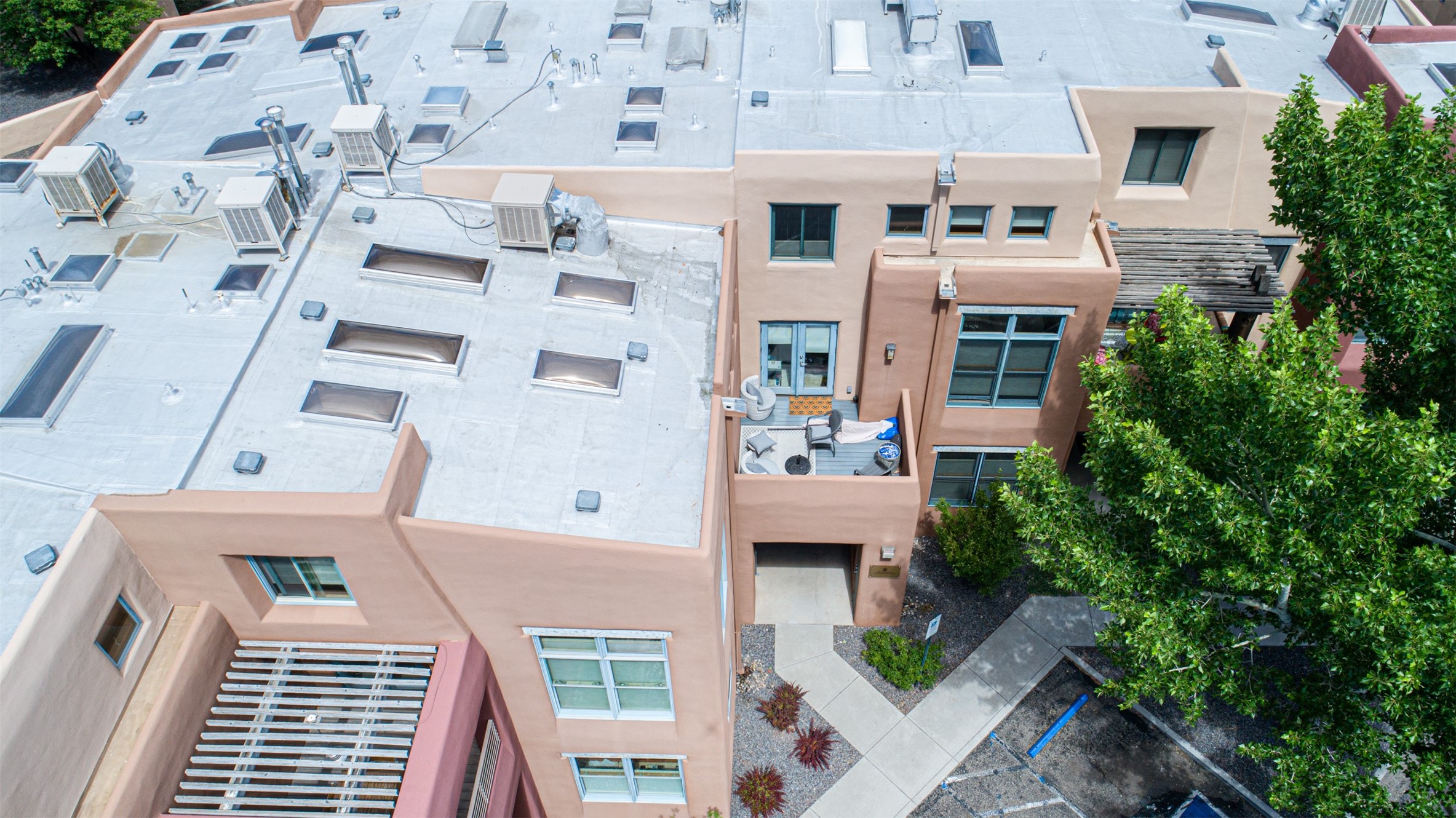 Stylish Marquez Place Loft with Abundant Sunshine! This south-facing loft have abundance of natural light. Its location is incredibly convenient, situated near the Cordova Road Corridor and the charming Guadalupe District. You'll find Trader Joe's, Clafoutis, and the Santa Fe Baking Company all within easy walking distance. The open floor plan offers versatility for both residential and mixed-use purposes. With two loft areas that can serve as bedrooms, offices, or a combination of both. This property is an excellent fit for live/work professionals or anyone seeking an exciting Santa Fe pied--terre or a second home. Sophisticated and comfortable. Nice-sized living area with contemporary kitchen cabinets and countertops. Roomy dining and living areas, with built-in shelving units for storage and display. Master suite is in the loft. Powder room downstairs; full bath upstairs. Wood floors, tons of light, and balcony provides outdoor living space. This unit is very sleek, modern and has that cool factor! Just minutes away from the historic downtown Plaza, museums, and world-class dining options!
