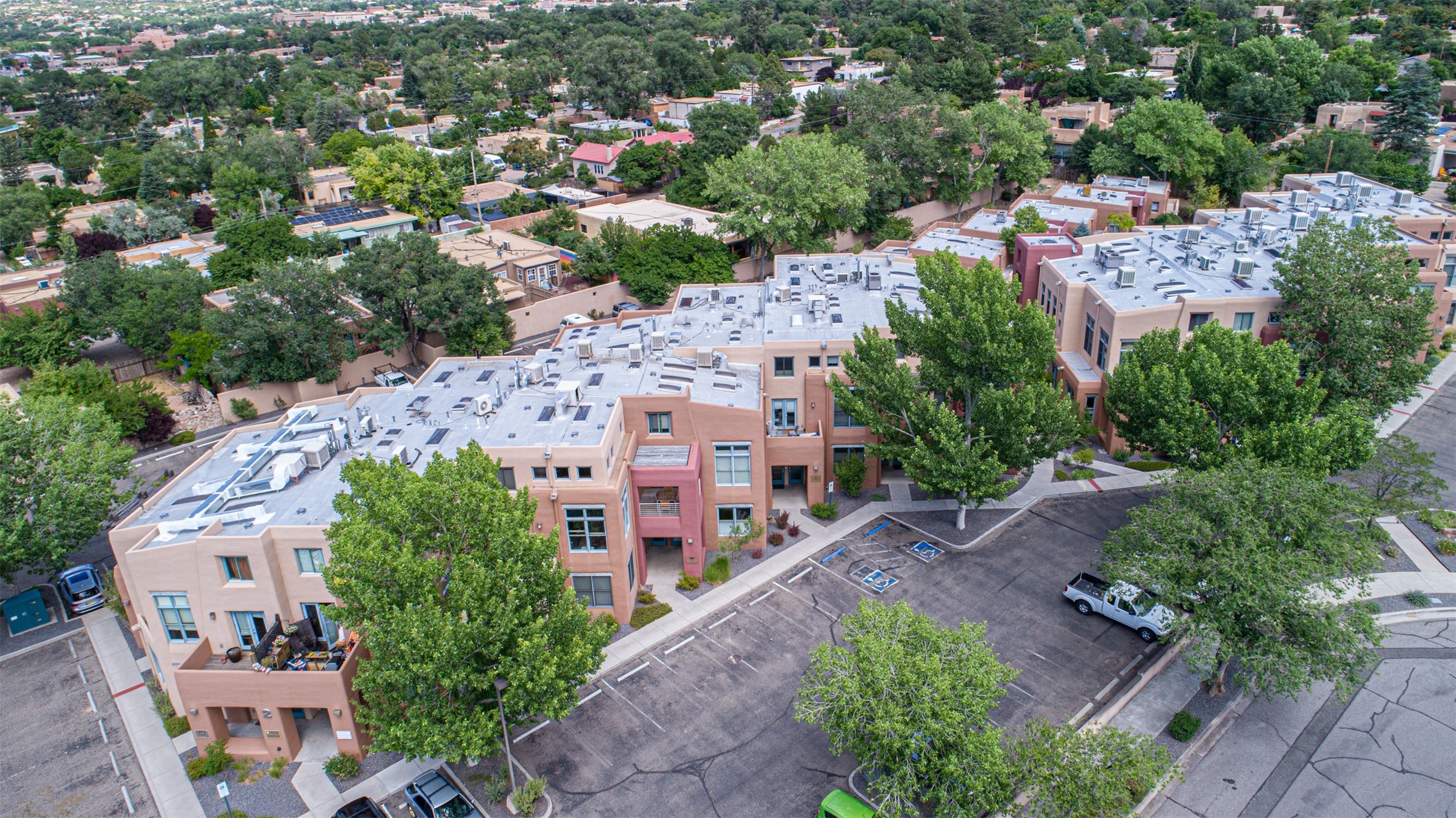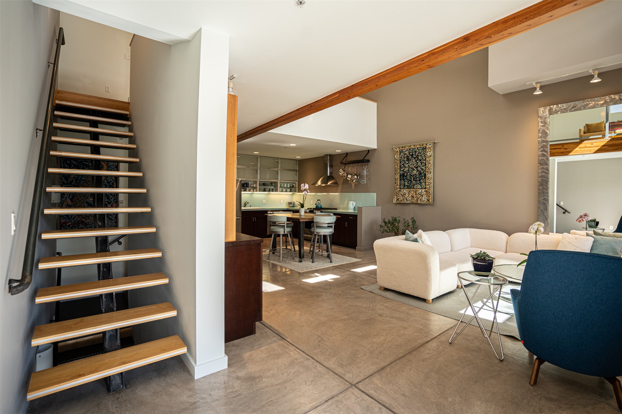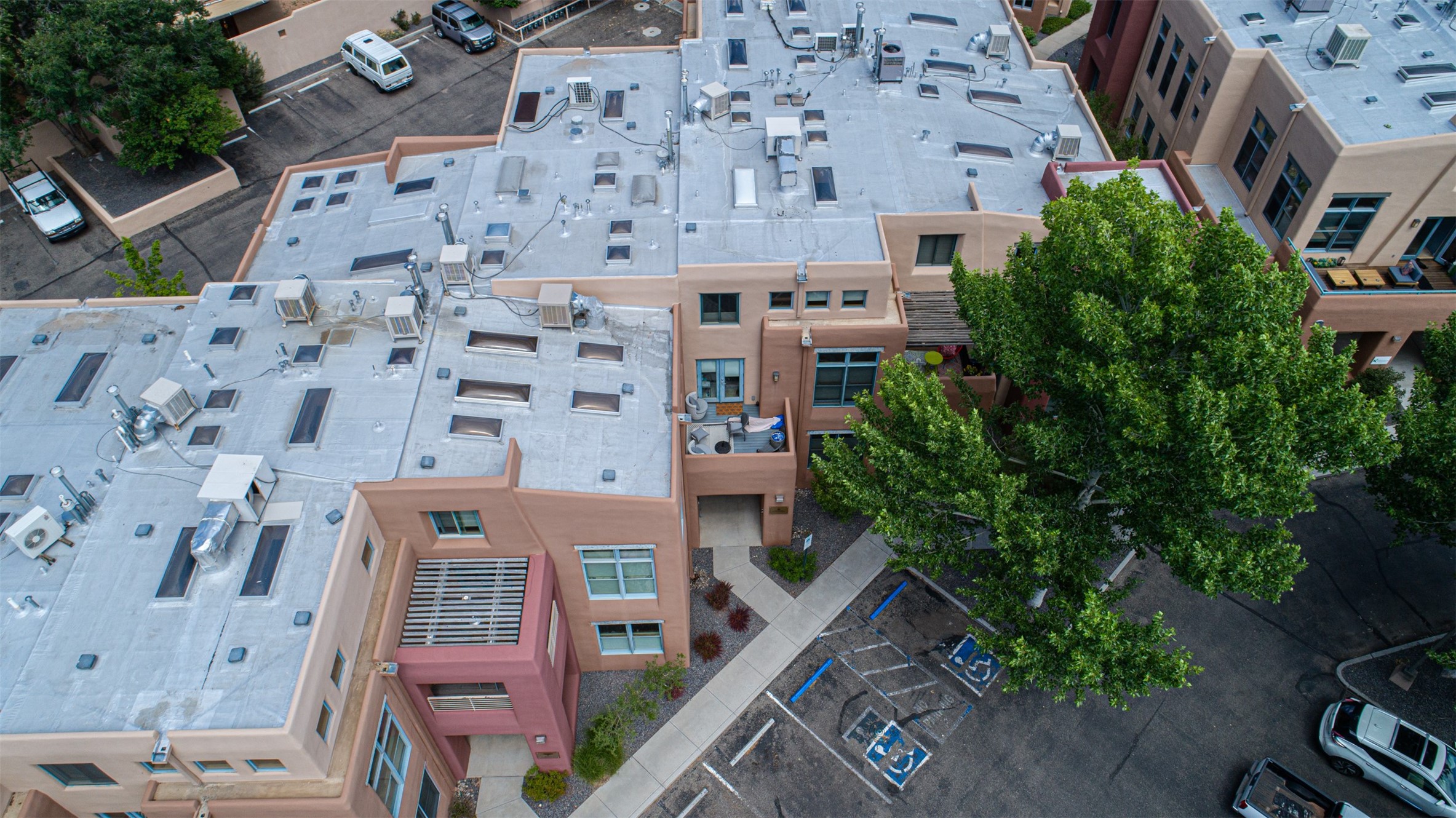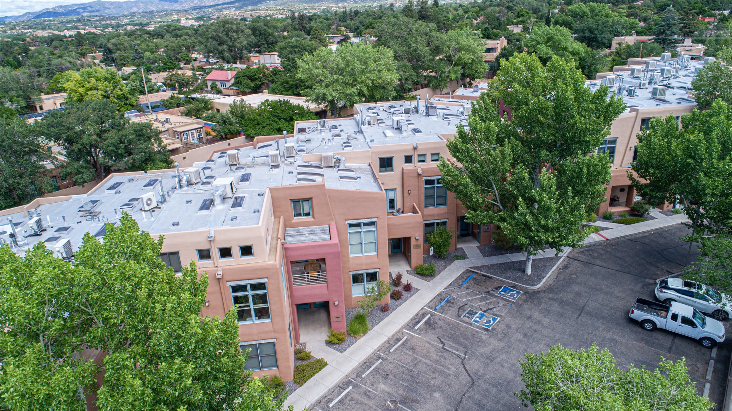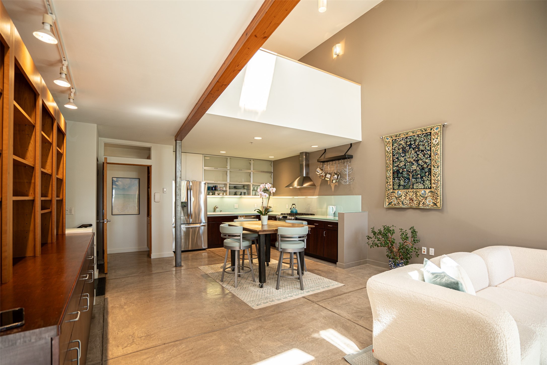 Stylish Marquez Place Loft with Abundant Sunshine! This south-facing loft have abundance of natural light. Its location is incredibly convenient, situated near the Cordova Road Corridor and the charming Guadalupe District. You'll find Trader Joe's, Clafoutis, and the Santa Fe Baking Company all within easy walking distance. The open floor plan offers versatility for both residential and mixed-use purposes. With two loft areas that can serve as bedrooms, offices, or a combination of both. This property is an excellent fit for live/work professionals or anyone seeking an exciting Santa Fe pied--terre or a second home. Sophisticated and comfortable. Nice-sized living area with contemporary kitchen cabinets and countertops. Roomy dining and living areas, with built-in shelving units for storage and display. Master suite is in the loft. Powder room downstairs; full bath upstairs. Wood floors, tons of light, and balcony provides outdoor living space. This unit is very sleek, modern and has that cool factor! Just minutes away from the historic downtown Plaza, museums, and world-class dining options!