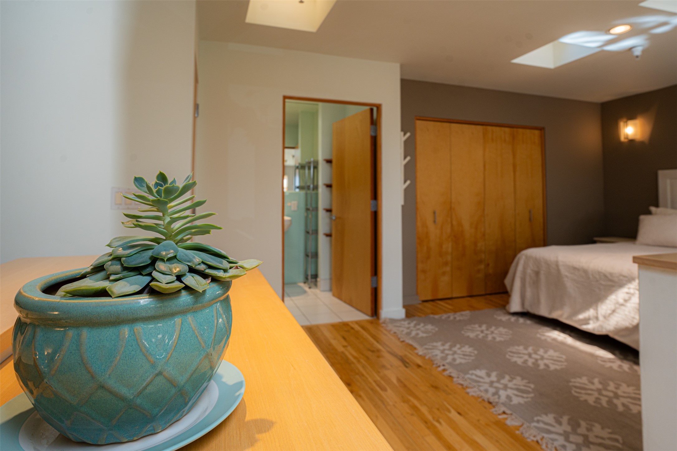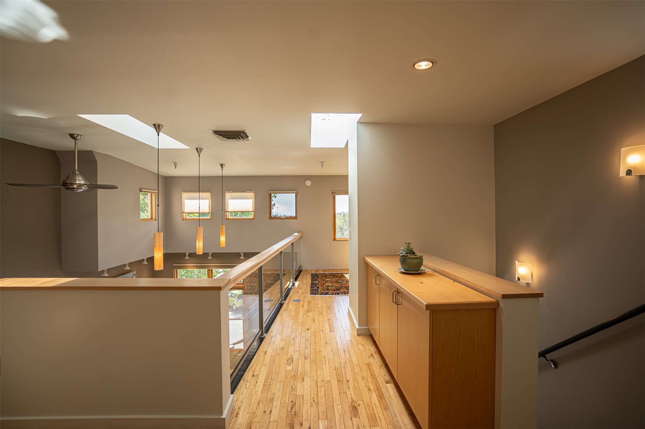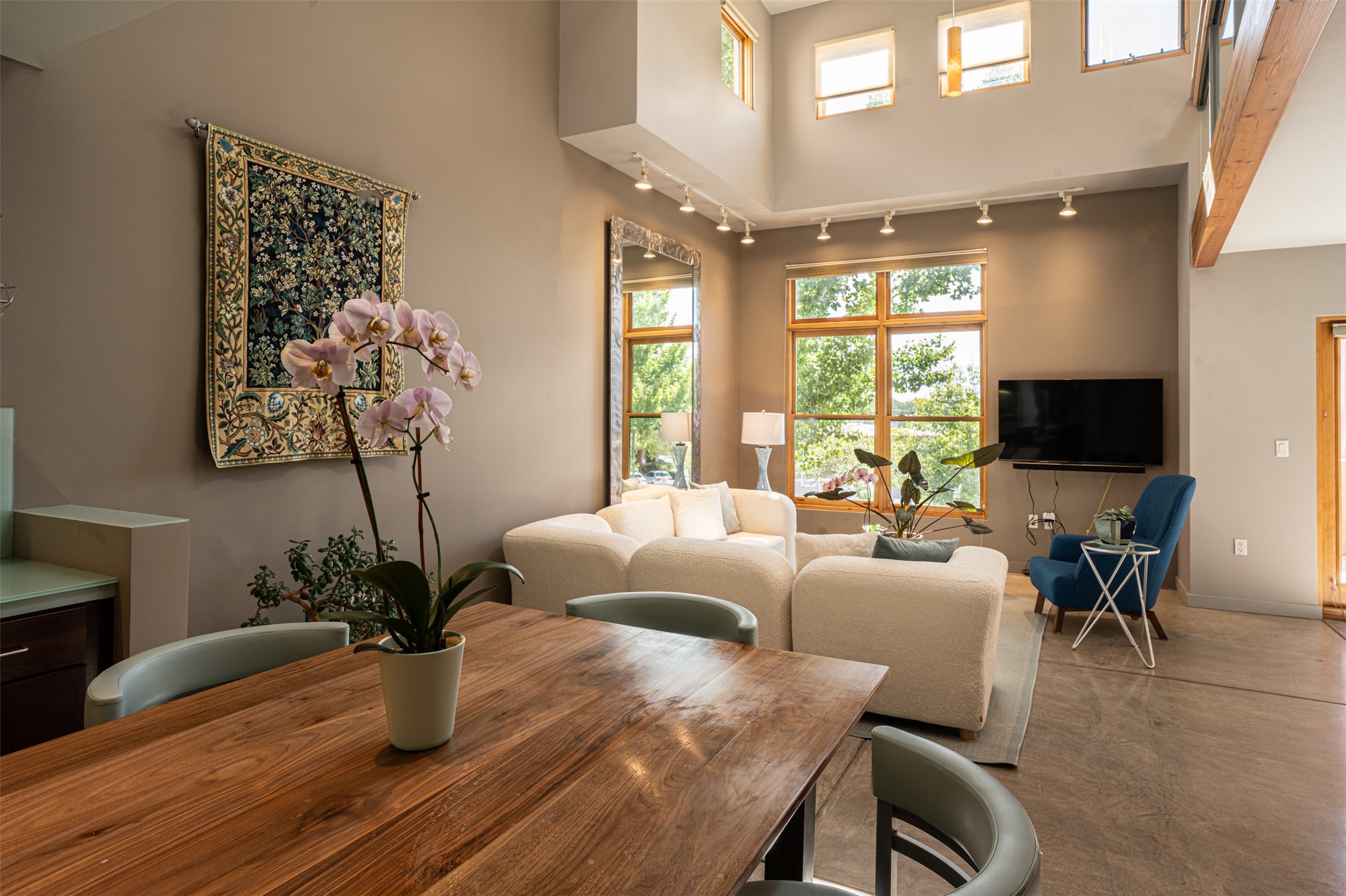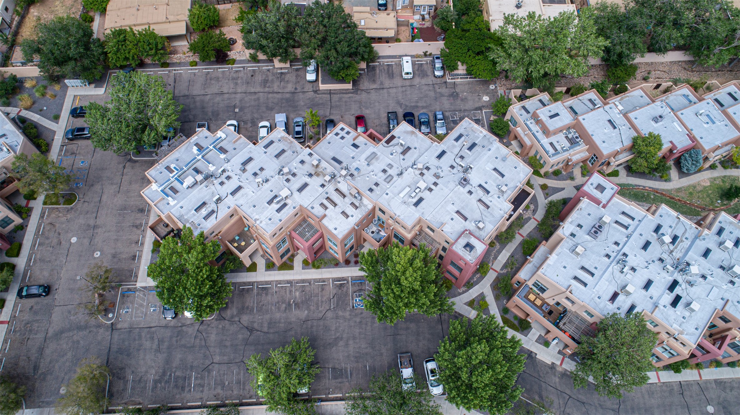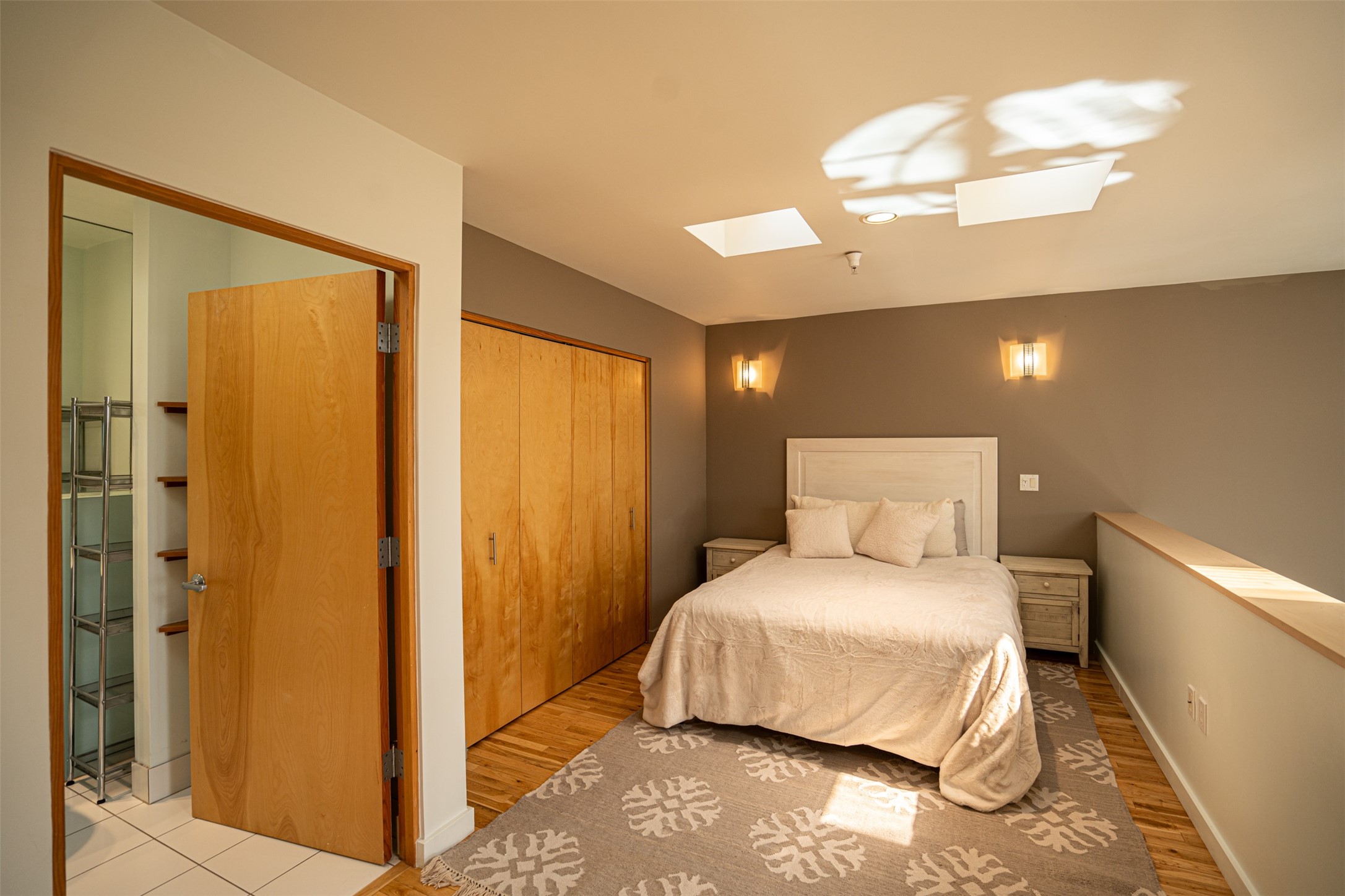 Stylish Marquez Place Loft with Abundant Sunshine! This south-facing loft have abundance of natural light. Its location is incredibly convenient, situated near the Cordova Road Corridor and the charming Guadalupe District. You'll find Trader Joe's, Clafoutis, and the Santa Fe Baking Company all within easy walking distance. The open floor plan offers versatility for both residential and mixed-use purposes. With two loft areas that can serve as bedrooms, offices, or a combination of both. This property is an excellent fit for live/work professionals or anyone seeking an exciting Santa Fe pied--terre or a second home. Sophisticated and comfortable. Nice-sized living area with contemporary kitchen cabinets and countertops. Roomy dining and living areas, with built-in shelving units for storage and display. Master suite is in the loft. Powder room downstairs; full bath upstairs. Wood floors, tons of light, and balcony provides outdoor living space. This unit is very sleek, modern and has that cool factor! Just minutes away from the historic downtown Plaza, museums, and world-class dining options!