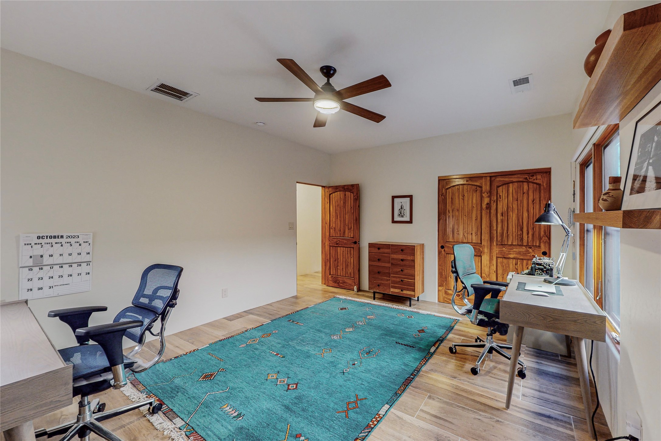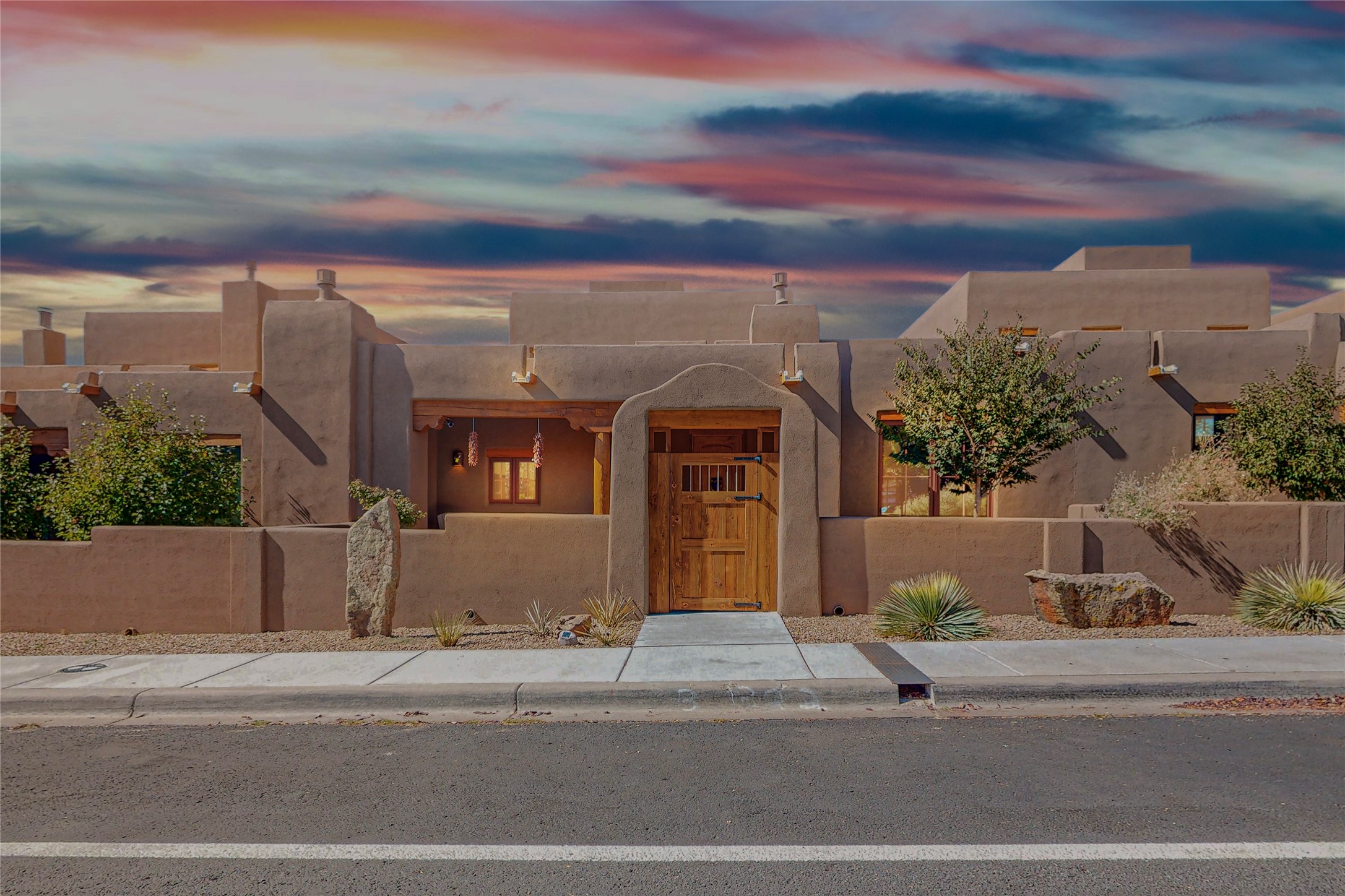 This newly built single family paito home with central heating and air conditioning, a tankless water heater, TPO roof, and energy efficient. All interior walls are insulated for better comfort and sound absorption. The owners have upgraded nearly everything. From the large plank tile flooring to the premium appliances to designer plumbing, California Closets systems, and custom cabinets. Elegant primary retreat with walk-through shower, custom California Closets, and large his and hers spaces. Entertain in your kitchen with an oversized quartz island, inviting stone paver yard, or enjoy spectacular sunsets. This home is pre-wired for home theater. The real star of the show is an expansive west facing view from the deck off of the primary bedroom with approximately 500+/-sf of Trex decking. Enjoy the monsoon storms, gorgeous sunsets, and the snow covered ridge that is protected open space. Aldea de Santa Fe is a National Wildlife Federation "Certified Wildlife Habitat Community." This is the only such designated community in New Mexico. Aldea subdivision is highly sought after for its 13 miles of trails, plus tennis, pickleball and basketball courts.