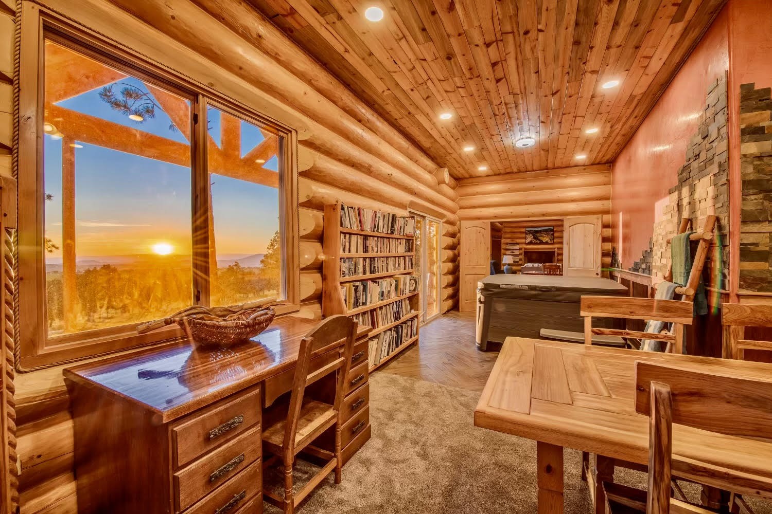 Nestled in a grove of ponderosa pine and embraced by the fresh mountain air of the Sangre de Cristo Mountain range, this property offers more than a view, it offers a way of life. The private road leads you to a unique home, resting perfectly in-tune with its environment. This home is located on the southern end of the Rocky Mountains, just 30 miles south of historic Taos, NM. It neighbors the Carson National Forest & Pecos Wilderness. It stands amongst a restored ponderosa pine forest. Two natural earth-fed springs. Numerous ponds created specifically to provide water to wildlife & for erosion control. This spacious ranch provides twenty +- acres of flood irrigated pasture from two acequias & 14+- acres of dry pasture. Registered with New Mexico Fish & Game for landowner elk tags in Unit 45 and is located within 60 to 70 miles of 5 ski resorts, namely Sipapu, Taos Ski Valley, Angel Fire, Red River and Ski Santa Fe. This log cabin lodge is newly built! It boasts a 27-foot cathedral ceiling,3 bedrooms, 2 bathrooms, hot tub, wood burning stove, and a 4-car garage/workshop with a bonus room upstairs, within its approximate 3500+- square feet, with an additional 1,200+- square feet of flawless decks - perfect for small intimate dinners or larger sophisticated gatherings. The 12-inch logs and floor plans that foundationally support this home were purchased from Montana Custom Log Homes Inc, the acclaimed creators and designers of custom-built, versatile, and handcrafted homes for generations. A view of hundreds of square miles of northern New Mexico valleys & mountains are out the west facing windows. Sunsets are glorious! Underground utilities, highspeed fiberoptic internet, cisterns for water catchment, 25 x 25 carport and so much more. Property excellent for that unique family get a way, secondary or primary home compound, or corporate retreat, the use is endless. A truly special and unique property awaits you! Don't miss out! Schedule your viewing today.