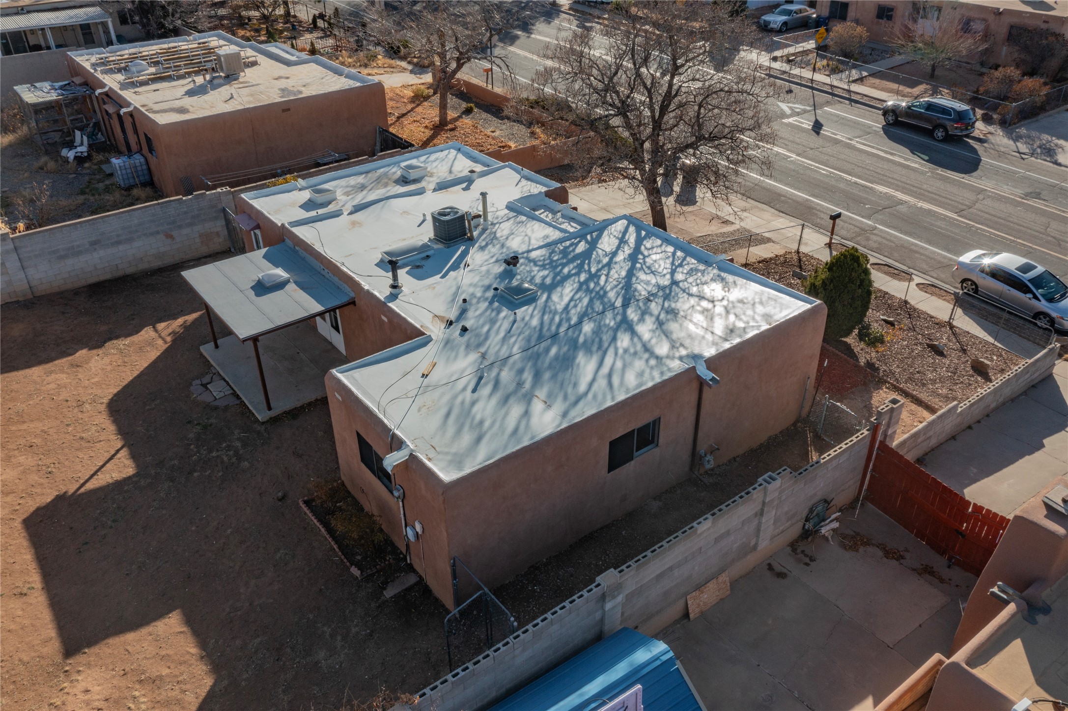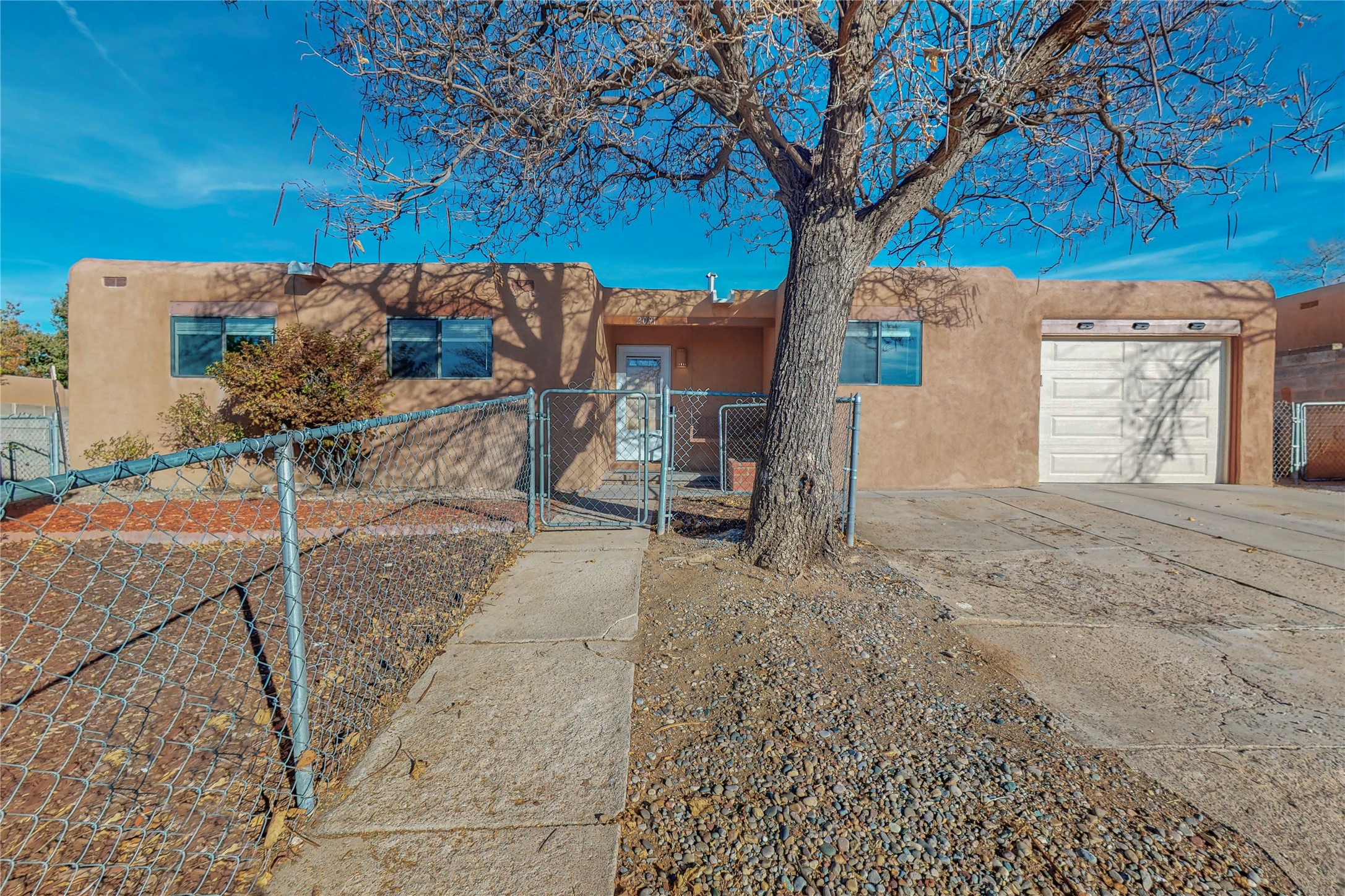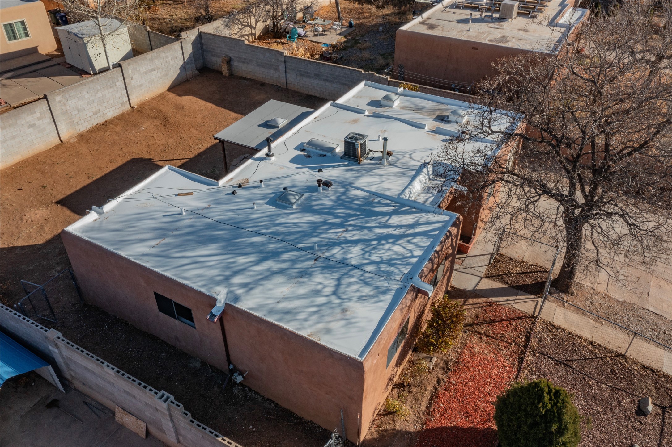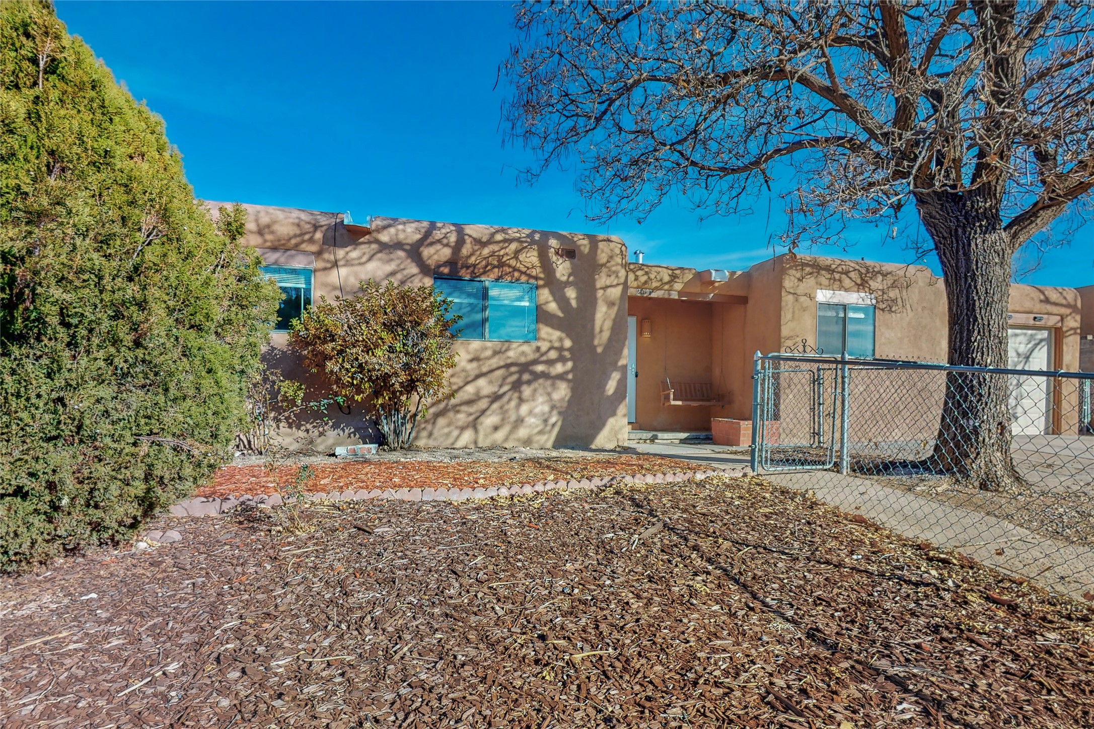 Come home to this move in ready FOUR bedroom two bathroom beautiful home! The kitchen is open concept with a dining area that over looks into the spacious living room.The living room has a cozy fireplace and french doors that open up to the very large walled back yard that your family can make their own. Ceiling fans in each of the bedrooms and beautiful skylights throughout the home. A brand new TPO membrane roof was just installed with a 20 year labor and material warranty. There is a single car attached garage with a laundry room. Conveniently located near schools, hospitals, the Railrunner and shops!