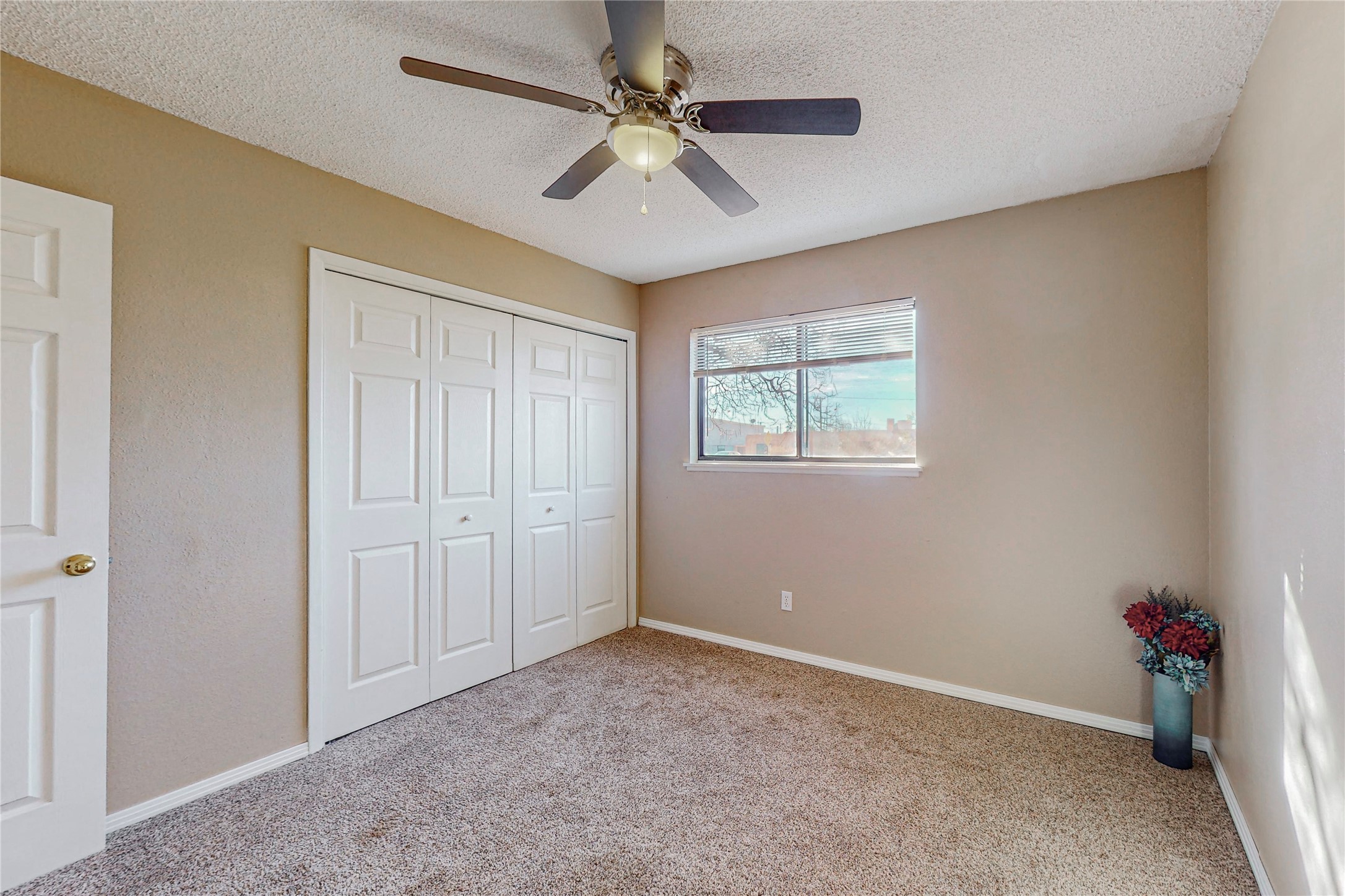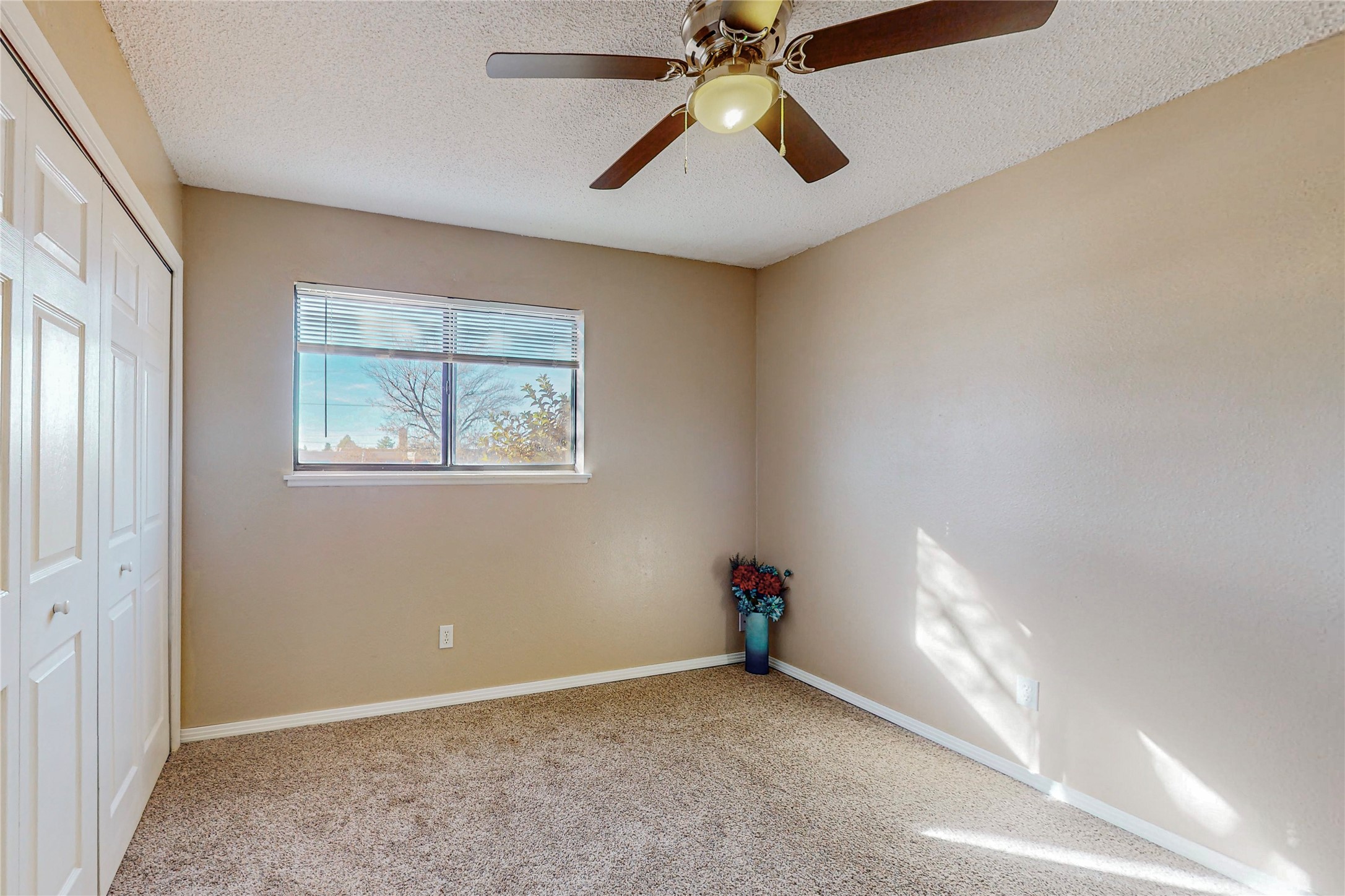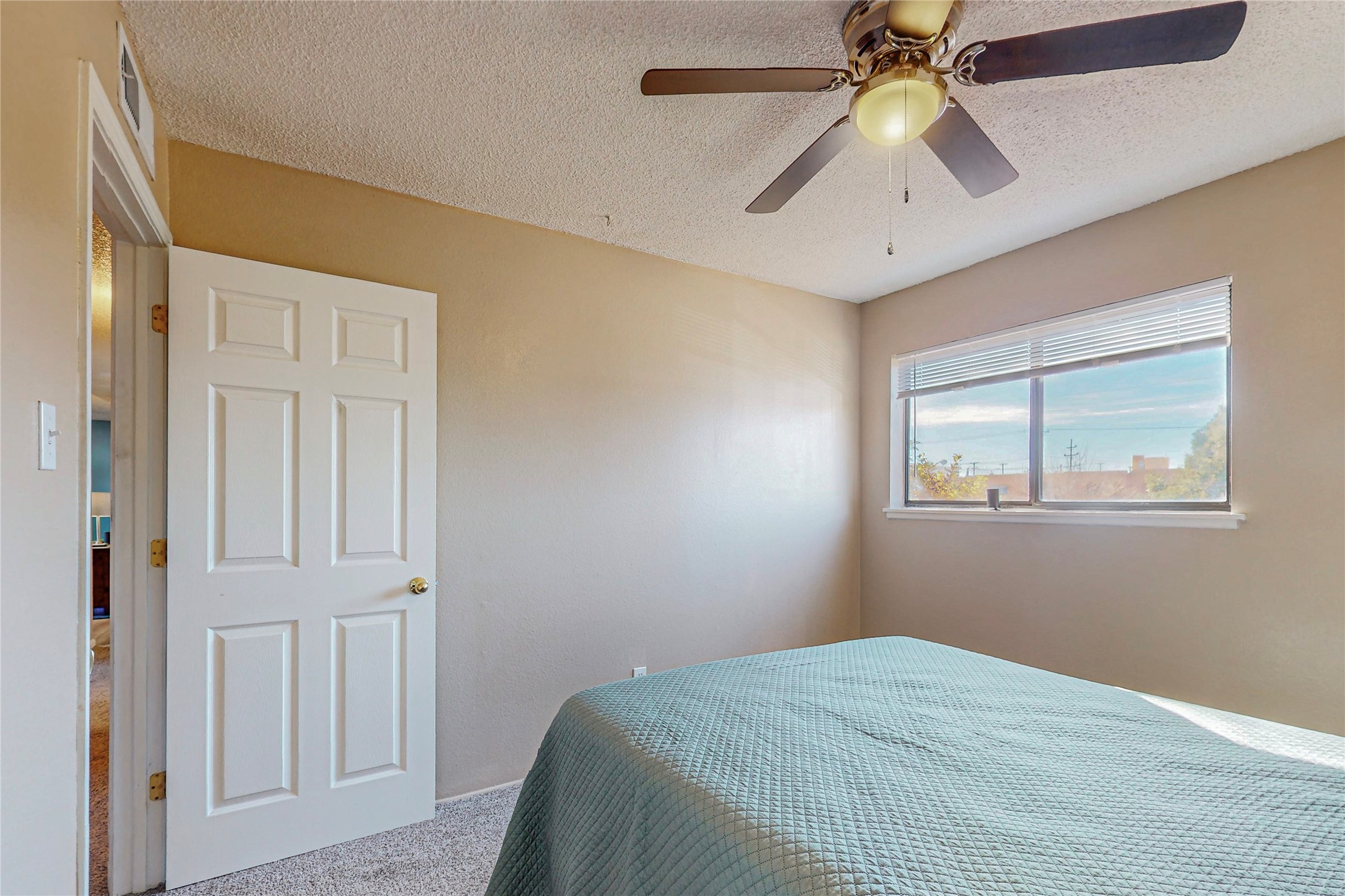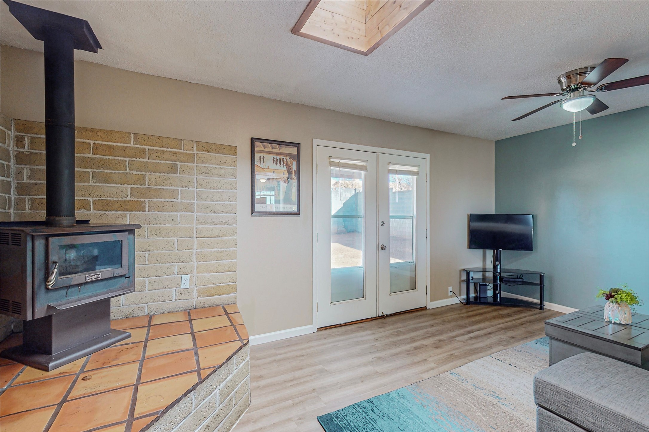 Come home to this move in ready FOUR bedroom two bathroom beautiful home! The kitchen is open concept with a dining area that over looks into the spacious living room.The living room has a cozy fireplace and french doors that open up to the very large walled back yard that your family can make their own. Ceiling fans in each of the bedrooms and beautiful skylights throughout the home. A brand new TPO membrane roof was just installed with a 20 year labor and material warranty. There is a single car attached garage with a laundry room. Conveniently located near schools, hospitals, the Railrunner and shops!