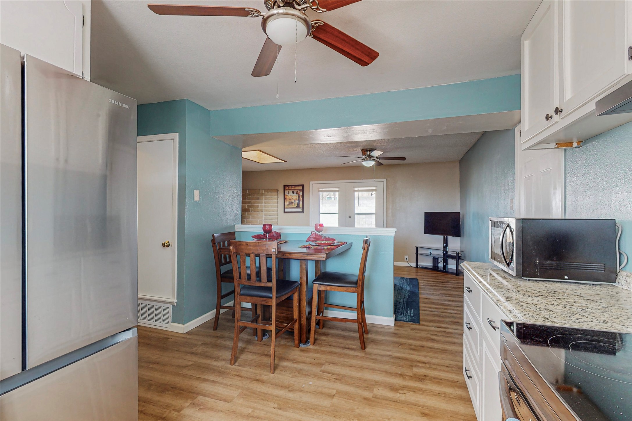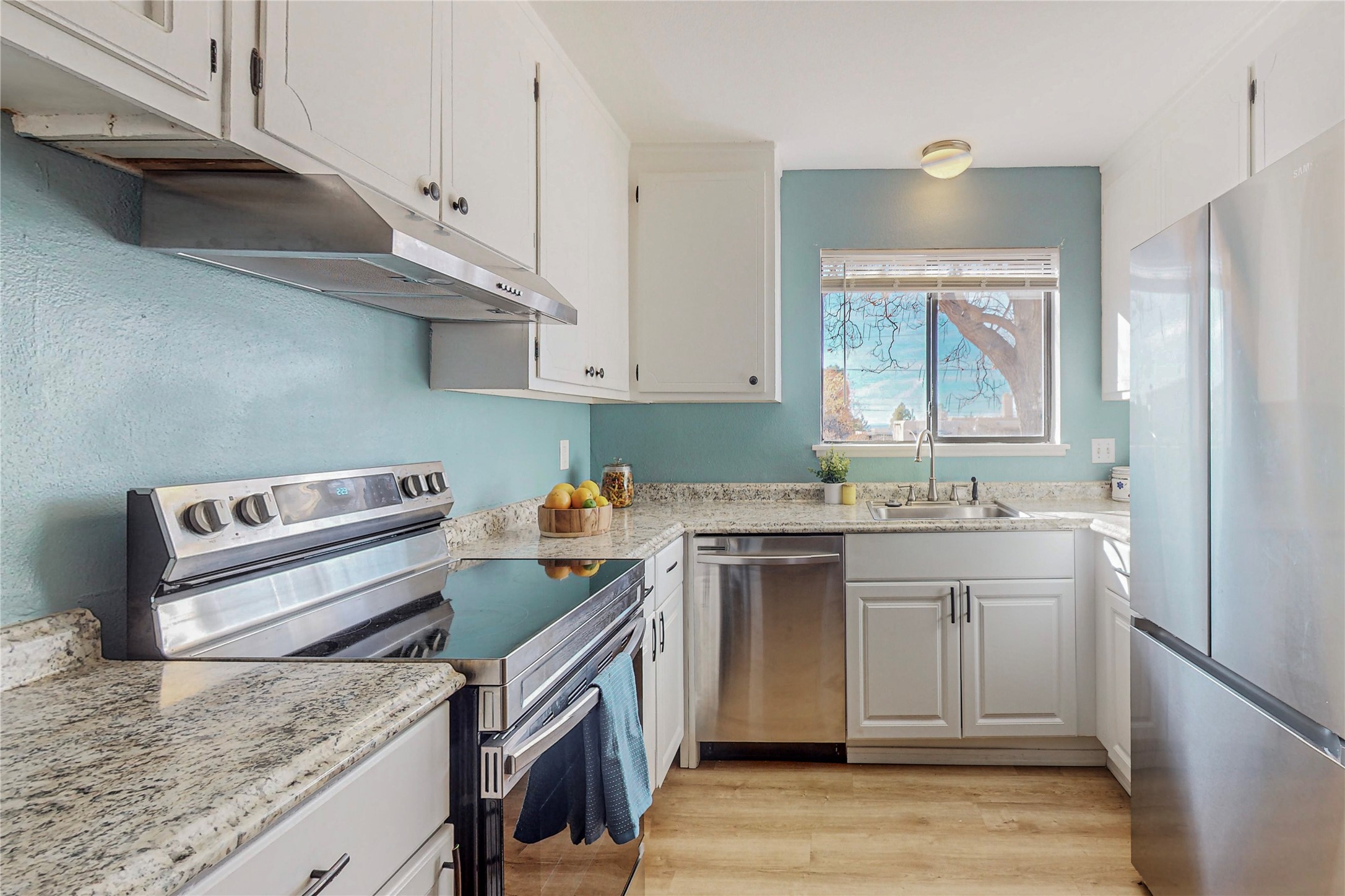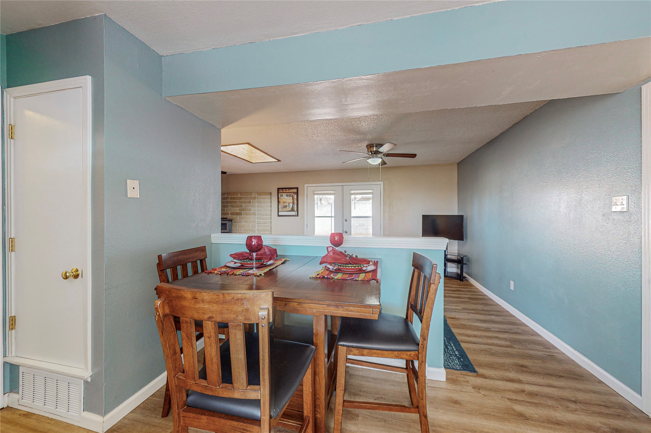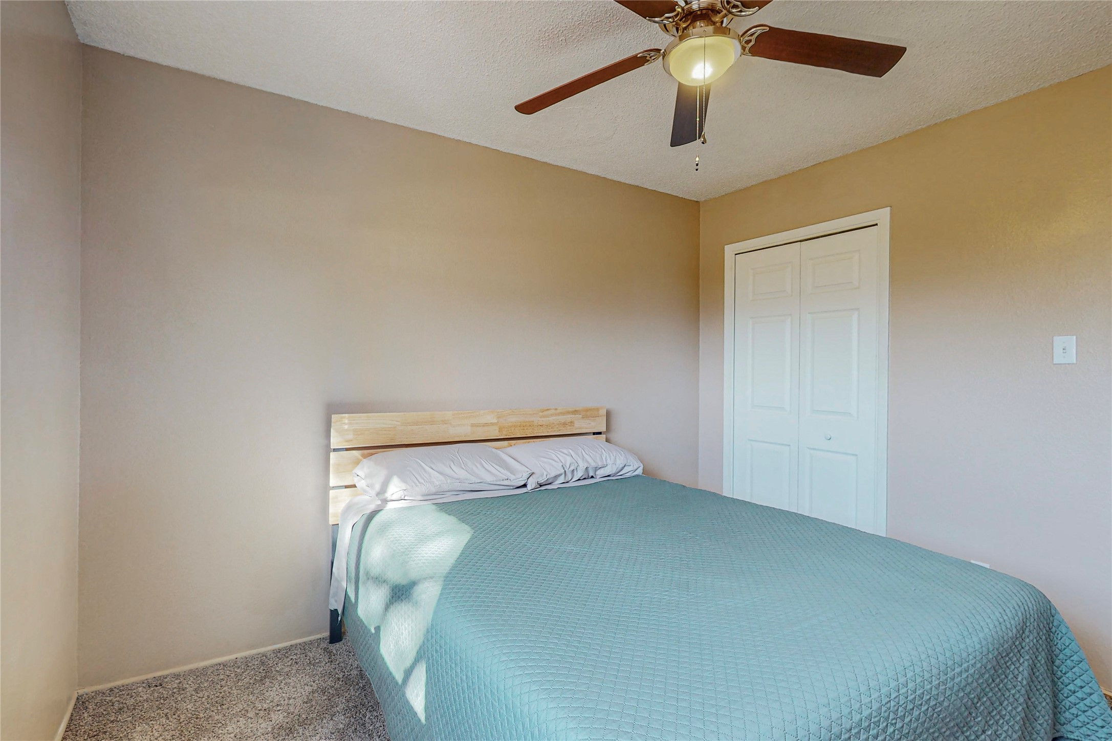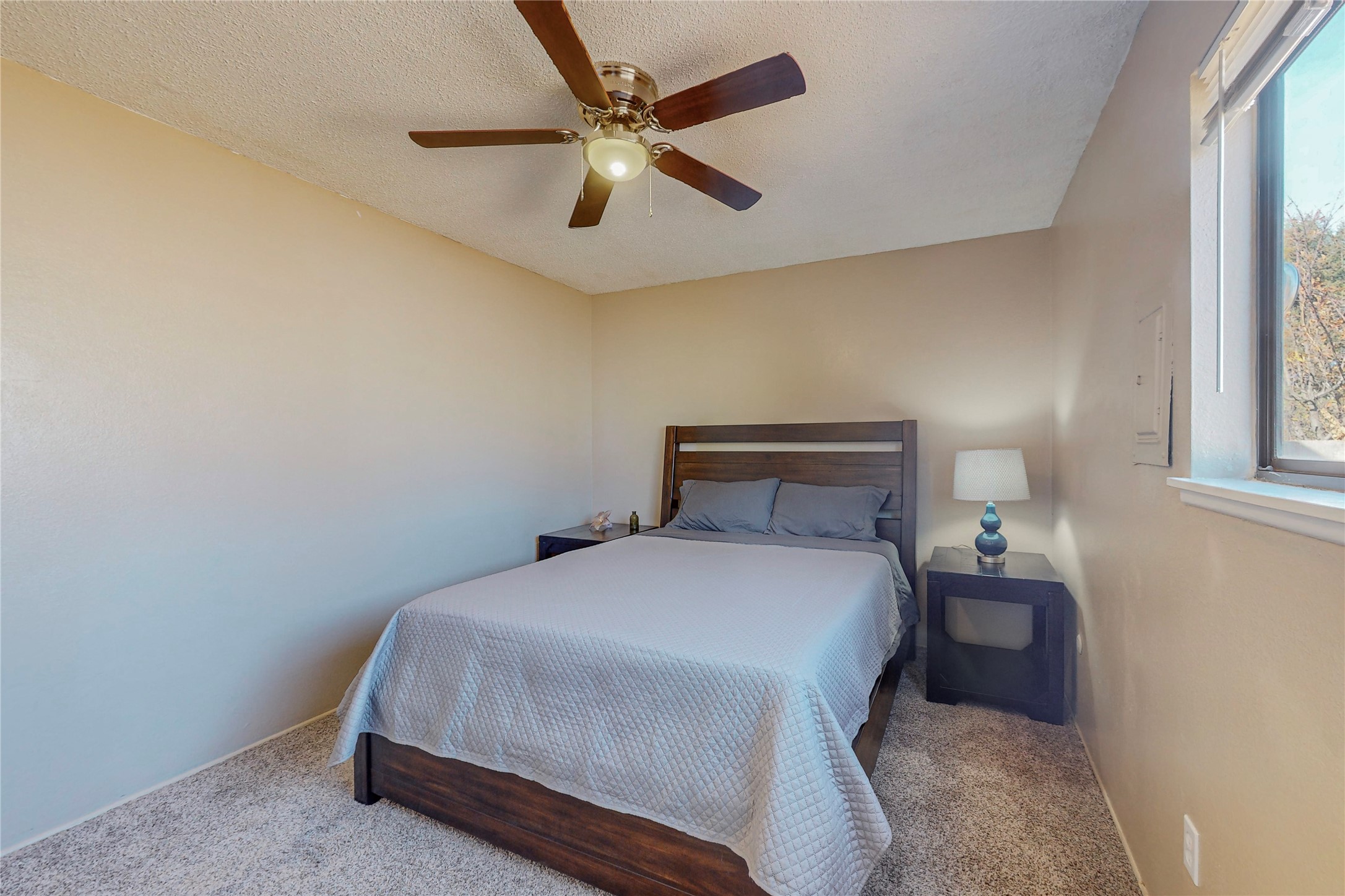 Come home to this move in ready FOUR bedroom two bathroom beautiful home! The kitchen is open concept with a dining area that over looks into the spacious living room.The living room has a cozy fireplace and french doors that open up to the very large walled back yard that your family can make their own. Ceiling fans in each of the bedrooms and beautiful skylights throughout the home. A brand new TPO membrane roof was just installed with a 20 year labor and material warranty. There is a single car attached garage with a laundry room. Conveniently located near schools, hospitals, the Railrunner and shops!
