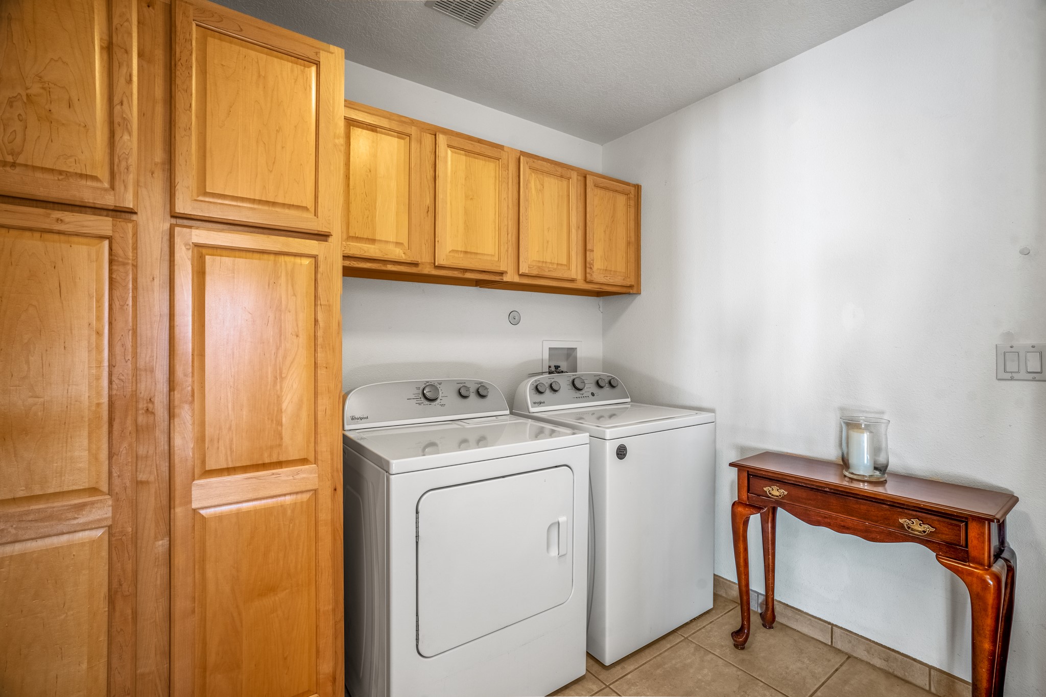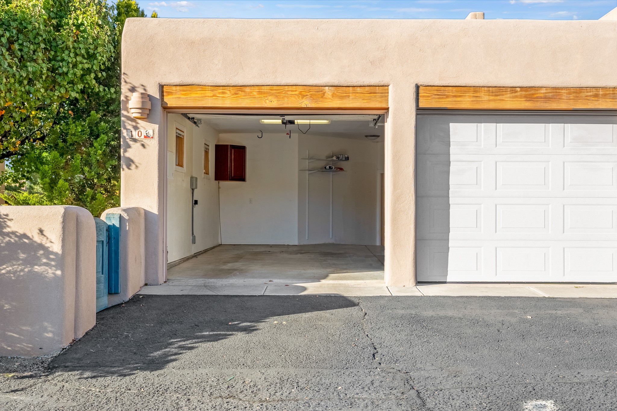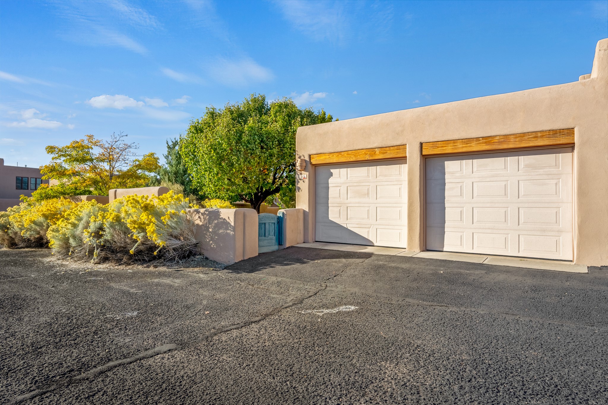 Bright, airy, contemporary patio home located in the heart of Aldea de Santa Fe. This light filled home features an open concept floor plan, first floor master suite, attached garage, radiant in floor heat, evaporative cooling, beautiful landscaping, drip irrigation and a large, covered patio with Jemez mountain views. The main living area has a high ceiling, vigas, large windows, faux paint and wood burning kiva fireplace. Kitchen features spacious pantries, maple cabinets, a center island and stainless Bosch and Amana appliances. The master suite includes a walk-in closet, jetted tub and large shower. French doors with screens in both the living room and master suite open directly to the patio. Two spacious, carpeted bedrooms and full bath are located on the second floor. The lovely and peaceful yard is completely walled for your furry friends. The front of the house faces Aldea open space, offering stunning mountain views and the serenity of a walkable community with fitness amenities, parks, and miles of walking trails. The home backs up to a large parking area for guests. Great location with easy access to NM 599, Los Alamos, downtown Santa Fe. Aldea de Santa Fe is a new urbanist subdivision that offers 13 miles of walking trails, community center, Bocci ball, tennis and basket-ball courts. Just steps away from Aldea plaza and specialty shops, caf, and businesses. community is great place to meet new friends with many special interest clubs in place.