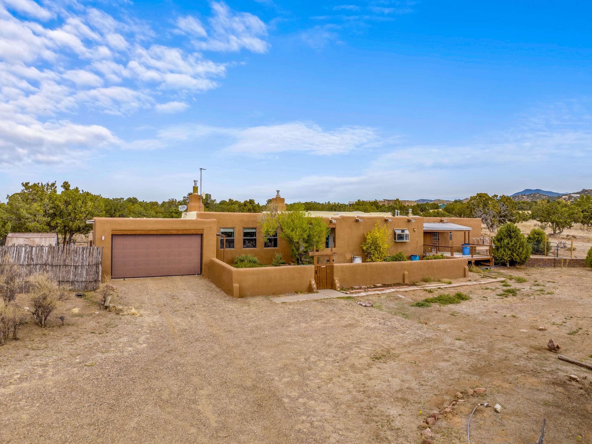 Nestled within the Sunlit Hills area of Santa Fe, this exceptional single-level home awaits its next chapter. Boasting 4 bedrooms, 2.5 baths, and a generous ~2,800 sq. ft. of living space, it sits majestically on a sprawling 5-acre lot, offering a canvas of possibilities. If your dreams include having a horse property and/or installing a a solar panel array to go greener, this is your chance to bring those dreams to life.Step inside and find a warm and inviting interior where an open living area takes center stage. The kitchen features recent updates, namely new marble countertops, sink, and range, making meal preparation a delight. With a sunny family room to bask in the morning light, a charming front porch and courtyard to savor the Santa Fe evenings, a deck with a propane BBQ hookup for outdoor dining enjoyment, a raised bed for gardeners, and a private "Catio" safely located within a half-acre fenced dog yard for your furry companions, you'll find enchanting spaces for every moment.For those seeking convenience and storage, a storage shed is on hand, and the detached 2-car garage (also with addt'l storage) along with a divided driveway offers additional parking and level in direct access to the kitchen. The flexible floorplan and property holds enormous potential for you to shape as you desire, offering the perfect blend of comfort and opportunity. New roof, stucco, + other improvements done Summer/Fall '23.Make Sunlit Hills your home and experience the charm and potential it holds.
