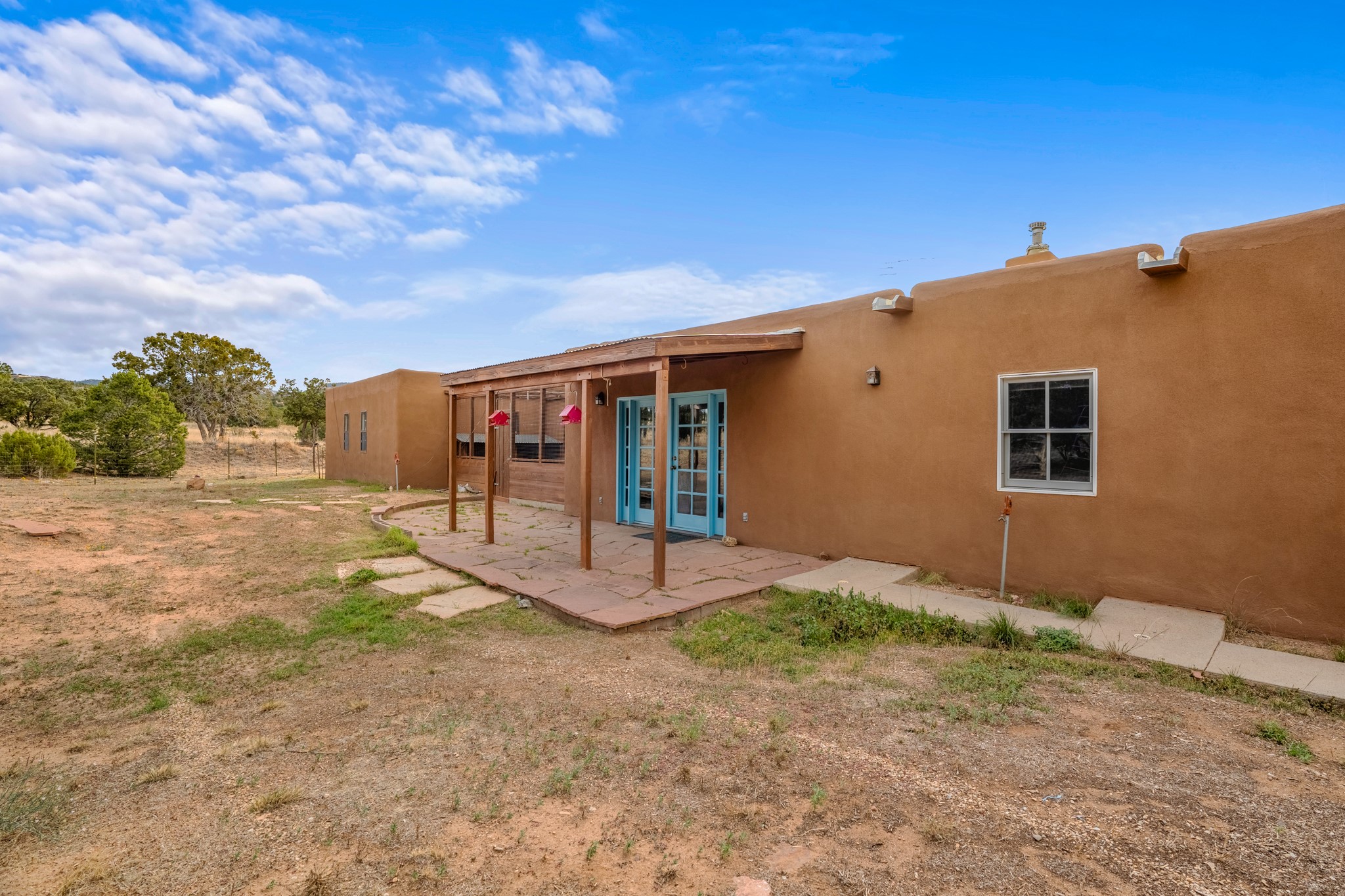 Nestled within the Sunlit Hills area of Santa Fe, this exceptional single-level home awaits its next chapter. Boasting 4 bedrooms, 2.5 baths, and a generous ~2,800 sq. ft. of living space, it sits majestically on a sprawling 5-acre lot, offering a canvas of possibilities. If your dreams include having a horse property and/or installing a a solar panel array to go greener, this is your chance to bring those dreams to life.Step inside and find a warm and inviting interior where an open living area takes center stage. The kitchen features recent updates, namely new marble countertops, sink, and range, making meal preparation a delight. With a sunny family room to bask in the morning light, a charming front porch and courtyard to savor the Santa Fe evenings, a deck with a propane BBQ hookup for outdoor dining enjoyment, a raised bed for gardeners, and a private "Catio" safely located within a half-acre fenced dog yard for your furry companions, you'll find enchanting spaces for every moment.For those seeking convenience and storage, a storage shed is on hand, and the detached 2-car garage (also with addt'l storage) along with a divided driveway offers additional parking and level in direct access to the kitchen. The flexible floorplan and property holds enormous potential for you to shape as you desire, offering the perfect blend of comfort and opportunity. New roof, stucco, + other improvements done Summer/Fall '23.Make Sunlit Hills your home and experience the charm and potential it holds.