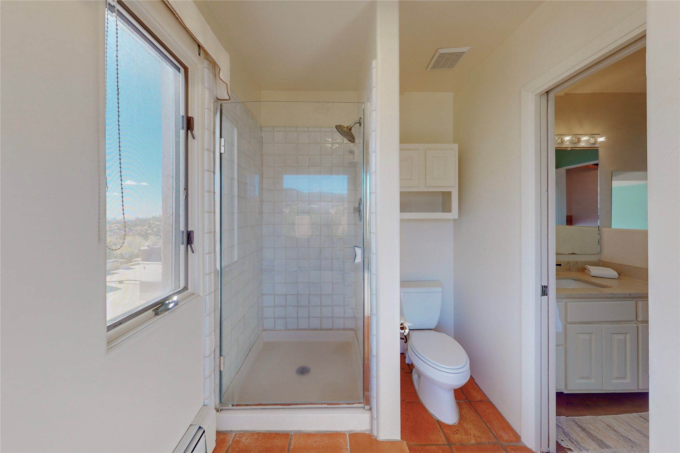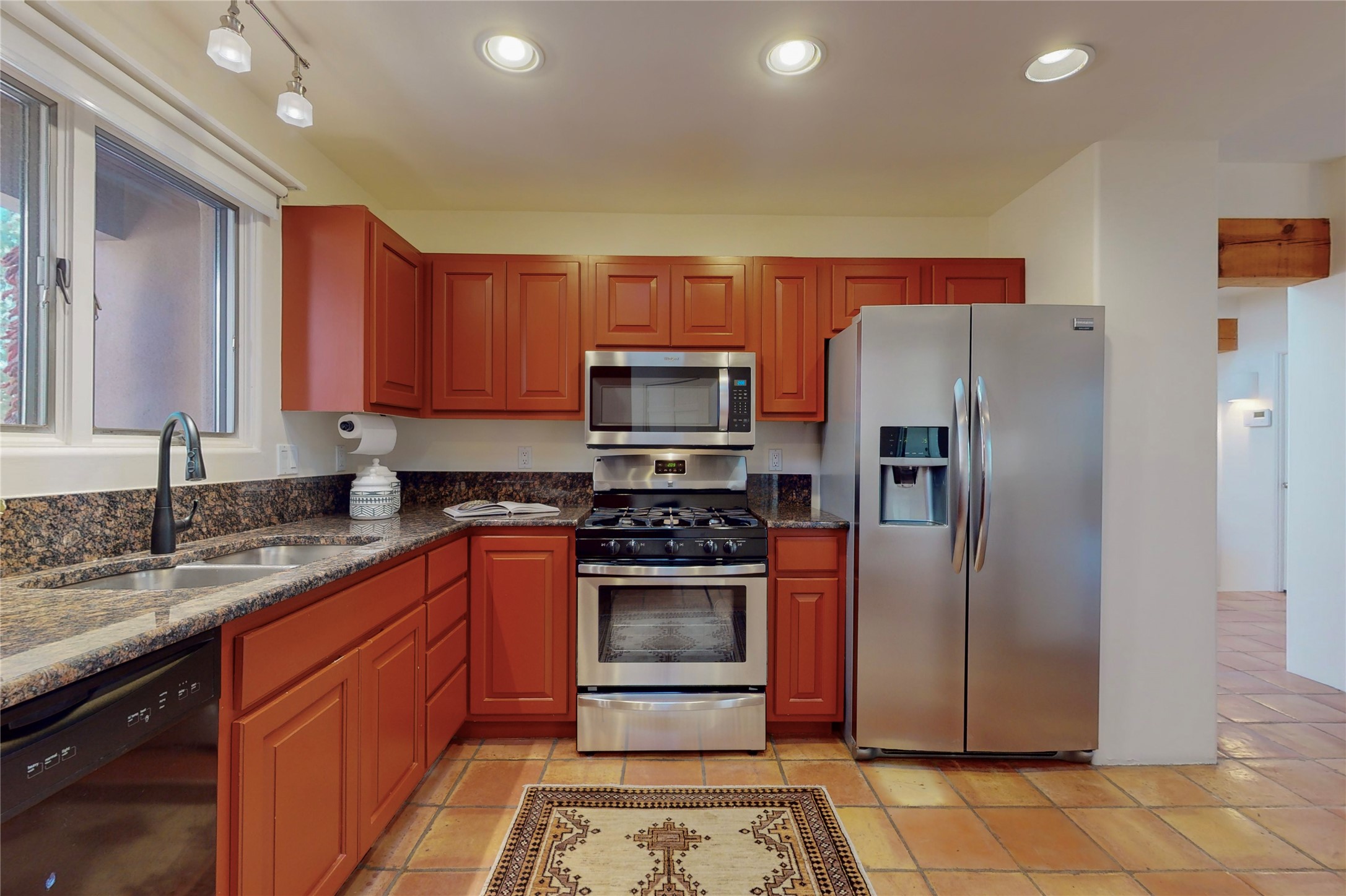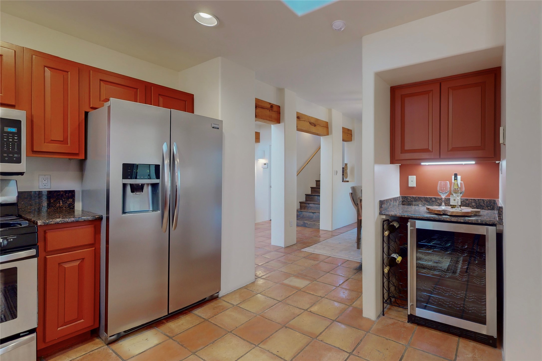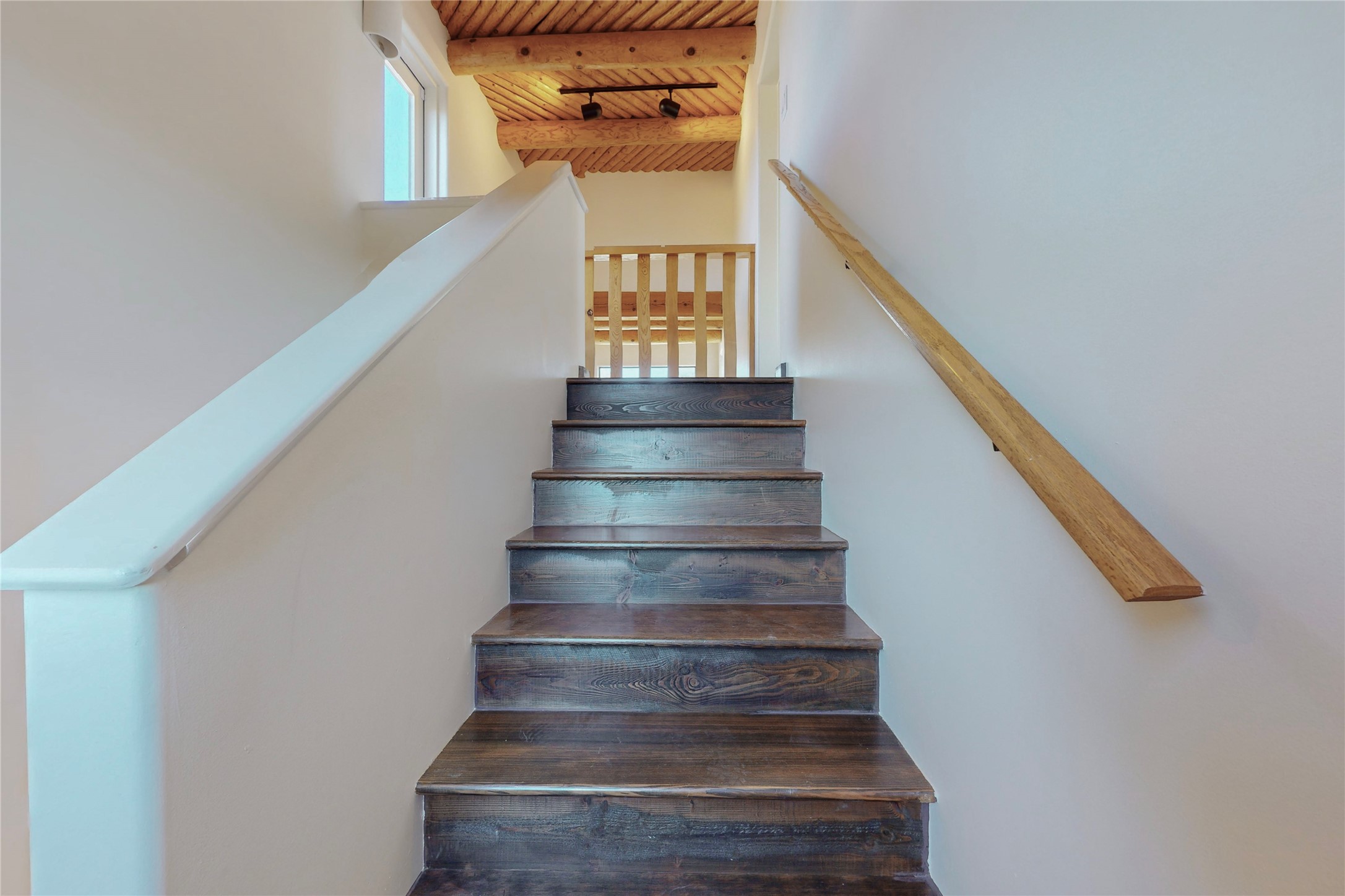 These homes are rarely available and so close to historic and downtown Santa Fe. This remodeled 2 story, 2 bedroom, 2 bath home has an open feeling with a lot of natural light. In keeping with the pueblo style, it has vigas, latillas and high ceilings. The home is on a cul-de-sac. Nice sunset views can be enjoyed from the back deck. There is formal and informal dining and a well-appointed spacious upgraded kitchen with a large pantry. An attached two car garage and Solar photovoltaic panels completes this offering. Estancia Primera has a clubhouse with a kitchen, an outdoor swimming pool, tennis and racquetball courts.