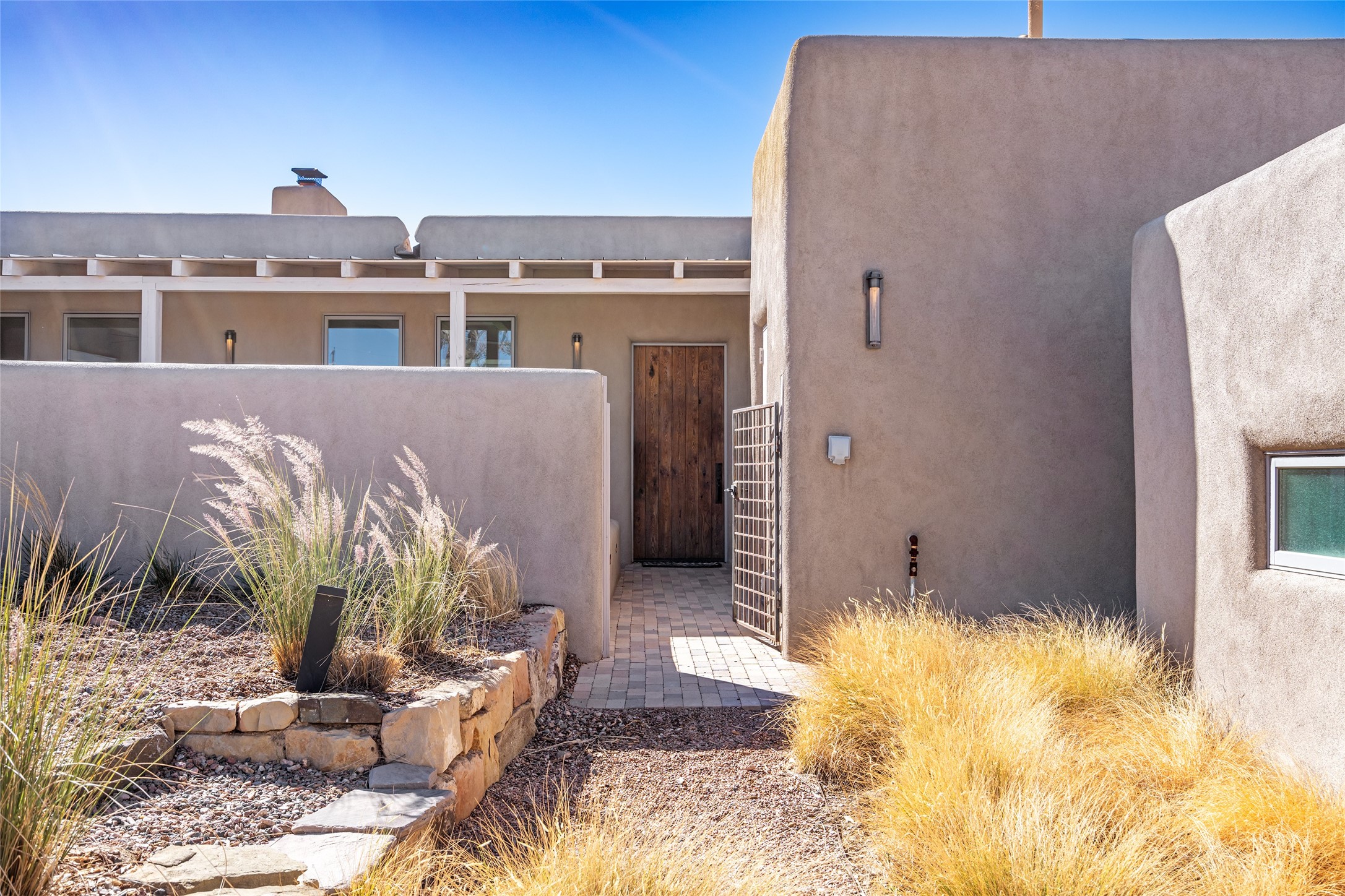 Spectacular adobe home and casita by custom builder Andrew Geer created from handmade adobe bricks in the historic village of Galisteo, offering luxurious living and majestic views overlooking the beautiful Cerro Pelon Ranch.Entertainers and chefs will adore the kitchen with Energy Star appliances, a Wolf dual fuel range oven, and incredible views for doing dishes. The home's large windows allow the outdoors in, creating a spacious feeling in the dining and main living areas in this open floor plan 2 bed, 2 bath main home. The contemporary design features modern amenities including an energy efficient HERS Index of 55, radiant heating, and satellite internet with whole house wi-fi, combined with old world accents such as brick floors and beam ceilings, with a sleek fireplace and intimate ambiance.Nature lovers will prize the abundant natural light from walls full of glass doors and picture windows, as well as a private courtyard and open back patio gazing across the epic landscape and dazzling skies. Artists, remote workers, and guests will love the adobe studio casita with office/flex nook and bath.This special property is a unique blend of past and present, an alluring oasis a world away yet within arms reach of the vibrance and culture of downtown Santa Fe.Experience its splendor today.