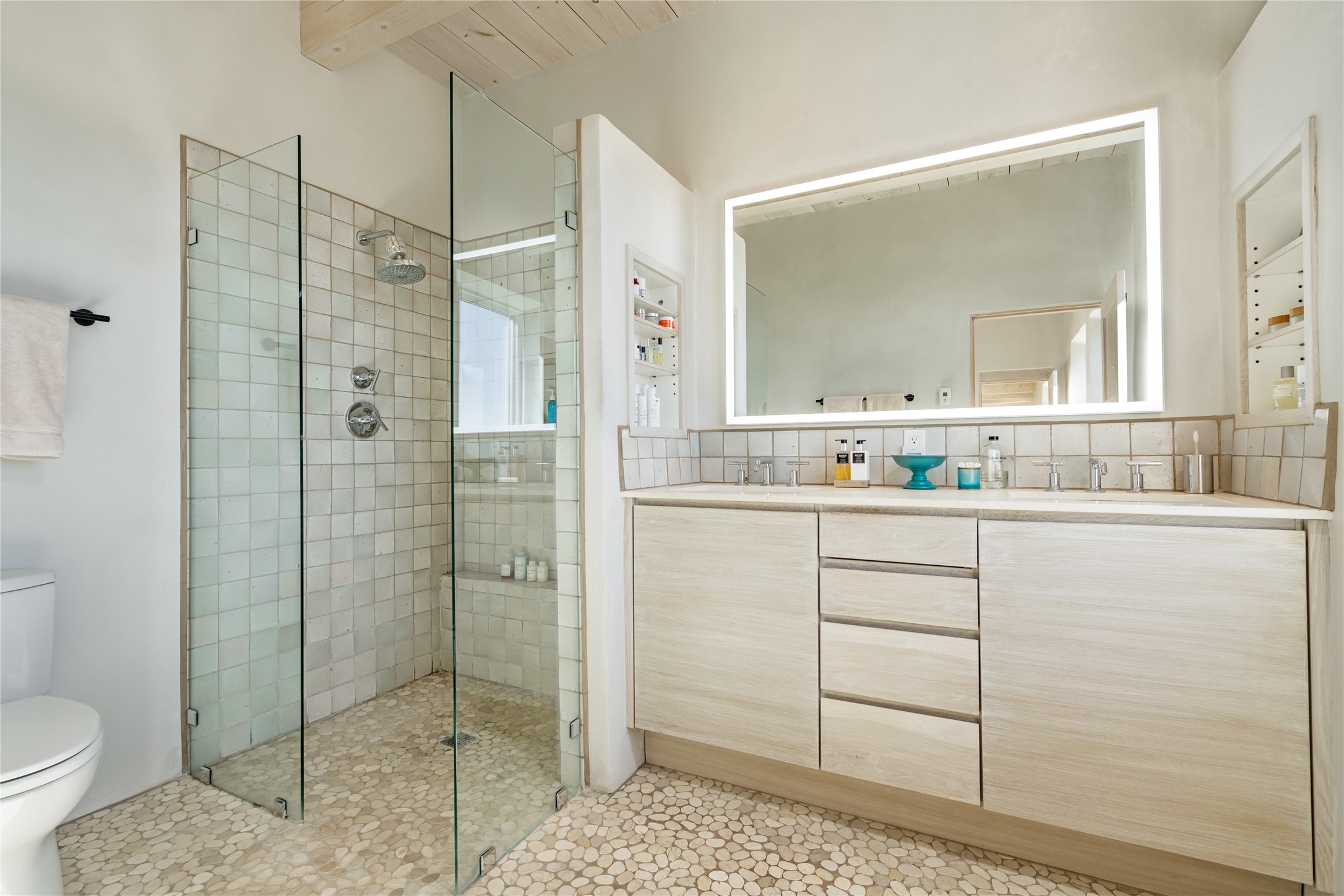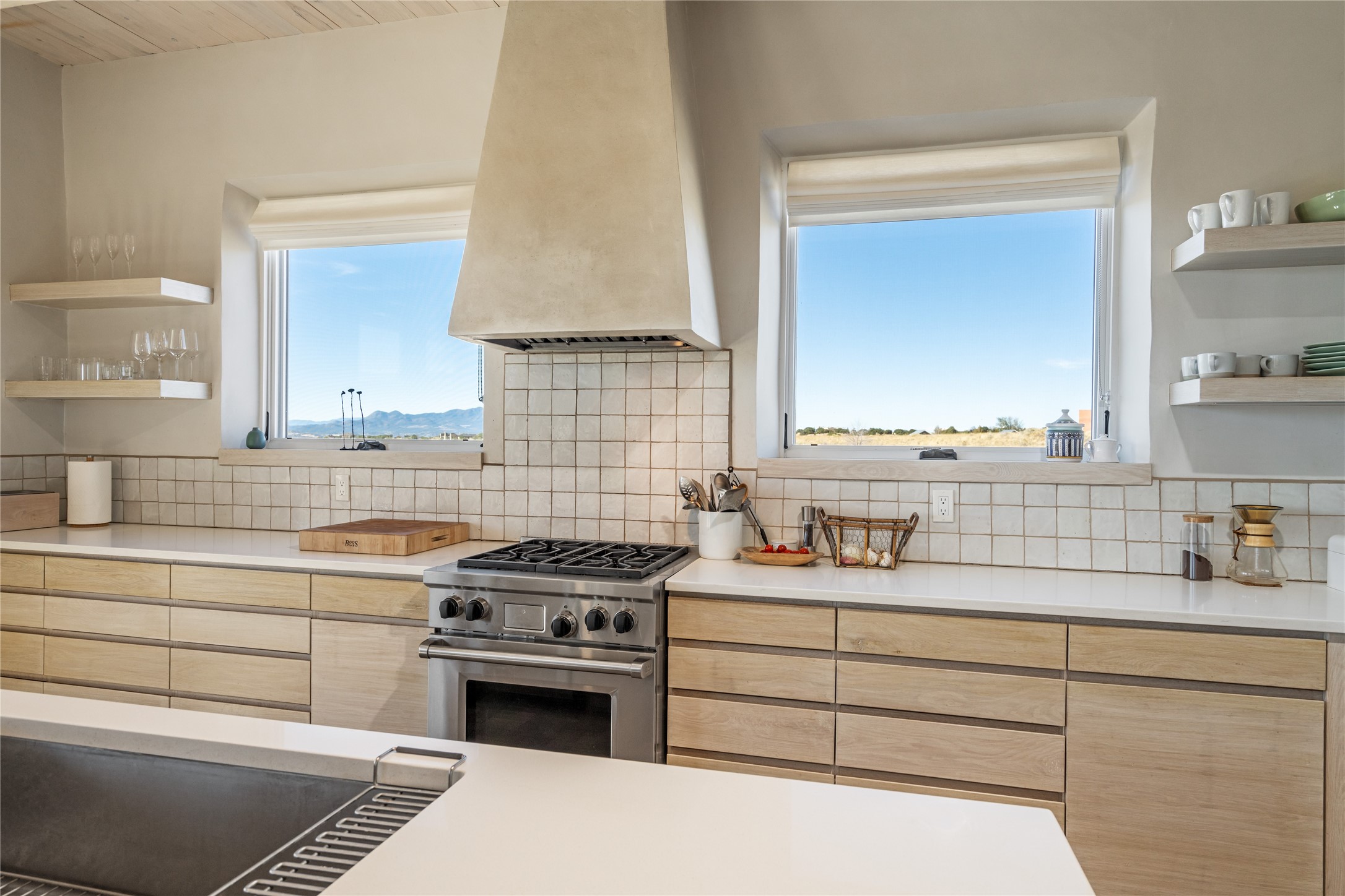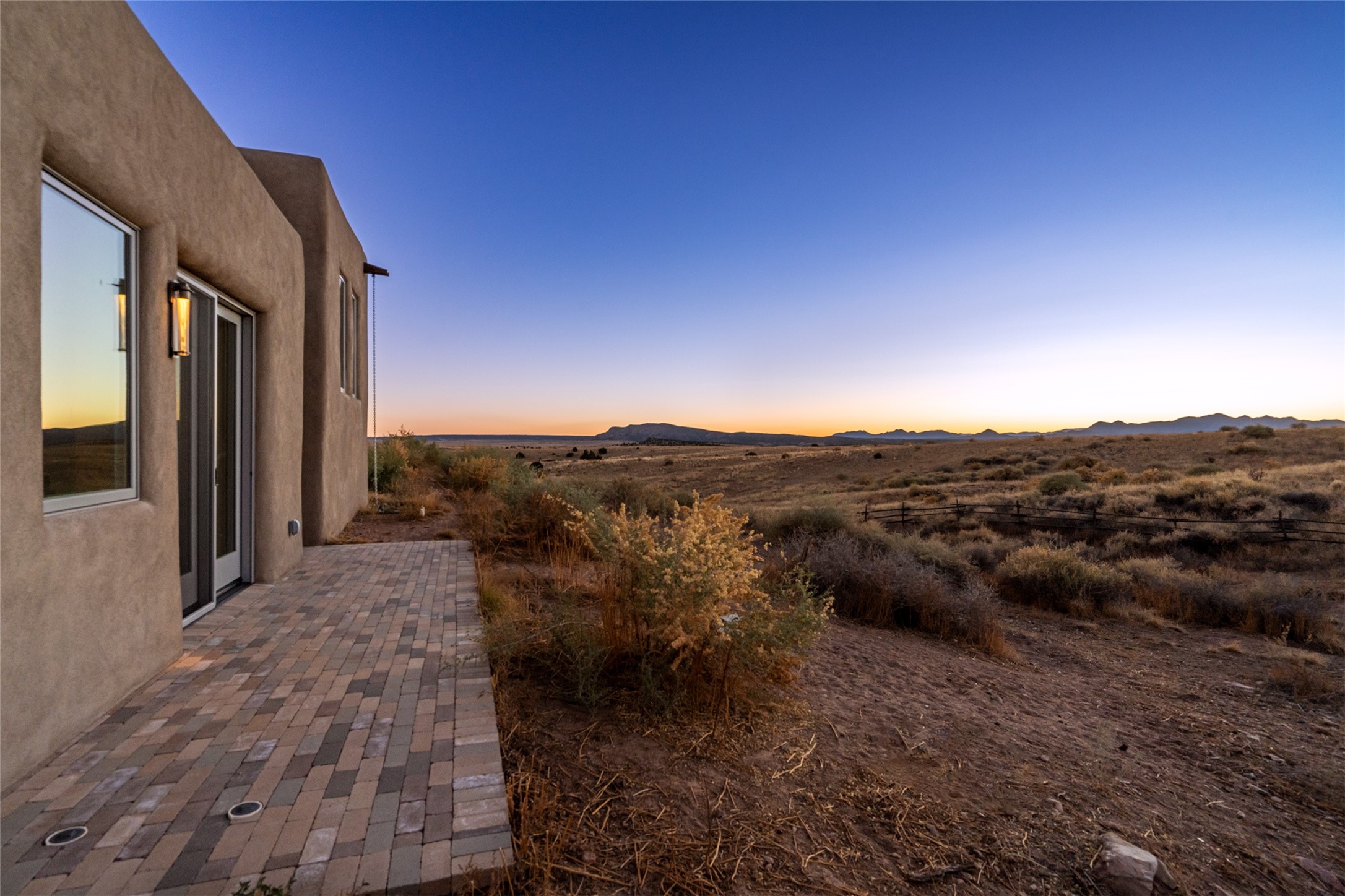Spectacular adobe home and casita by custom builder Andrew Geer created from handmade adobe bricks in the historic village of Galisteo, offering luxurious living and majestic views overlooking the beautiful Cerro Pelon Ranch.Entertainers and chefs will adore the kitchen with Energy Star appliances, a Wolf dual fuel range oven, and incredible views for doing dishes. The home's large windows allow the outdoors in, creating a spacious feeling in the dining and main living areas in this open floor plan 2 bed, 2 bath main home. The contemporary design features modern amenities including an energy efficient HERS Index of 55, radiant heating, and satellite internet with whole house wi-fi, combined with old world accents such as brick floors and beam ceilings, with a sleek fireplace and intimate ambiance.Nature lovers will prize the abundant natural light from walls full of glass doors and picture windows, as well as a private courtyard and open back patio gazing across the epic landscape and dazzling skies. Artists, remote workers, and guests will love the adobe studio casita with office/flex nook and bath.This special property is a unique blend of past and present, an alluring oasis a world away yet within arms reach of the vibrance and culture of downtown Santa Fe.Experience its splendor today.
