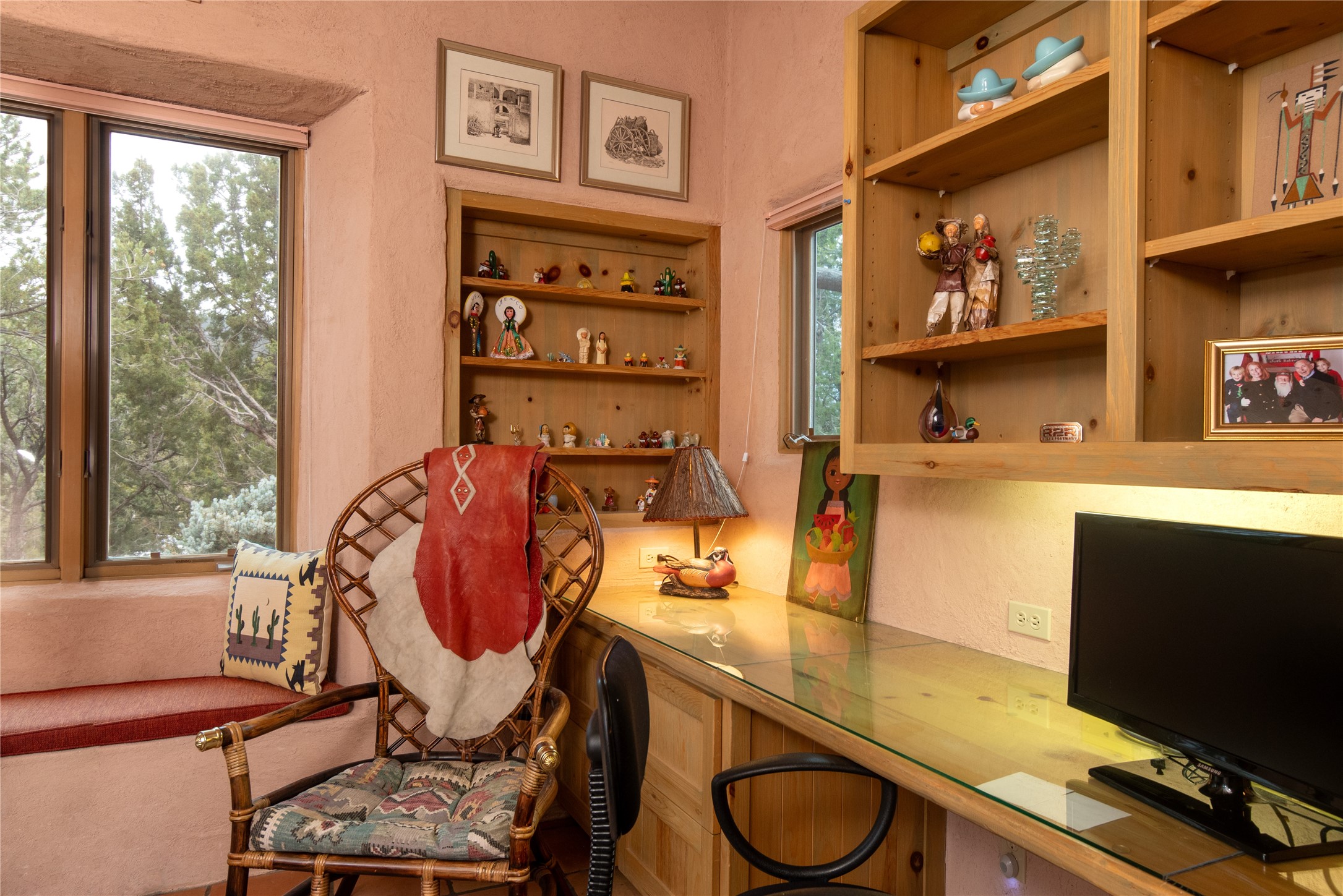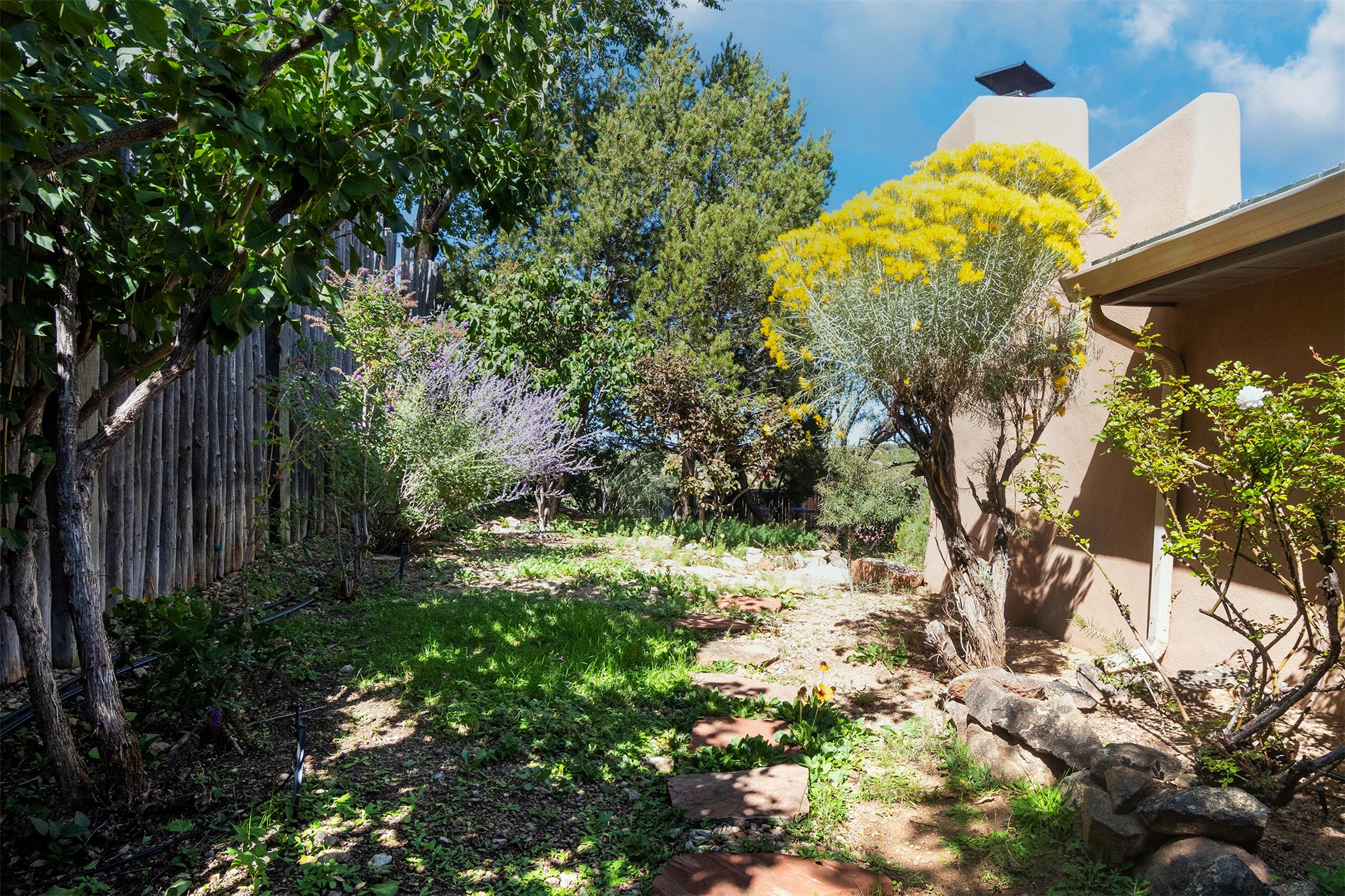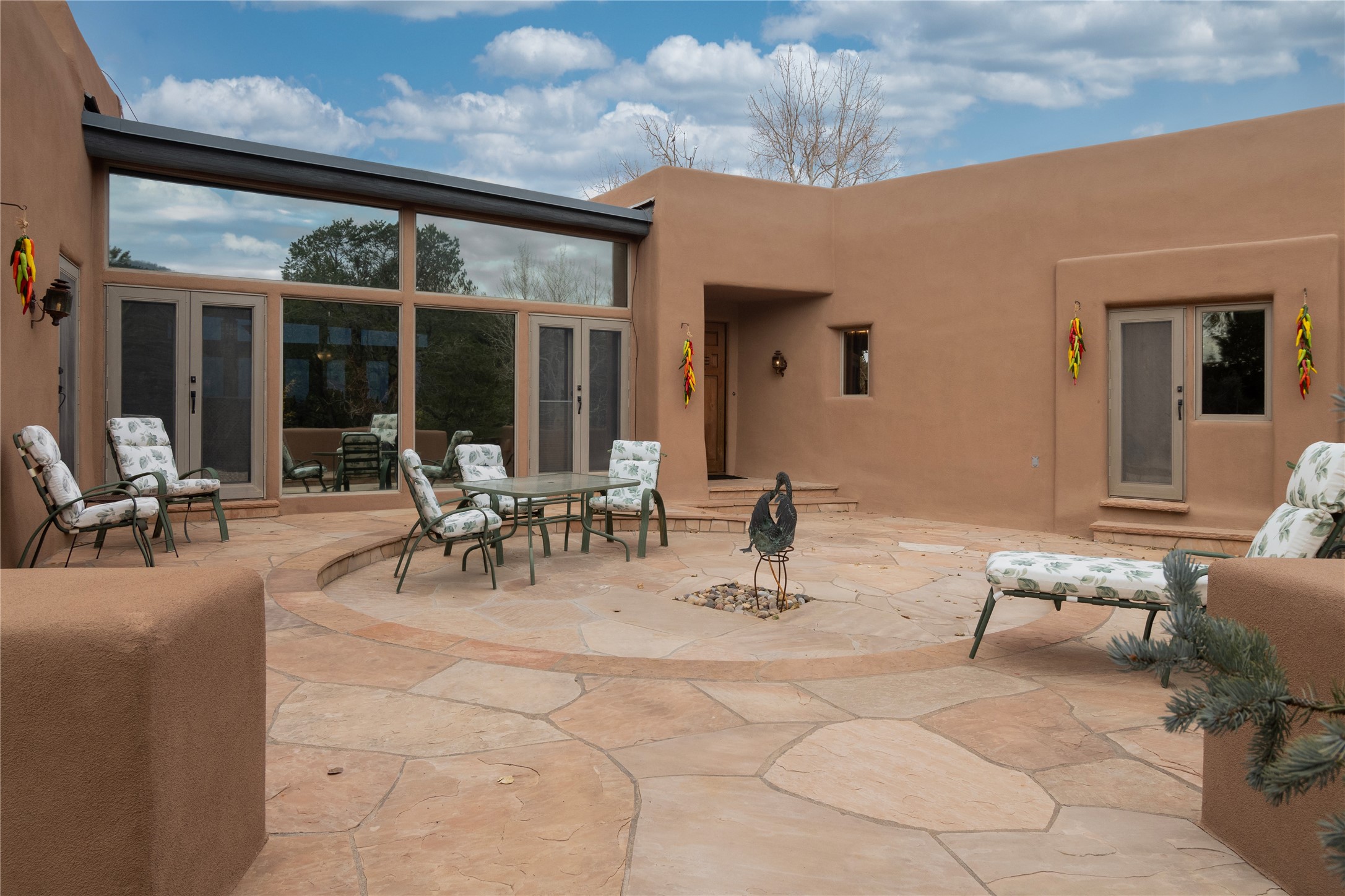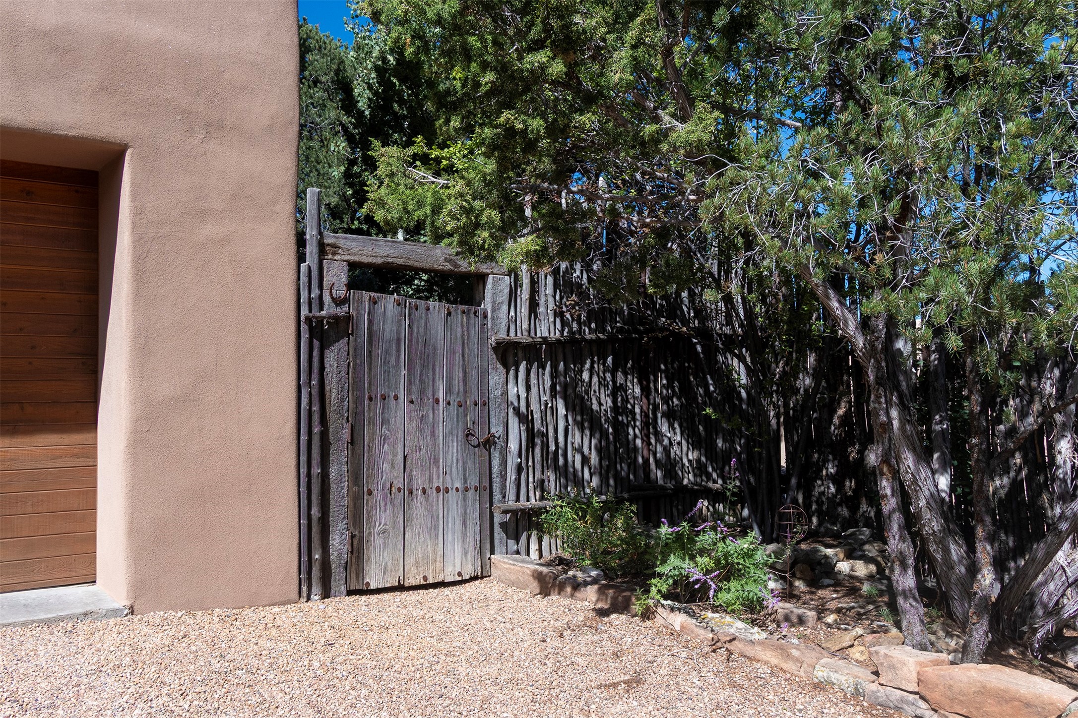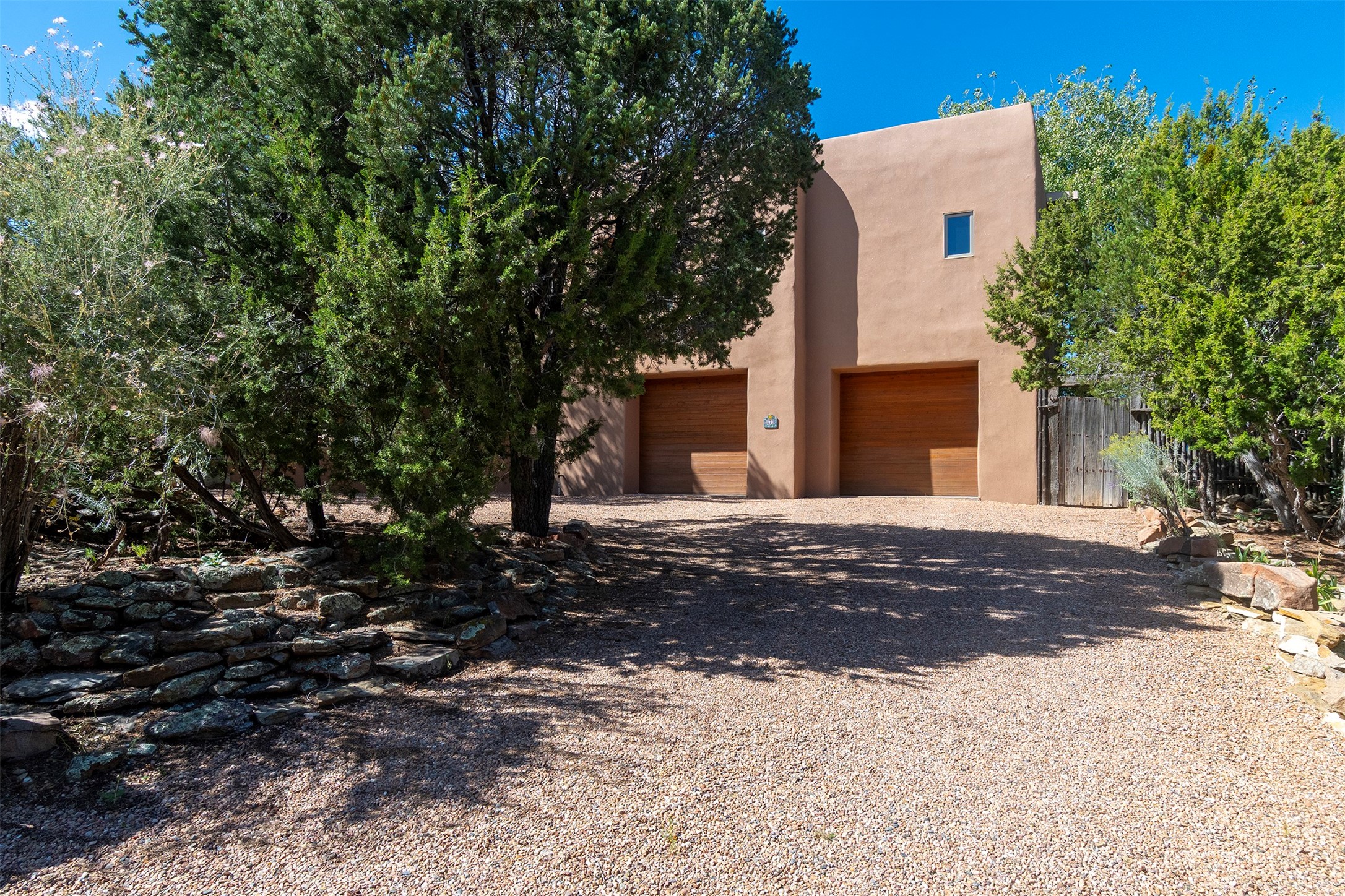 HIDDEN GEM IN THE OUTSTANDING EL CANON NEIGHBORHOOD - 4 BED | 5 BATH | 2 CARG - On a cul-de-sac tucked into the ridge top of a private canyon enclave in the upper east heights of the Cerro Gordo + Upper Canyon Road corridor, this 4 Bed, 5 Bath home boasts beautifulnorth east views of the Sangre de Cristos foothills and the Jemez Mountains.Designed by Robert Nestor the pueblo architecture and regional style make you feel right at home with the natural surroundings.This home is a true nest high in the foothills. A beautiful and dramatic entry features a calming fountain. Large vigas and beautiful decking, latillas, and split cedargrace the ceilings.Floor to ceiling glass doors on eitherside of the great room open this home up to the sky.With 4 bedrooms featuring en suite baths, this is a great home for hosting family or friends. This home has a wonderful layout with great separation of guest rooms from the main suite. One of the bedrooms is wonderfully situatedto double as an office and home gym. Mature trees and tiered rock garden beds make for privacy and a wonderful outdoor experience.Traditional Talavera tile kitchen and baths bring warmth and craft to this pueblo charmer.The kitchen is complete with breakfast nook, desk center, large kitchen island, hardwood cabinetry and walk-through pantry.The outdoor covered portal overlooking the hillsides is perfect for morning coffee or grilling dinner. Saltillo floors, skylights, and wood burning fireplaces bring comfort and brightness. A wonderfully handmade New Mexican tin chandeliersand sconce enhance the entry and guest wing.Sandstone patio and garden paths merge beautifully with the landscape, and a hot tub deck provides relaxation for soaking in the sun. While providing great privacy this home is only a short drivethrough the beautiful canyon into town and makes daily outings easy and pleasant. Don't miss the chance to own this slice of traditional pueblo living with views on the eastside!