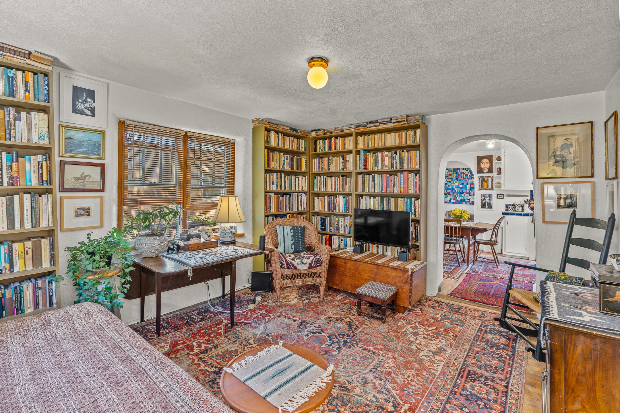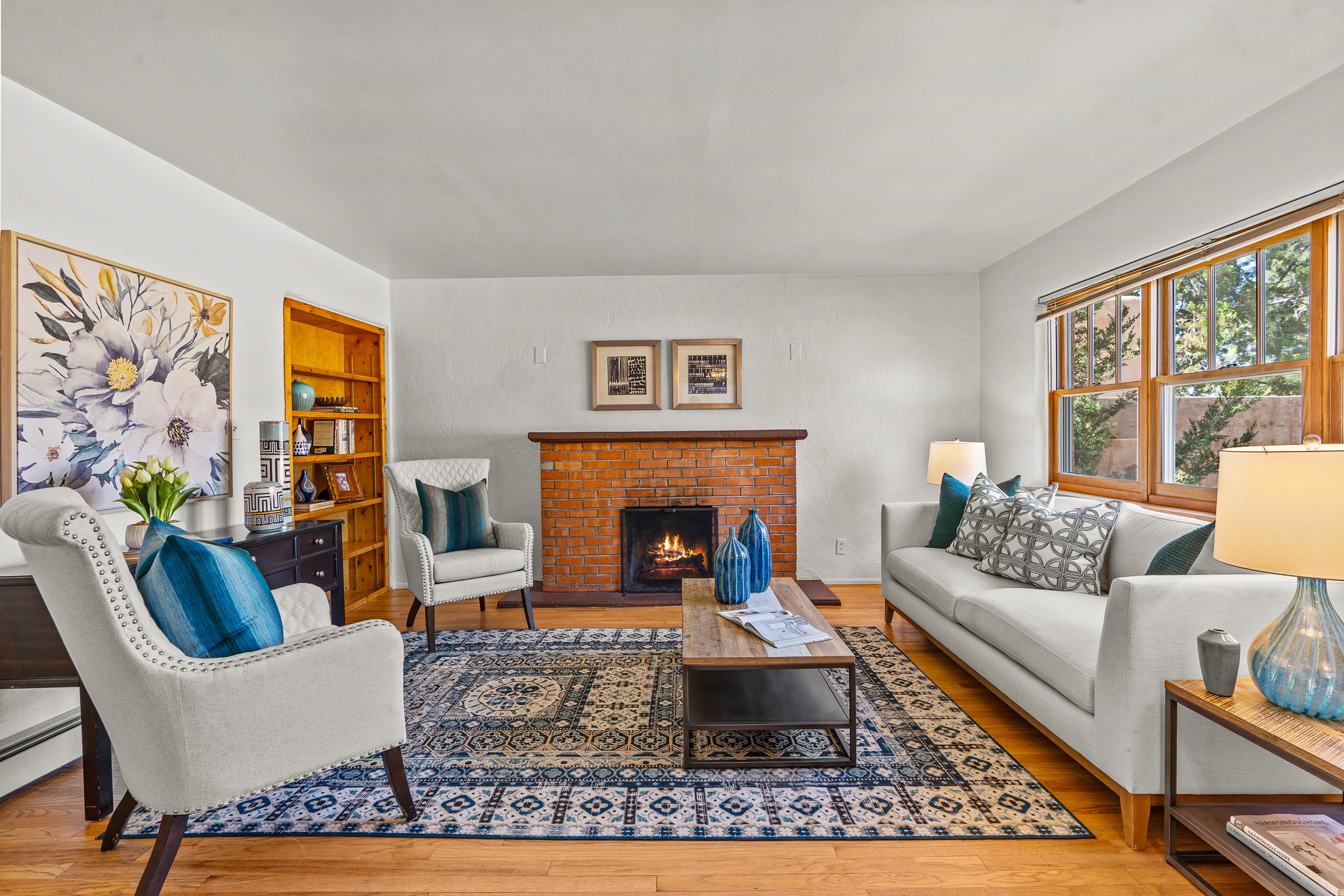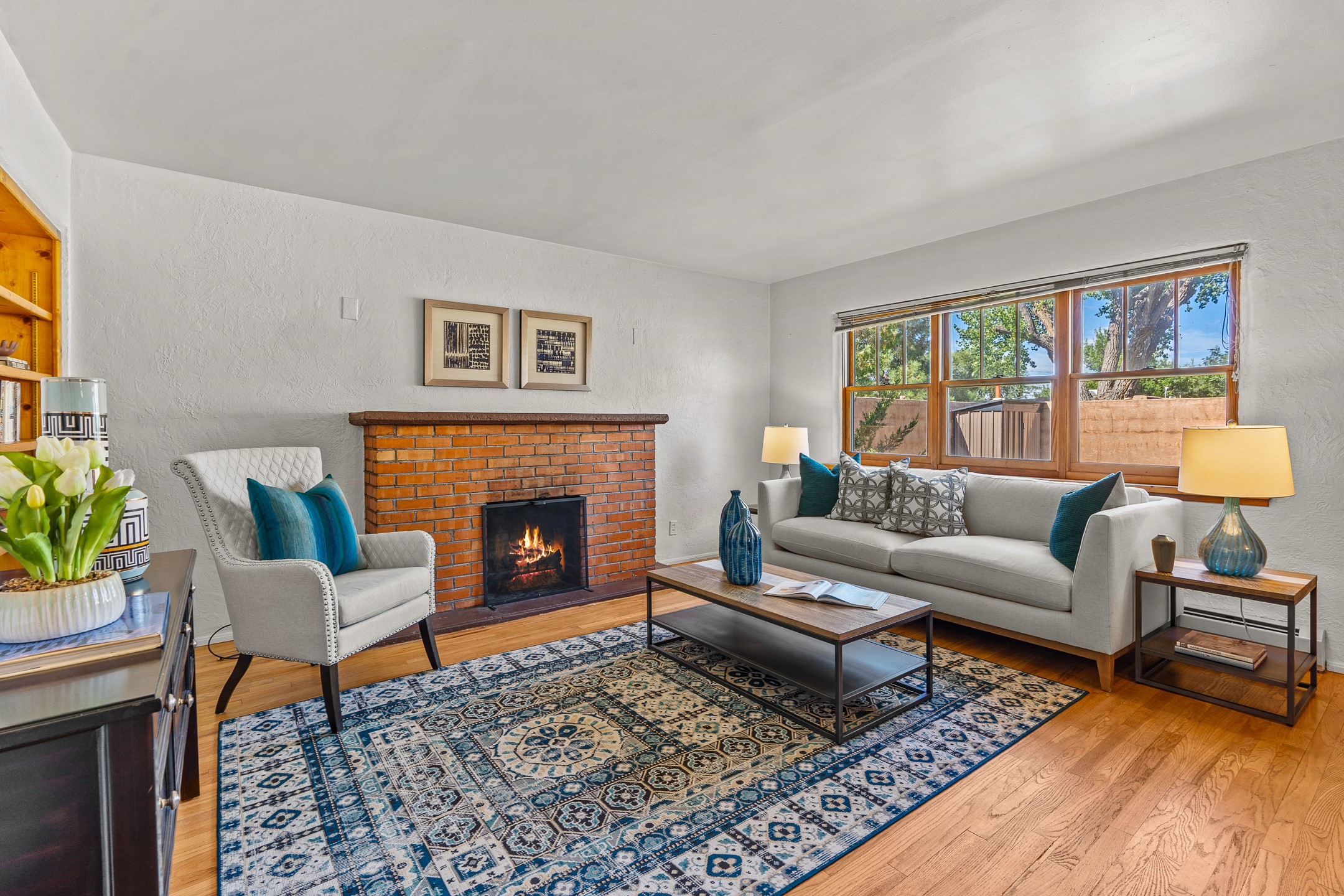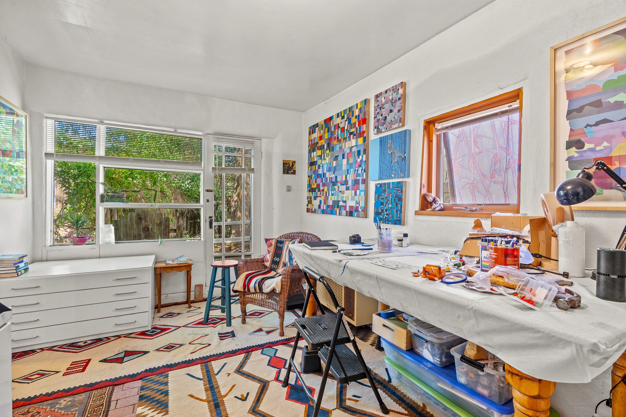 Charming classic authentic Adobe 3 bedroom, one bath main residence with a free-standing one bedroom, one bath guest house, "casita" in the thriving Railyard district. Architectural features include hard wood floors, a wood burning fireplace, newer wood and metal clad windows; individual private courtyards. Newer TPO roof - 2023 (with a transferrable warranty). kitchens with abundant cabinets; washers and dryers and separate meters for electric and gas. Three Off-street parking spaces and a carport. New stucco on the front wall and interior courtyard as of 9-16-25. Located on the Acequia trail that connects to the Farmers Market, Whole Foods, Cafecito, and Counter Culture .... the perfect urban lifestyle down a quiet side street from ultra popular Tune-up cafe and the new Leo's Thai cafe .investor opportunity with current tenant in guest house and rental records available.
