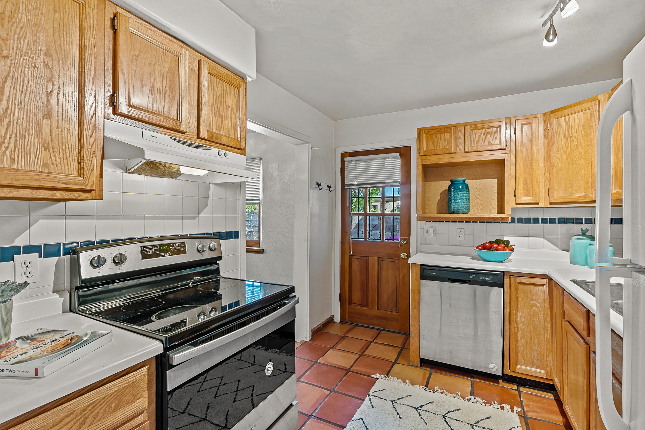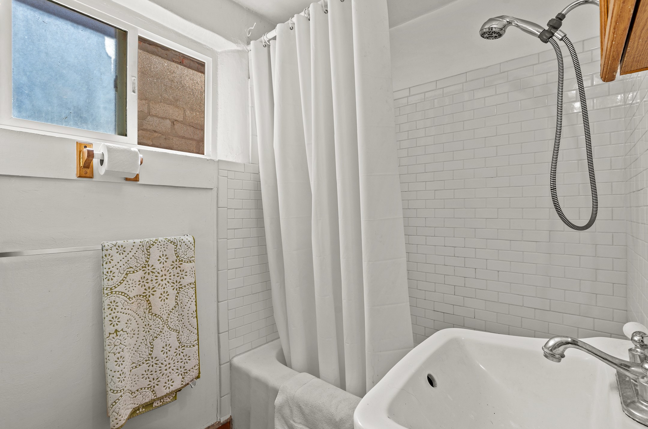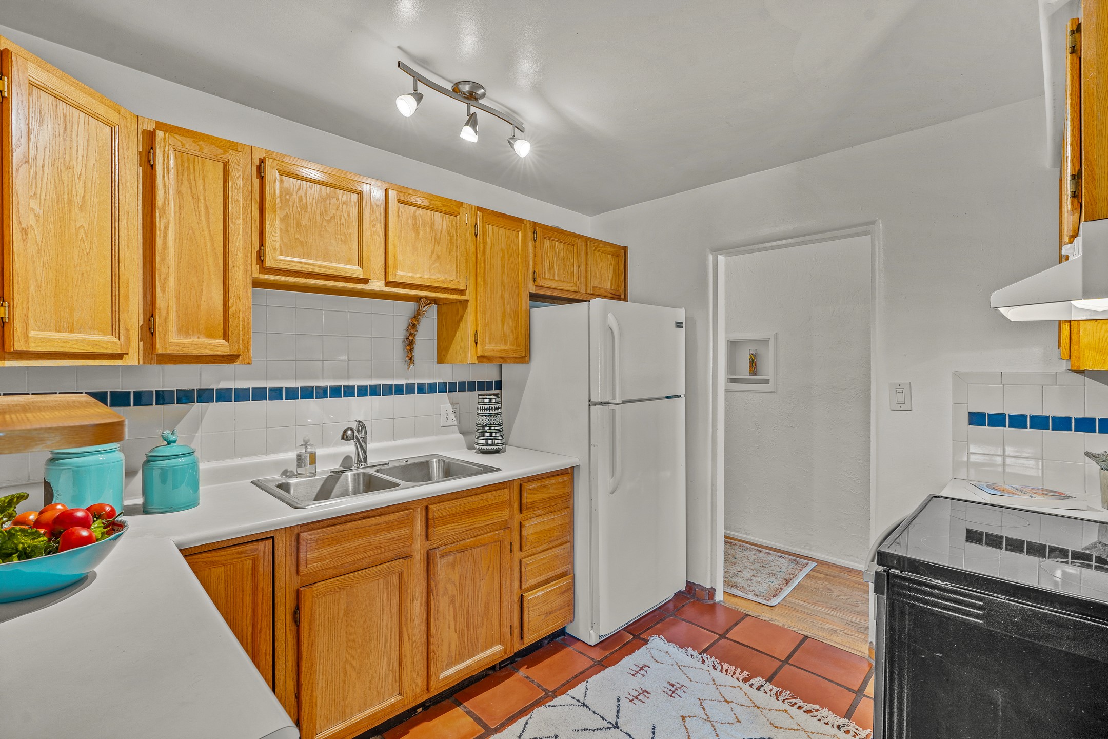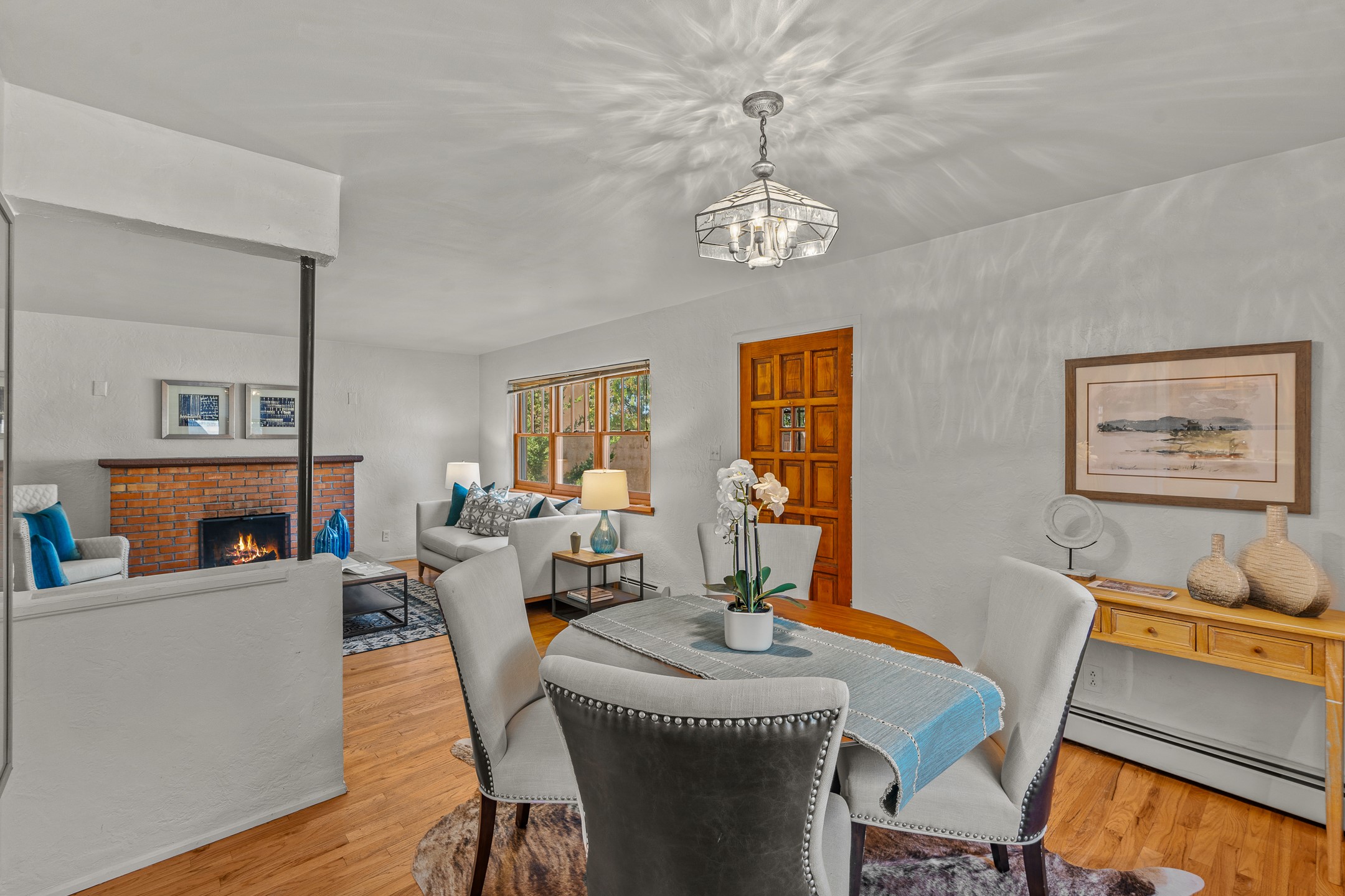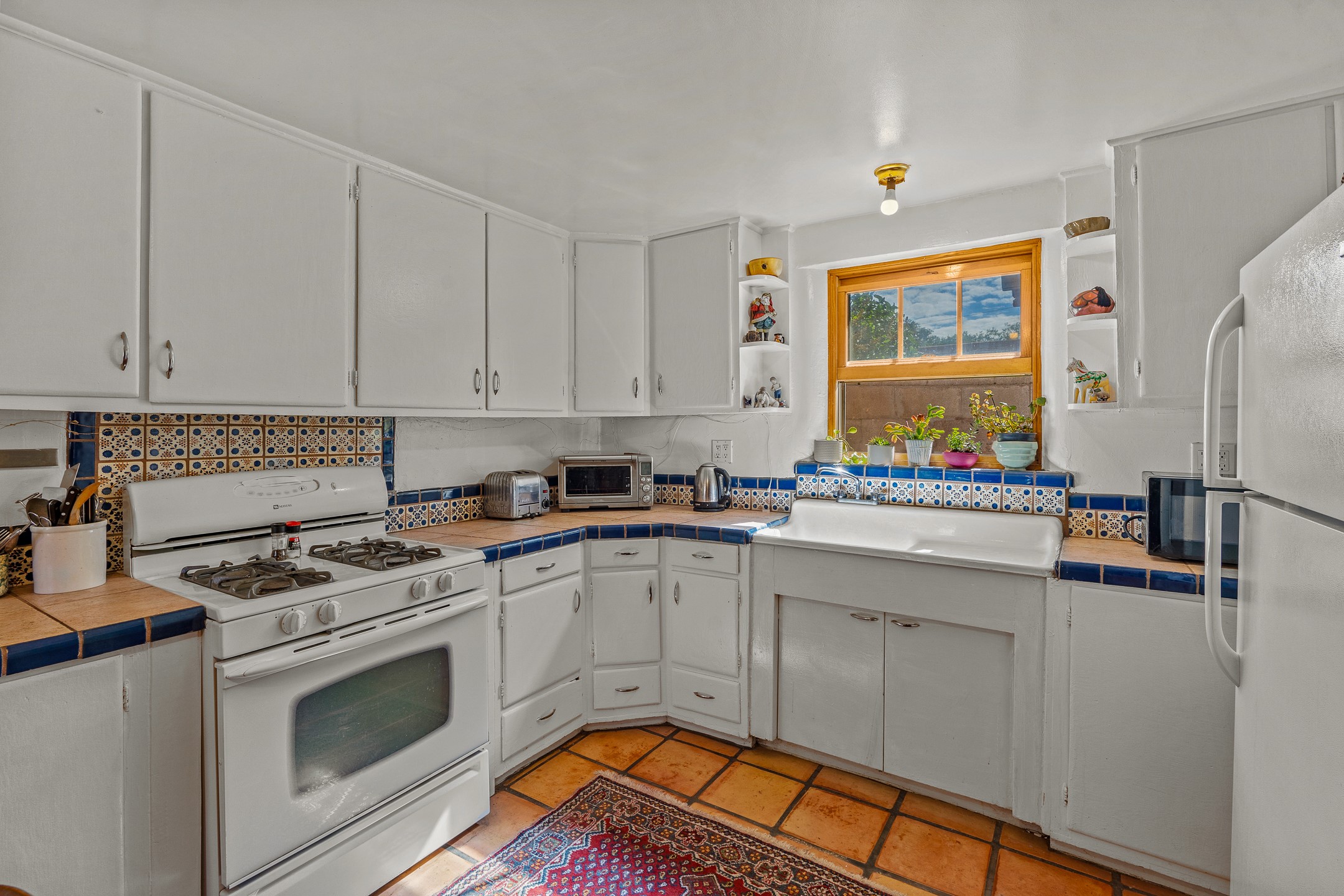 Charming classic authentic Adobe 3 bedroom, one bath main residence with a free-standing one bedroom, one bath guest house, "casita" in the thriving Railyard district. Architectural features include hard wood floors, a wood burning fireplace, newer wood and metal clad windows; individual private courtyards. Newer TPO roof - 2023 (with a transferrable warranty). kitchens with abundant cabinets; washers and dryers and separate meters for electric and gas. Three Off-street parking spaces and a carport. New stucco on the front wall and interior courtyard as of 9-16-25. Located on the Acequia trail that connects to the Farmers Market, Whole Foods, Cafecito, and Counter Culture .... the perfect urban lifestyle down a quiet side street from ultra popular Tune-up cafe and the new Leo's Thai cafe .investor opportunity with current tenant in guest house and rental records available.