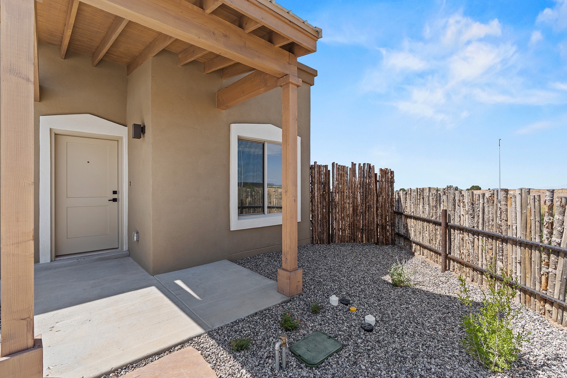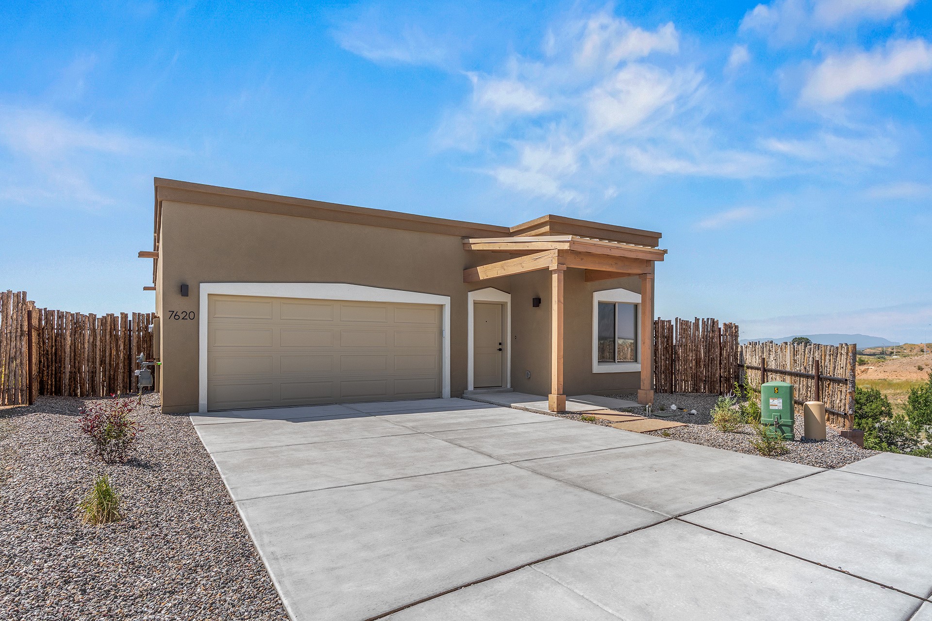 **Newly Completed and Move-In Ready** Introducing El Sol, an exceptional 3-bedroom, 2-bathroom residence situated on a premium corner lot with breathtaking views of the Sandia Mountains. This home boasts the most upgrades in the community. Highlights include an expansive side patio to enhance the Sandia vistas, 42" upgraded kitchen cabinets, a stylish kitchen backsplash, enhanced quartz countertops, tile flooring in the great room, premium carpeting in the bedrooms, upgraded tile in all tiled areas, and luxurious owner's bath with an upgraded shower surround.The great room has soaring 9-foot vaulted ceilings bathed in natural light. The gourmet kitchen features upgraded quartz countertops, stainless steel appliances, and a pantry. Bedrooms offer 9-foot ceilings, ceiling fans, and plush carpeting, with the owner's suite boasting a walk-in closet. Outdoor living shines with covered portals and a finished insulated garage, while the exterior showcases timeless territorial-style architecture, and decorative lighting. 10-year roof warranty. Arroyo Oeste offers thoughtfully designed residences ranging from 1,106 to 1,783 square feet, featuring modern and traditional styles with stunning mountain views. Choose from two to four-bedroom floor plans, with options for single-story or two-story layouts. Each home boasts spacious kitchens with breakfast bars, solid wood cabinetry, stainless steel appliances, quartz countertops, and tile flooring. The community also provides low-maintenance front yard landscaping, private outdoor spaces, and access to nearby walking trails.