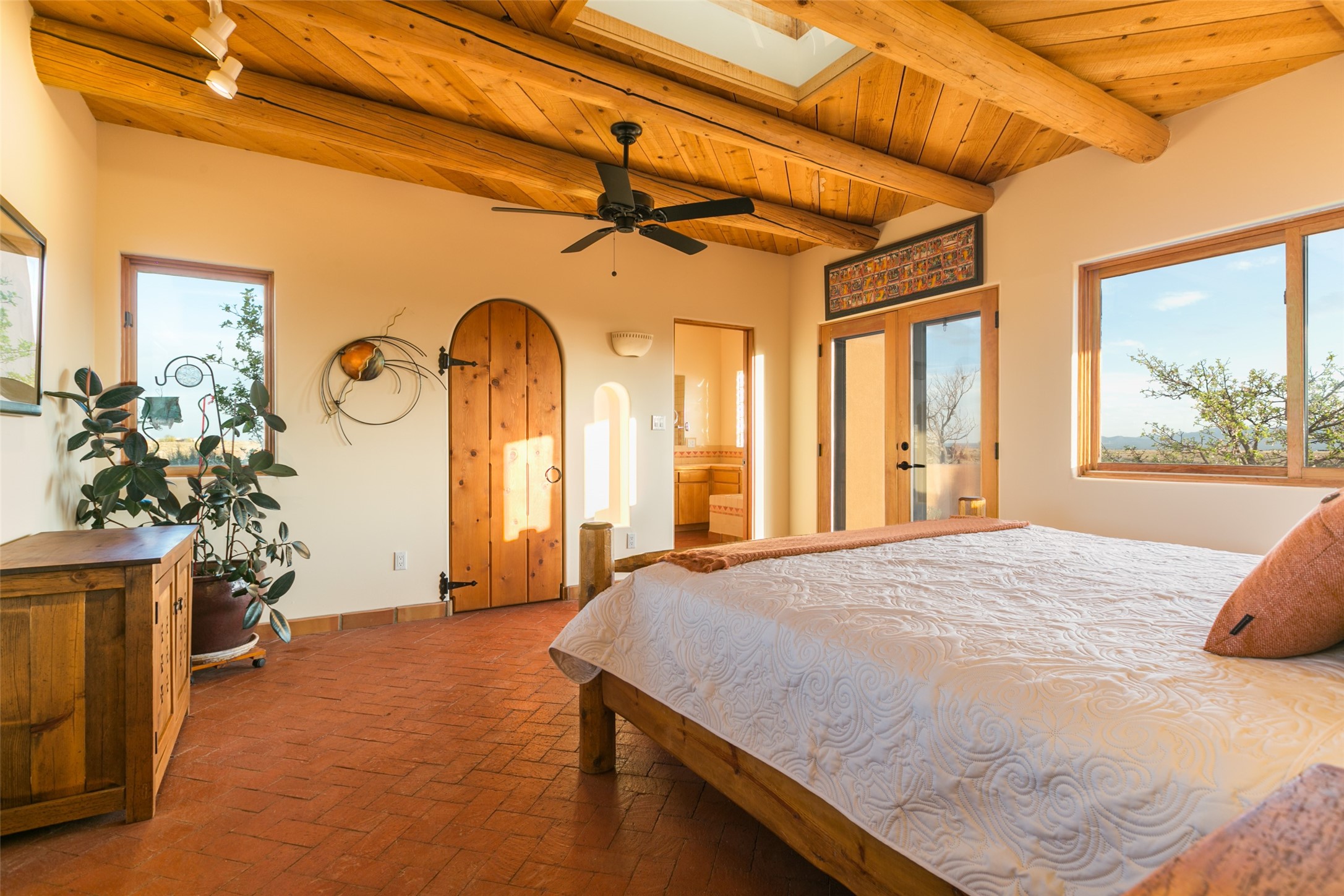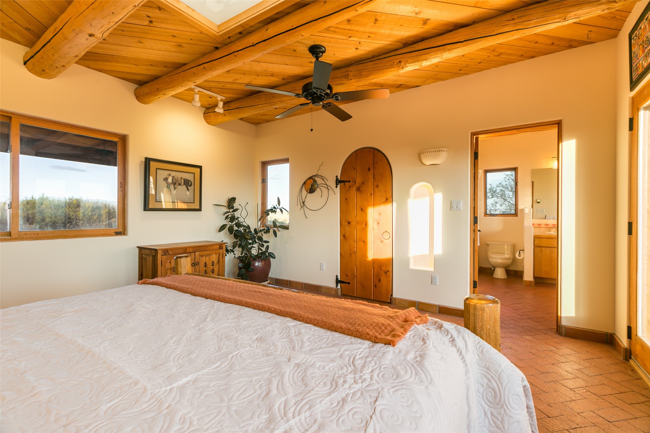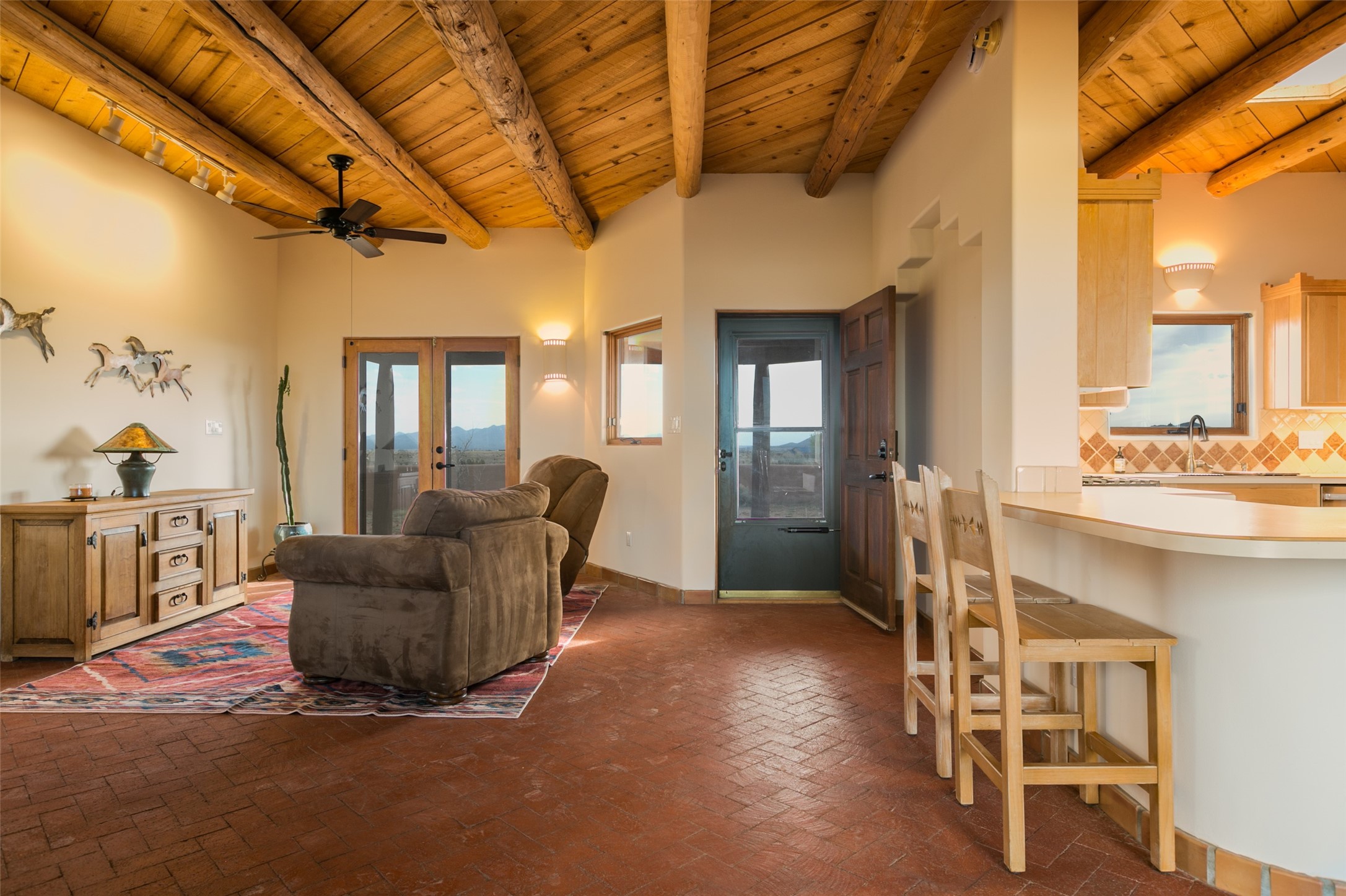 A beautiful 2 bedroom home on 15 plus acres with spectacular 360 degree mountain views. See the sunrise from one patio and the sunset from the other! Established pine and fruit trees and generous set-back from the road add to privacy in this access-controlled gated community. Inside, the wood ceilings, brick floor and wall detailing compliment the incredible views through the huge windows and French doors. Kitchen appliances are brand new. The HOA allows for a barn and fenced in area to keep your horses. Trails that weave through the neighborhood invite you to hop on your horse and explore.The house was built in 1994 and is on a well with good flow volume and own septic system. City gas and electrical. Inspection report is available. Price is taking necessary improvements into consideration.