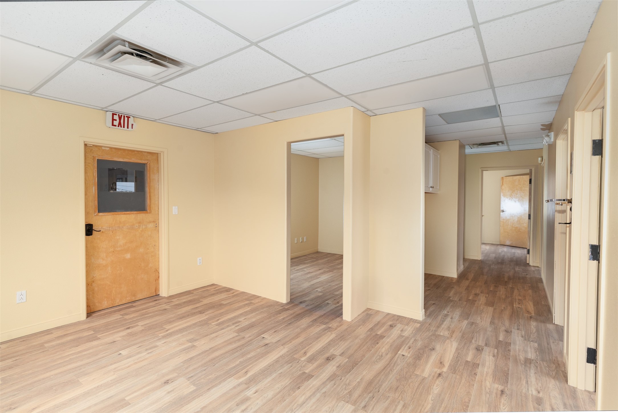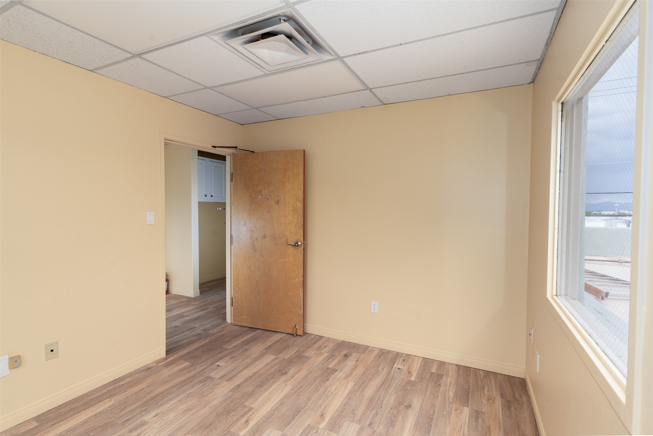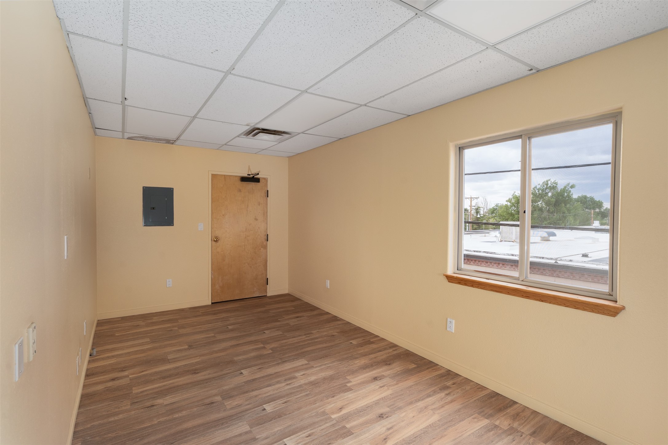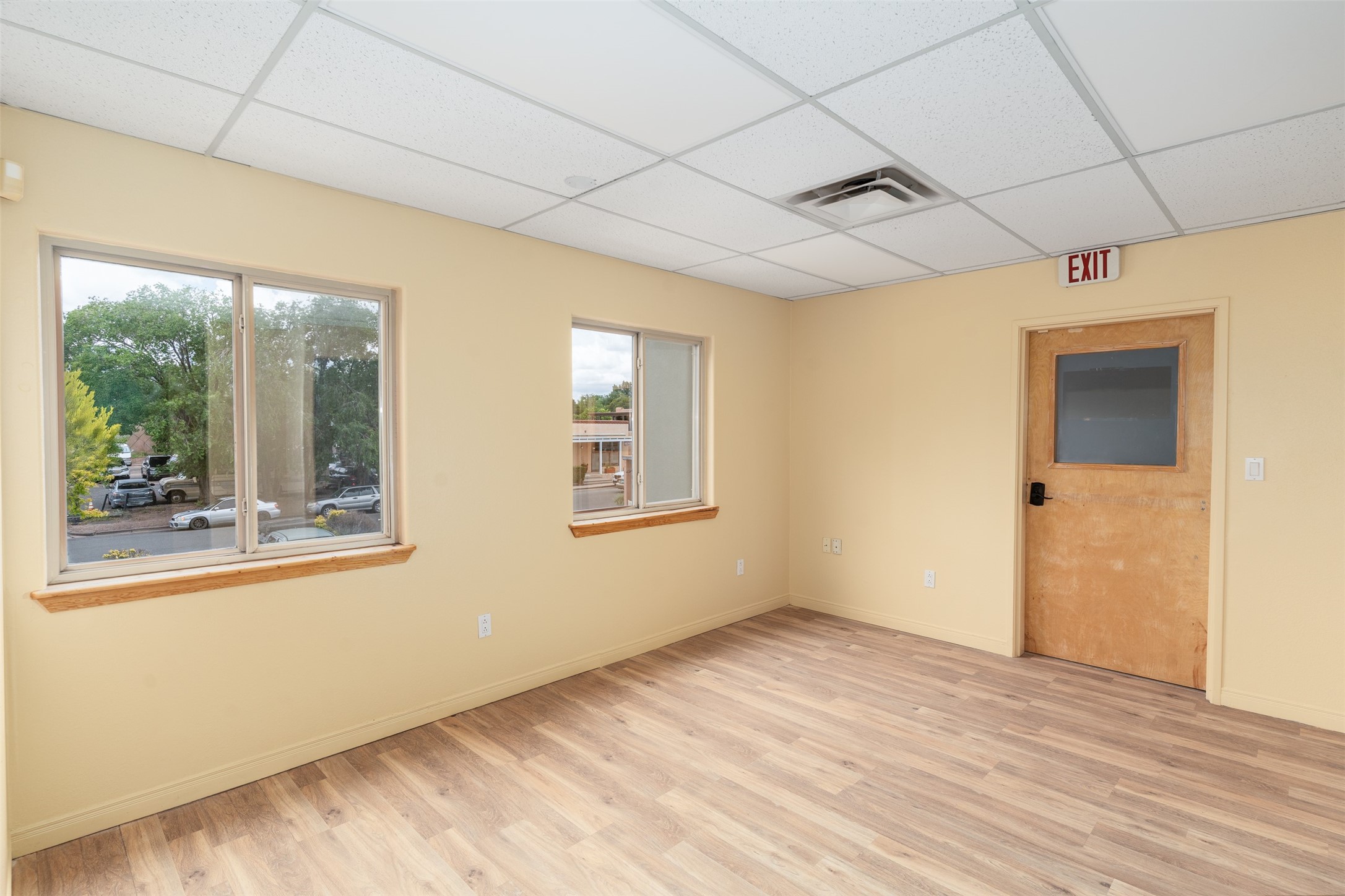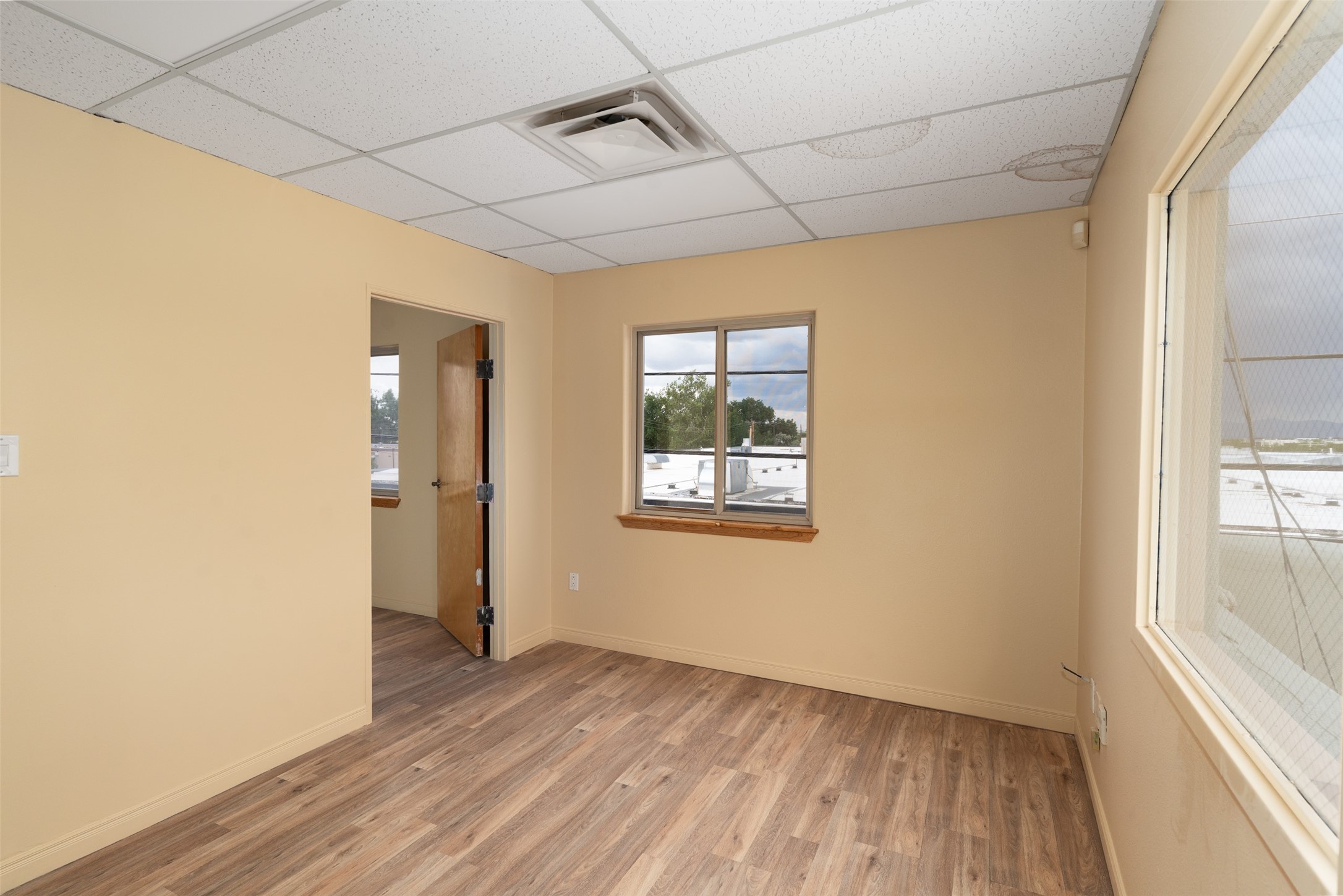 This freshly painted second-floor commercial space is perfect for office or retail use and is just minutes from downtown Santa Fe. The unit features five individual offices, a convenient storage closet, and a small kitchenette to meet your business needs. This space also has a private restroom for added convenience. Ideal for professionals or retailers seeking a prime location with a functional layout.