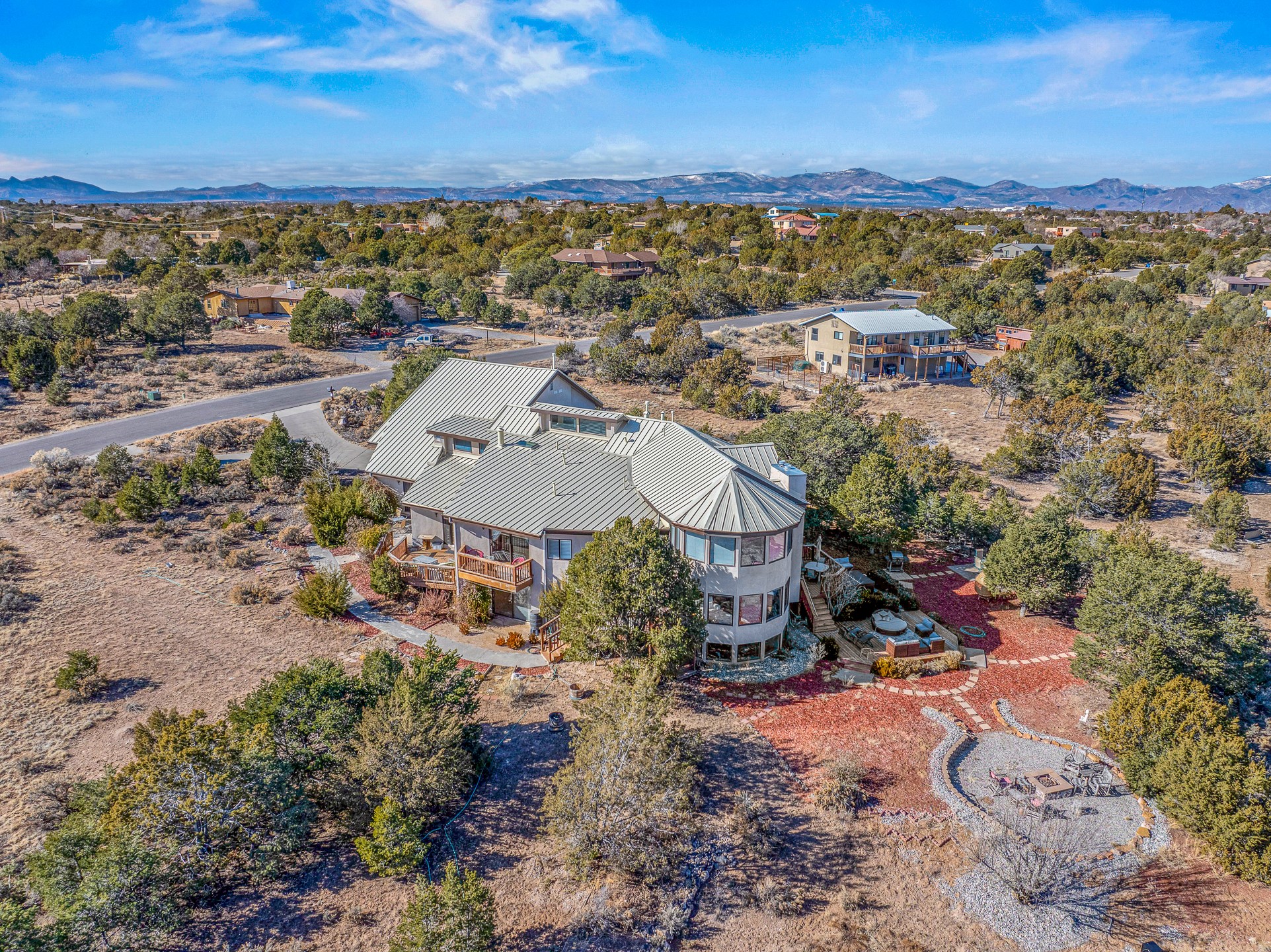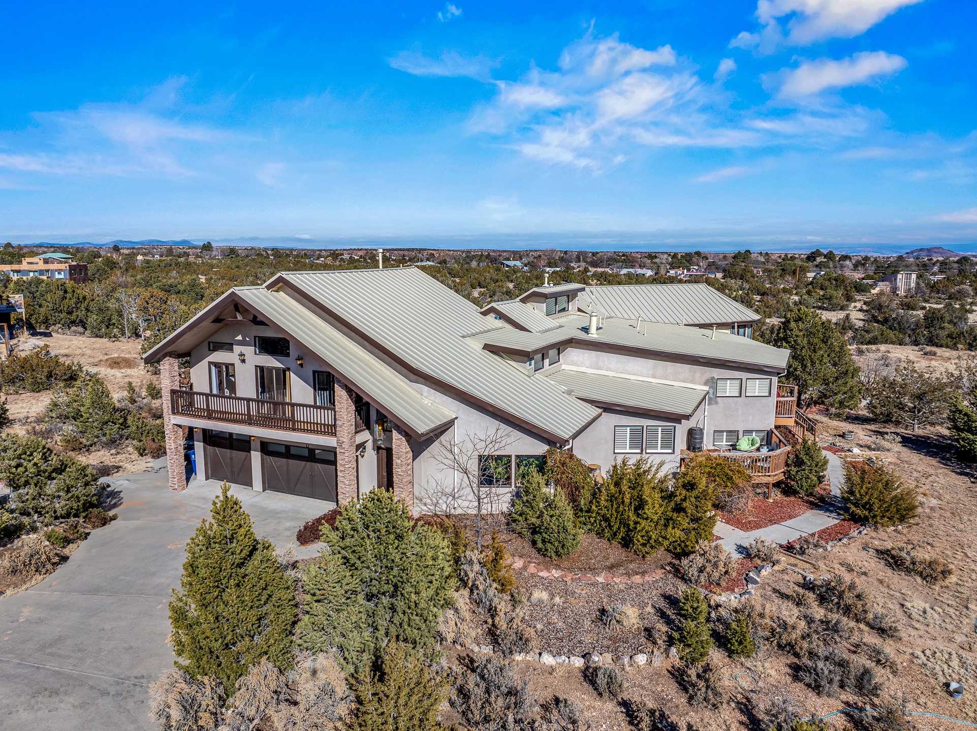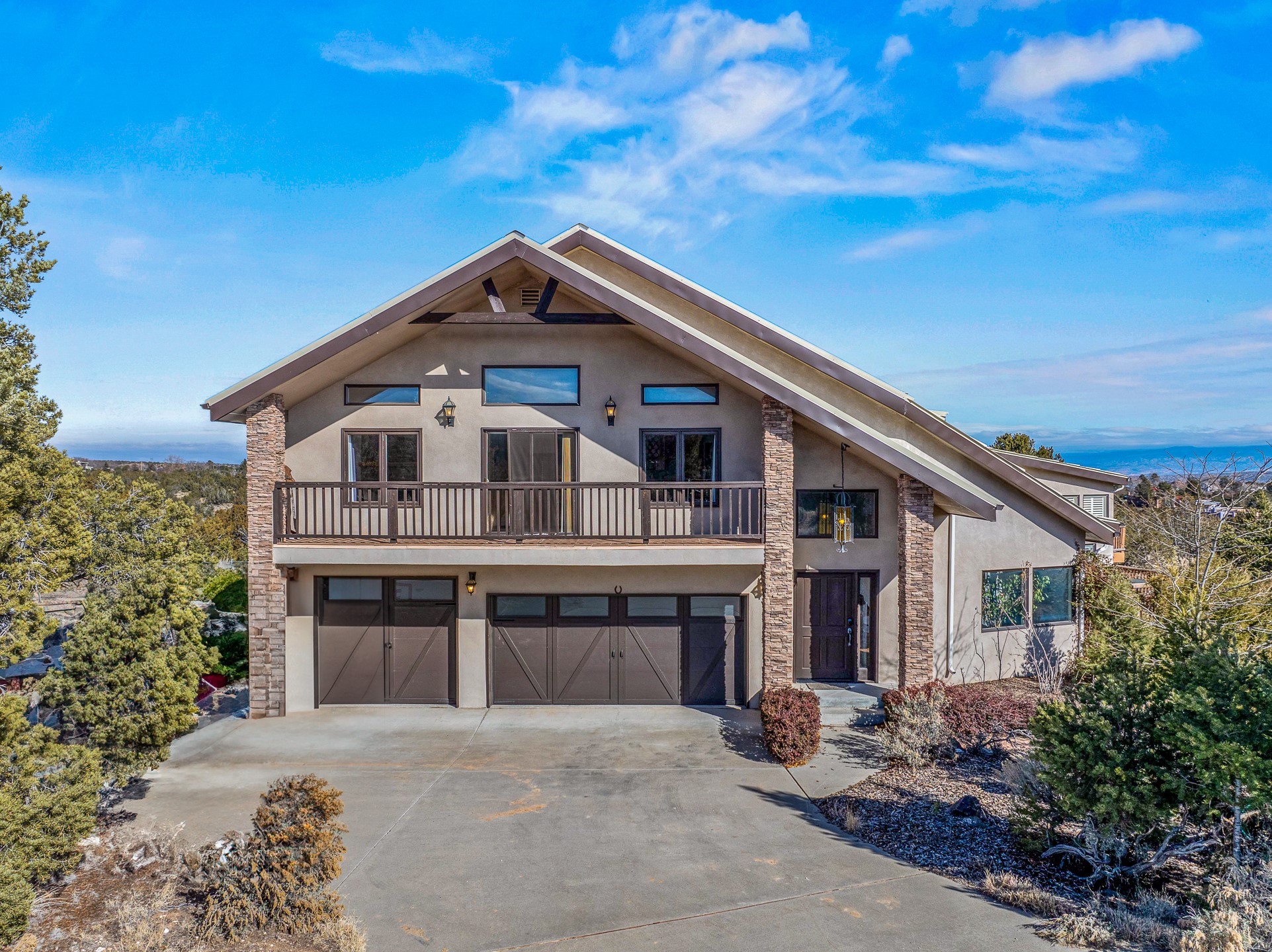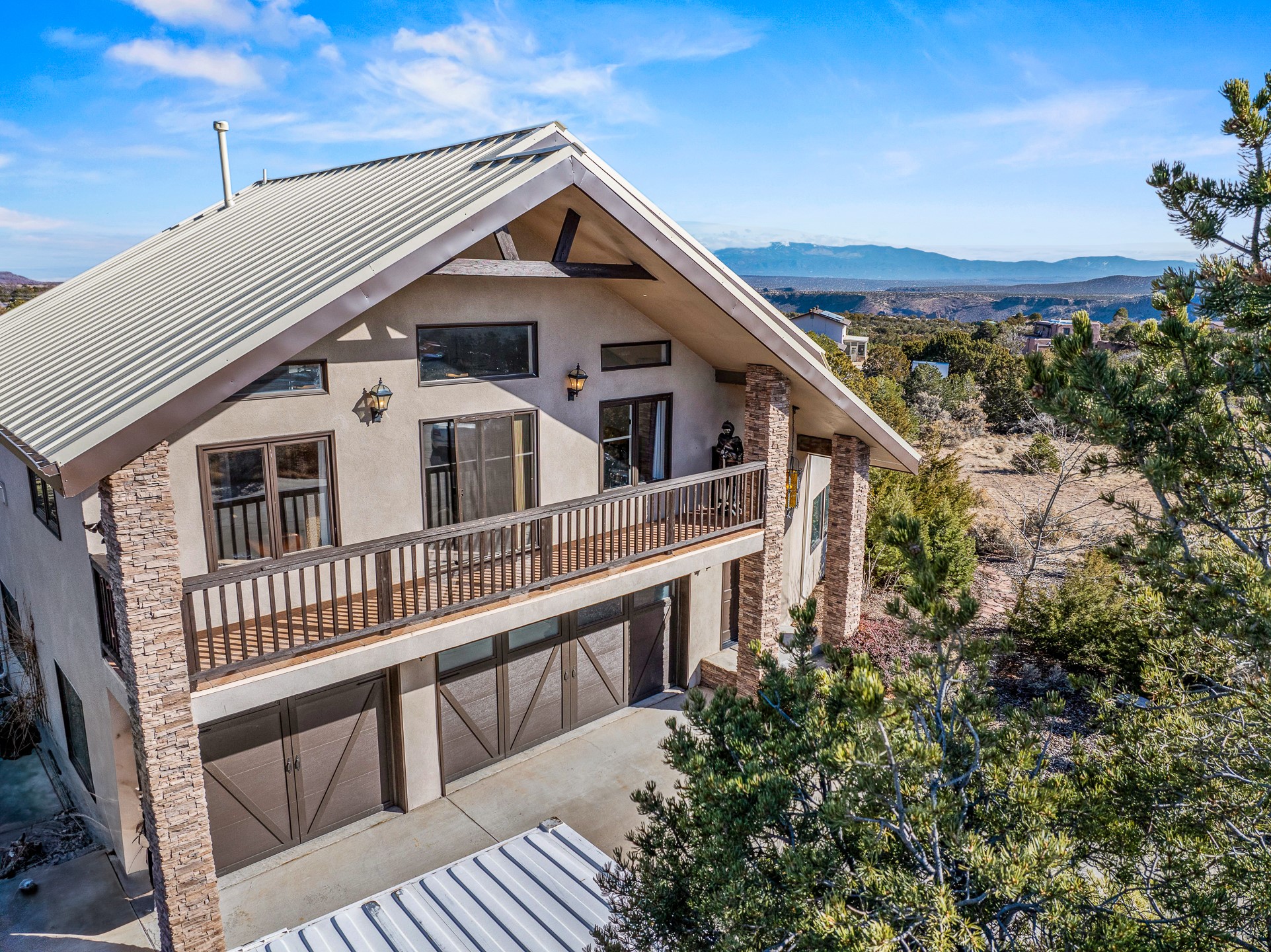 Welcome to White Rock's grandest home with stunning 360 mountain views situated at the top of White Rock. This meticulously maintained and lovingly remodeled 5-bedroom, 6-bathroom home offers everything you could ever want in a dream residence. The multifunctional floor plan unfolds across three floors and has several private wings. This home has amazing upgrades including a newer roof with replaced skylights, upgraded cabinetry, fixtures and flooring, newer appliances, newer garage doors, newer hot tub and much more. Step into a grand foyer with soaring ceilings and beautiful natural light streaming through oversized windows. The central heart of the home is an open kitchen, dining and living area with wrap around windows. This prime entertaining space continues out to the fabulous private yard with a hot tub and backs up to the open space of Pajarito Canyon. Each of the five bedrooms is a private retreat. The primary suite boasts a spacious footprint with room for a seating area dedicated to the incredible Sangre de Cristo view and a luxurious bathroom with Jemez views. All bedrooms include generous closets and well-appointed bathrooms, ensuring comfort for every family member or guest. This home includes a large 2nd floor entertainment room with a fully equipped wet bar, and a downstairs game room with pool table, making it an entertainer's paradise. There is an extensive fully equipped gym with fabulous mountain views and access to the new outdoor hot tub. Situated in one of White Rock's most sought-after neighborhoods, this home offers privacy, convenience and views.