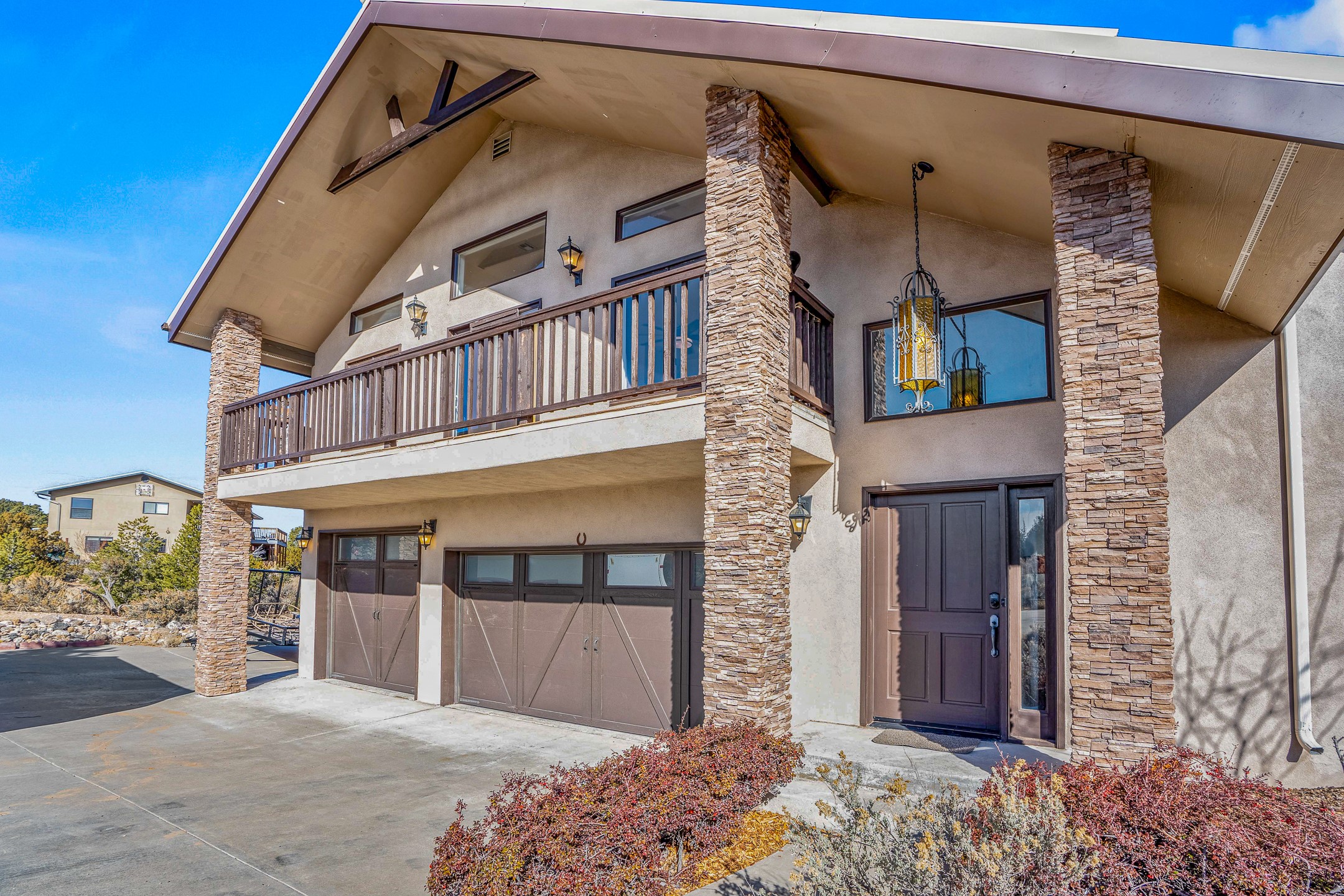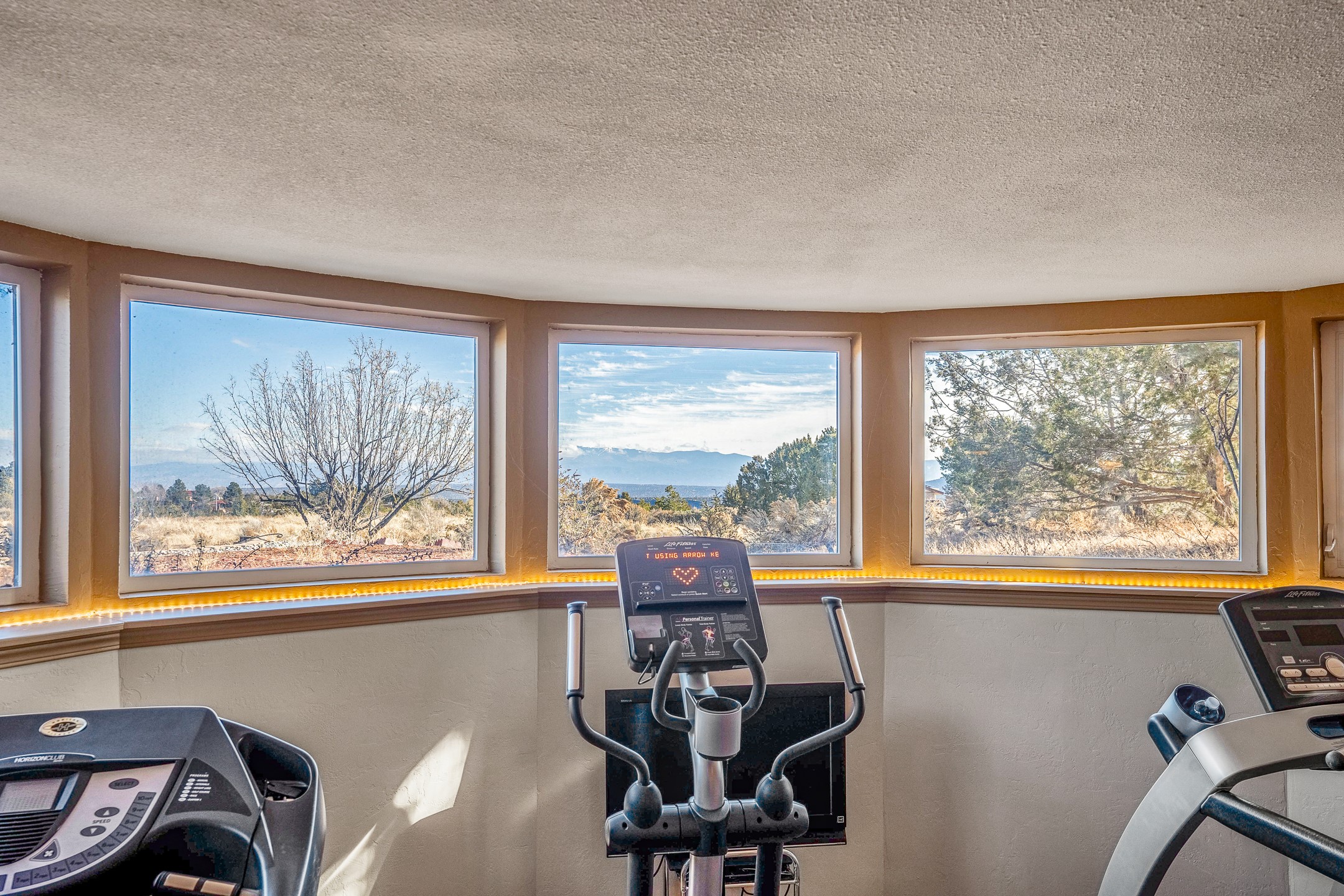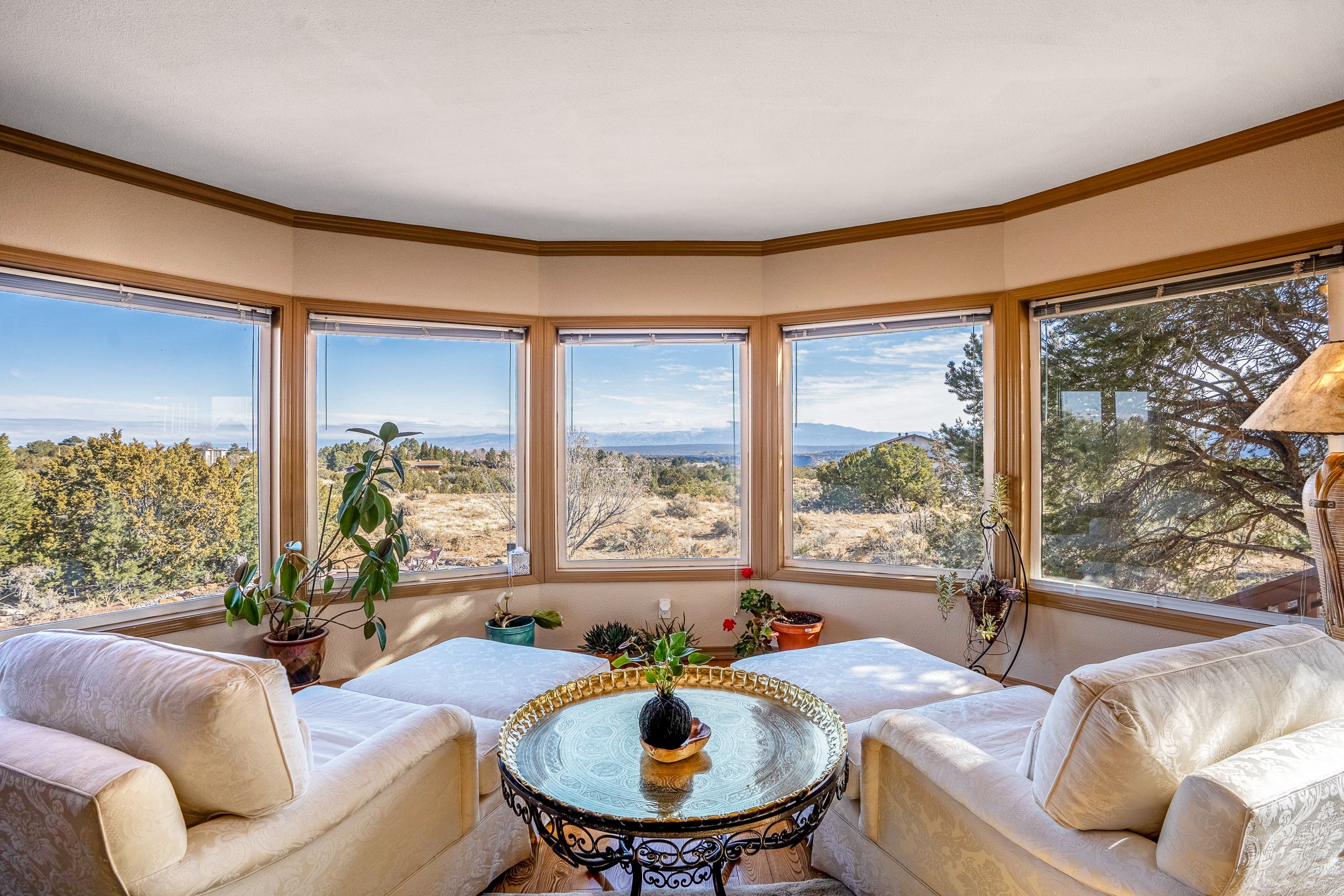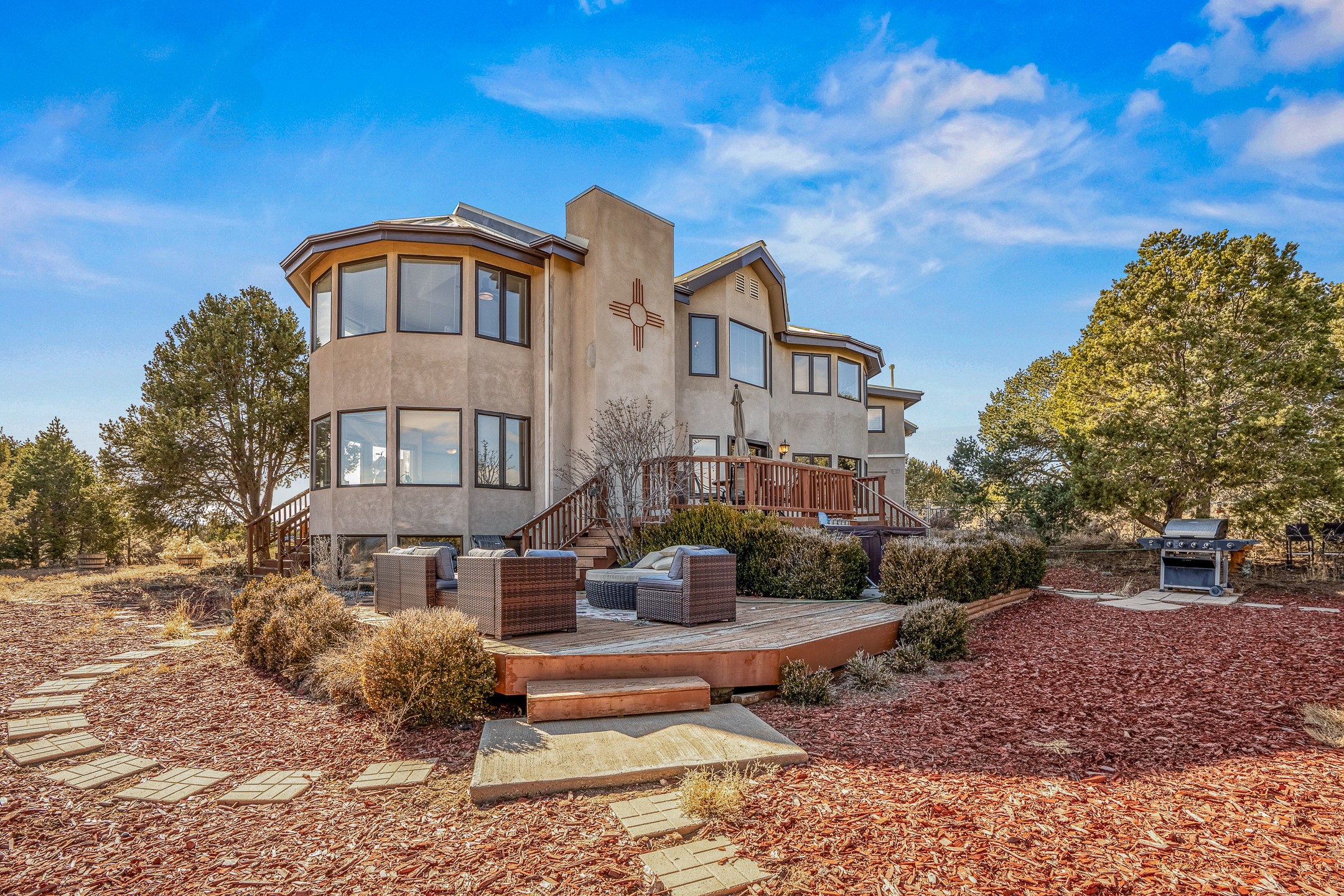 Welcome to White Rock's grandest home with stunning 360 mountain views situated at the top of White Rock. This meticulously maintained and lovingly remodeled 5-bedroom, 6-bathroom home offers everything you could ever want in a dream residence. The multifunctional floor plan unfolds across three floors and has several private wings. This home has amazing upgrades including a newer roof with replaced skylights, upgraded cabinetry, fixtures and flooring, newer appliances, newer garage doors, newer hot tub and much more. Step into a grand foyer with soaring ceilings and beautiful natural light streaming through oversized windows. The central heart of the home is an open kitchen, dining and living area with wrap around windows. This prime entertaining space continues out to the fabulous private yard with a hot tub and backs up to the open space of Pajarito Canyon. Each of the five bedrooms is a private retreat. The primary suite boasts a spacious footprint with room for a seating area dedicated to the incredible Sangre de Cristo view and a luxurious bathroom with Jemez views. All bedrooms include generous closets and well-appointed bathrooms, ensuring comfort for every family member or guest. This home includes a large 2nd floor entertainment room with a fully equipped wet bar, and a downstairs game room with pool table, making it an entertainer's paradise. There is an extensive fully equipped gym with fabulous mountain views and access to the new outdoor hot tub. Situated in one of White Rock's most sought-after neighborhoods, this home offers privacy, convenience and views.