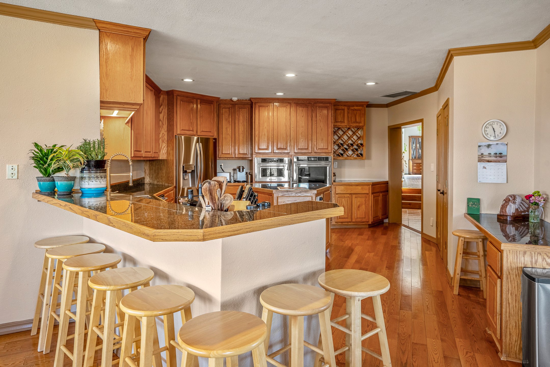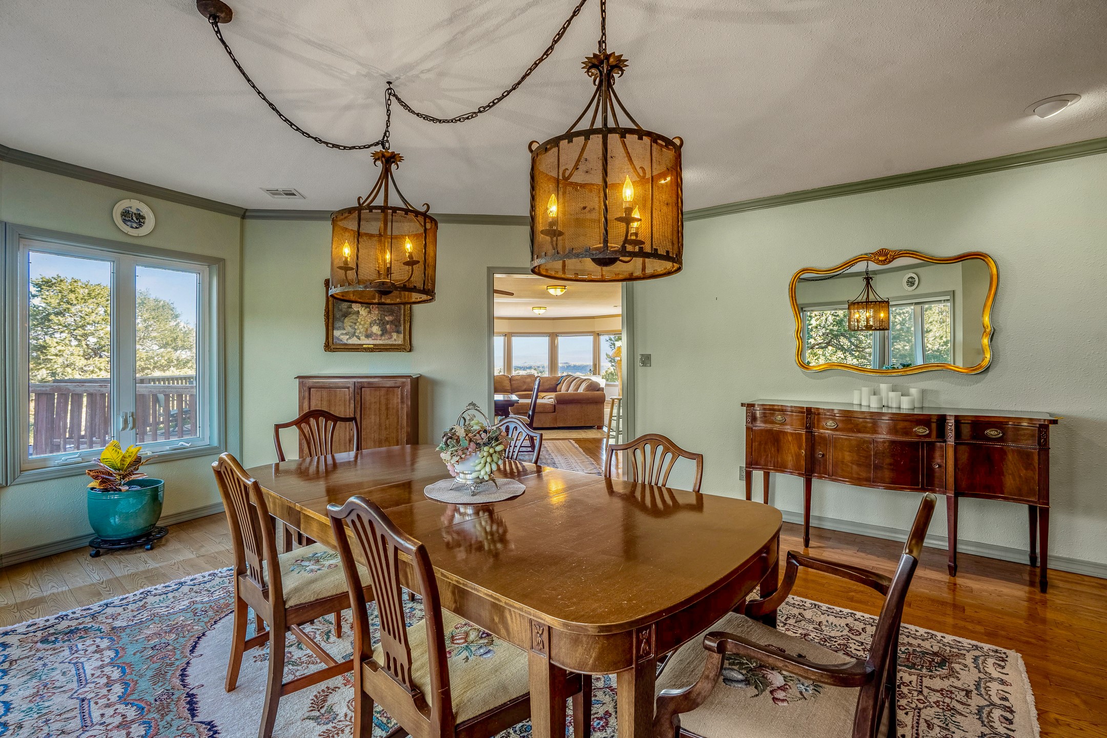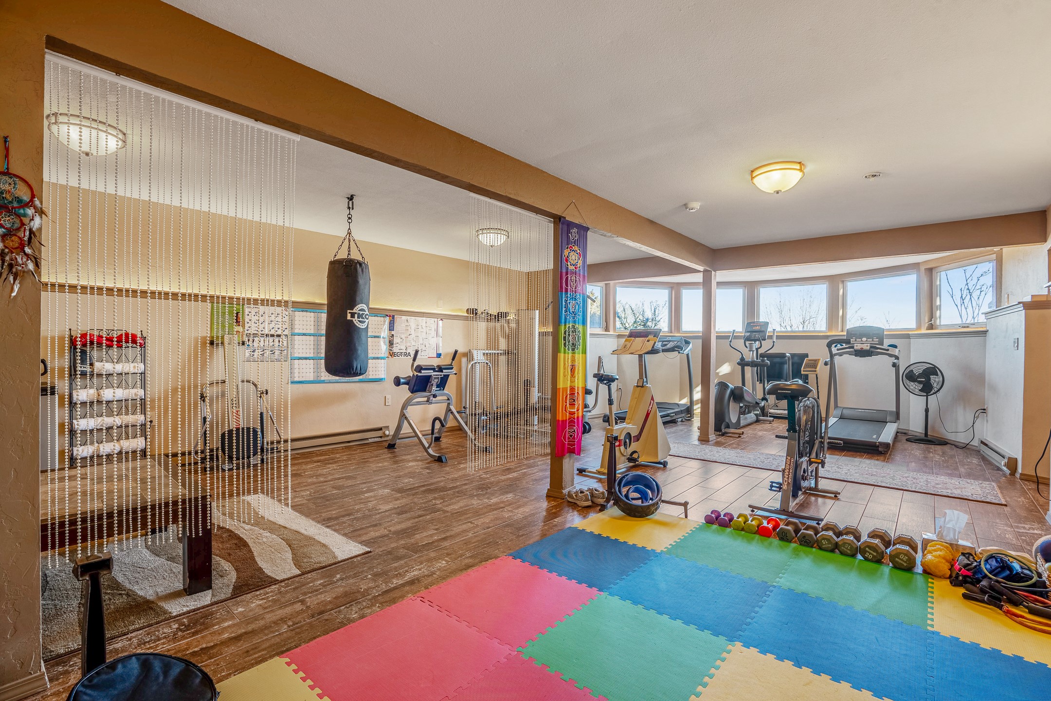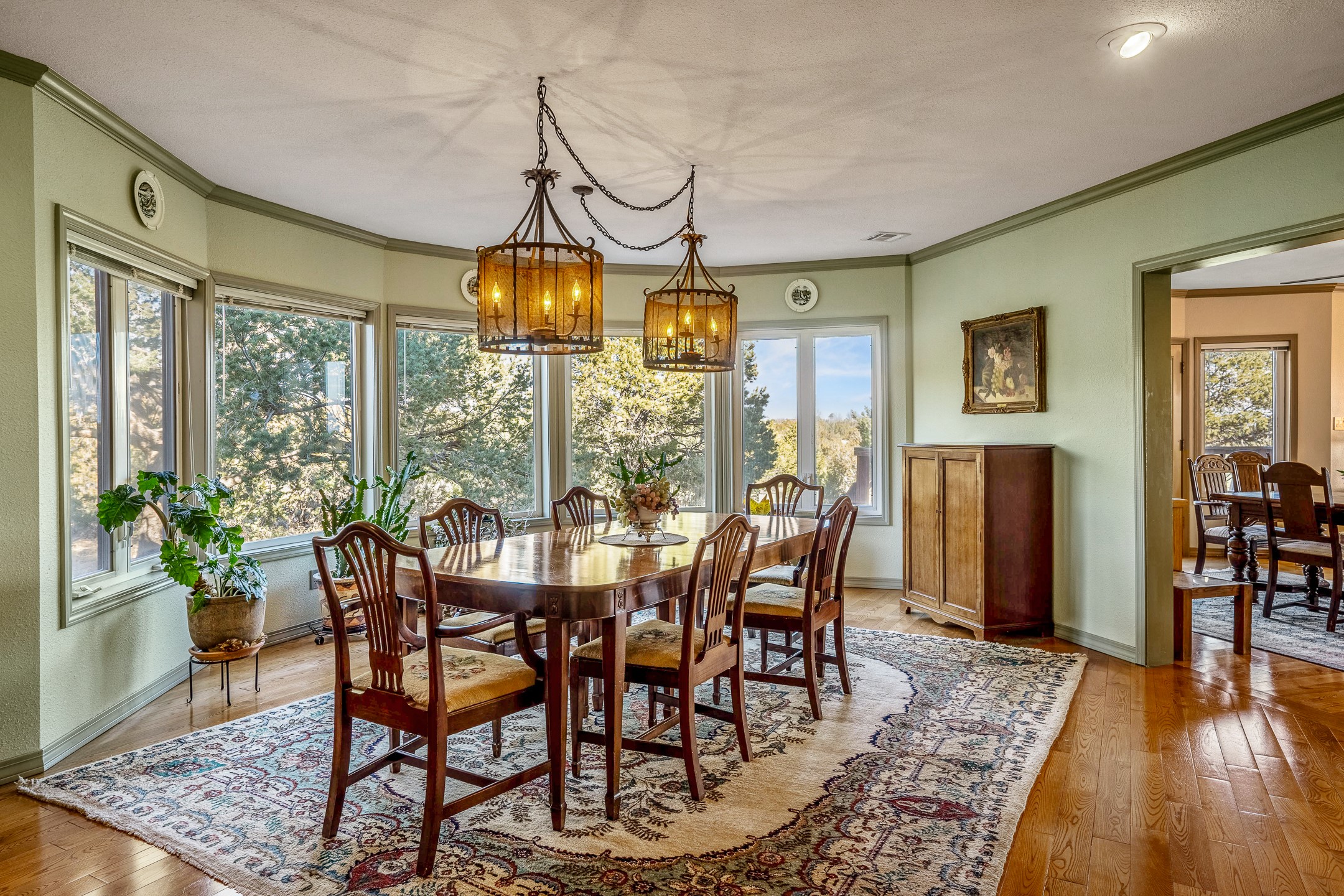 Welcome to White Rock's grandest home with stunning 360 mountain views situated at the top of White Rock. This meticulously maintained and lovingly remodeled 5-bedroom, 6-bathroom home offers everything you could ever want in a dream residence. The multifunctional floor plan unfolds across three floors and has several private wings. This home has amazing upgrades including a newer roof with replaced skylights, upgraded cabinetry, fixtures and flooring, newer appliances, newer garage doors, newer hot tub and much more. Step into a grand foyer with soaring ceilings and beautiful natural light streaming through oversized windows. The central heart of the home is an open kitchen, dining and living area with wrap around windows. This prime entertaining space continues out to the fabulous private yard with a hot tub and backs up to the open space of Pajarito Canyon. Each of the five bedrooms is a private retreat. The primary suite boasts a spacious footprint with room for a seating area dedicated to the incredible Sangre de Cristo view and a luxurious bathroom with Jemez views. All bedrooms include generous closets and well-appointed bathrooms, ensuring comfort for every family member or guest. This home includes a large 2nd floor entertainment room with a fully equipped wet bar, and a downstairs game room with pool table, making it an entertainer's paradise. There is an extensive fully equipped gym with fabulous mountain views and access to the new outdoor hot tub. Situated in one of White Rock's most sought-after neighborhoods, this home offers privacy, convenience and views.