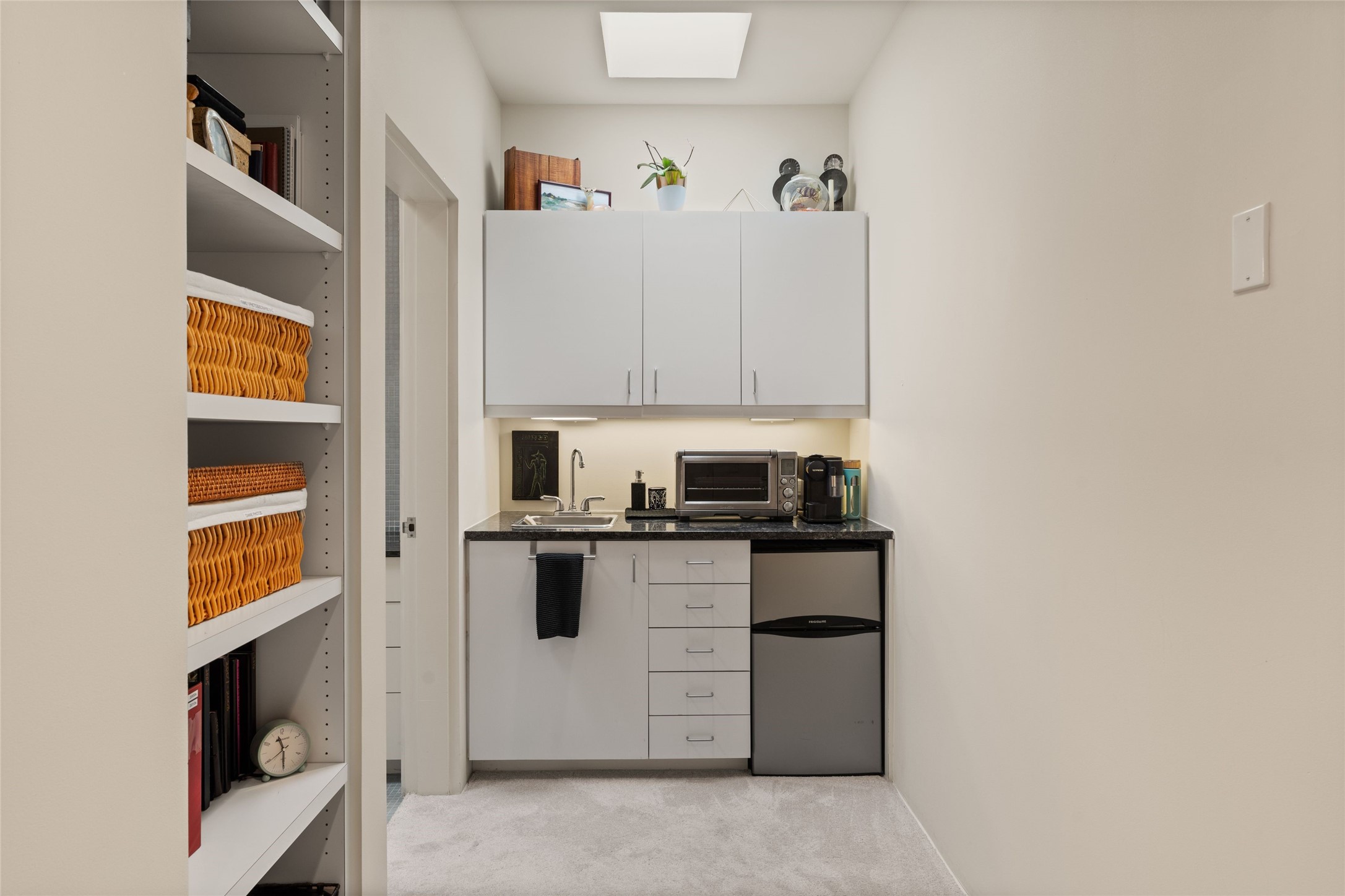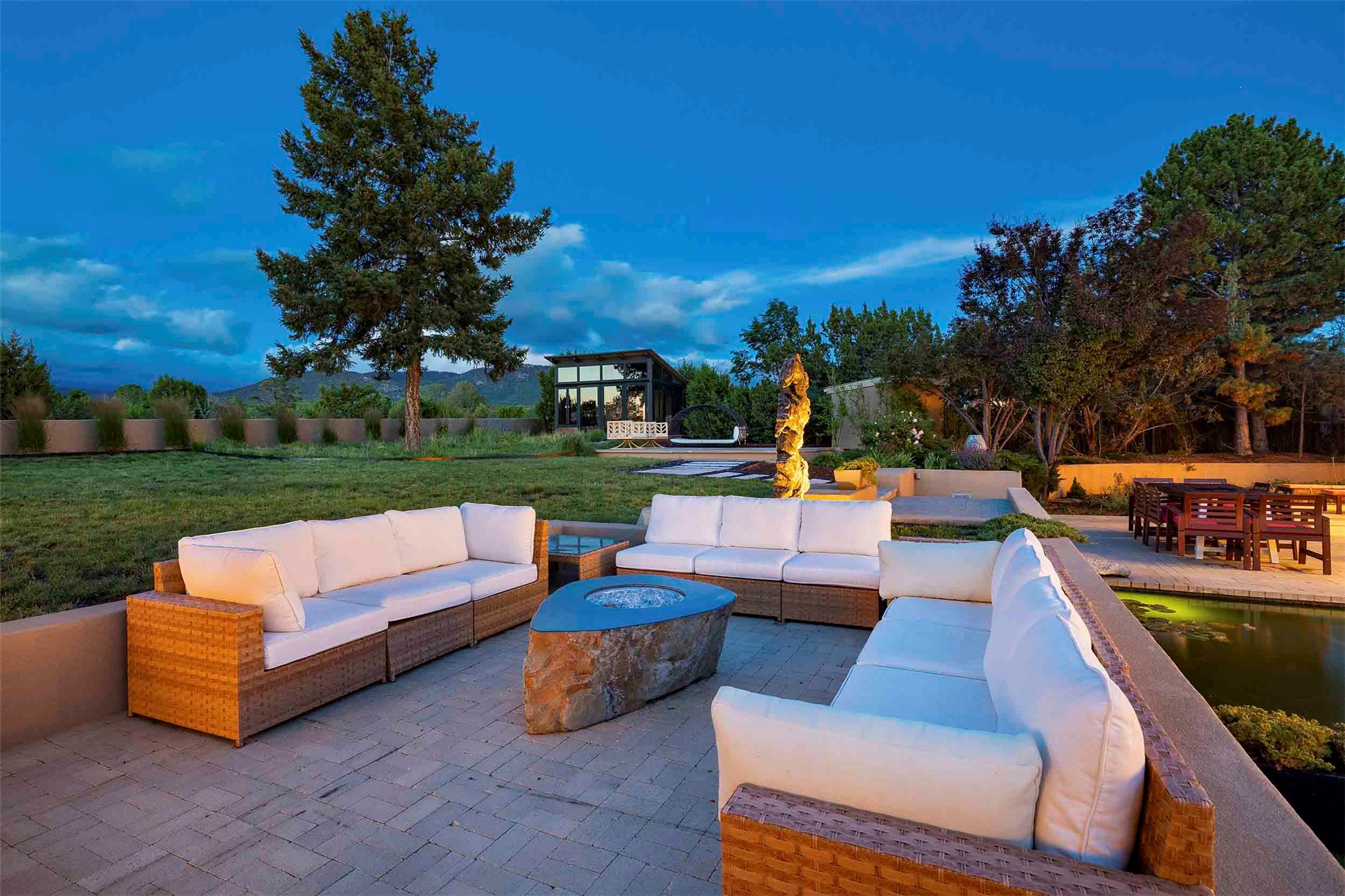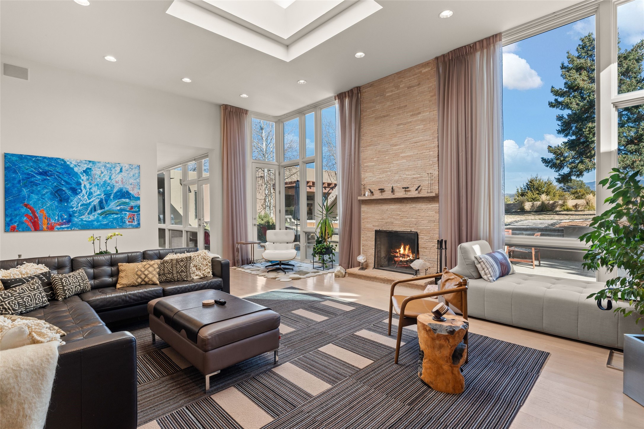 Remarkable. To be on Old Santa Fe Trail with majestic, panoramic views overlooking dedicated open space towards the Sangre de Cristo Mountains in a one-level, light filled Contemporary Masterpiece that had a major renovations done in 2021 is a singular opportunity. The home features a gleaming new kitchen, spectacular new baths in the main suites, expansive open spaces and your own private resort in the backyard. The current owners lovingly and intelligently renovated and elevated this bright, open space that lets the outside in - from the views to the private backyard featuring koi pond, plunge pool, fire pit and gazebo. - this home surprises on every level. The kitchen/living room arrangement now flows to match today's lifestyle and provides a wonderful backdrop for art lovers as well as a grand entertaining space. The large, totally renovated kitchen has a 16' island with Wolf/Sub Zero appliances, including an induction cooktop and steam oven. The new butler pantry provides additional storage, a freezer, second oven, and second microwave. A chef's kitchen perfect for entertaining. The library off the primary bedroom, along with an attached bedroom or workout space and additional bath - make for a private suite area that is comfortable for day-to-day living.The extraordinary north area with 2nd primary suite, is rare to say the least. The area, with one of Santa Fe's great media rooms, has soaring ceiling height, great walls for the largest flat screens, and walls of glass that frame the magnificent views of the rear of the property and the Sangres. The next space in the north section of the house functions as a ceramics studio for the current owners, but could be a command-central home office sharing the attributes of the media room as well or an extended master closet. The great primary suite with views and volume, is cloistered away from the rest of the home for privacy and quiet and is serviced by a brand new bathroom. The attached guest quarters is ideal for many living situations, maintaining privacy and comfort. One cannot overestimate the convenience of being close-in Old Santa Fe Trail and the ability to enjoy downtown Santa Fe on a moment's notice. All in all, this is one of the most extraordinary offerings in the entire Santa Fe marketplace with views of the Sangre's that can never be obstructed.