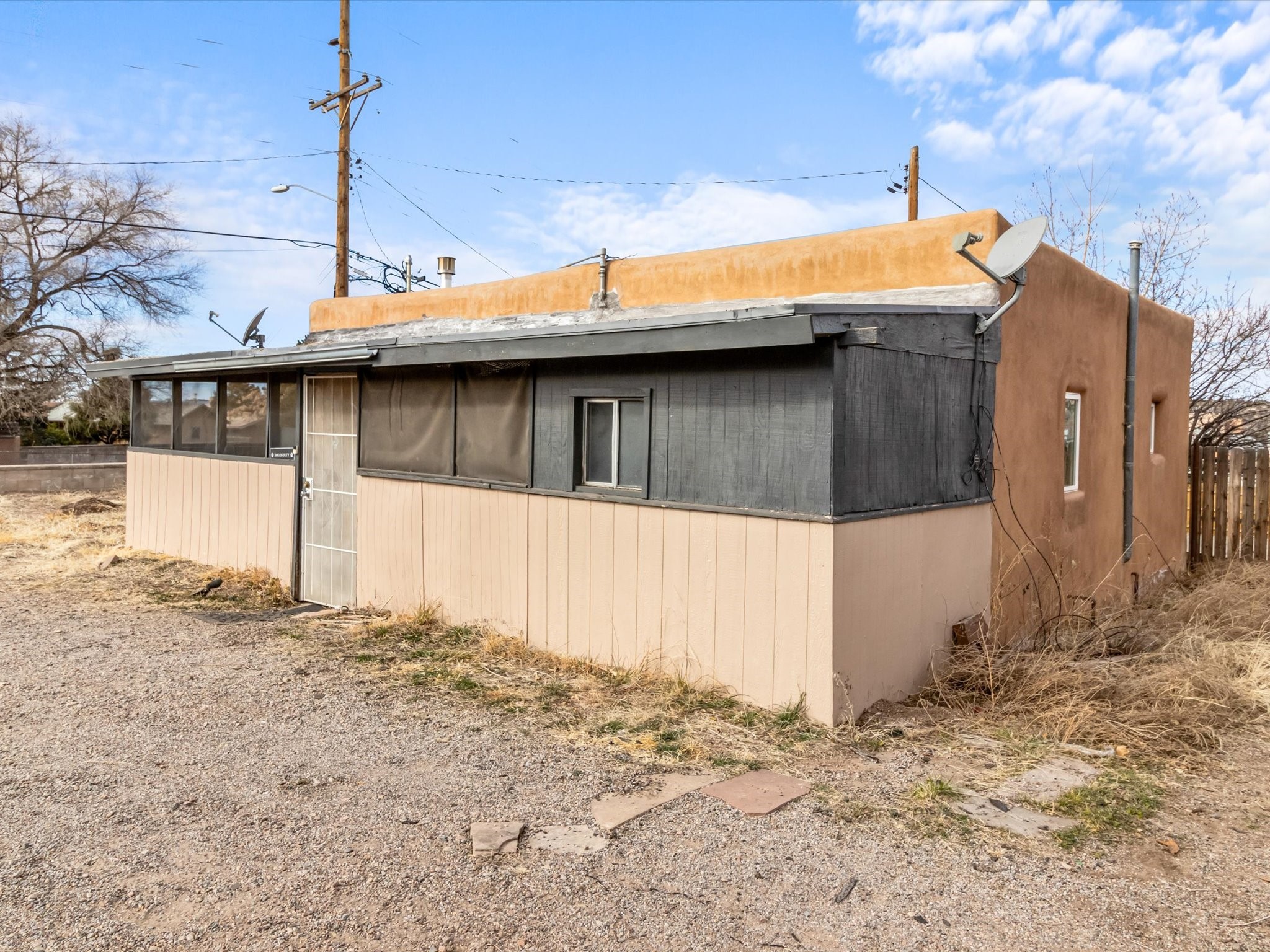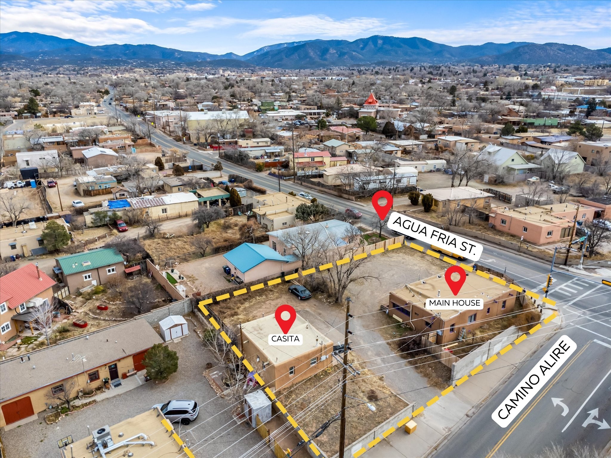 Welcome to 1217 Agua Fra Street, a versatile and charming adobe property that offers endless possibilities for families, multigenerational living, or investment opportunities.The main home features 2 bedrooms and 1 bath, complemented by a 1-bedroom, 1-bath attached unit. The main living area showcases Saltillo tile flooring, known for its durability AND scratch resistance making it a practical yet stylish choice. Lots of Santa fe Charm with wood ceilings and Vegas.In the back, you'll find a spacious 2-bedroom, 1-bath casita that exudes the same quintessential Santa Fe charm. Both homes highlight stunning adobe walls and authentic wood vigas, creating a warm and inviting atmosphere.Situated in the heart of Santa Fe, this property is perfectly positioned for easy access to local attractions, dining, and shopping. Ample parking and flexible zoning (C-1) add to its appeal, offering potential for additional development or creative uses.Don't miss the opportunity to own a piece of Santa Fe's rich heritage and vibrant culture. Schedule your private tour today!