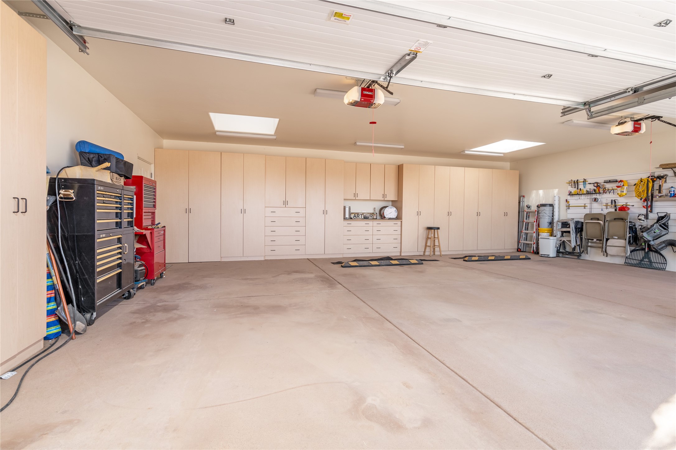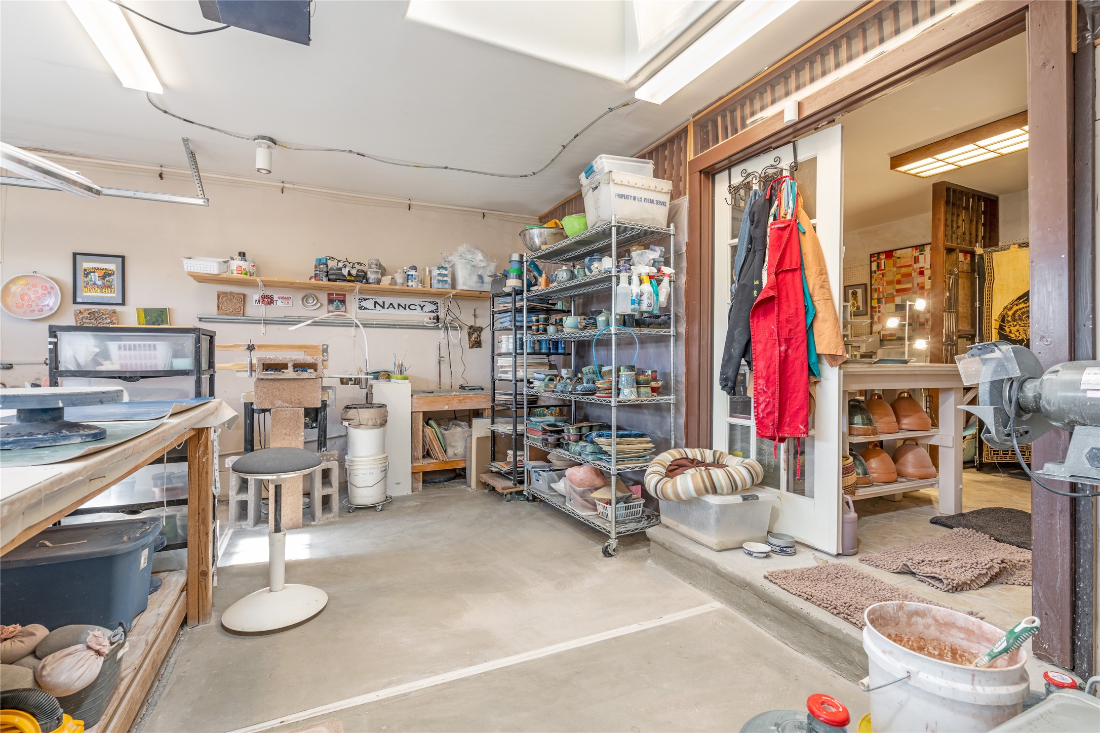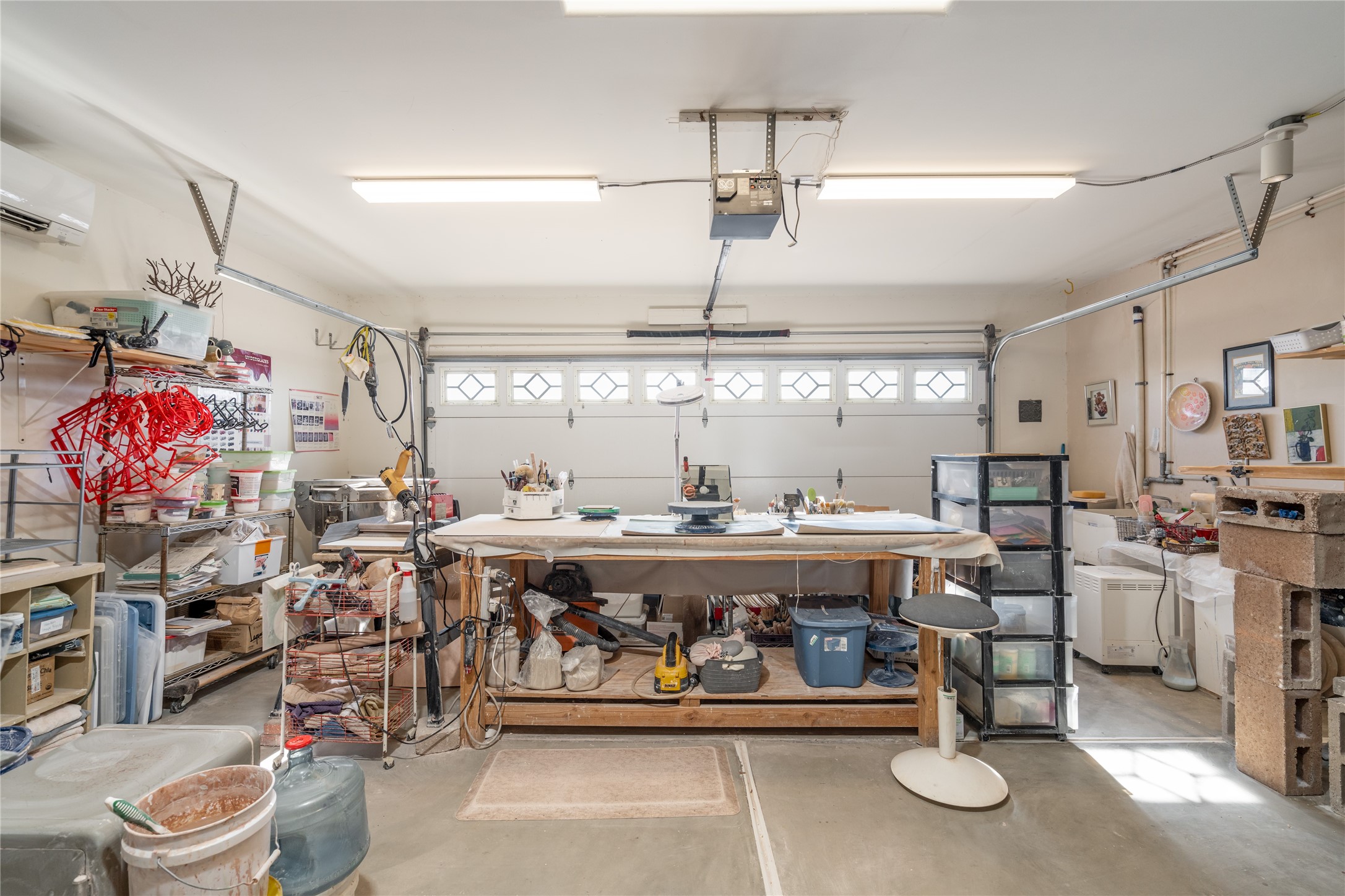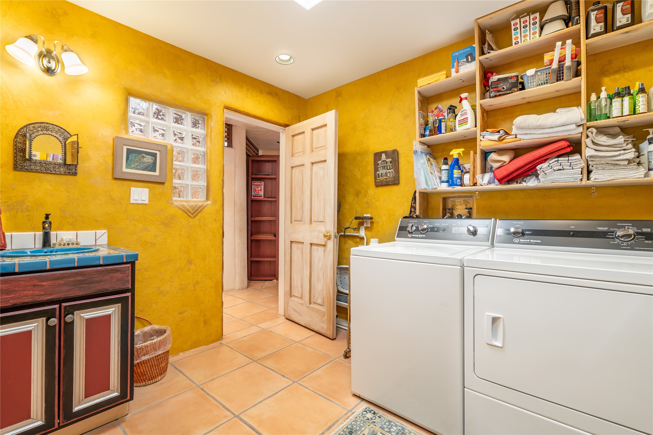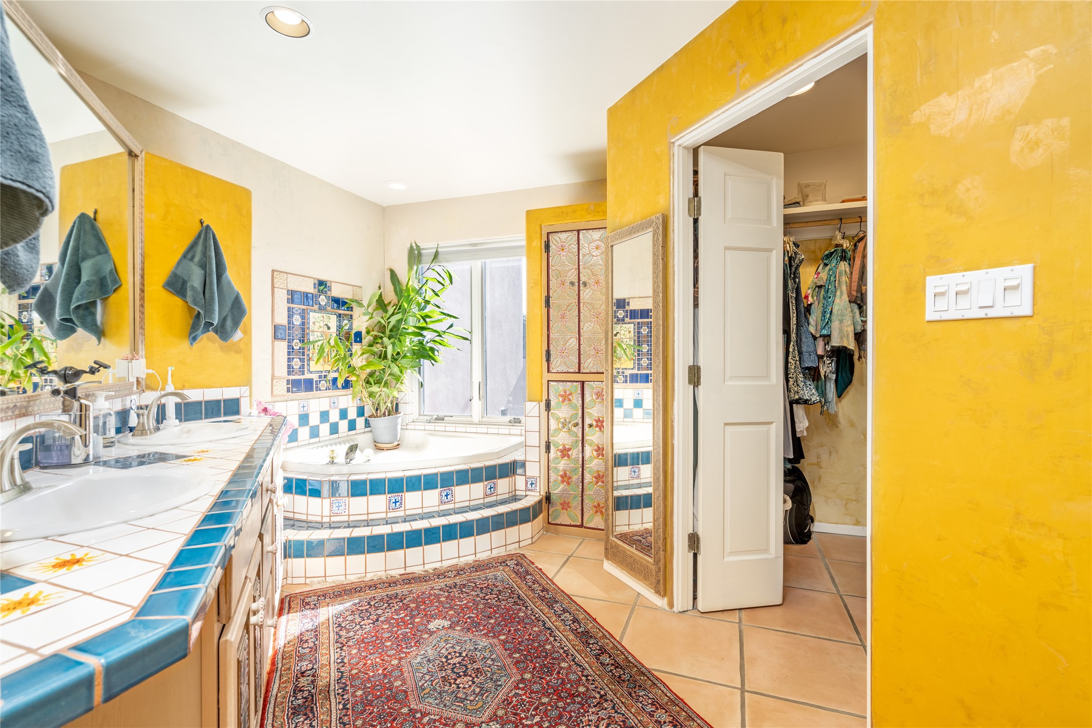 Lovely Eldorado home on 1.61 acres with views! Walled in entry courtyard with a Koi pond plus several outdoor portals with a green belt bordering the property in the back area. 3 bedrooms, 2 1/2 baths with an attached artist studio with a sink and upgraded 220 electric. There is a heated office area off the laundry room which is next to the heated studio. Three Kiva fireplaces and many colorful Santa Fe touches with an Asian twist! Vigas, Latilla ceilings, nichos, built-in bancos, vivid tile murals and 17" x 17" ceramic tile flooring throughout most of the home. New Weil McClain boiler installed in February 2025. Kitchen features stainless appliances with a newer Wolf induction cooktop, new LG refrigerator, Asko dishwasher, and new heavy duty Speed Queen washer/dryer. The kitchen cabinets have animated, hand painted tin motif panels. One step down to the Living area plus there is a den right by the kitchen. A bookshelf features a secret door that goes from the den to the entryway. Four mini-splits installed about 4 years ago. Roof redone by Santa Fe Roofing and Stucco; transferrable warranty until 11/2034. A heated walk way to the detached 3 car garage (874 square feet) was added in 2018 with built in California Closets cabinets. The garage also has epoxy painted floors and 2 skylights for natural light; with one skylight that can manually open. Mature landscaping with inground irrigation plus many apple, cherry and pear trees. Don't miss this delightful property; a peaceful oasis with plenty of Southwest charm.