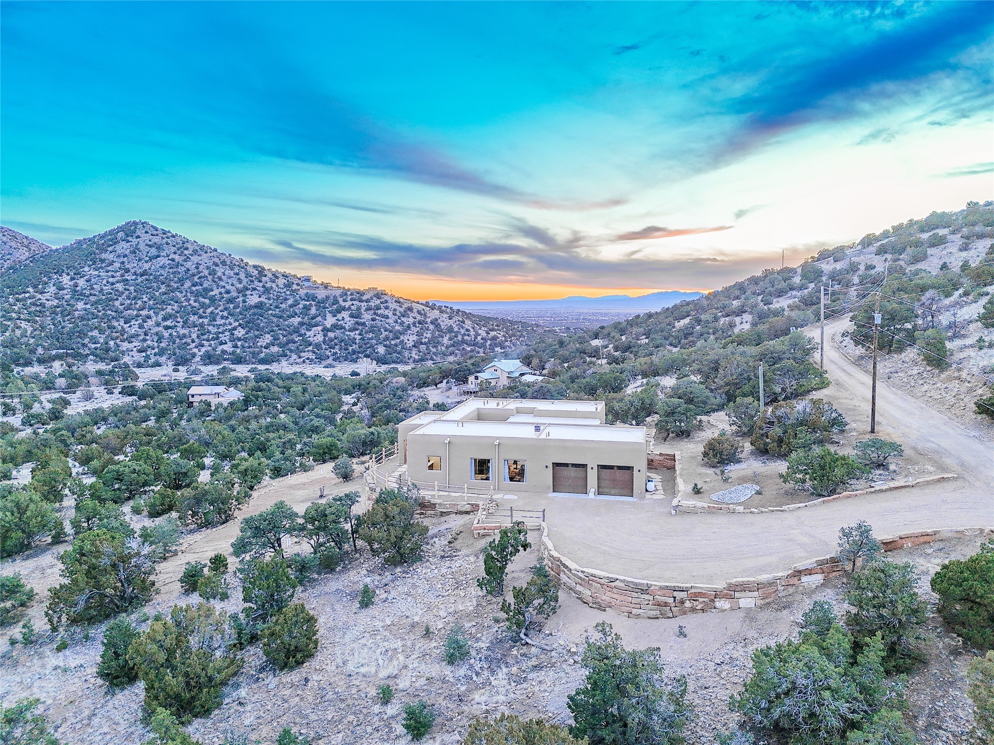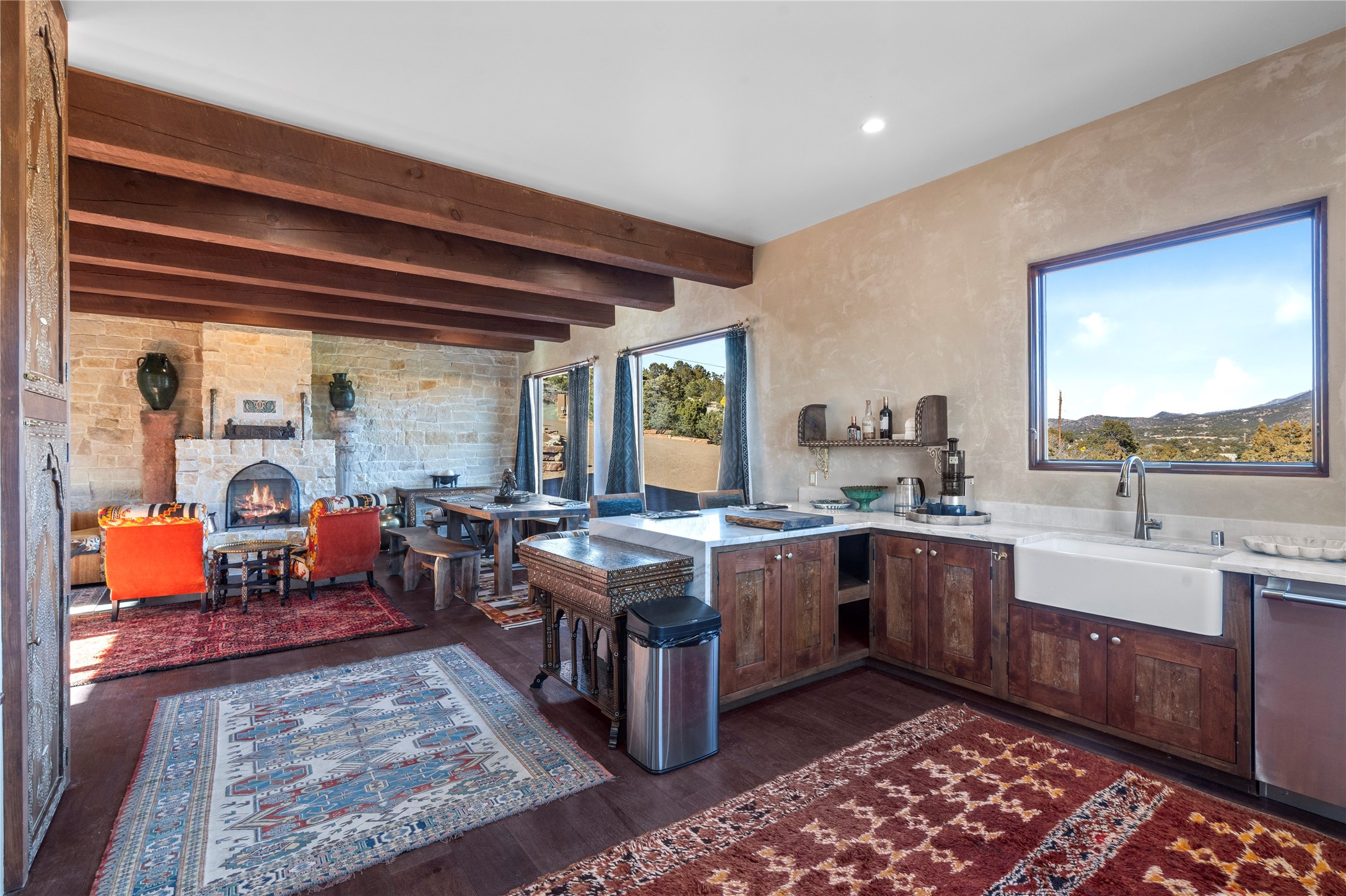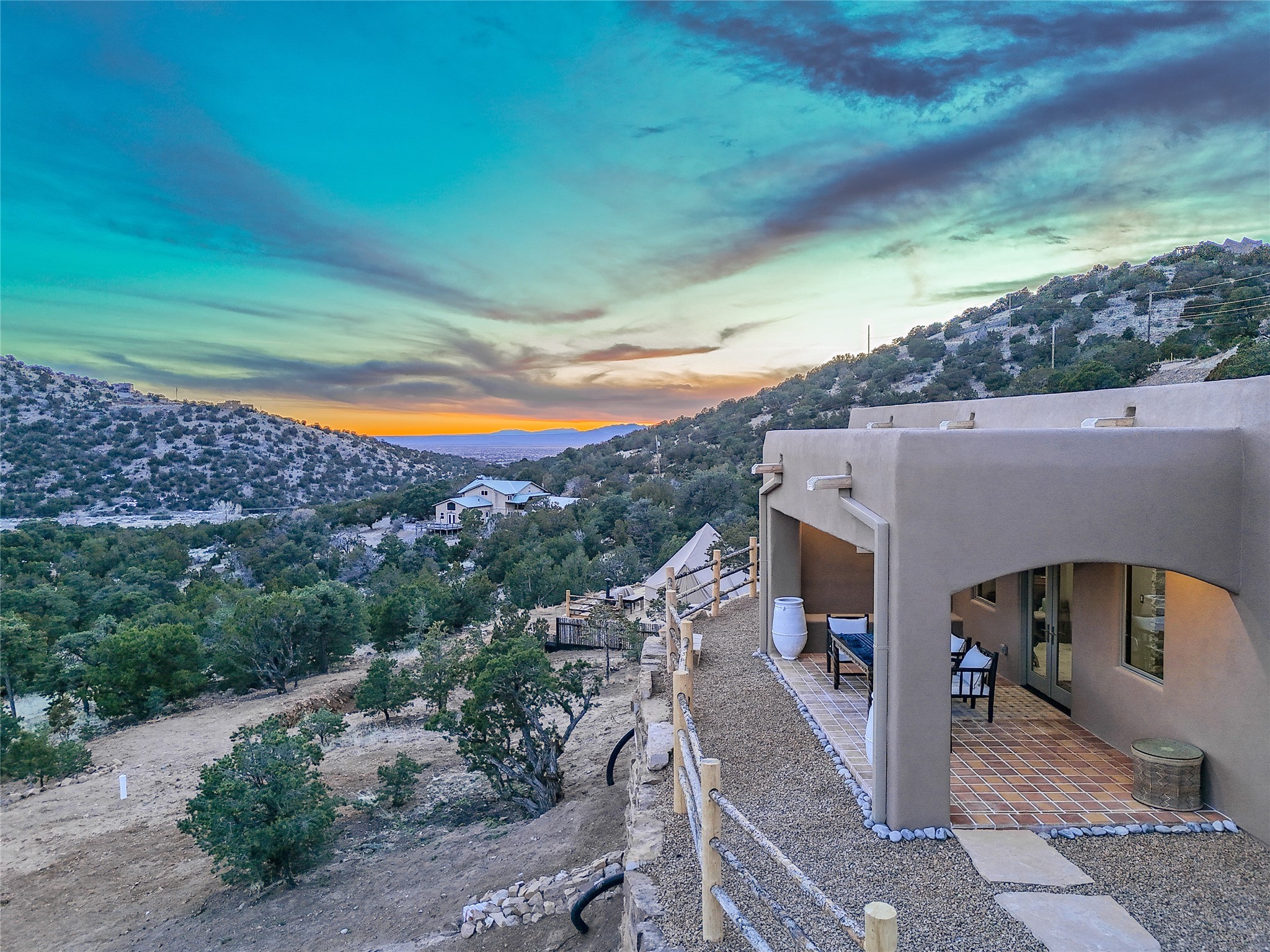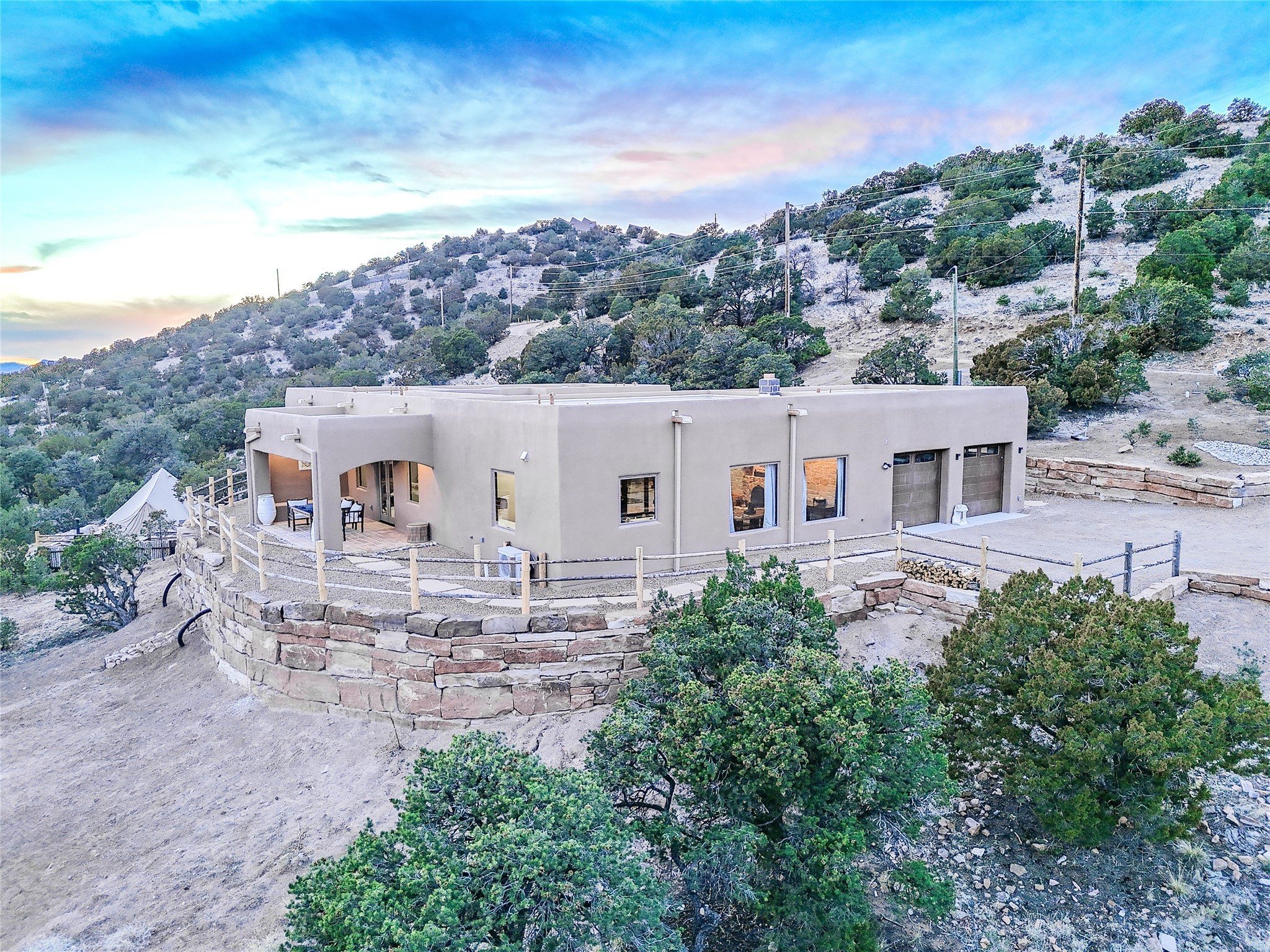 Meticulously designed by one of the world's premier jewelers, whose clients include Hollywood celebrities, fashion models, and other discerning individuals drawn to his unique, classically inspired art, and eye for detail.Just Imagine living in a pristine property created by an incredible artist in the peak of his career. This gorgeous home is the manifestation of a lifetime of world travels, creating an ambiance and layout of beauty everywhere: with every hand painted tile collected through time, every faucet, every stone. Nestled within the highly sought-after Sun Hills community, this newly constructed 2 bedroom 2.5 bath oasis offers the perfect blend of luxury and tranquility, with views from all directions, light and good taste everywhere. Set on 5 acres of magnificent beauty, this exceptional home provides breathtaking, panoramic views and a serene environment, just 15 minutes from downtown Santa Fe. Photos don't do it justice, we tried! You have to come experience this for yourself! Just about every door and intricate details has been thoughtfully sourced from abroad, contributing to the home's regal, yet inviting atmosphere.Despite its grandeur, it feels warm and intimate, reflecting impeccable taste and craftsmanship at every turn. Come and experience stunning views, ultimate privacy, and an unmatched sense of peace and quiet in your true oasis in Santa Fe.Offered fully furnished, yes fully furnished with internationally collected pieces at an outstanding price for new construction in Santa Fe, this home will never be replicated, offering you the rare opportunity to live within a precious jewell.