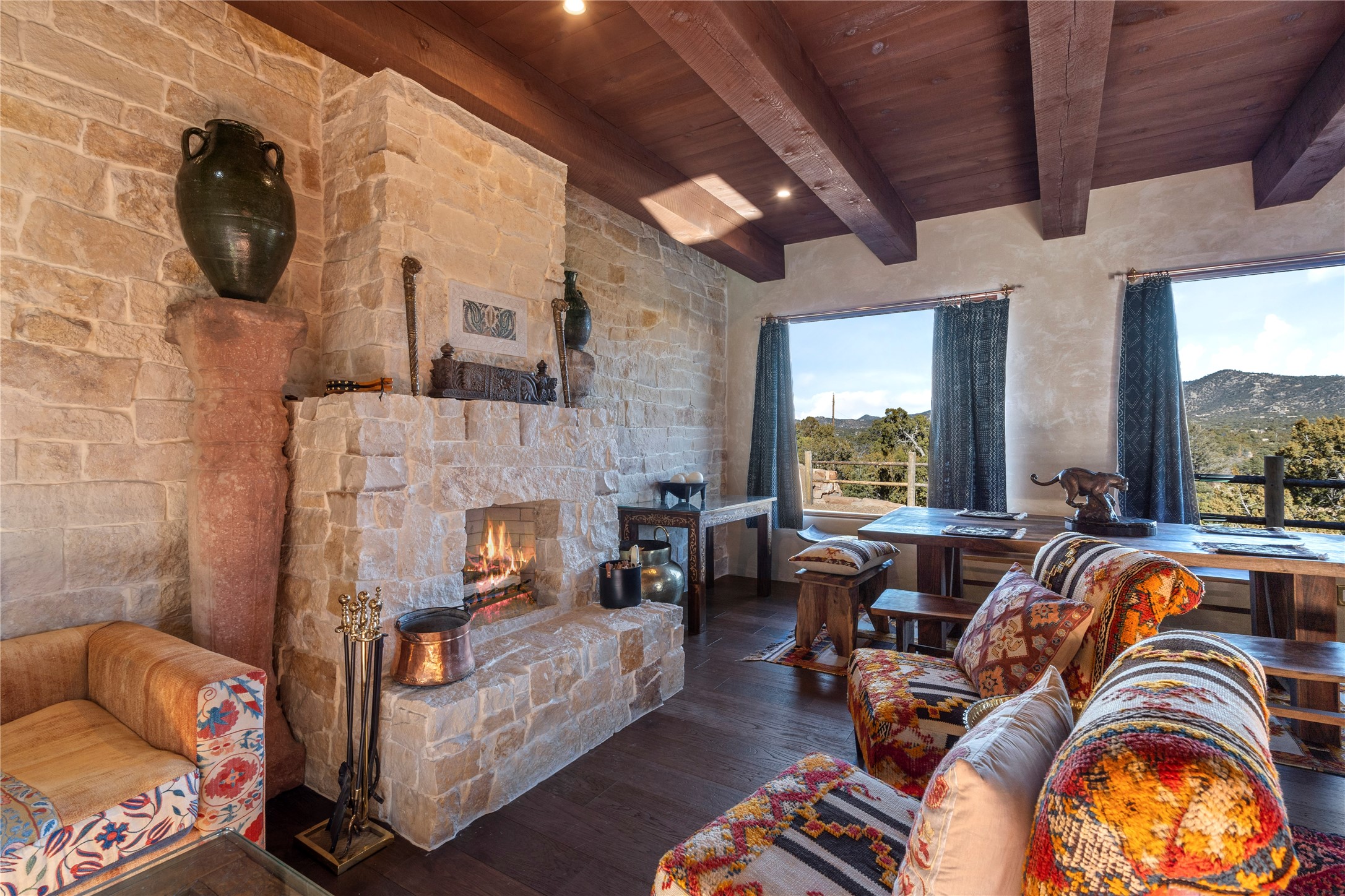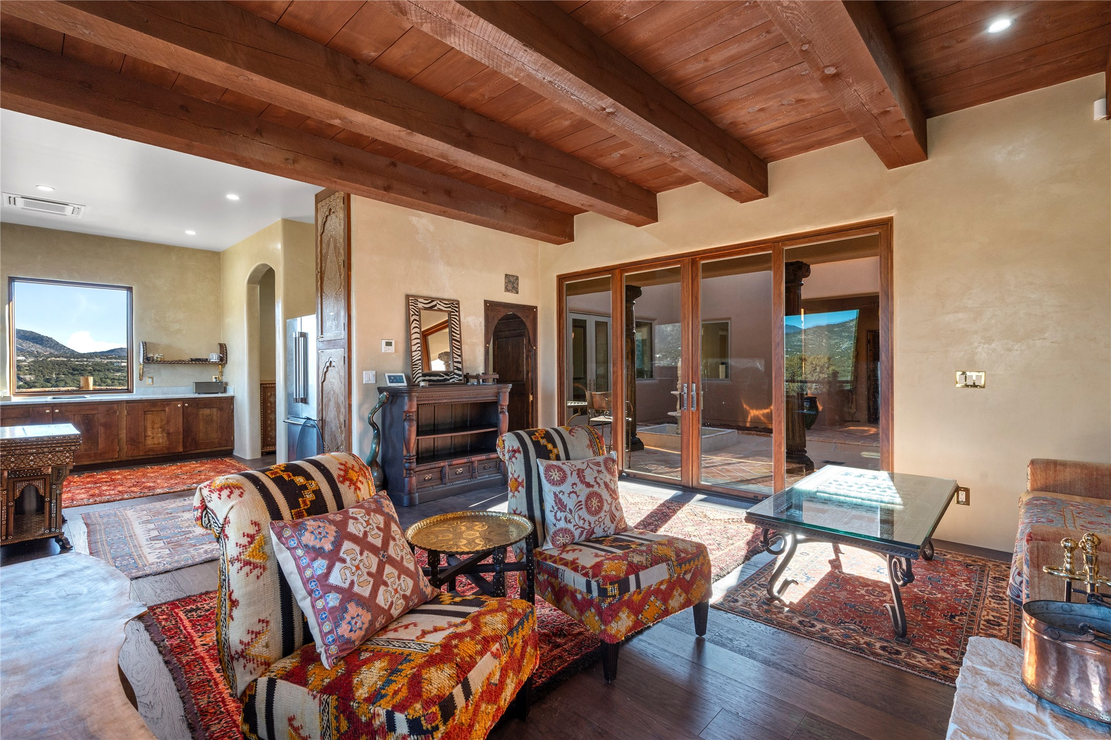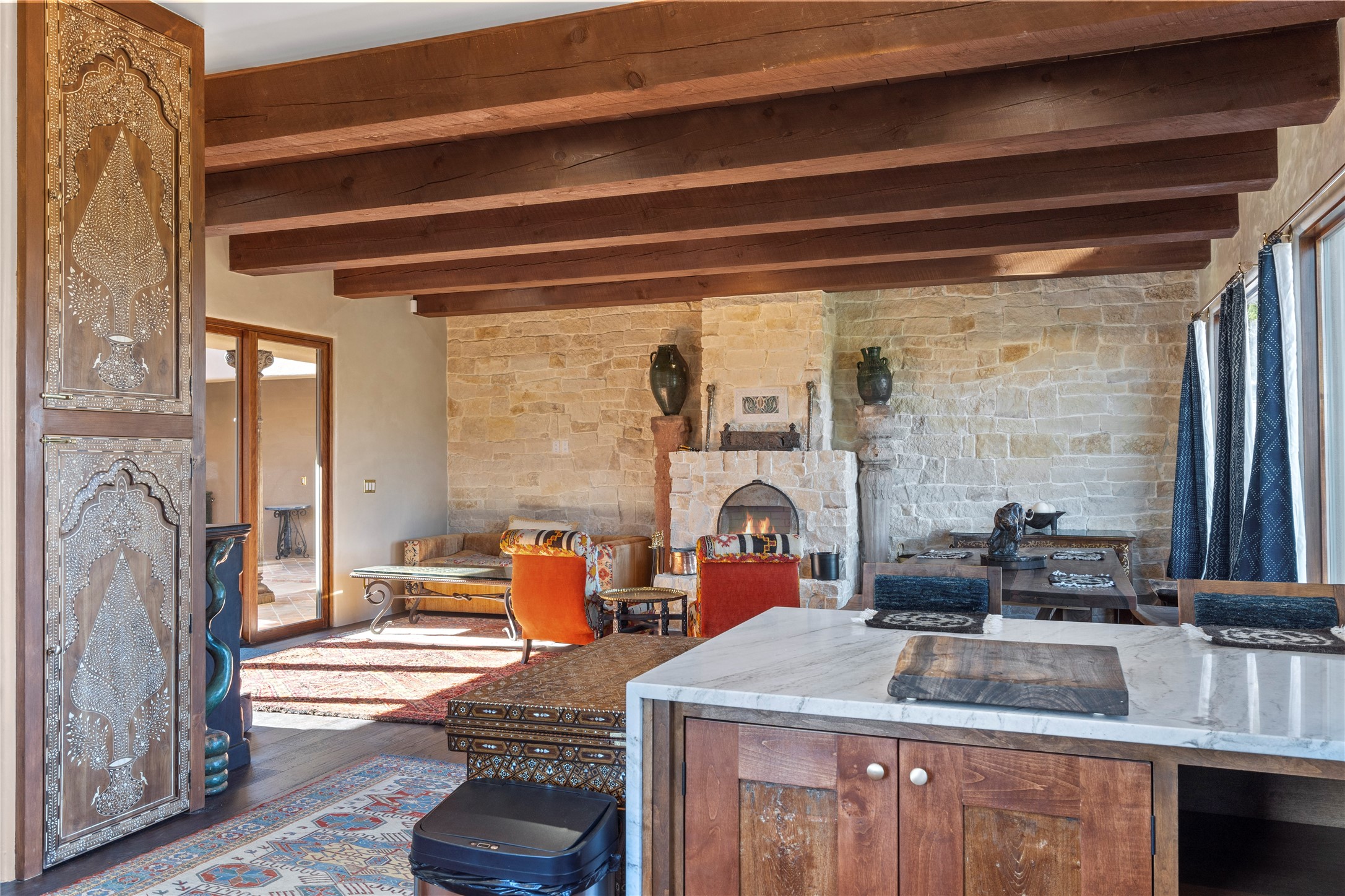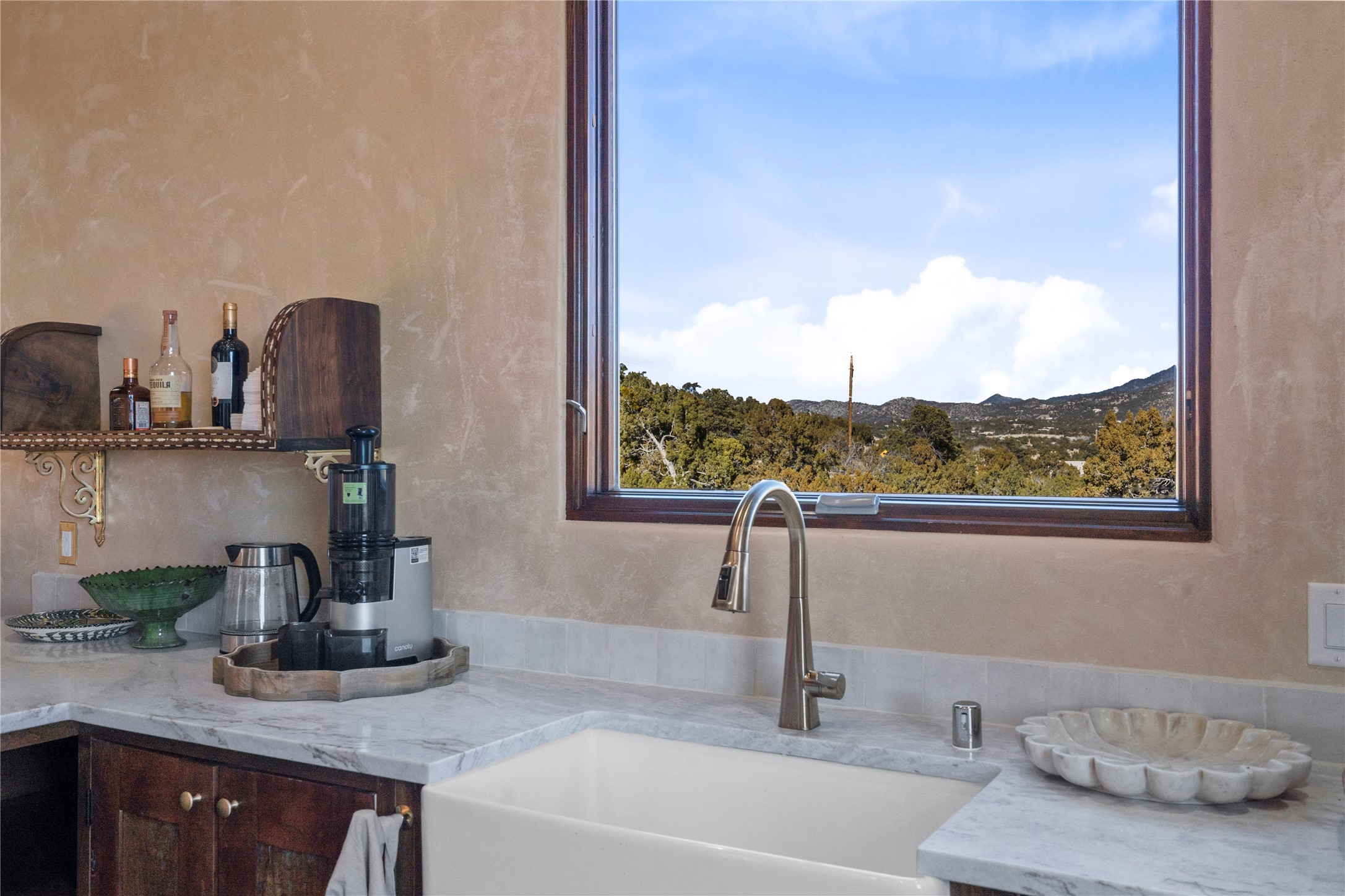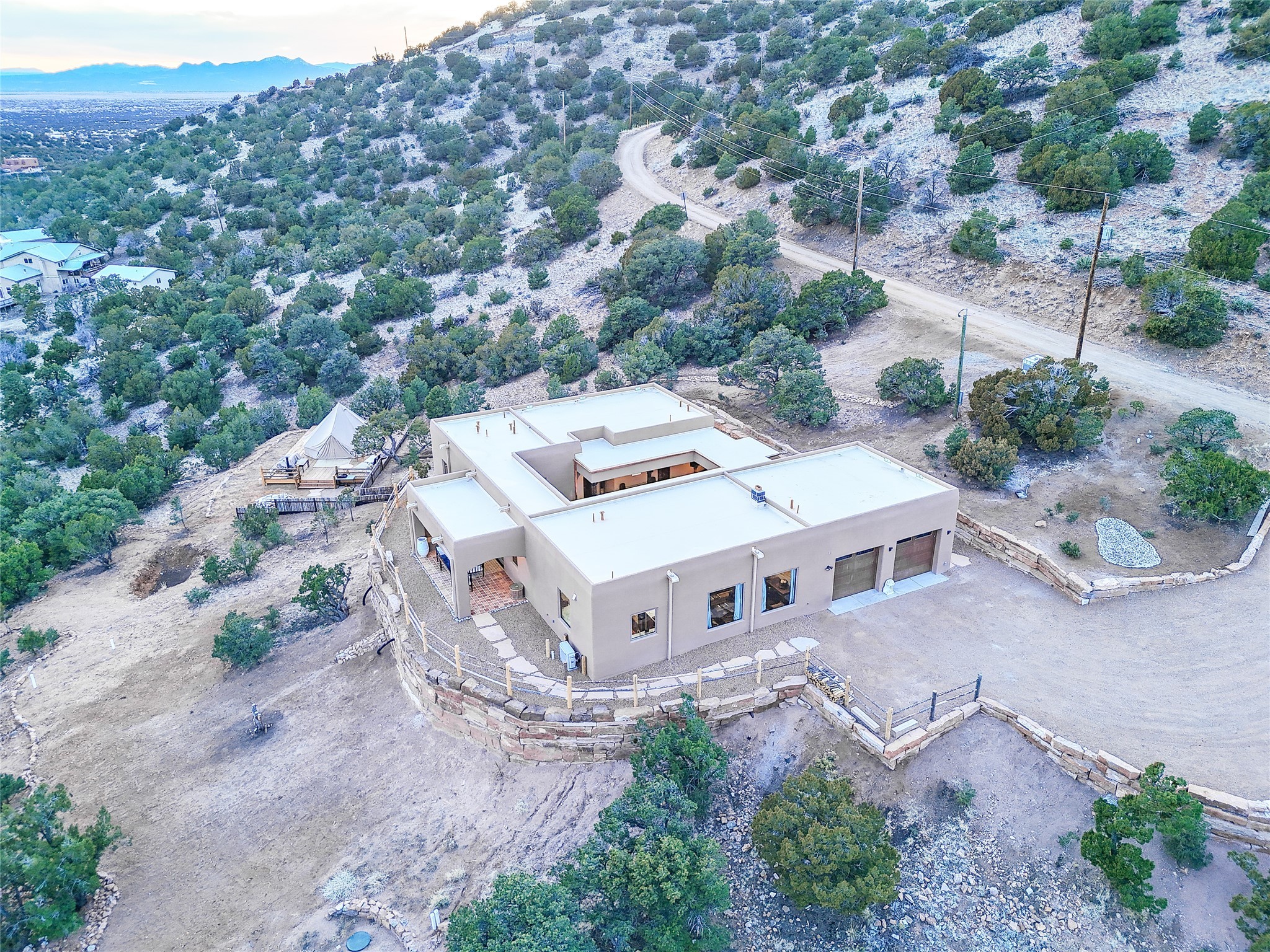 Meticulously designed by one of the world's premier jewelers, whose clients include Hollywood celebrities, fashion models, and other discerning individuals drawn to his unique, classically inspired art, and eye for detail.Just Imagine living in a pristine property created by an incredible artist in the peak of his career. This gorgeous home is the manifestation of a lifetime of world travels, creating an ambiance and layout of beauty everywhere: with every hand painted tile collected through time, every faucet, every stone. Nestled within the highly sought-after Sun Hills community, this newly constructed 2 bedroom 2.5 bath oasis offers the perfect blend of luxury and tranquility, with views from all directions, light and good taste everywhere. Set on 5 acres of magnificent beauty, this exceptional home provides breathtaking, panoramic views and a serene environment, just 15 minutes from downtown Santa Fe. Photos don't do it justice, we tried! You have to come experience this for yourself! Just about every door and intricate details has been thoughtfully sourced from abroad, contributing to the home's regal, yet inviting atmosphere.Despite its grandeur, it feels warm and intimate, reflecting impeccable taste and craftsmanship at every turn. Come and experience stunning views, ultimate privacy, and an unmatched sense of peace and quiet in your true oasis in Santa Fe.Offered fully furnished, yes fully furnished with internationally collected pieces at an outstanding price for new construction in Santa Fe, this home will never be replicated, offering you the rare opportunity to live within a precious jewell.