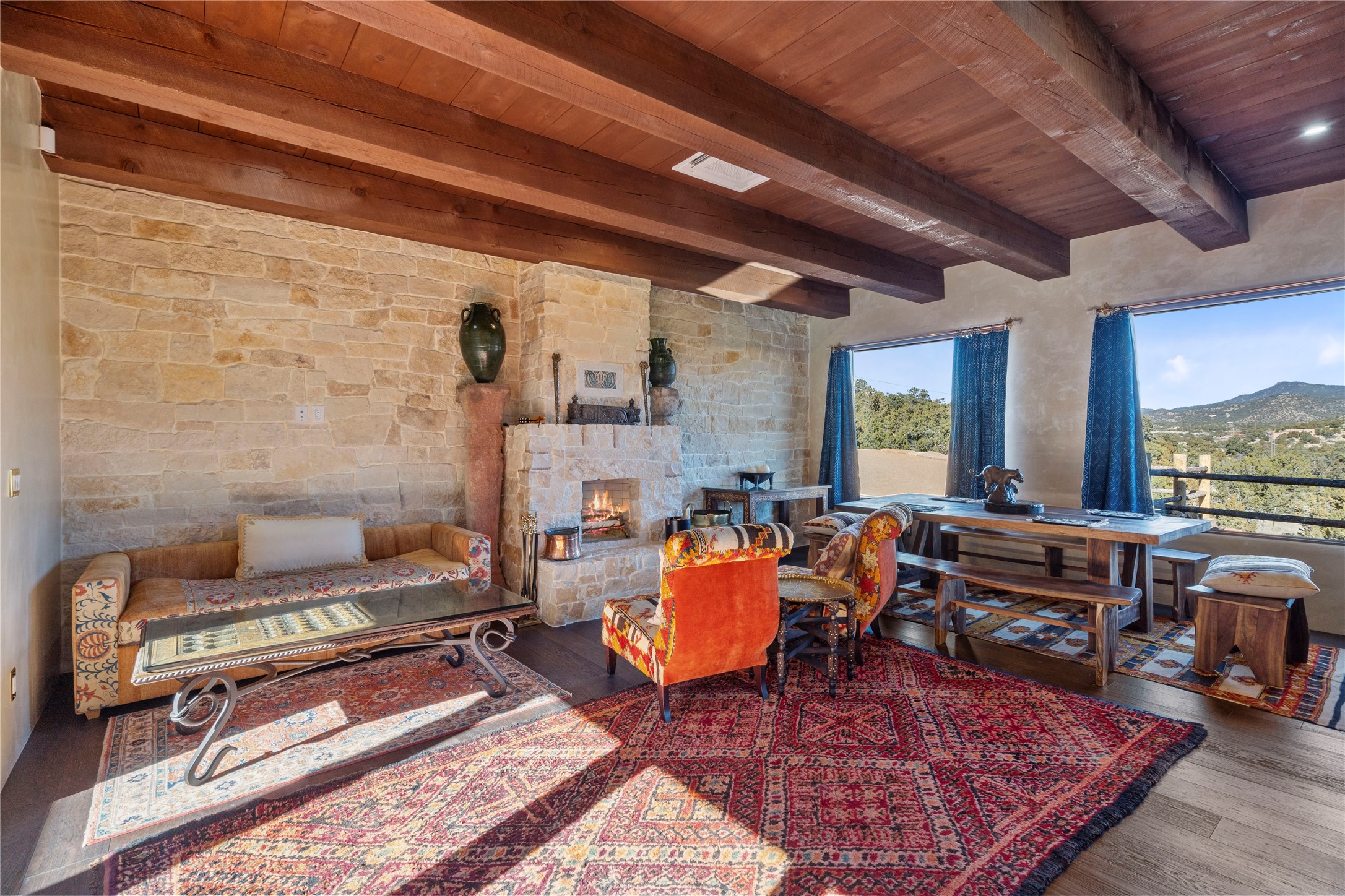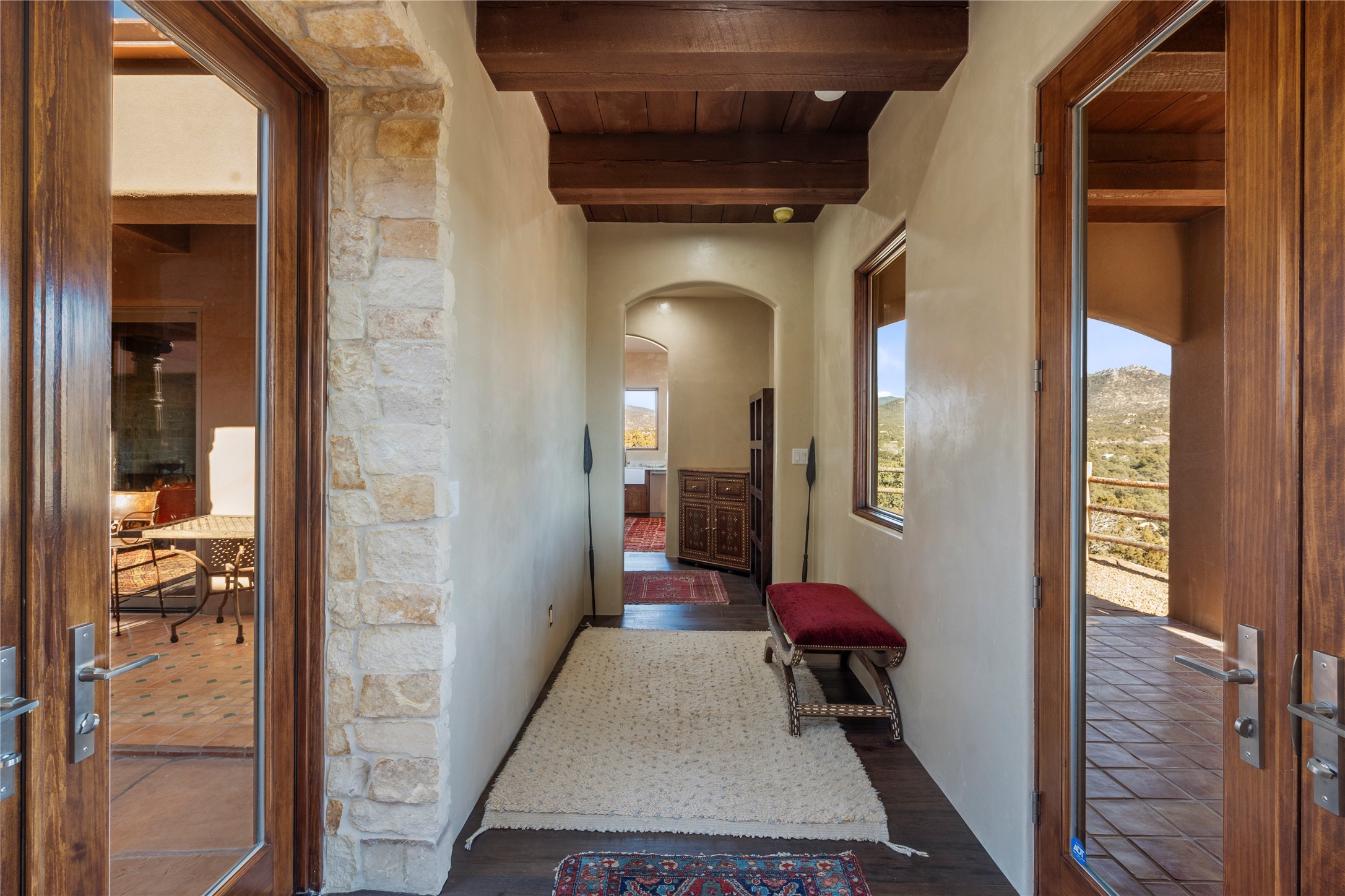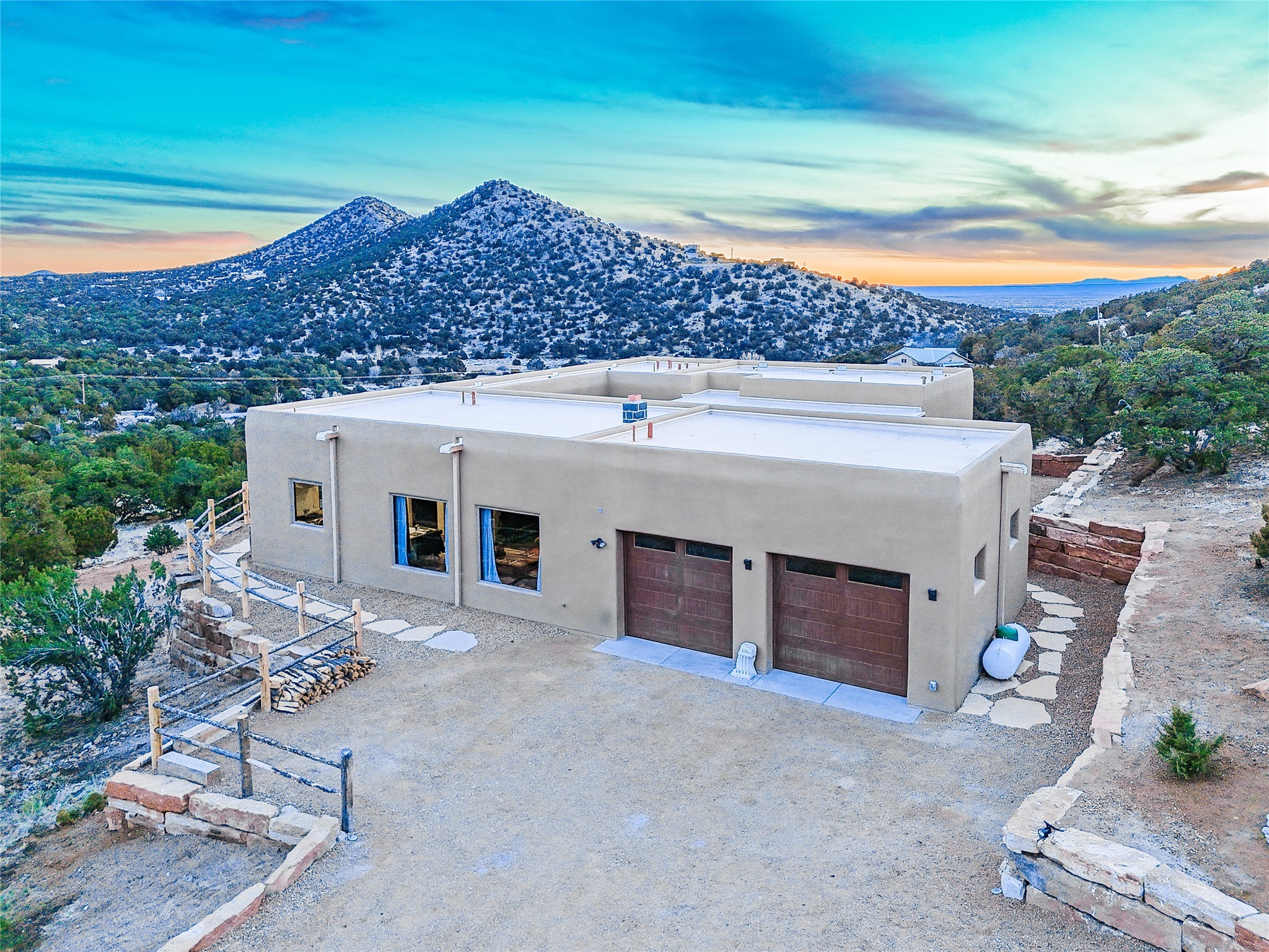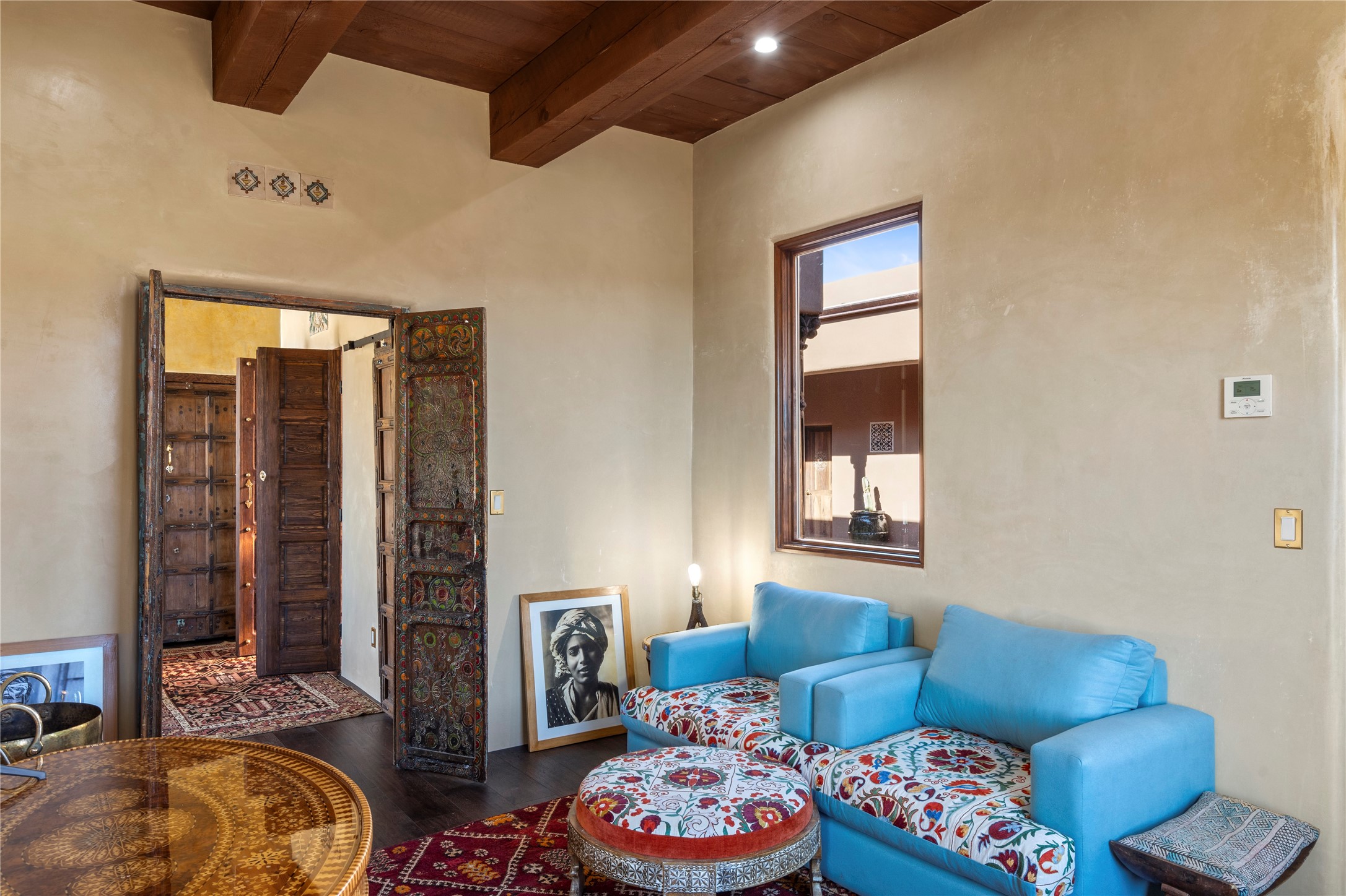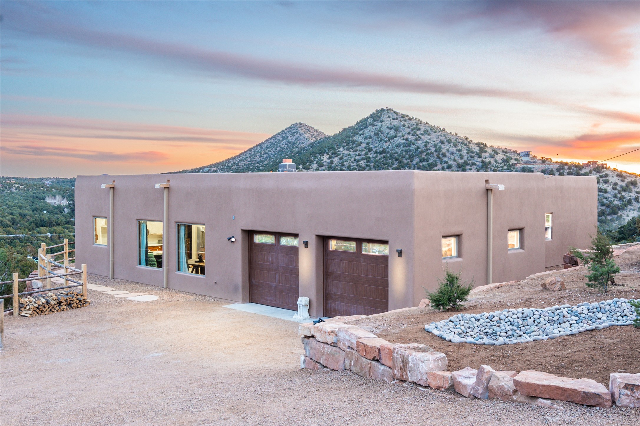 Meticulously designed by one of the world's premier jewelers, whose clients include Hollywood celebrities, fashion models, and other discerning individuals drawn to his unique, classically inspired art, and eye for detail.Just Imagine living in a pristine property created by an incredible artist in the peak of his career. This gorgeous home is the manifestation of a lifetime of world travels, creating an ambiance and layout of beauty everywhere: with every hand painted tile collected through time, every faucet, every stone. Nestled within the highly sought-after Sun Hills community, this newly constructed 2 bedroom 2.5 bath oasis offers the perfect blend of luxury and tranquility, with views from all directions, light and good taste everywhere. Set on 5 acres of magnificent beauty, this exceptional home provides breathtaking, panoramic views and a serene environment, just 15 minutes from downtown Santa Fe. Photos don't do it justice, we tried! You have to come experience this for yourself! Just about every door and intricate details has been thoughtfully sourced from abroad, contributing to the home's regal, yet inviting atmosphere.Despite its grandeur, it feels warm and intimate, reflecting impeccable taste and craftsmanship at every turn. Come and experience stunning views, ultimate privacy, and an unmatched sense of peace and quiet in your true oasis in Santa Fe.Offered fully furnished, yes fully furnished with internationally collected pieces at an outstanding price for new construction in Santa Fe, this home will never be replicated, offering you the rare opportunity to live within a precious jewell.