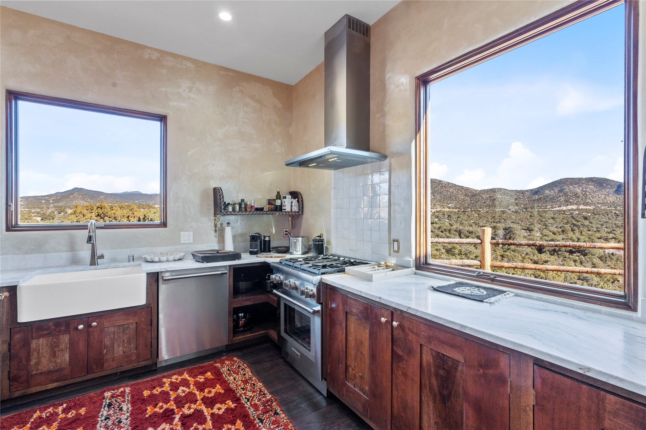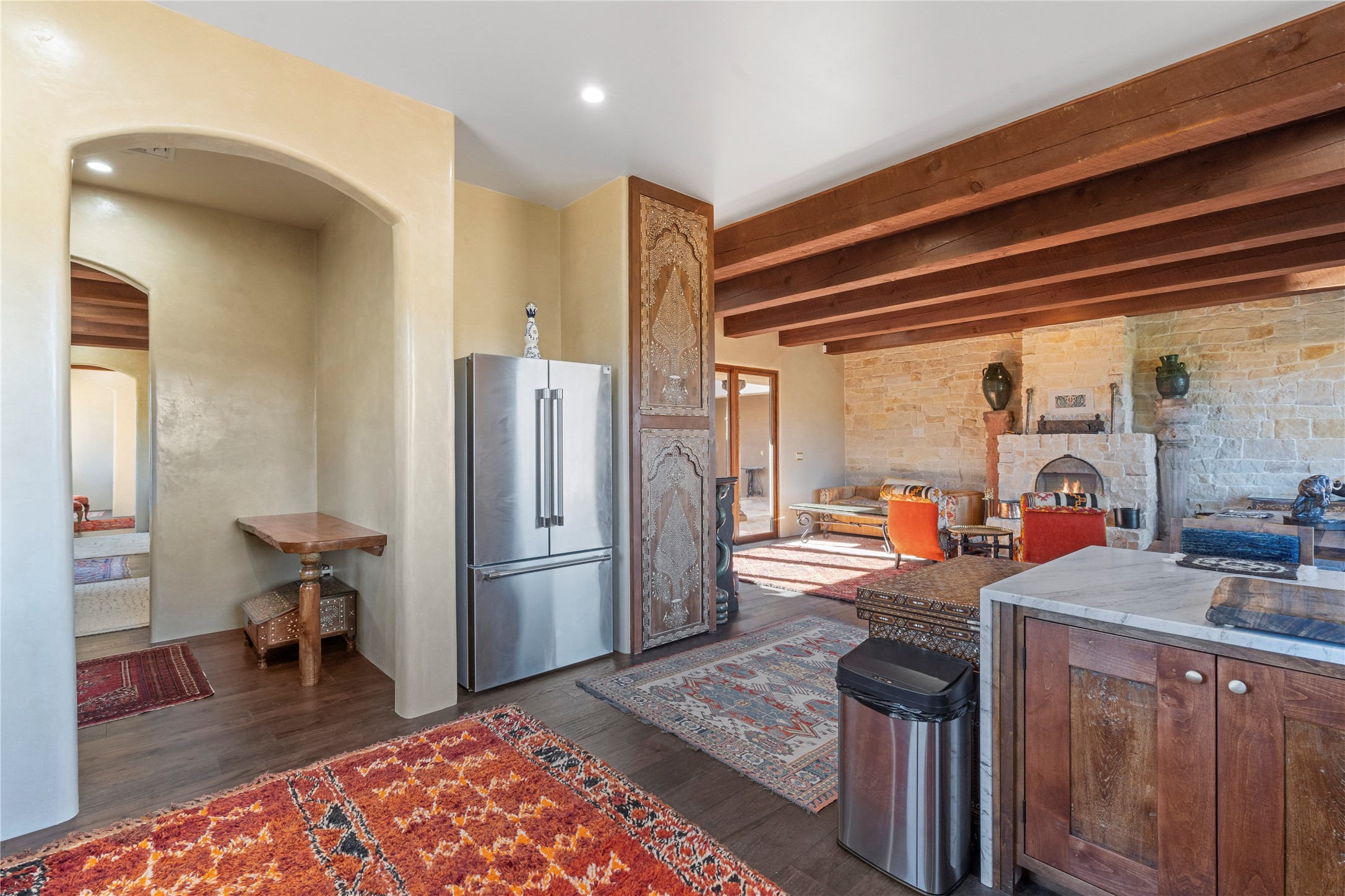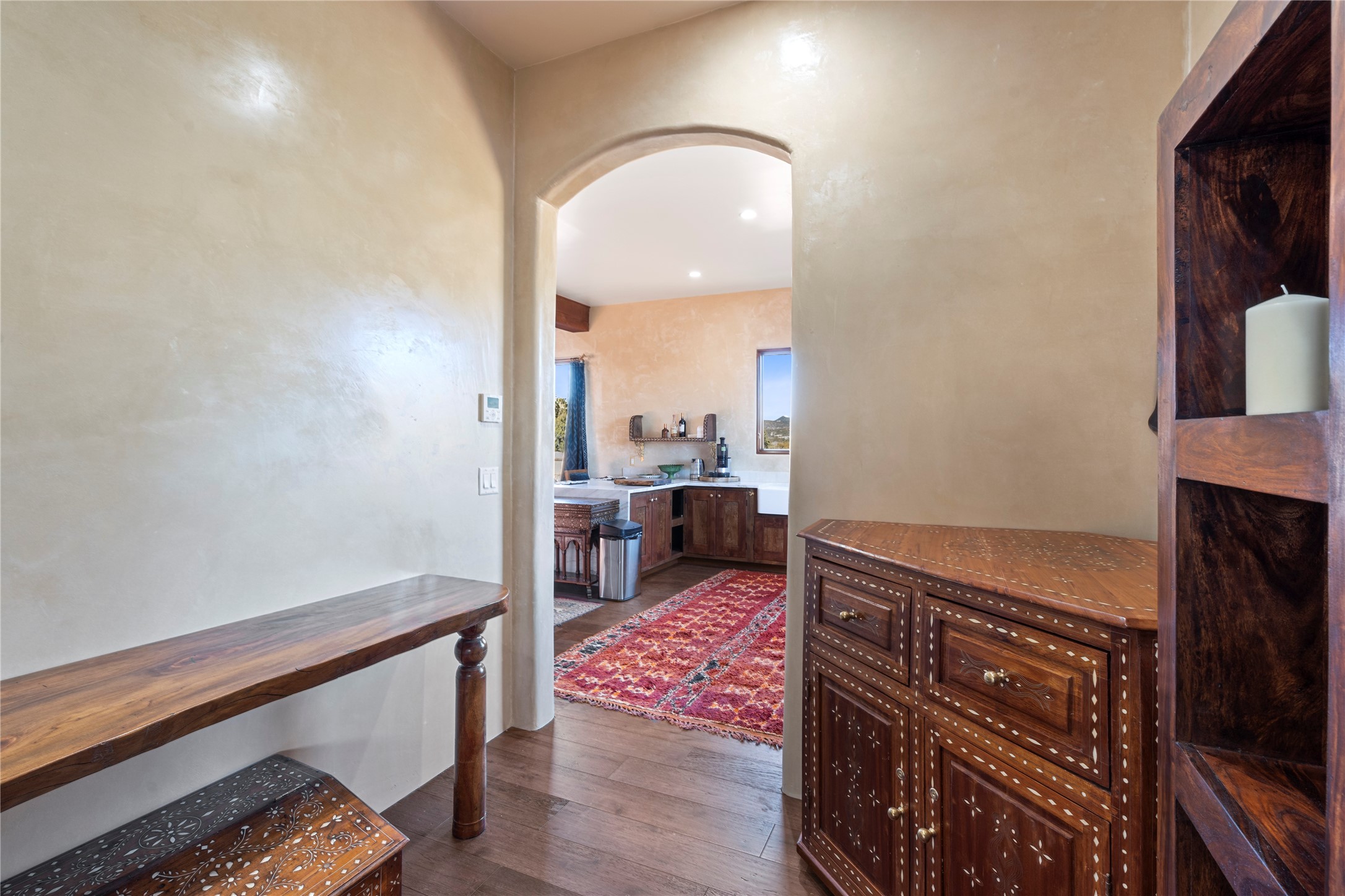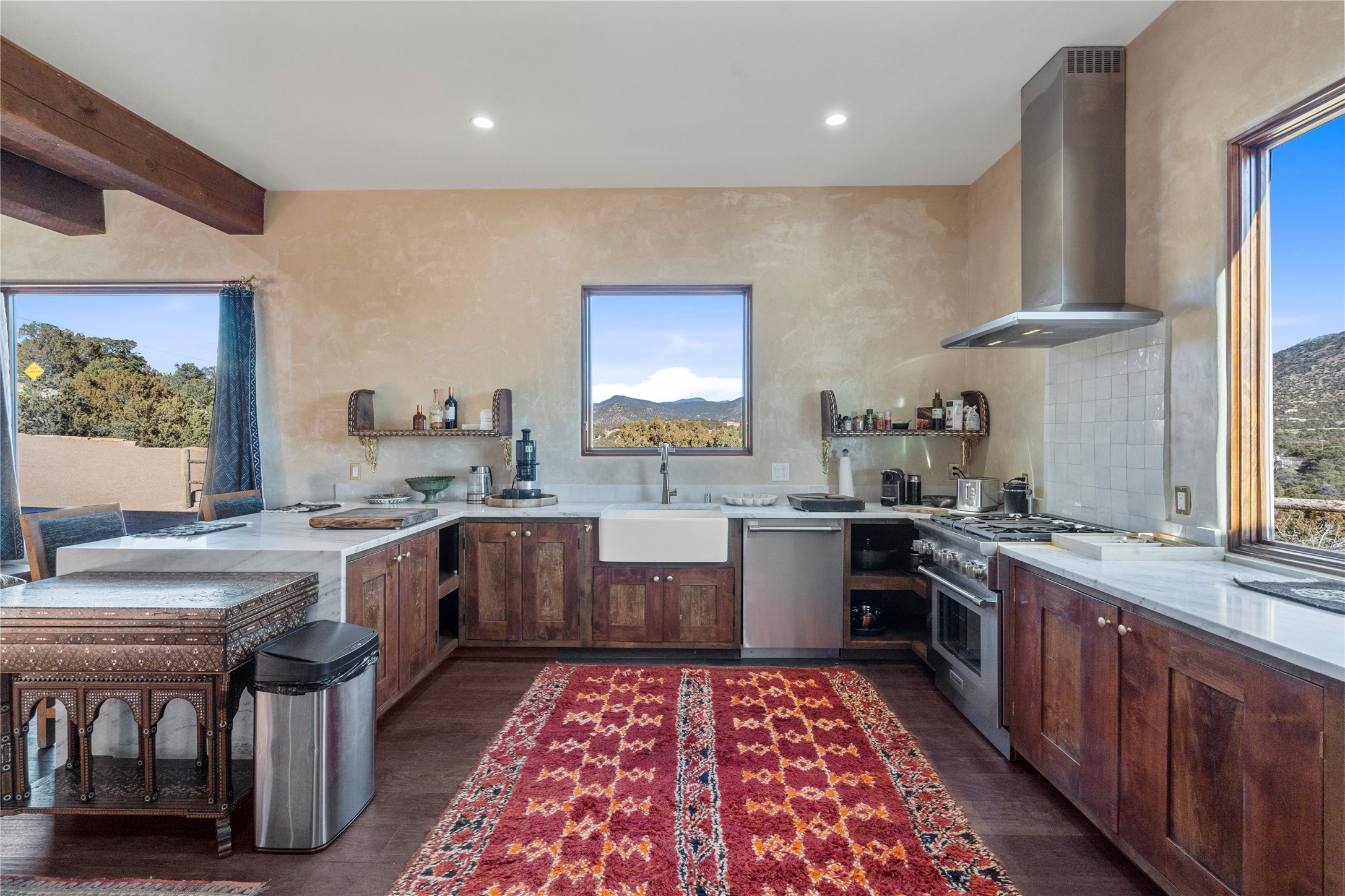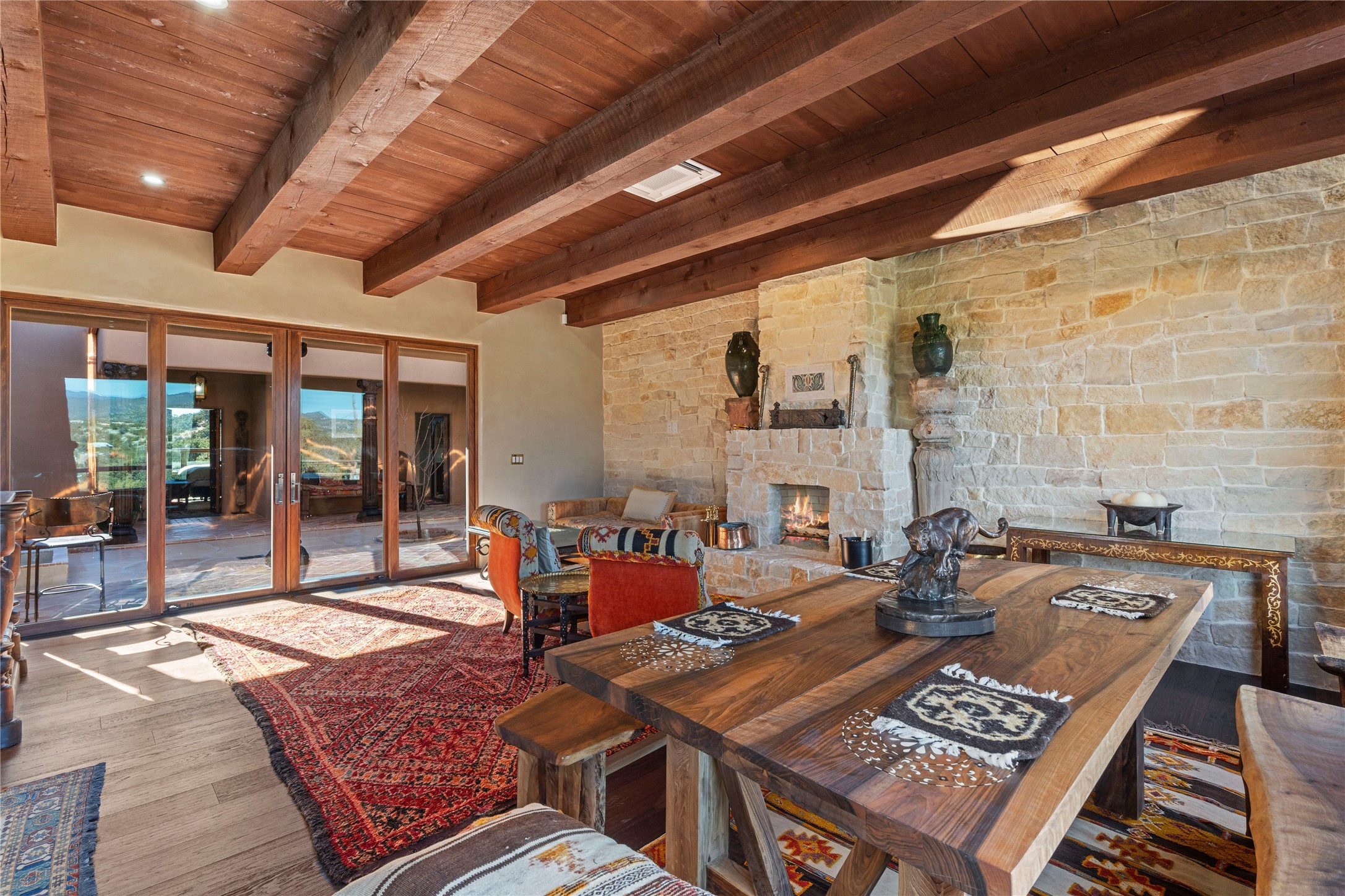 Meticulously designed by one of the world's premier jewelers, whose clients include Hollywood celebrities, fashion models, and other discerning individuals drawn to his unique, classically inspired art, and eye for detail.Just Imagine living in a pristine property created by an incredible artist in the peak of his career. This gorgeous home is the manifestation of a lifetime of world travels, creating an ambiance and layout of beauty everywhere: with every hand painted tile collected through time, every faucet, every stone. Nestled within the highly sought-after Sun Hills community, this newly constructed 2 bedroom 2.5 bath oasis offers the perfect blend of luxury and tranquility, with views from all directions, light and good taste everywhere. Set on 5 acres of magnificent beauty, this exceptional home provides breathtaking, panoramic views and a serene environment, just 15 minutes from downtown Santa Fe. Photos don't do it justice, we tried! You have to come experience this for yourself! Just about every door and intricate details has been thoughtfully sourced from abroad, contributing to the home's regal, yet inviting atmosphere.Despite its grandeur, it feels warm and intimate, reflecting impeccable taste and craftsmanship at every turn. Come and experience stunning views, ultimate privacy, and an unmatched sense of peace and quiet in your true oasis in Santa Fe.Offered fully furnished, yes fully furnished with internationally collected pieces at an outstanding price for new construction in Santa Fe, this home will never be replicated, offering you the rare opportunity to live within a precious jewell.