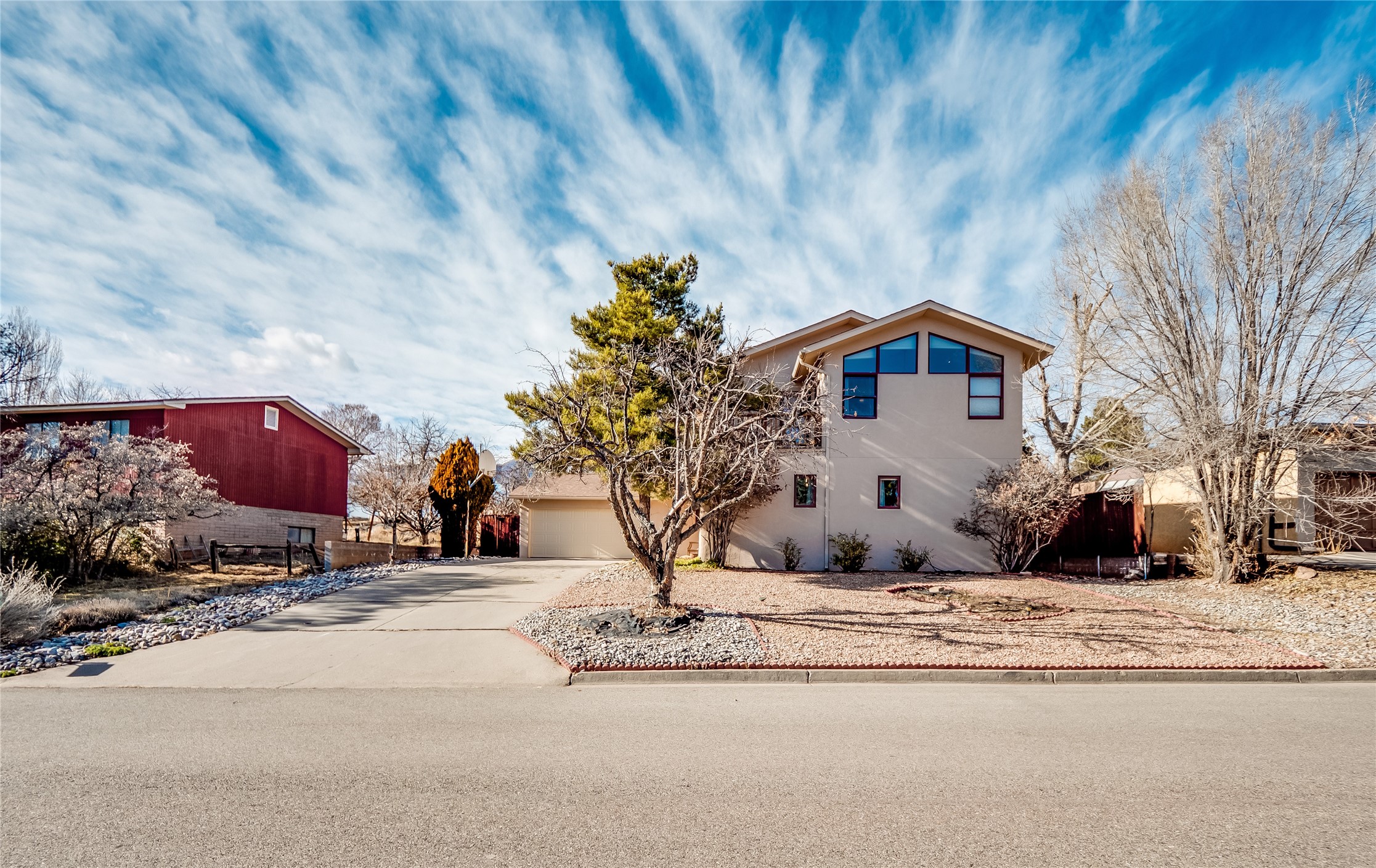 In the heart of North Mesa, this gorgeous two-story home offers the perfect blend of style and comfort. The large, low-maintenance front yard welcomes you, leading up to a two-car garage with direct access to the home. Step inside to find grey laminate wood floors that flow throughout the main living areas. To the left of the entryway is a bright living and dining space, featuring vaulted ceilings and a striking stone wood-burning fireplace that serves as the room's centerpiece. A spacious kitchen with tons of rich wood cabinets for storage, granite counters, stainless steel appliances. The kitchen's large island overlooks the family room, where a cozy wood-burning stove adds warmth, and sliders lead to the fully fenced-in backyard, an entertainer space with a covered patio and a retaining walls showcasing fruit trees. The main floor continues with two guest bedrooms, each featuring walk-in closets, and a full guest bathroom. Down the hall is a guest en-suite with a walk-in closet and its own bathroom, complete with a single-sink vanity and tiled shower/tub. A spacious laundry room with included washer and dryer completes the main level. The second floor boasts a private guest en-suite with a charming loft and access to a shared deck. The primary en-suite is bathed in natural light, thanks to a wall of windows and sliding glass doors that lead to a shared deck perfect for enjoying a quiet morning coffee or stargazing at night. The spa-inspired primary bathroom is the epitome of relaxation. Featuring sleek tile floors and a stunning walk-in shower with a glass door enclosure, tiled from floor to ceiling for a luxurious and polished look. A deep soaking tub for unwinding after a long day, complemented by a large double-sink vanity. Located near horse stables, parks, and scenic hiking trails, this home provides a perfect balance of peaceful living and easy access to outdoor recreation. Don't miss your chance to make this incredible property your own!