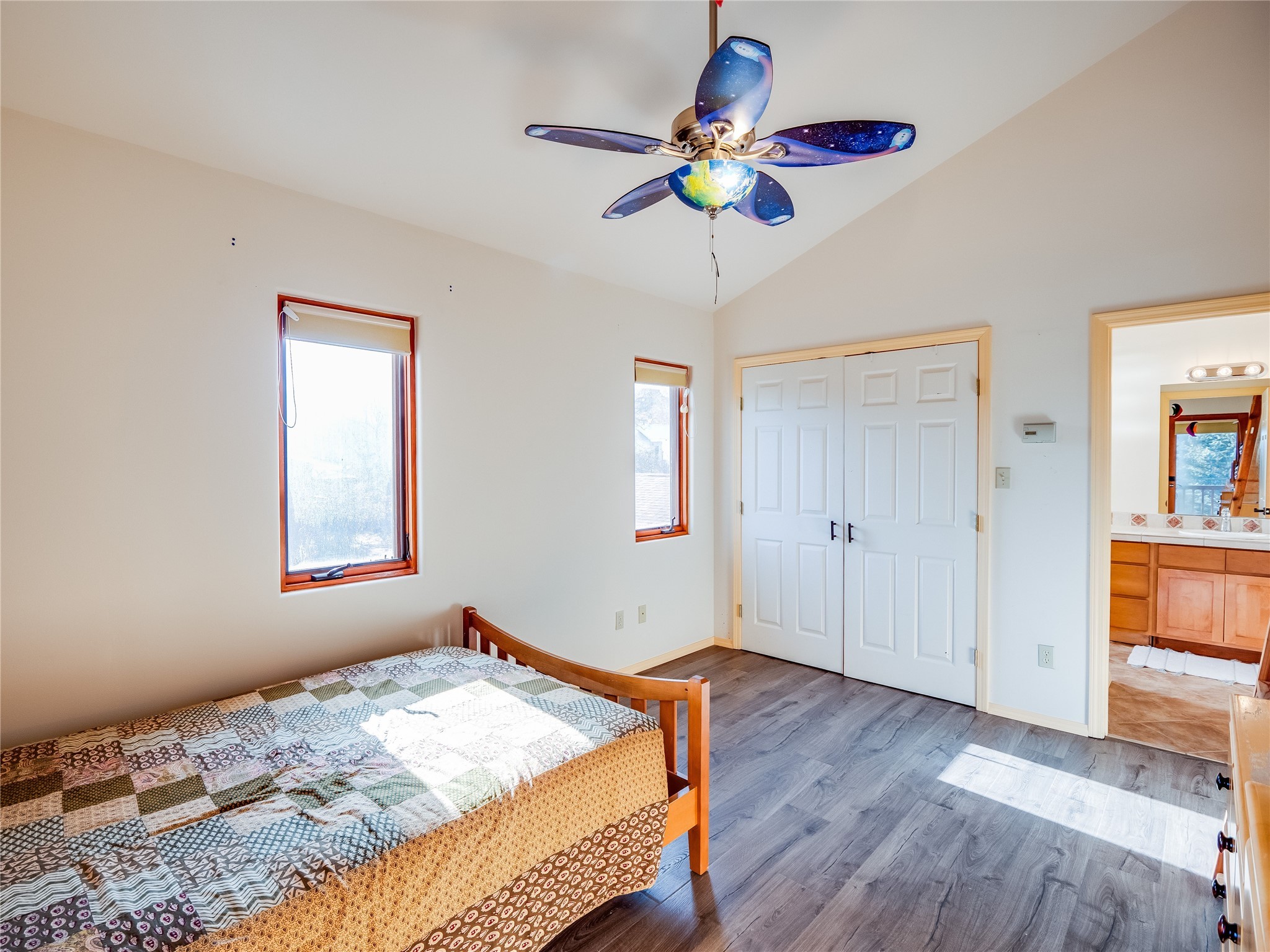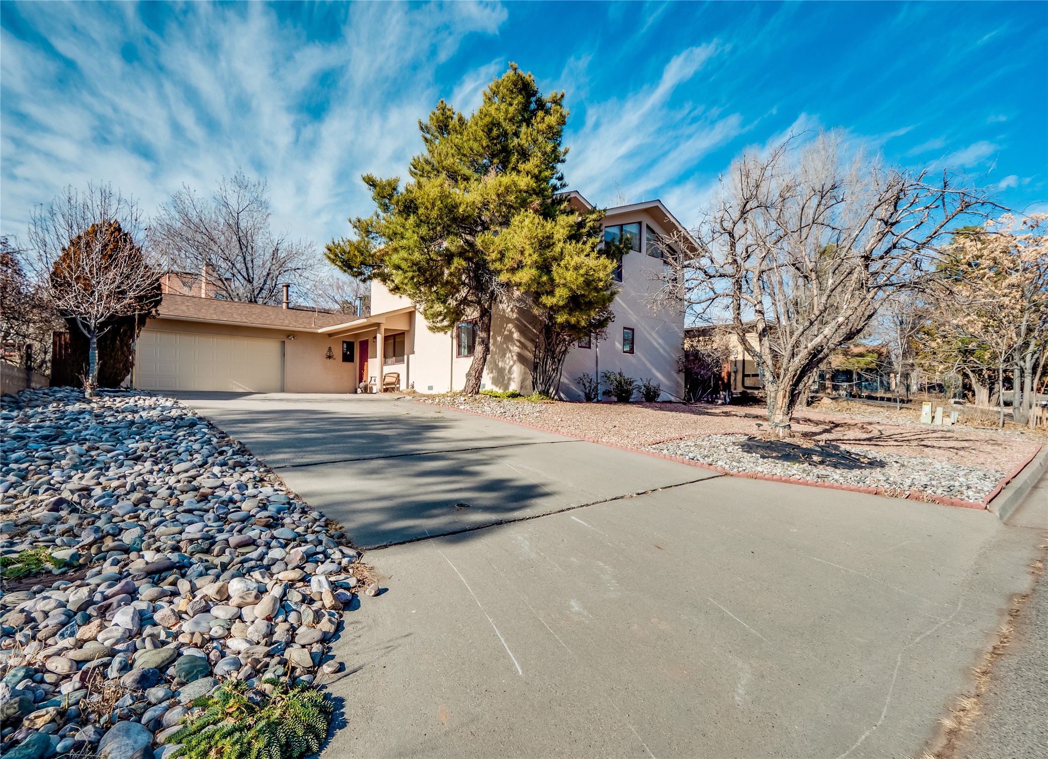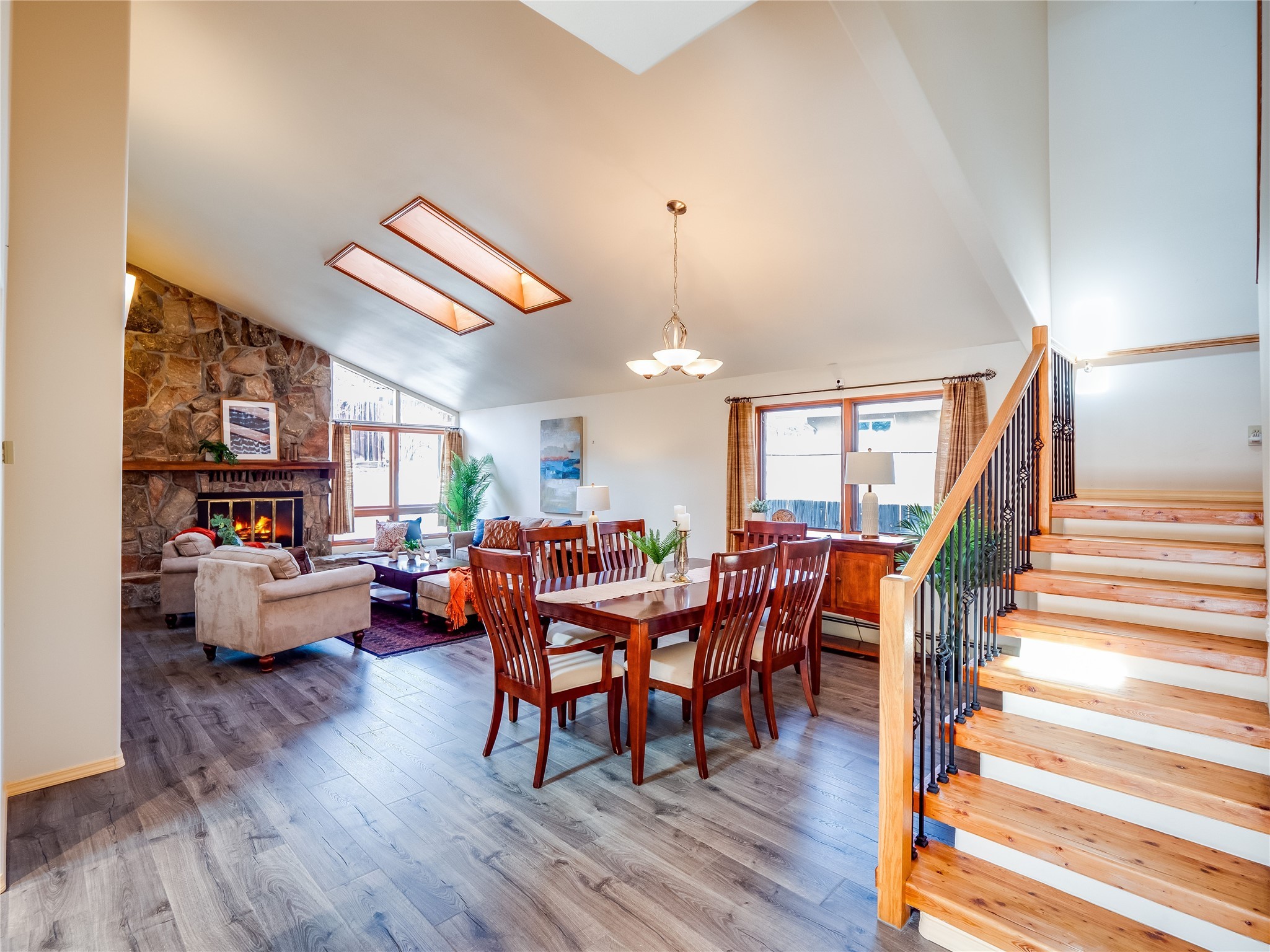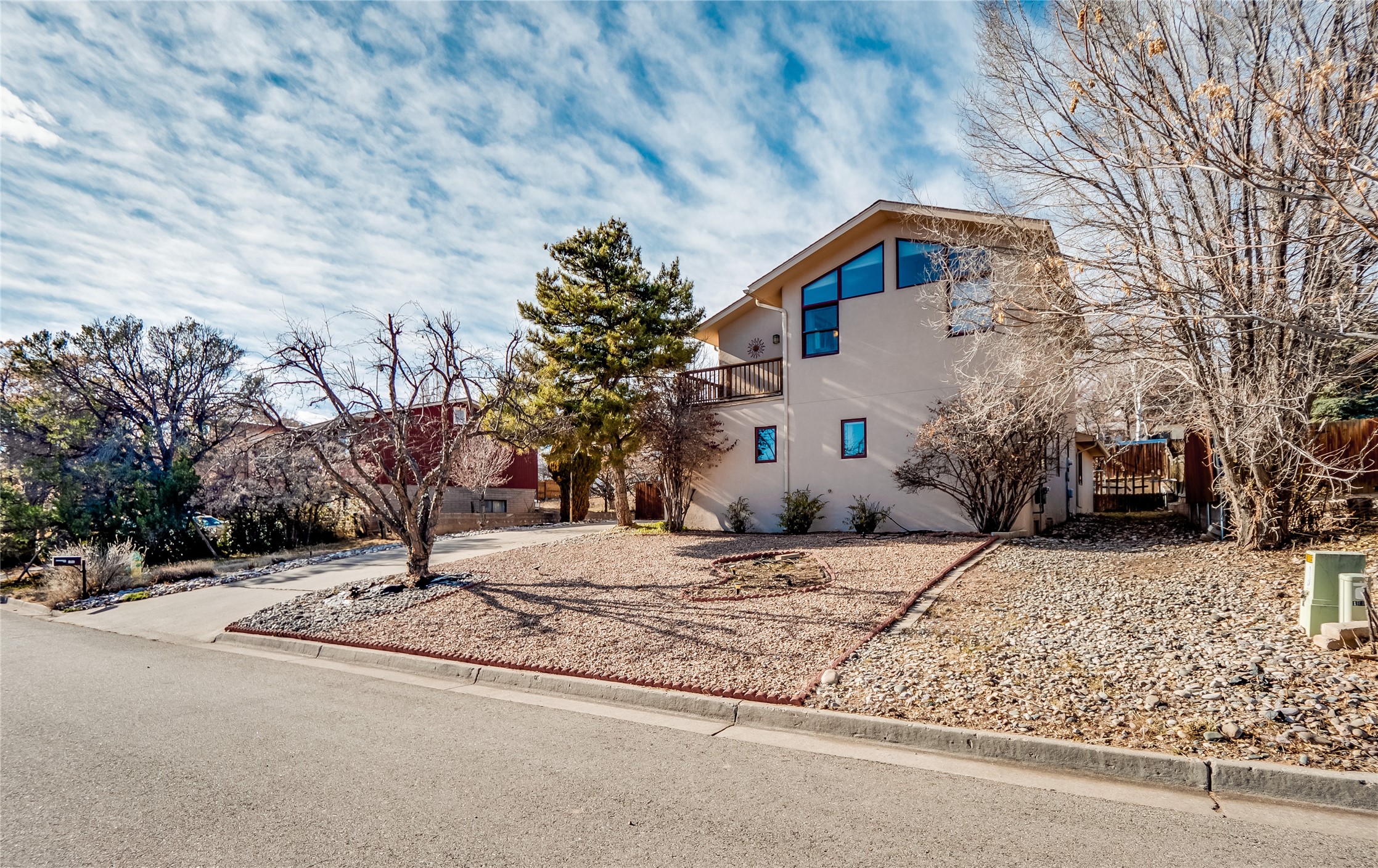 In the heart of North Mesa, this gorgeous two-story home offers the perfect blend of style and comfort. The large, low-maintenance front yard welcomes you, leading up to a two-car garage with direct access to the home. Step inside to find grey laminate wood floors that flow throughout the main living areas. To the left of the entryway is a bright living and dining space, featuring vaulted ceilings and a striking stone wood-burning fireplace that serves as the room's centerpiece. A spacious kitchen with tons of rich wood cabinets for storage, granite counters, stainless steel appliances. The kitchen's large island overlooks the family room, where a cozy wood-burning stove adds warmth, and sliders lead to the fully fenced-in backyard, an entertainer space with a covered patio and a retaining walls showcasing fruit trees. The main floor continues with two guest bedrooms, each featuring walk-in closets, and a full guest bathroom. Down the hall is a guest en-suite with a walk-in closet and its own bathroom, complete with a single-sink vanity and tiled shower/tub. A spacious laundry room with included washer and dryer completes the main level. The second floor boasts a private guest en-suite with a charming loft and access to a shared deck. The primary en-suite is bathed in natural light, thanks to a wall of windows and sliding glass doors that lead to a shared deck perfect for enjoying a quiet morning coffee or stargazing at night. The spa-inspired primary bathroom is the epitome of relaxation. Featuring sleek tile floors and a stunning walk-in shower with a glass door enclosure, tiled from floor to ceiling for a luxurious and polished look. A deep soaking tub for unwinding after a long day, complemented by a large double-sink vanity. Located near horse stables, parks, and scenic hiking trails, this home provides a perfect balance of peaceful living and easy access to outdoor recreation. Don't miss your chance to make this incredible property your own!