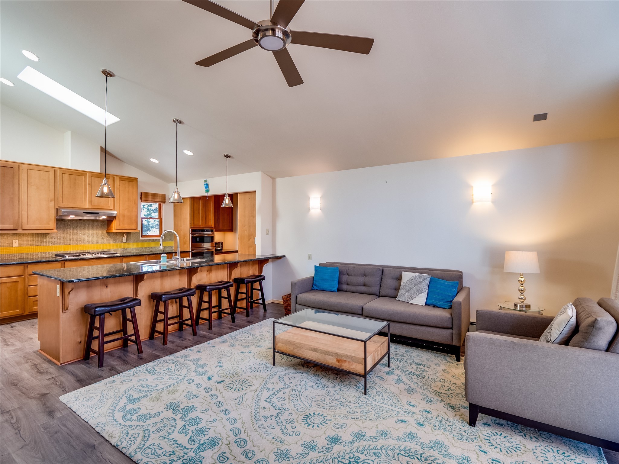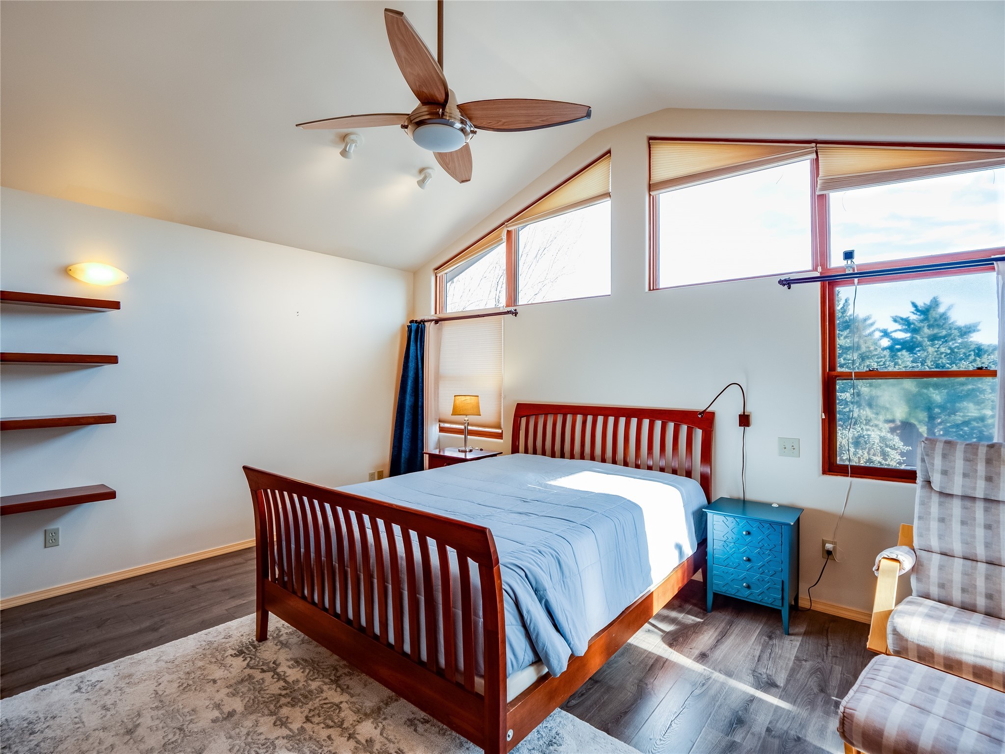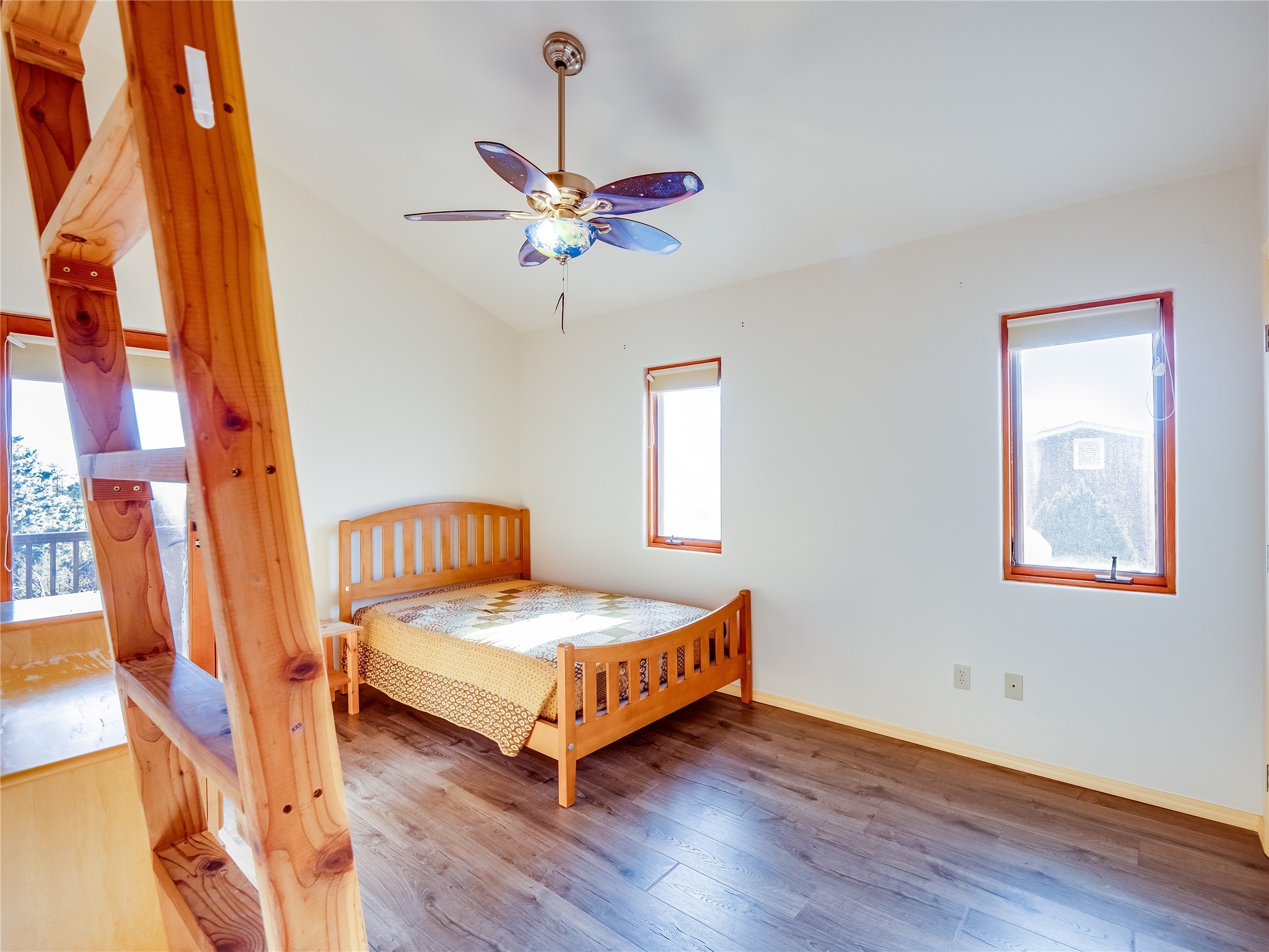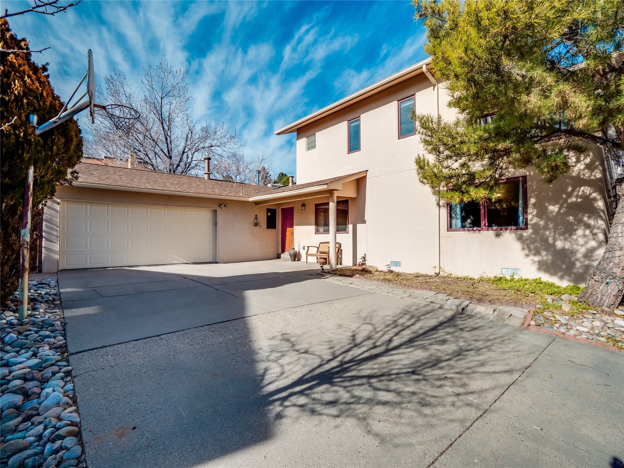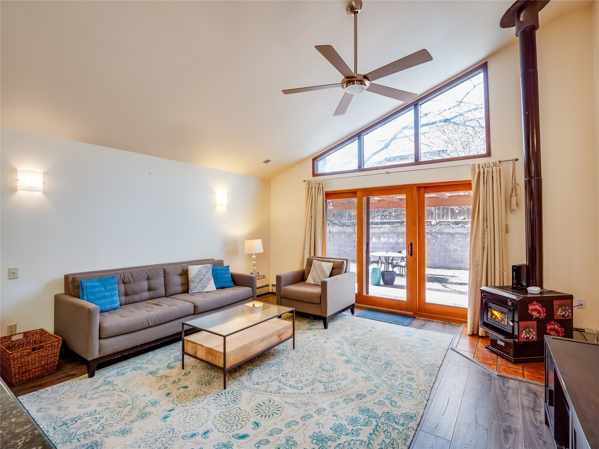 In the heart of North Mesa, this gorgeous two-story home offers the perfect blend of style and comfort. The large, low-maintenance front yard welcomes you, leading up to a two-car garage with direct access to the home. Step inside to find grey laminate wood floors that flow throughout the main living areas. To the left of the entryway is a bright living and dining space, featuring vaulted ceilings and a striking stone wood-burning fireplace that serves as the room's centerpiece. A spacious kitchen with tons of rich wood cabinets for storage, granite counters, stainless steel appliances. The kitchen's large island overlooks the family room, where a cozy wood-burning stove adds warmth, and sliders lead to the fully fenced-in backyard, an entertainer space with a covered patio and a retaining walls showcasing fruit trees. The main floor continues with two guest bedrooms, each featuring walk-in closets, and a full guest bathroom. Down the hall is a guest en-suite with a walk-in closet and its own bathroom, complete with a single-sink vanity and tiled shower/tub. A spacious laundry room with included washer and dryer completes the main level. The second floor boasts a private guest en-suite with a charming loft and access to a shared deck. The primary en-suite is bathed in natural light, thanks to a wall of windows and sliding glass doors that lead to a shared deck perfect for enjoying a quiet morning coffee or stargazing at night. The spa-inspired primary bathroom is the epitome of relaxation. Featuring sleek tile floors and a stunning walk-in shower with a glass door enclosure, tiled from floor to ceiling for a luxurious and polished look. A deep soaking tub for unwinding after a long day, complemented by a large double-sink vanity. Located near horse stables, parks, and scenic hiking trails, this home provides a perfect balance of peaceful living and easy access to outdoor recreation. Don't miss your chance to make this incredible property your own!