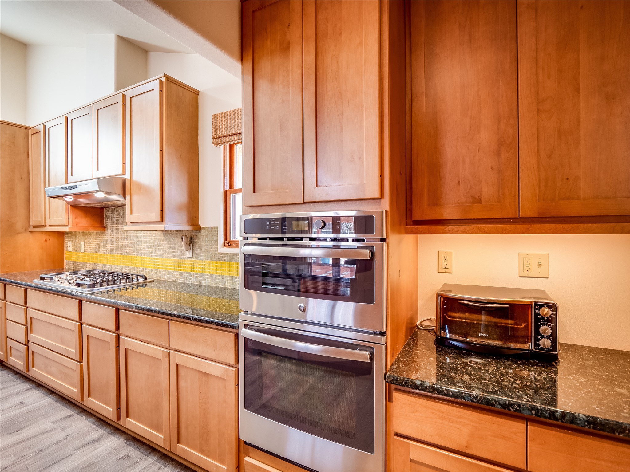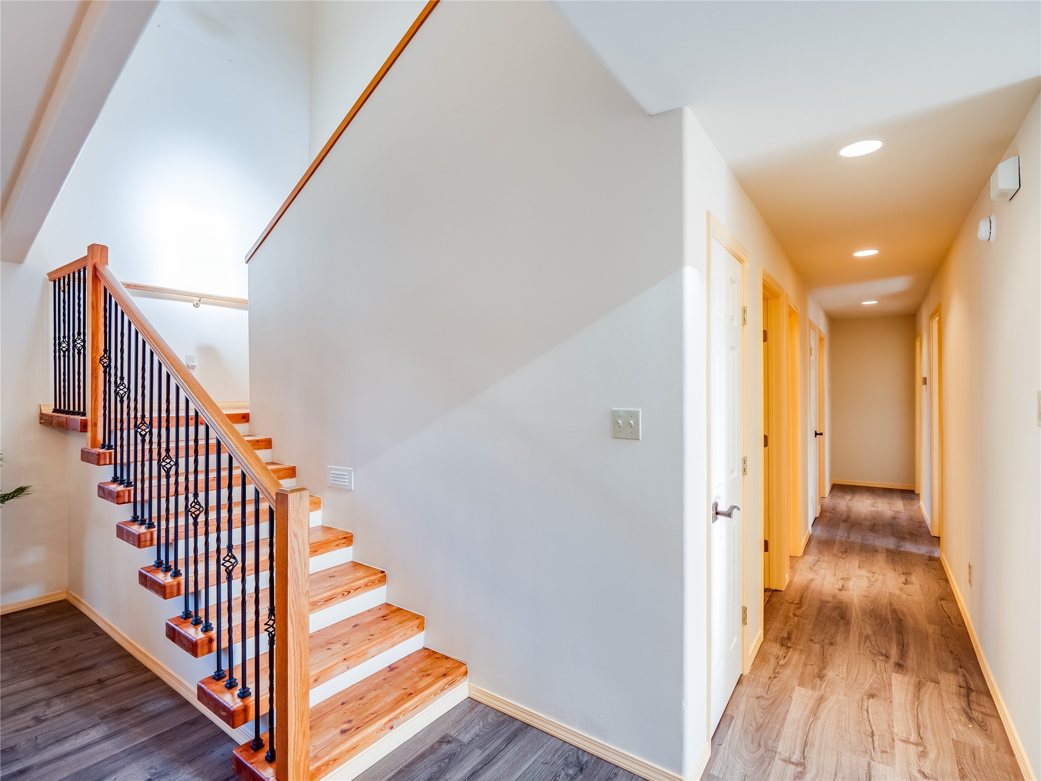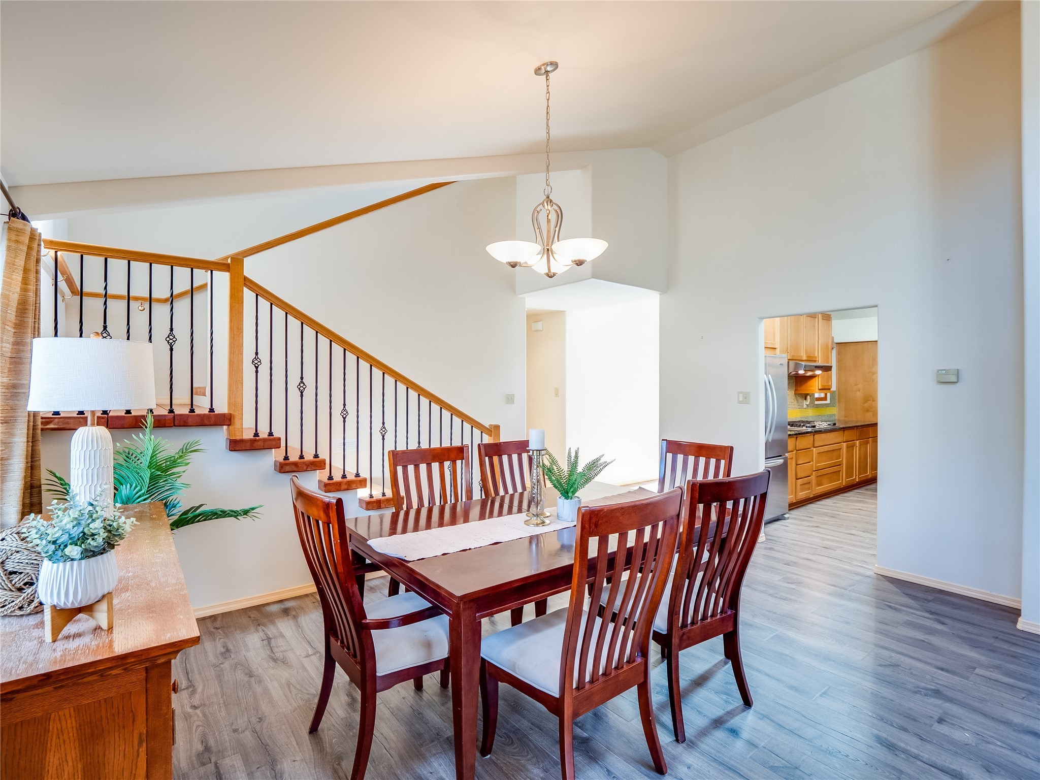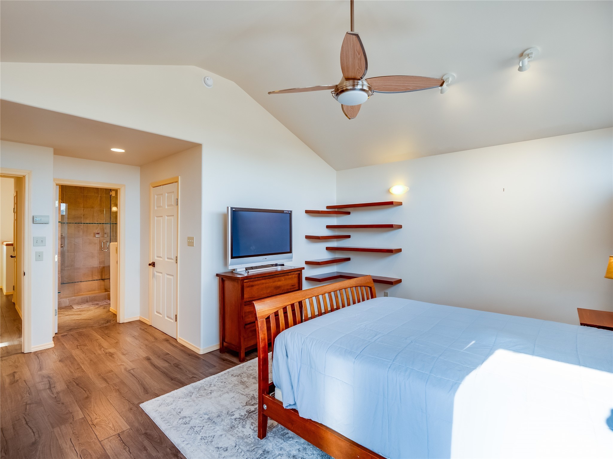 In the heart of North Mesa, this gorgeous two-story home offers the perfect blend of style and comfort. The large, low-maintenance front yard welcomes you, leading up to a two-car garage with direct access to the home. Step inside to find grey laminate wood floors that flow throughout the main living areas. To the left of the entryway is a bright living and dining space, featuring vaulted ceilings and a striking stone wood-burning fireplace that serves as the room's centerpiece. A spacious kitchen with tons of rich wood cabinets for storage, granite counters, stainless steel appliances. The kitchen's large island overlooks the family room, where a cozy wood-burning stove adds warmth, and sliders lead to the fully fenced-in backyard, an entertainer space with a covered patio and a retaining walls showcasing fruit trees. The main floor continues with two guest bedrooms, each featuring walk-in closets, and a full guest bathroom. Down the hall is a guest en-suite with a walk-in closet and its own bathroom, complete with a single-sink vanity and tiled shower/tub. A spacious laundry room with included washer and dryer completes the main level. The second floor boasts a private guest en-suite with a charming loft and access to a shared deck. The primary en-suite is bathed in natural light, thanks to a wall of windows and sliding glass doors that lead to a shared deck perfect for enjoying a quiet morning coffee or stargazing at night. The spa-inspired primary bathroom is the epitome of relaxation. Featuring sleek tile floors and a stunning walk-in shower with a glass door enclosure, tiled from floor to ceiling for a luxurious and polished look. A deep soaking tub for unwinding after a long day, complemented by a large double-sink vanity. Located near horse stables, parks, and scenic hiking trails, this home provides a perfect balance of peaceful living and easy access to outdoor recreation. Don't miss your chance to make this incredible property your own!